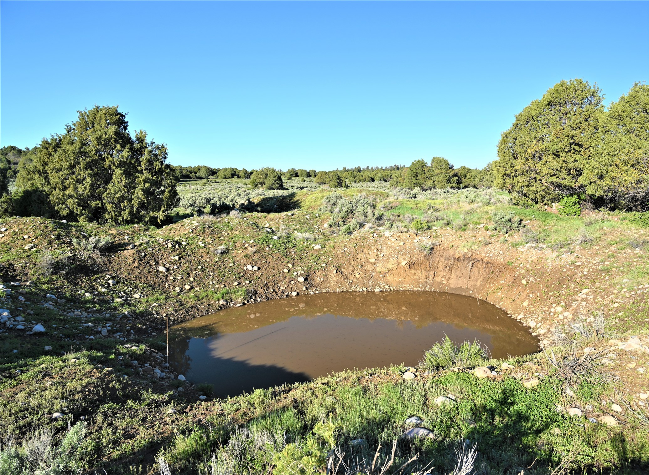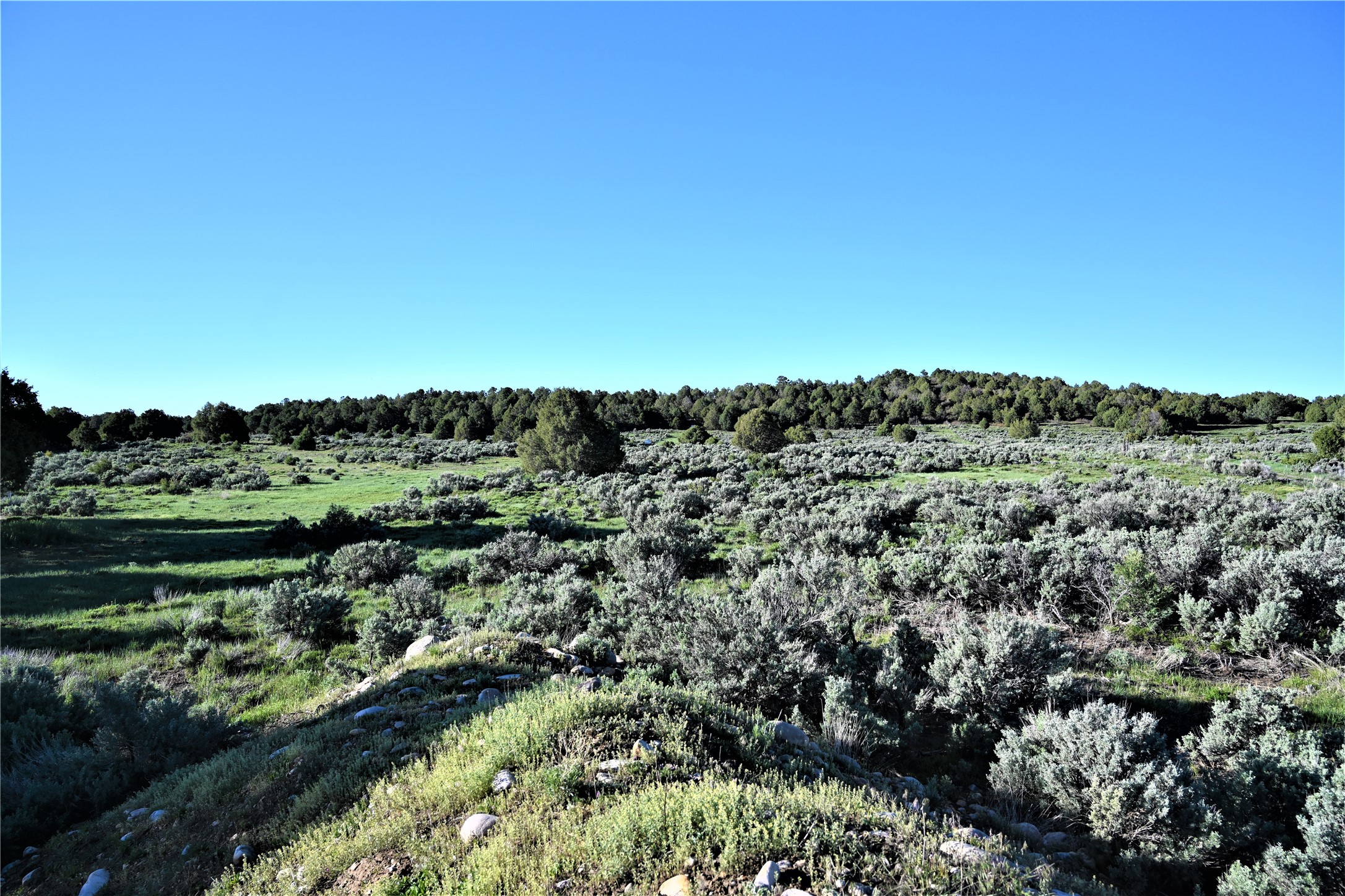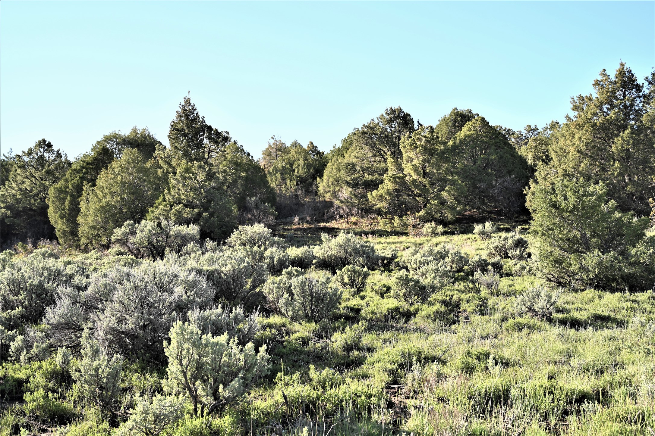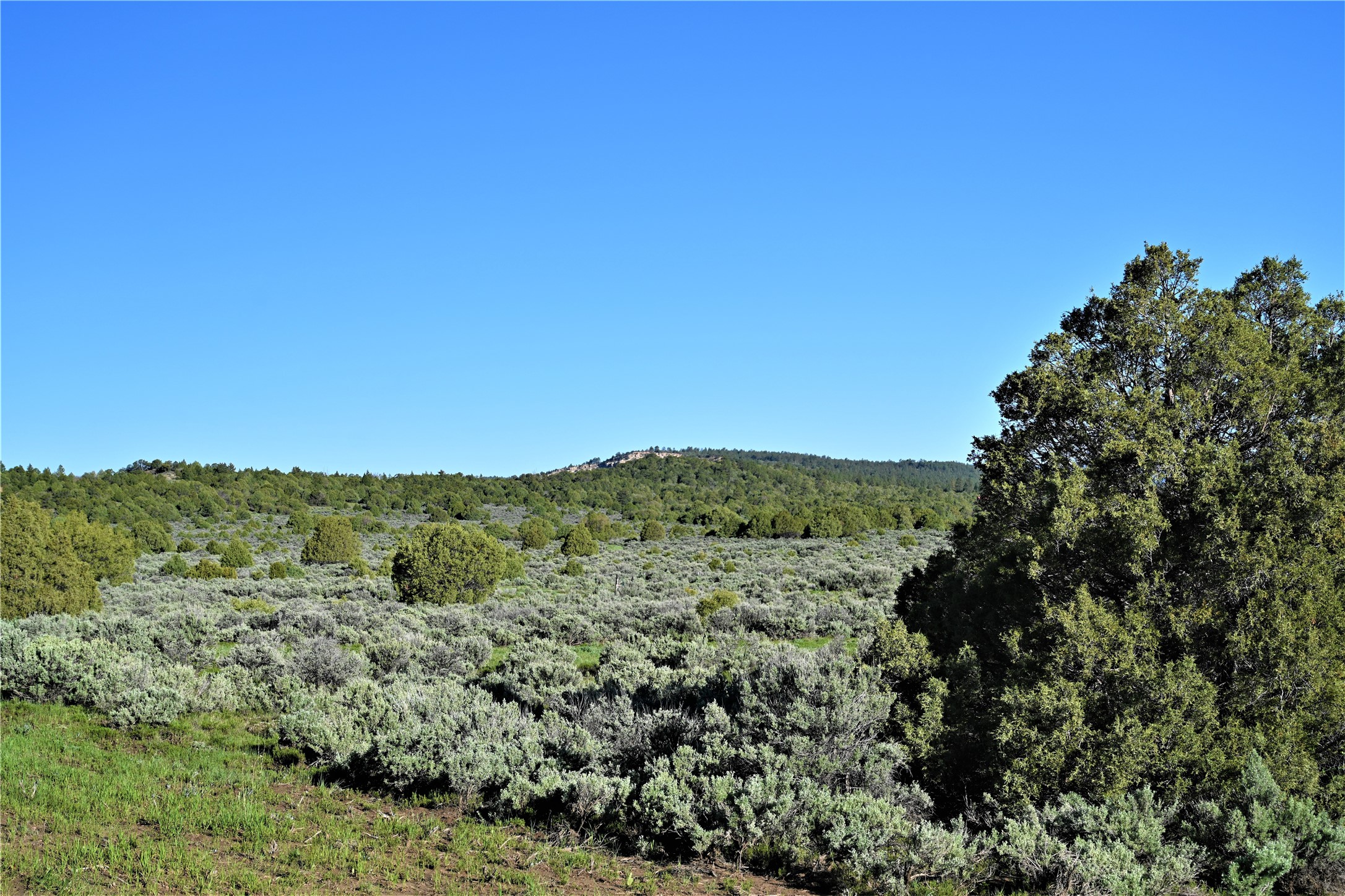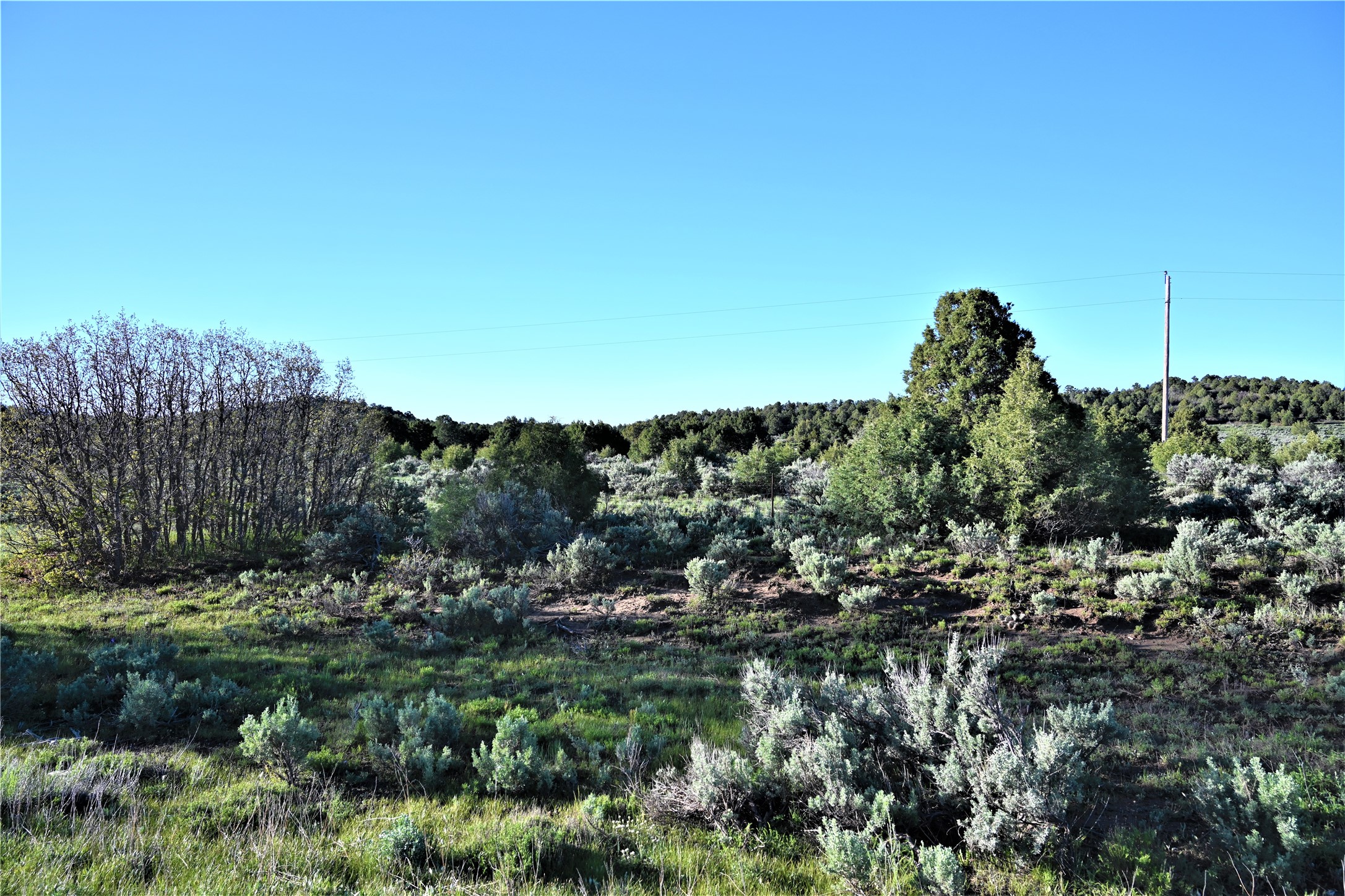 Beautiful Northern NM hunting property. The place has been set up for Elk and Mule Deer hunting. Has been assigned 1 Elk tag in the past years and a couple of Mule Deer tags as well. Turkey and Black Bear also roam this property. The current owner has put in work to get this place where its at today. Some areas of Sage have been cleared and planted with Grass and Alfalfa. Hunting Stand put in place. The fence has special areas for the animals to cross back and forth. Nice deep water hole that is spring and run off fed. A 300 yard shooting range for getting your Rifles zeroed in. This is GREAT private hunting property. Real easy to get around in. Power at the front of the property.