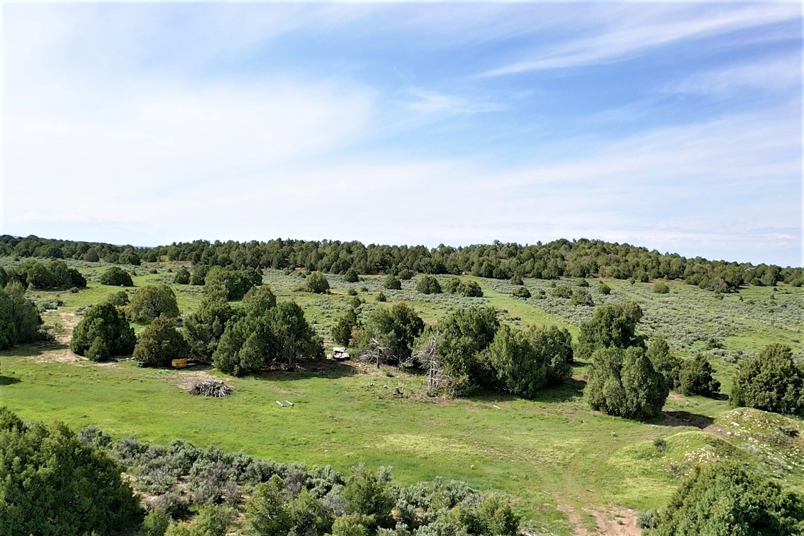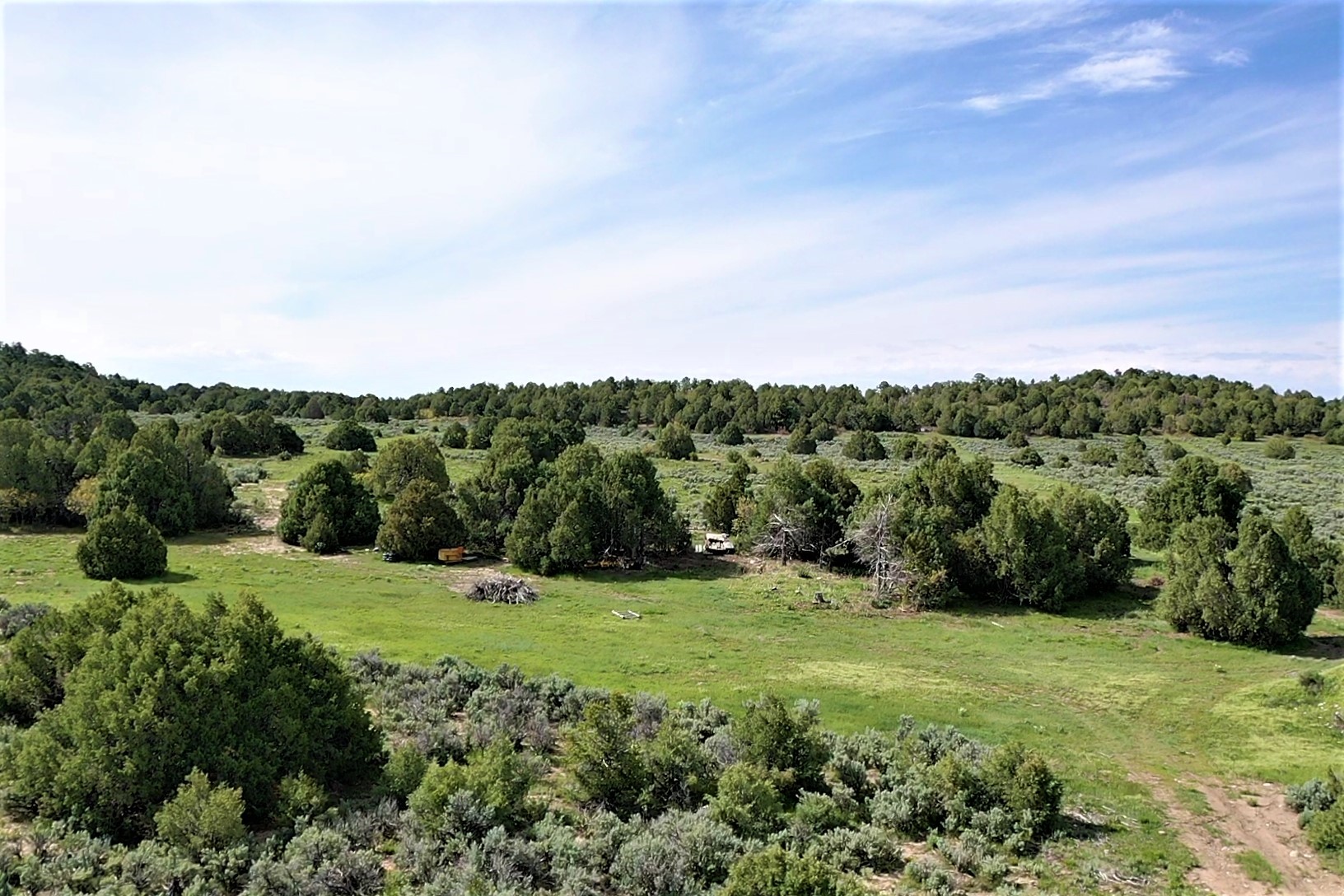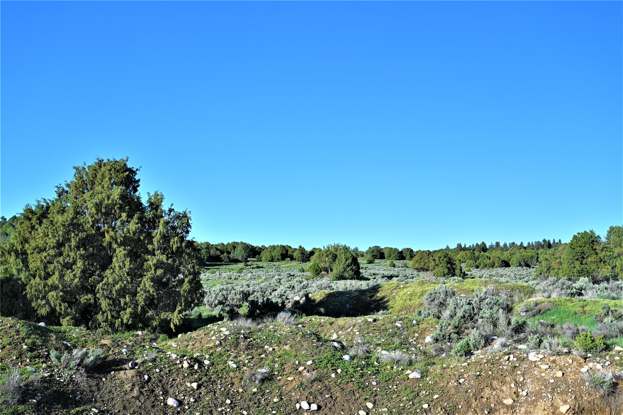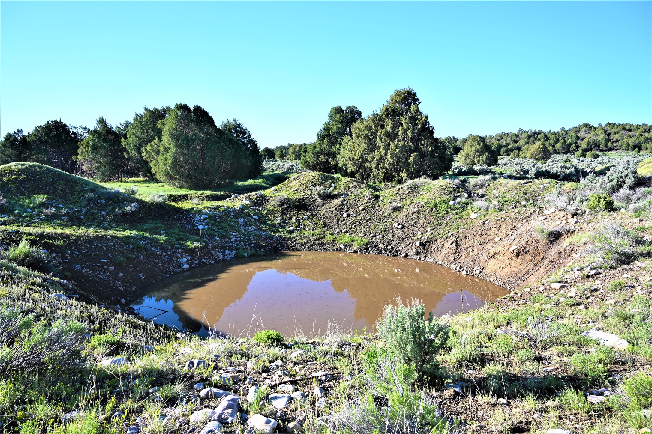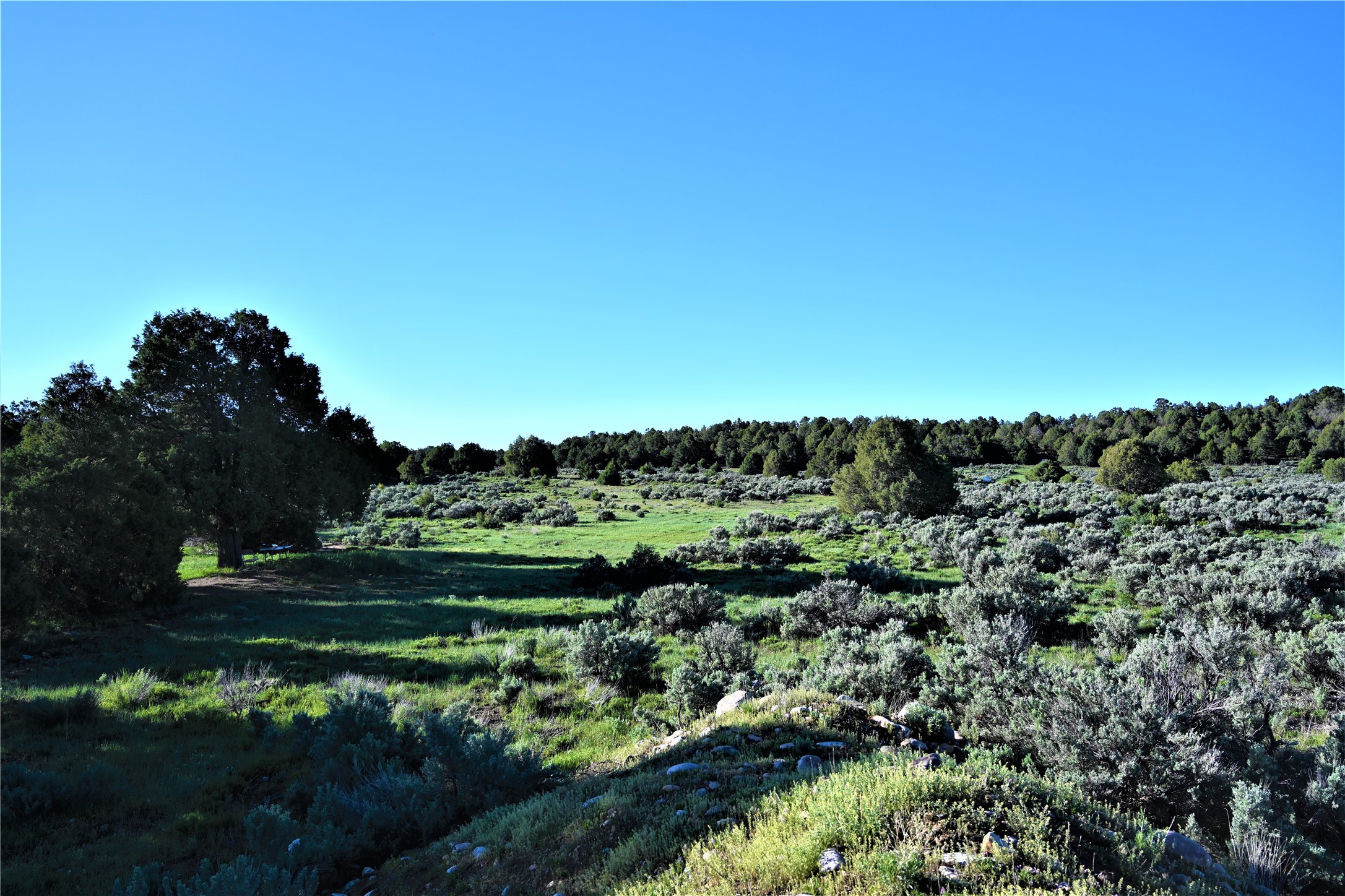 Beautiful Northern NM hunting property. The place has been set up for Elk and Mule Deer hunting. Has been assigned 1 Elk tag in the past years and a couple of Mule Deer tags as well. Turkey and Black Bear also roam this property. The current owner has put in work to get this place where its at today. Some areas of Sage have been cleared and planted with Grass and Alfalfa. Hunting Stand put in place. The fence has special areas for the animals to cross back and forth. Nice deep water hole that is spring and run off fed. A 300 yard shooting range for getting your Rifles zeroed in. This is GREAT private hunting property. Real easy to get around in. Power at the front of the property.