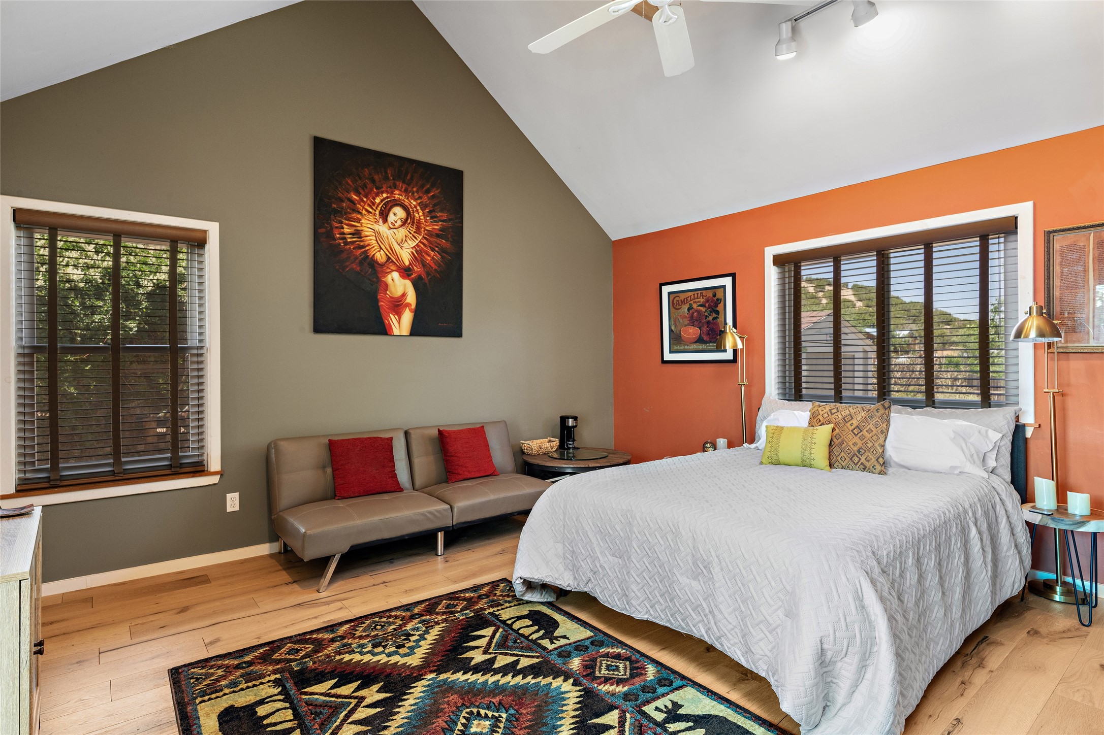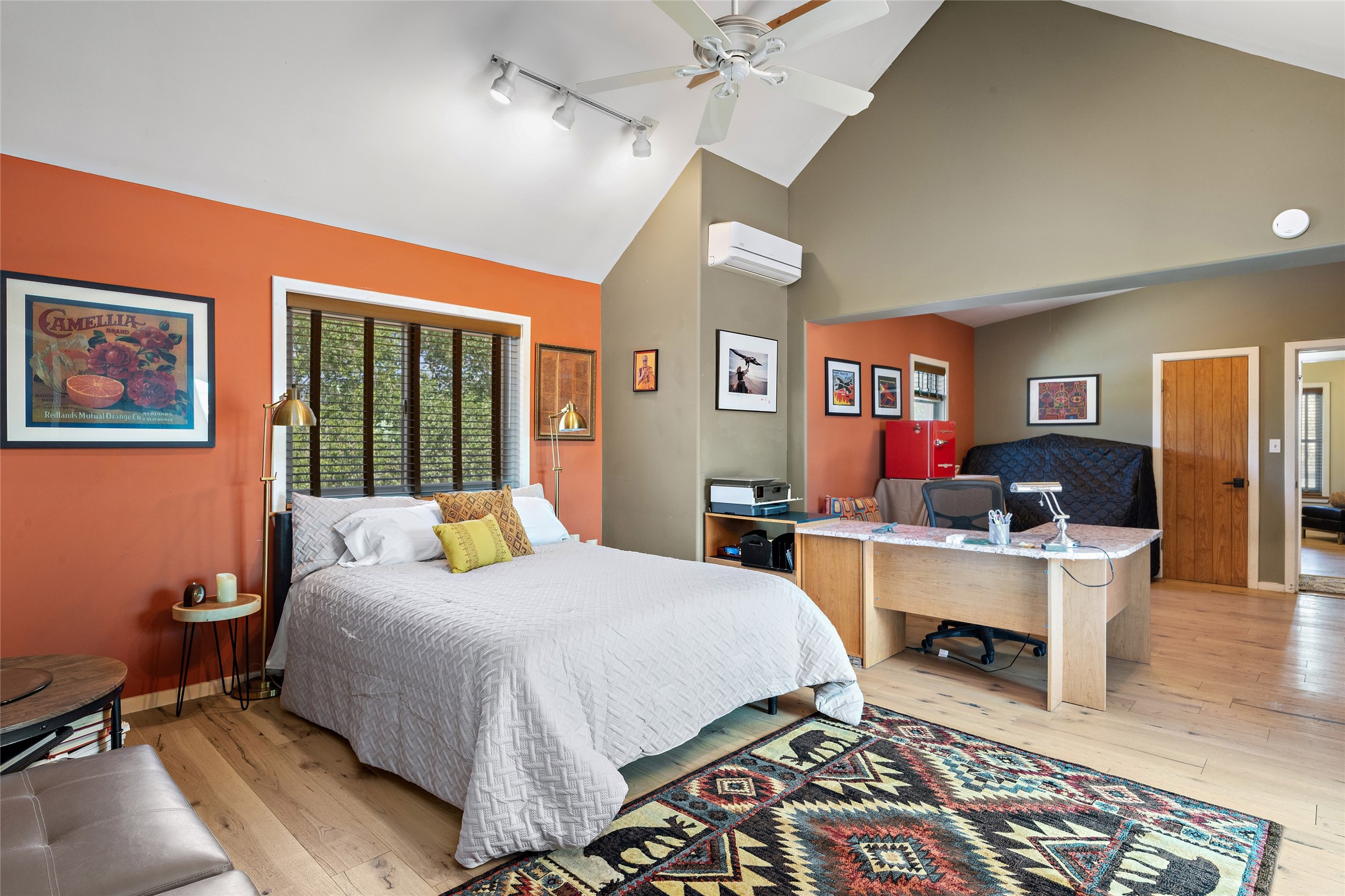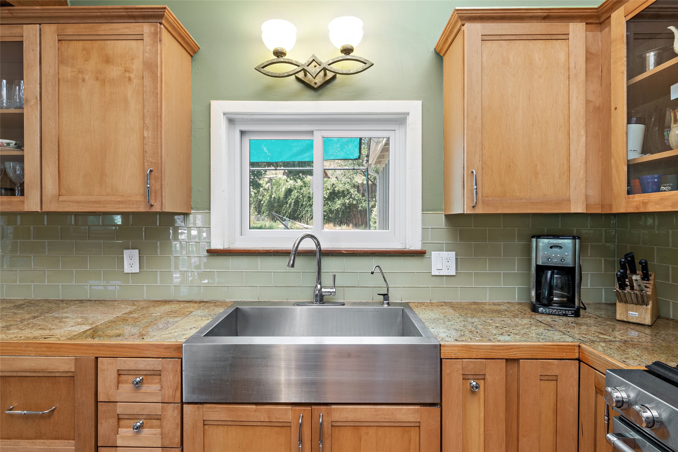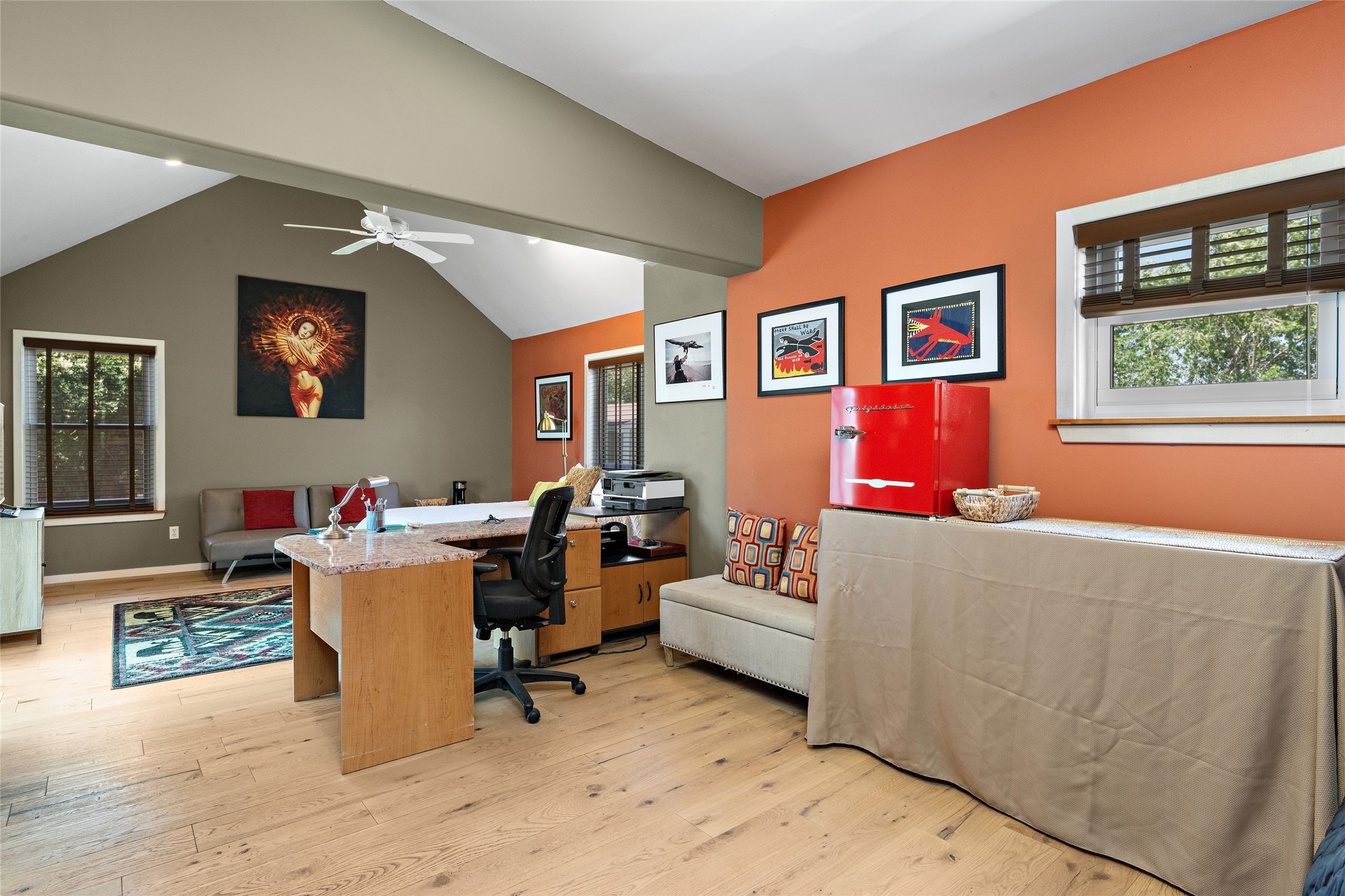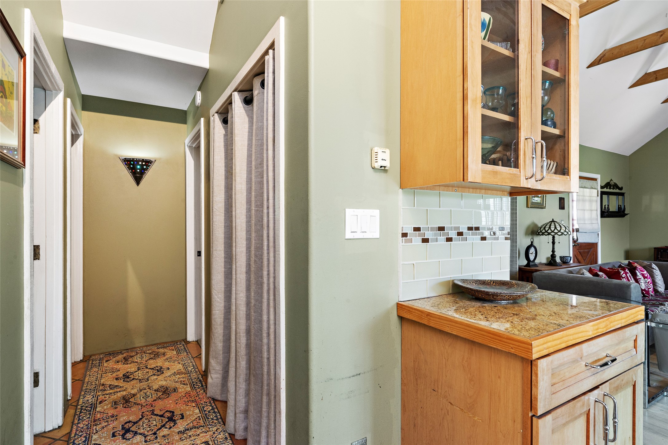 Sitting above the vibrant and historic village of Madrid, this newer home is full of natural light with multiple covered patios, beautifully updated kitchen, and soaring ceilings. Enter through the covered porch with views to the Sangre de Cristos to the open great room with engineered hardwood and Saltillo tile floors, all recently installed. Newer wood stove adds to the warmth of this room open to the kitchen and dining area with access to the two, covered back patios. The kitchen is a cook's dream with amply counter and storage space, stainless steel farm sink, and stunning copper-topped eat-in island. Anderson high-quality windows installed throughout in 2020 all with custom wood blinds. Two back bedrooms, one with office area and walk-in closet and access to the back deck. The yard is fully-fenced with mature landscaping. Fully air conditioned and whole house water filtration system. Furnishings package negotiable. Owner/Broker.