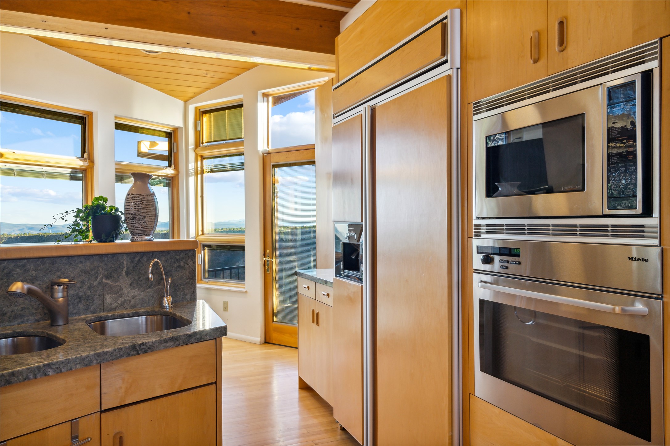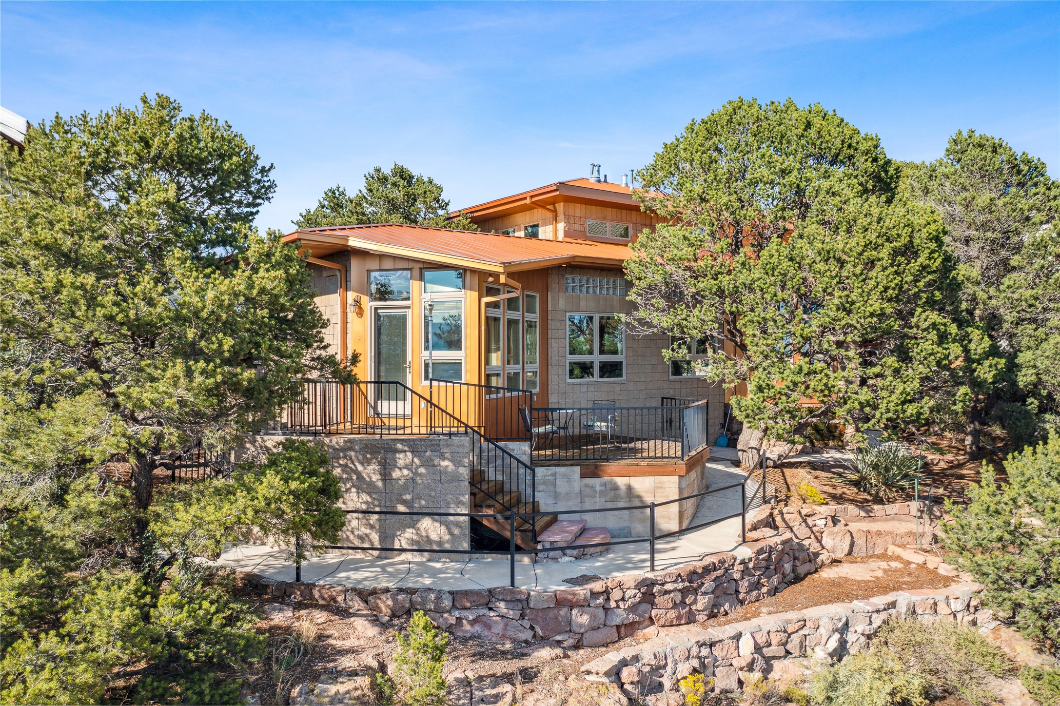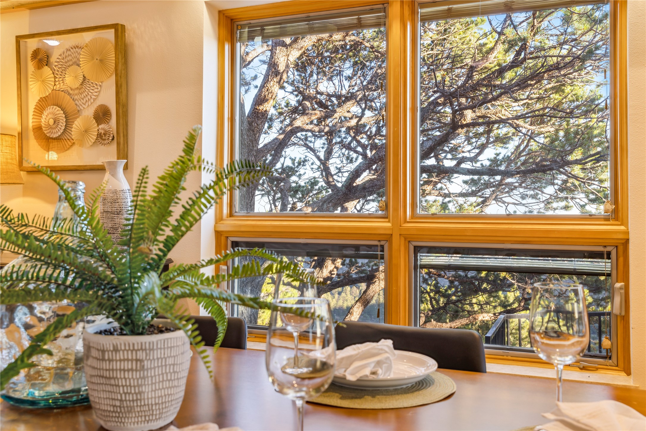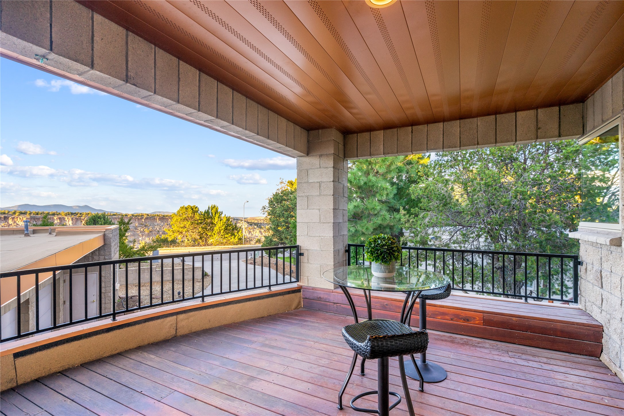 Welcome to your dream home in Los Alamos - a custom-built masterpiece perched on the canyon's rim, offering a unique blend of architectural brilliance and seamless integration into the natural landscape of the neighborhood. This stunning three-bedroom, four-bathroom residence is a rare find, boasting unobstructed views to the north and south and a wealth of luxurious features that make it a true haven for those seeking the pinnacle of comfort and style.Situated on one of the few lots with unrestricted vistas, this home offers a front-row seat to the breathtaking canyons on both sides of Los Pueblos Street. Watch as the colors of the landscape change with the seasons, all from the comfort of your own home.The property is adorned with lush ornamental and fruit trees, creating a tranquil atmosphere that invites relaxation. The soothing sound of a deck-side water feature adds to the ambiance, making it the perfect spot for unwinding after a long day. Automotive aficionados will appreciate the spacious, attached three-car garage, complete with an office and washroom. Whether you're a collector or just need extra storage space, this feature is sure to impress.This home was thoughtfully designed by its original owners and it's now making its debut on the market. Warm wood tones harmonize with the natural light that streams in from all directions, creating an inviting and cozy atmosphere despite its generous size.Multiple living areas and workspaces ensure there's room for everyone to spread out and pursue their passions. The open kitchen is a chef's delight, equipped with stainless steel appliances and natural stone countertops, perfect for entertaining guests.This home offers a unique opportunity to experience luxury living in Los Alamos. Don't miss your chance to make this remarkable property your own. Contact your Realtor today to schedule a private showing and experience the epitome of warmth and elegance on Los Pueblos Street.