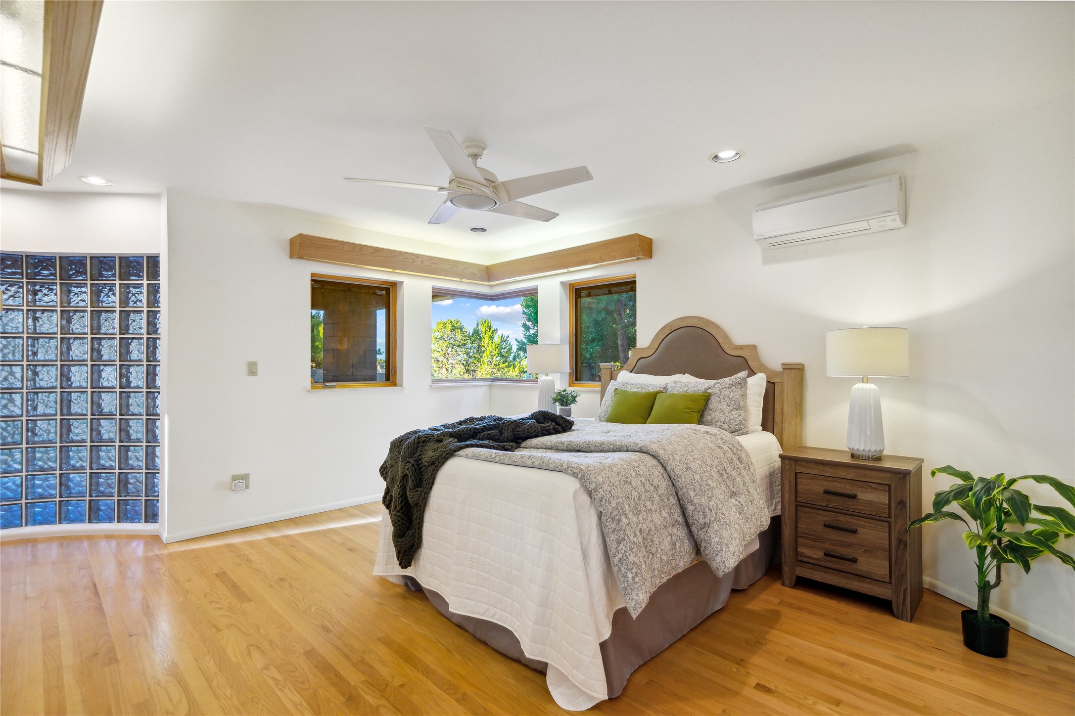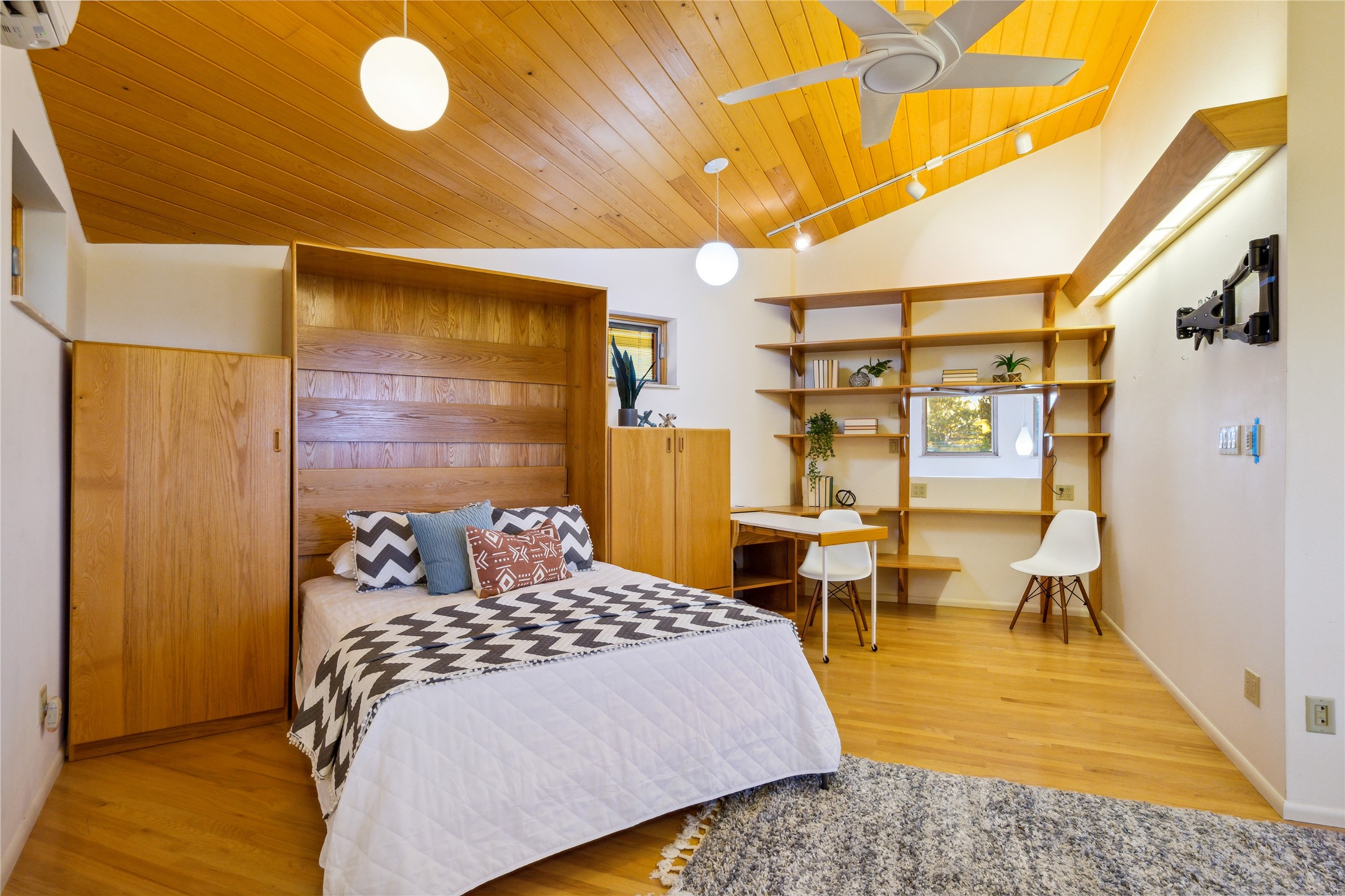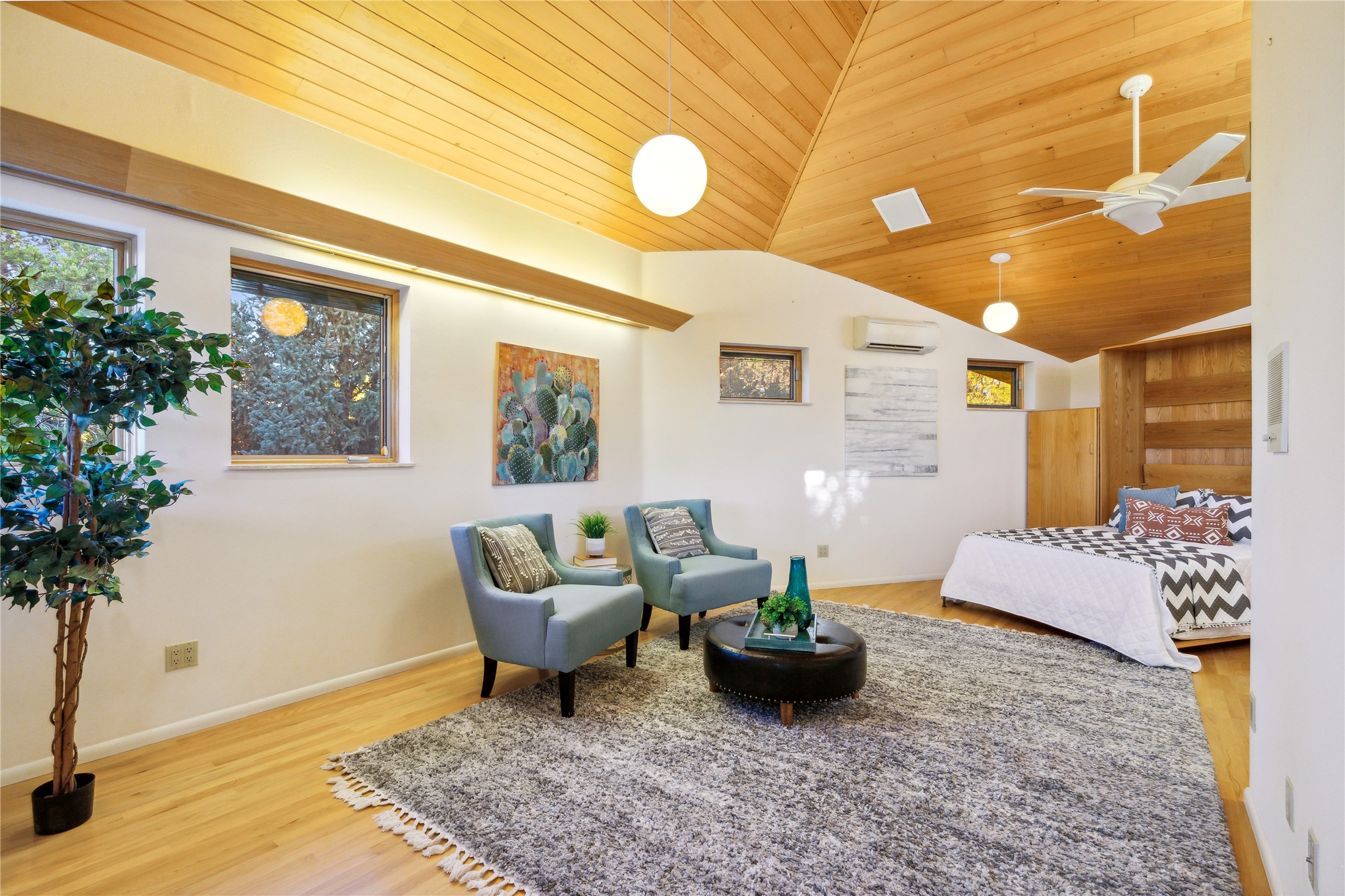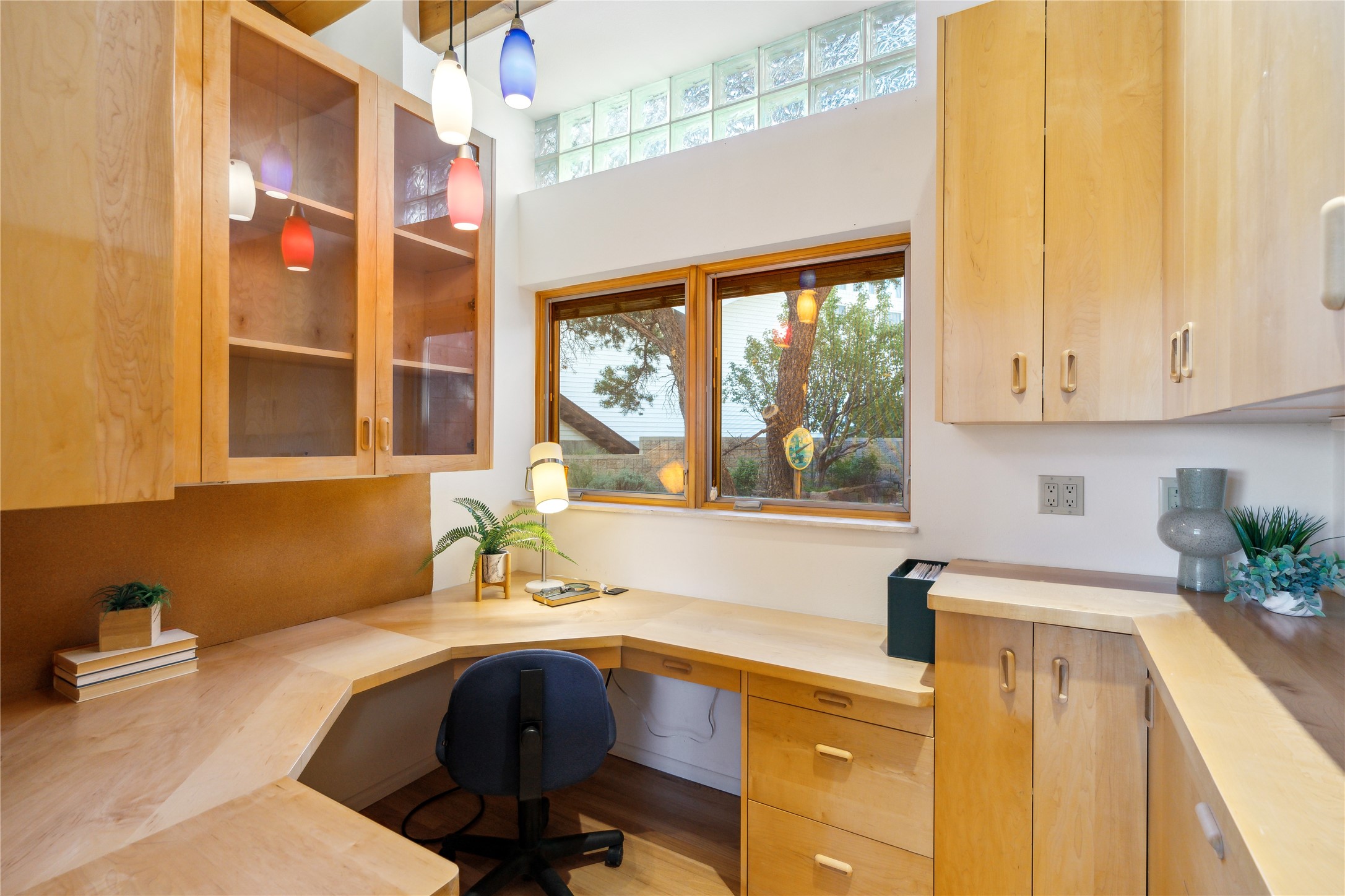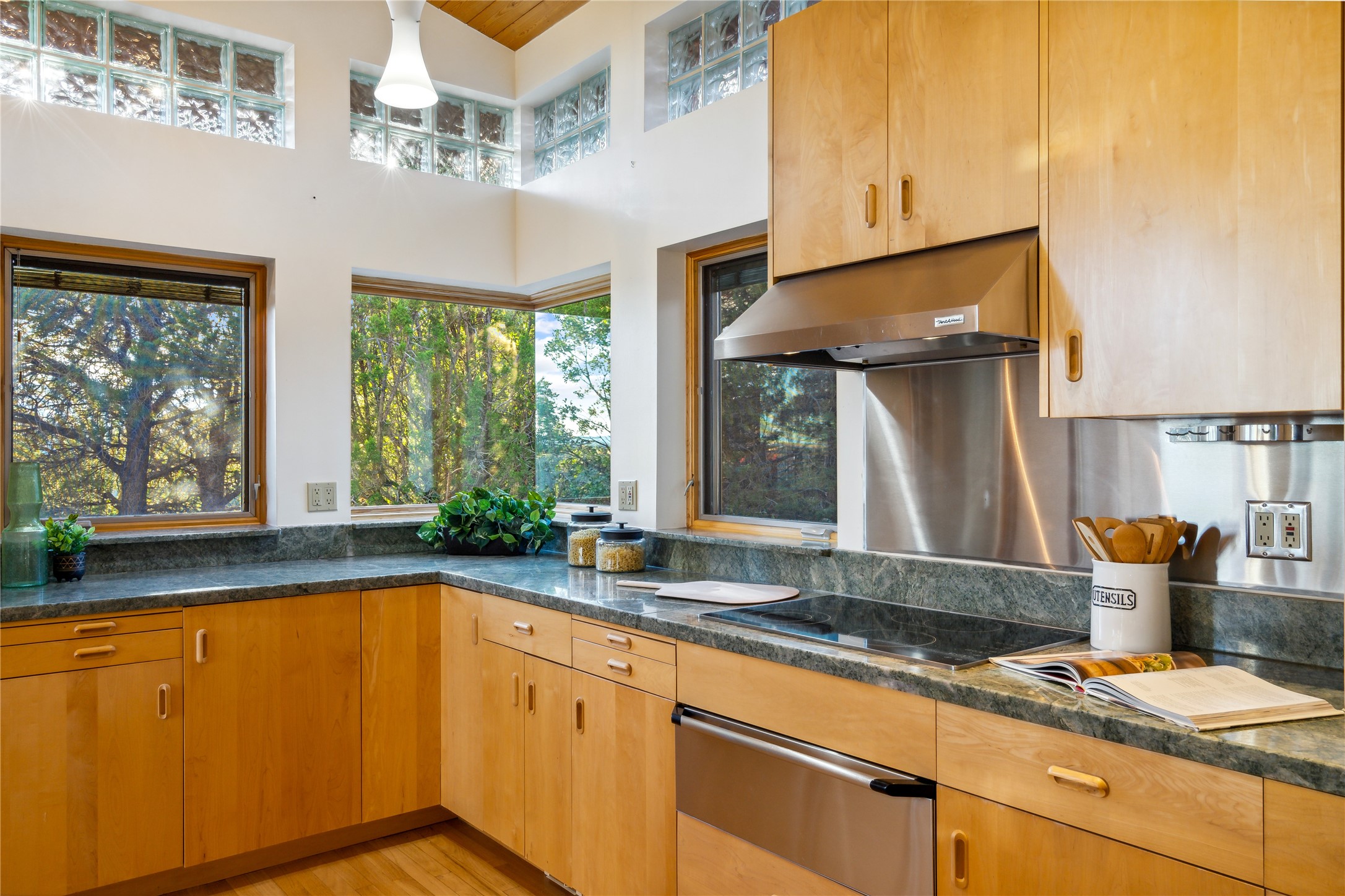 Welcome to your dream home in Los Alamos - a custom-built masterpiece perched on the canyon's rim, offering a unique blend of architectural brilliance and seamless integration into the natural landscape of the neighborhood. This stunning three-bedroom, four-bathroom residence is a rare find, boasting unobstructed views to the north and south and a wealth of luxurious features that make it a true haven for those seeking the pinnacle of comfort and style.Situated on one of the few lots with unrestricted vistas, this home offers a front-row seat to the breathtaking canyons on both sides of Los Pueblos Street. Watch as the colors of the landscape change with the seasons, all from the comfort of your own home.The property is adorned with lush ornamental and fruit trees, creating a tranquil atmosphere that invites relaxation. The soothing sound of a deck-side water feature adds to the ambiance, making it the perfect spot for unwinding after a long day. Automotive aficionados will appreciate the spacious, attached three-car garage, complete with an office and washroom. Whether you're a collector or just need extra storage space, this feature is sure to impress.This home was thoughtfully designed by its original owners and it's now making its debut on the market. Warm wood tones harmonize with the natural light that streams in from all directions, creating an inviting and cozy atmosphere despite its generous size.Multiple living areas and workspaces ensure there's room for everyone to spread out and pursue their passions. The open kitchen is a chef's delight, equipped with stainless steel appliances and natural stone countertops, perfect for entertaining guests.This home offers a unique opportunity to experience luxury living in Los Alamos. Don't miss your chance to make this remarkable property your own. Contact your Realtor today to schedule a private showing and experience the epitome of warmth and elegance on Los Pueblos Street.