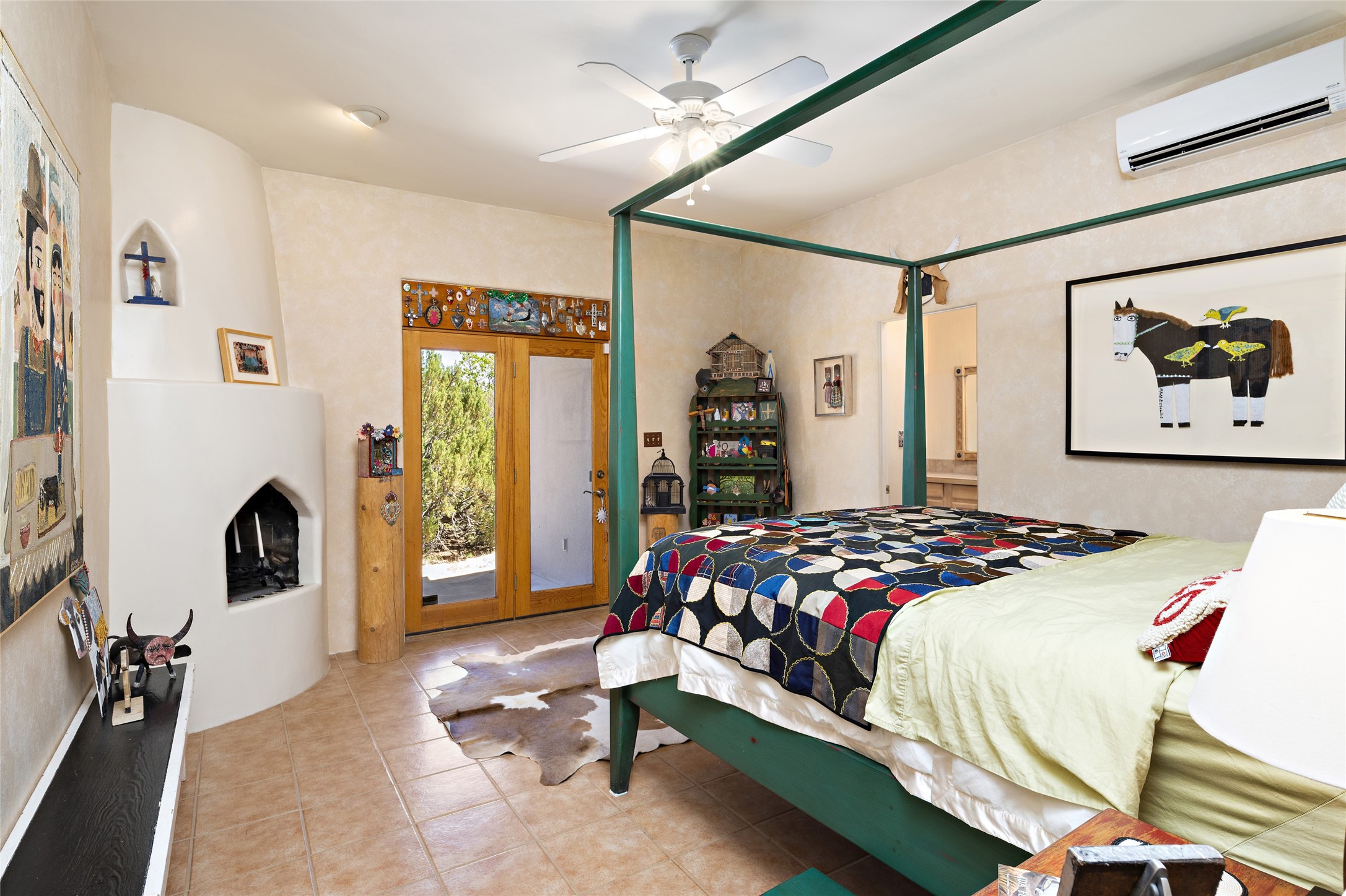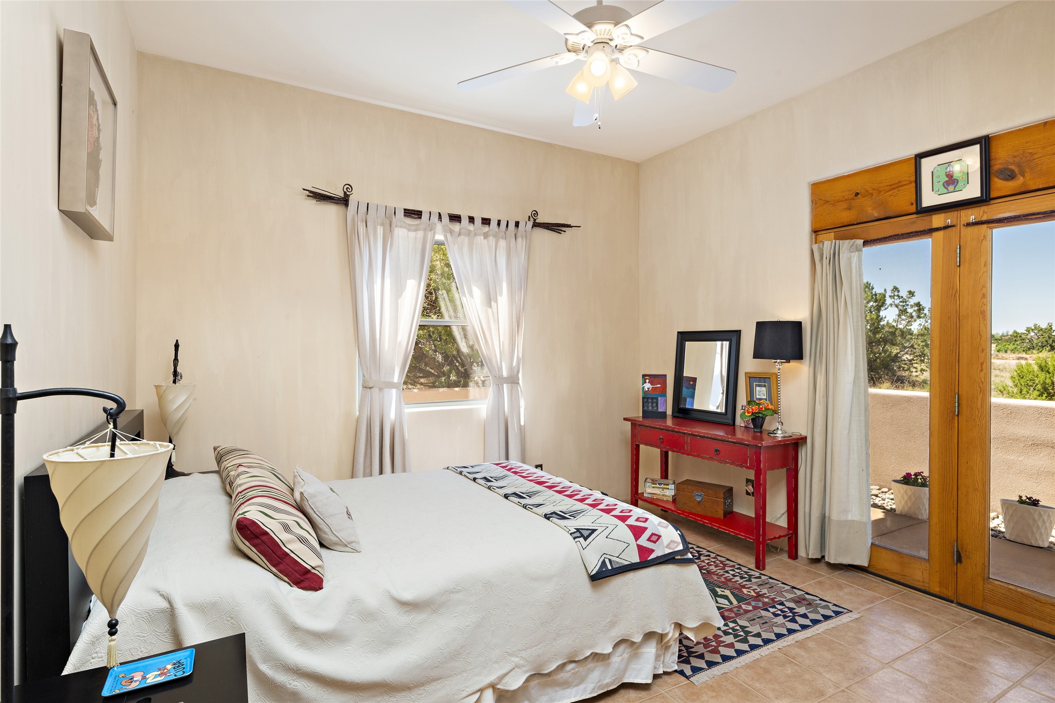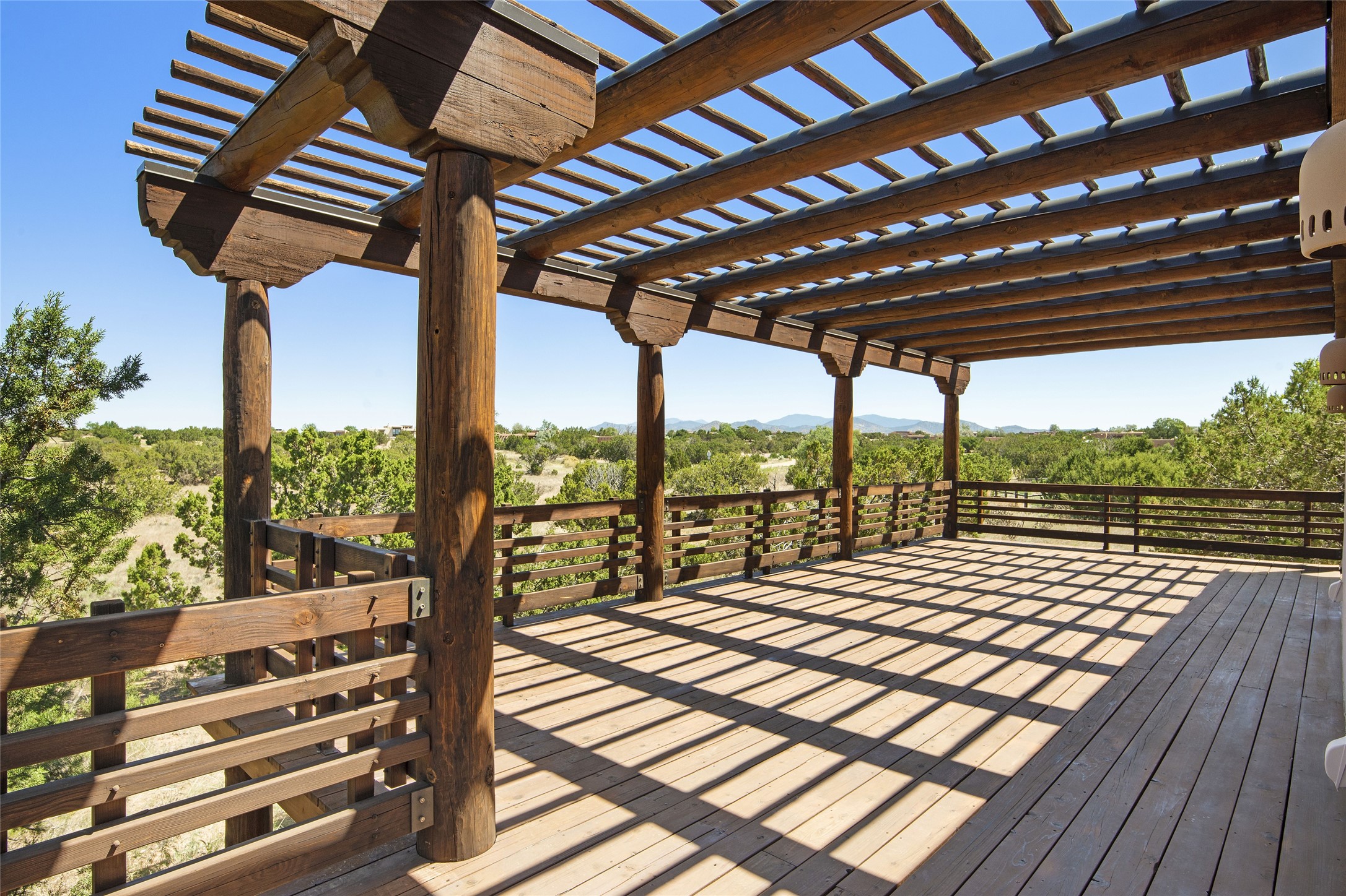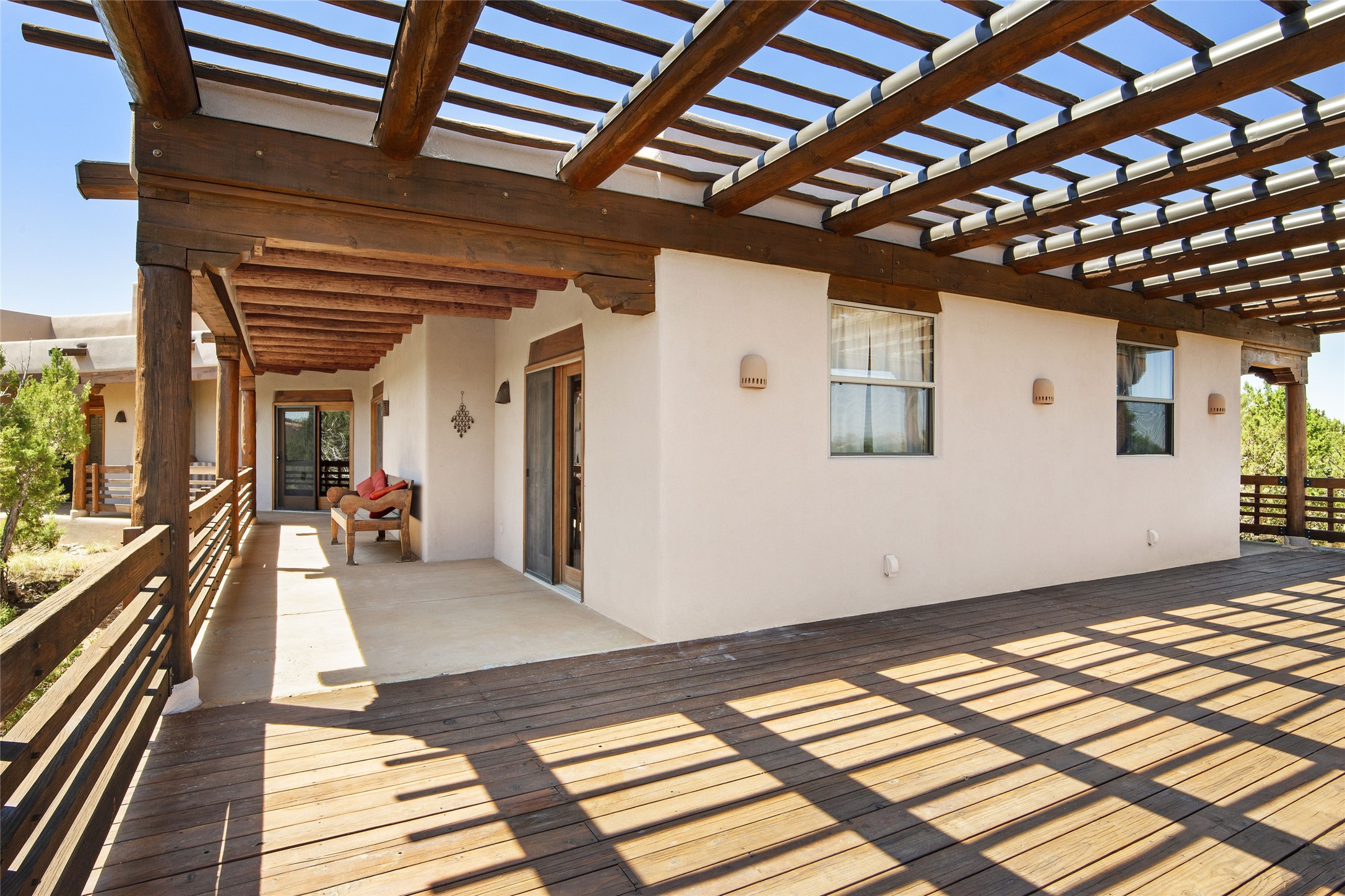 Beautiful custom Eldorado home on a cul-de-sac with separate working artist studio and mountain and foothill views! ***This home has been reduced 95K due to the presence of Kitec in the walls and the radiant heat tubing. Original price 870K. Estimate for $62,754 is in the supplements from Reliable-Tech to replumb and install 5 more splits - two already exist.*** The remaining 27K+ should cover drywall repairs. ***This single-level property has in-floor natural gas radiant heat and mini-splits in the primary bedroom and studio for air conditioning. Dramatic high viga ceilings in spacious living room. Three wood burning kiva fireplaces - primary bedroom, living room and rear covered portal. This happy and sunny home has a deck and covered portal surrounding 2/3 of the home and overlooks the greenbelt with amazing sunset views. Kitchen opens to dining area and has it's own breakfast area and lots of counter space and storage. Primary bedroom has walk-in closet and separate bathtub and shower. Each of the 4 bedrooms has exterior access. New modified bitumen roof 2018 with 10-year warranty. New STO stucco 2018 with 7-year warranty. Deck refinished last summer. Each bedroom has exterior access. NO STEPS, NO CARPET. Proper laundry room with storge. Finished oversized 2-car garage. Custom-made vanities above bath sinks all convey. Property has a Leak Defense System to alert owner to any unusual water usage. Items which do not convey - two lights over dining table and entry light.