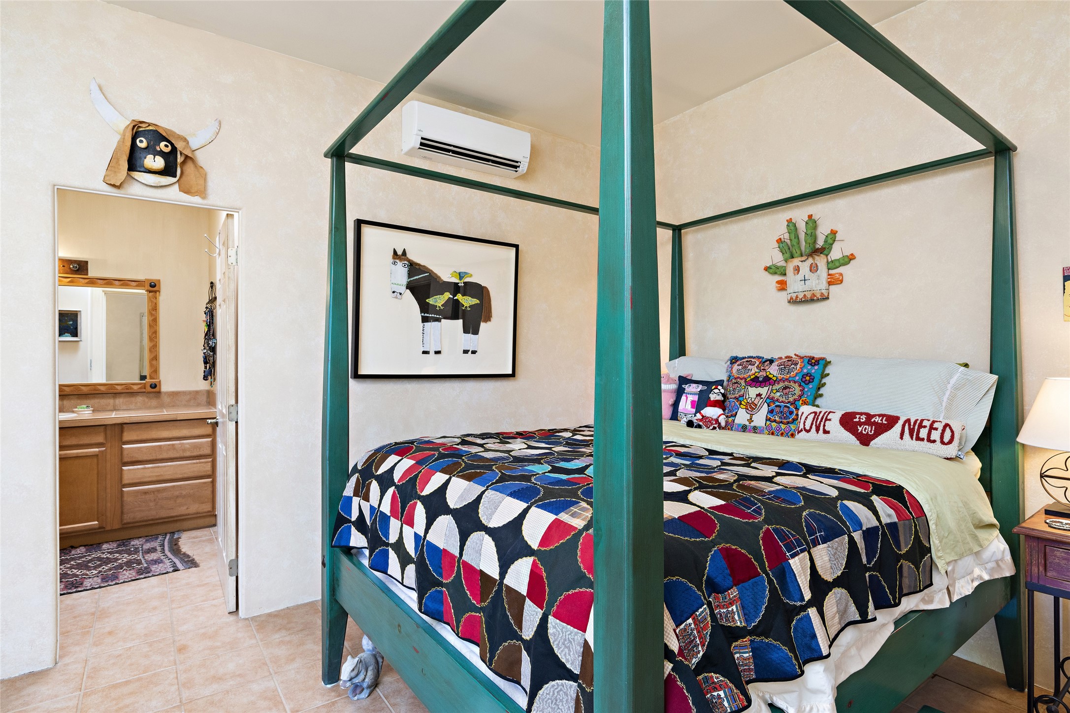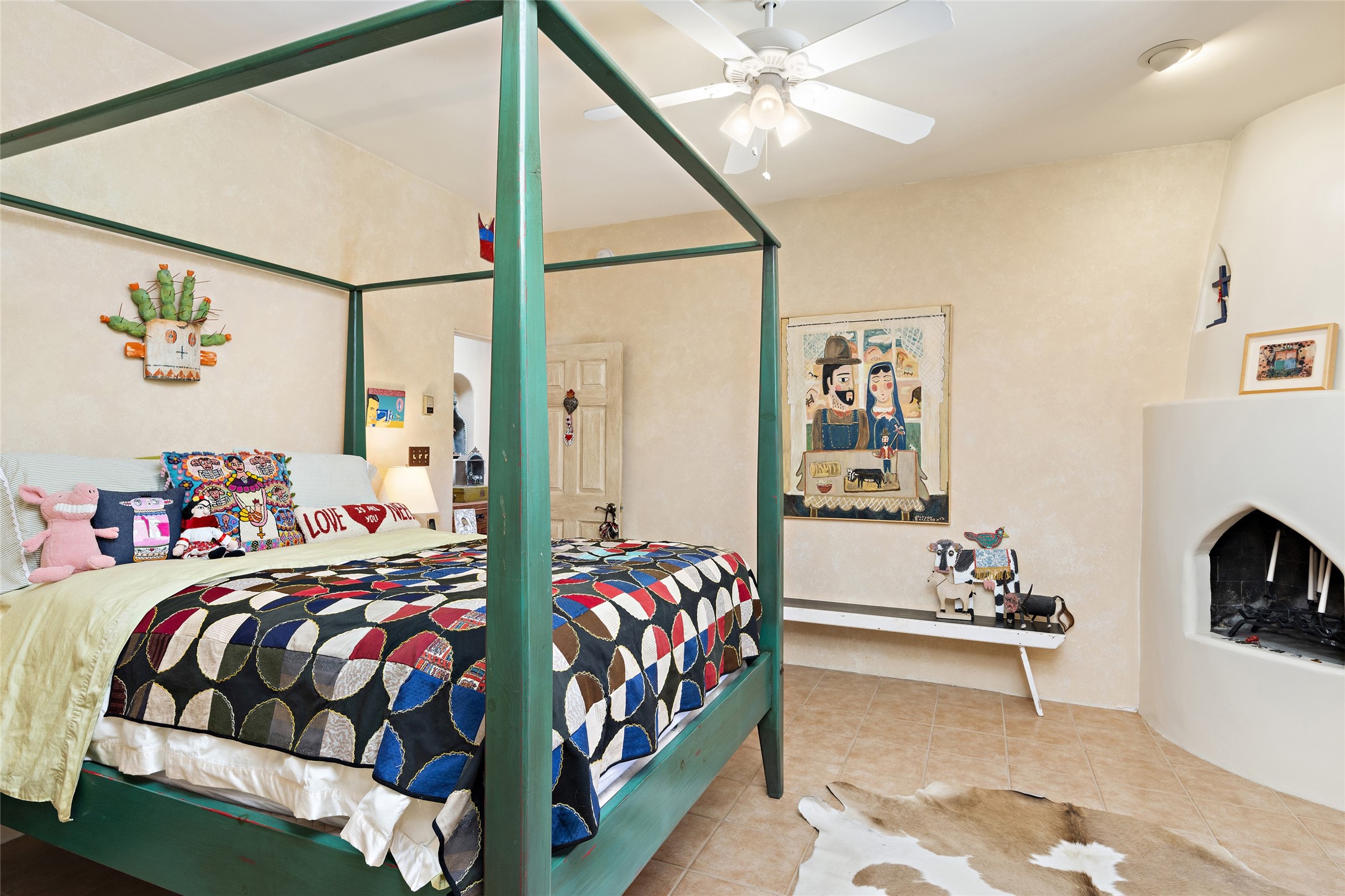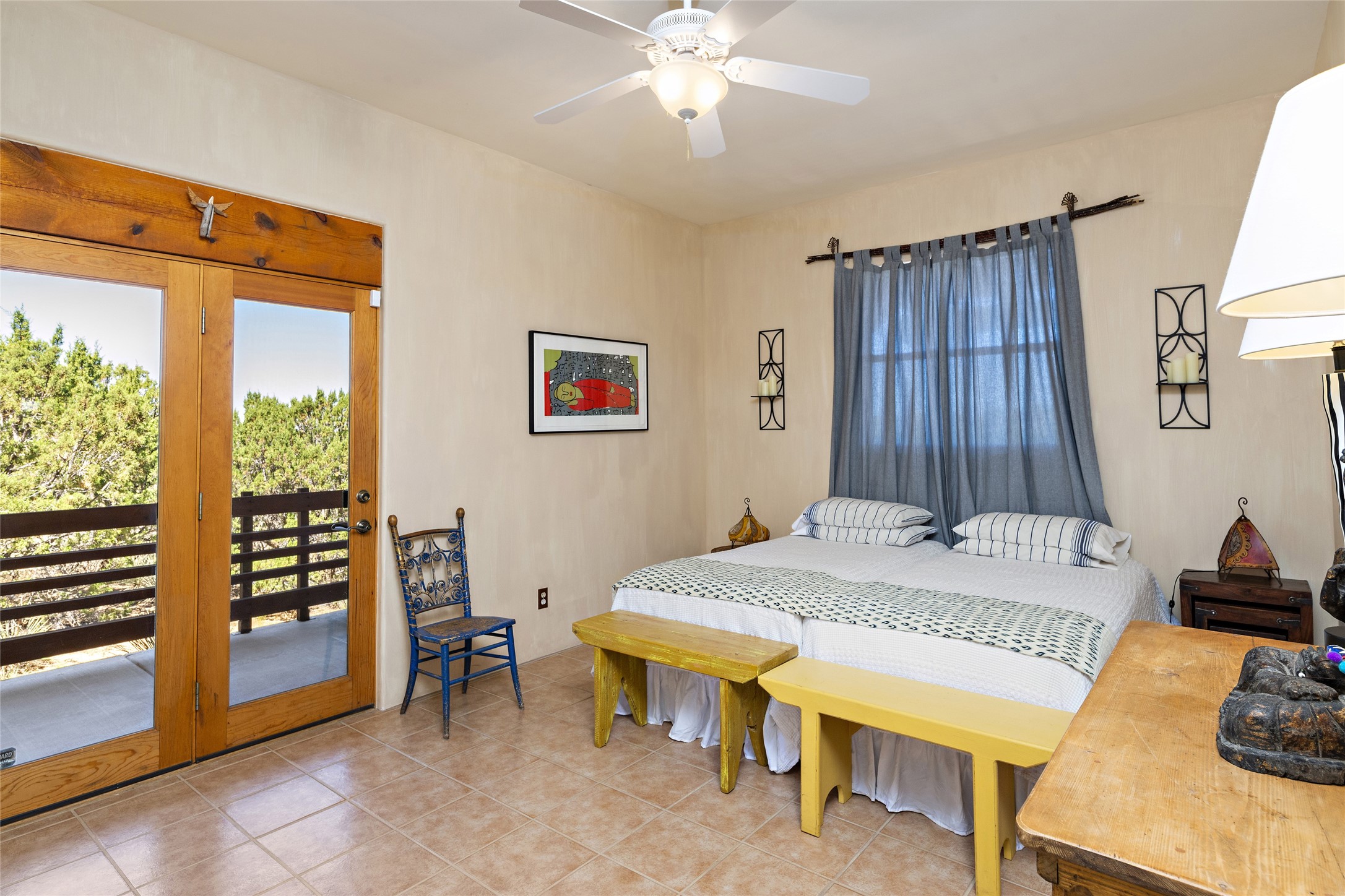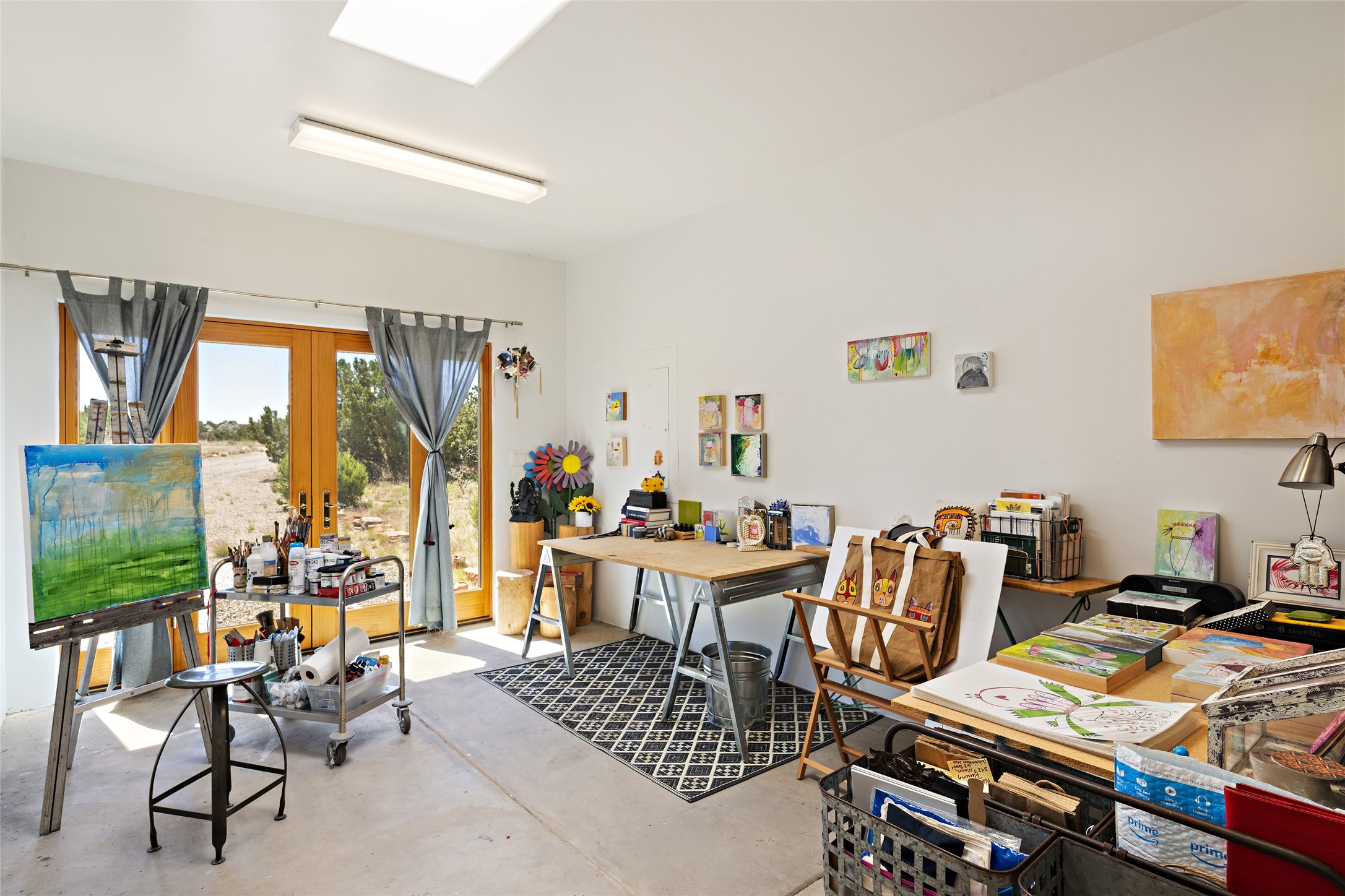 Beautiful custom Eldorado home on a cul-de-sac with separate working artist studio and mountain and foothill views! ***This home has been reduced 95K due to the presence of Kitec in the walls and the radiant heat tubing. Original price 870K. Estimate for $62,754 is in the supplements from Reliable-Tech to replumb and install 5 more splits - two already exist.*** The remaining 27K+ should cover drywall repairs. ***This single-level property has in-floor natural gas radiant heat and mini-splits in the primary bedroom and studio for air conditioning. Dramatic high viga ceilings in spacious living room. Three wood burning kiva fireplaces - primary bedroom, living room and rear covered portal. This happy and sunny home has a deck and covered portal surrounding 2/3 of the home and overlooks the greenbelt with amazing sunset views. Kitchen opens to dining area and has it's own breakfast area and lots of counter space and storage. Primary bedroom has walk-in closet and separate bathtub and shower. Each of the 4 bedrooms has exterior access. New modified bitumen roof 2018 with 10-year warranty. New STO stucco 2018 with 7-year warranty. Deck refinished last summer. Each bedroom has exterior access. NO STEPS, NO CARPET. Proper laundry room with storge. Finished oversized 2-car garage. Custom-made vanities above bath sinks all convey. Property has a Leak Defense System to alert owner to any unusual water usage. Items which do not convey - two lights over dining table and entry light.