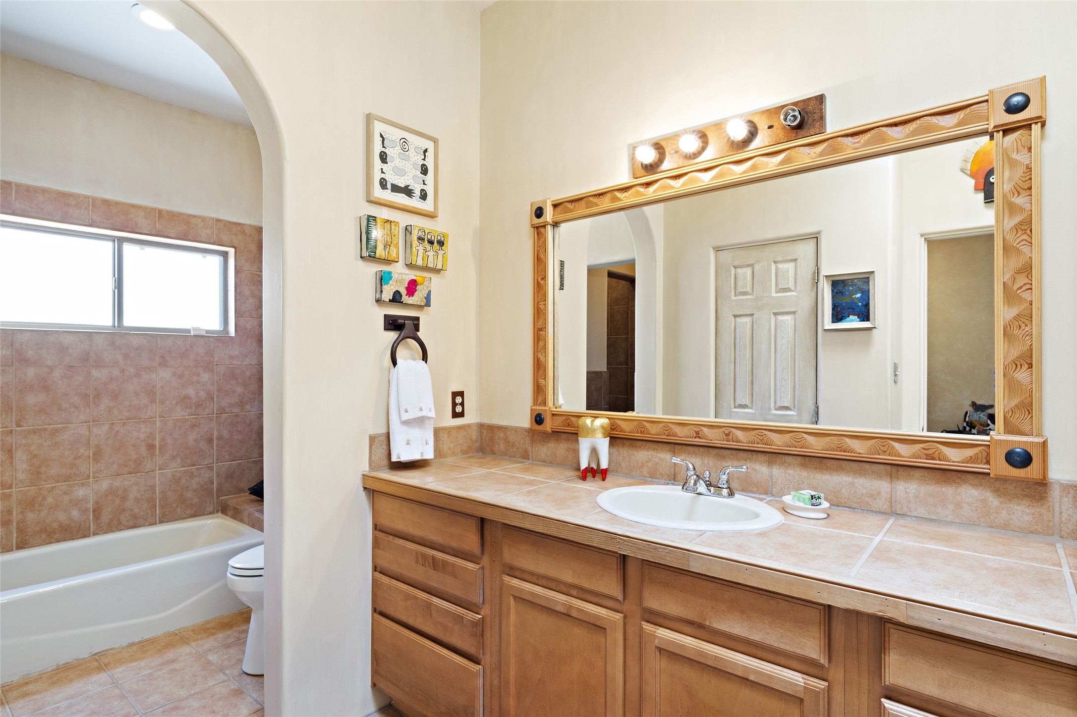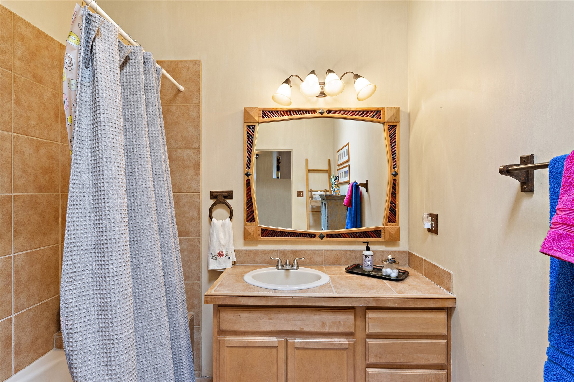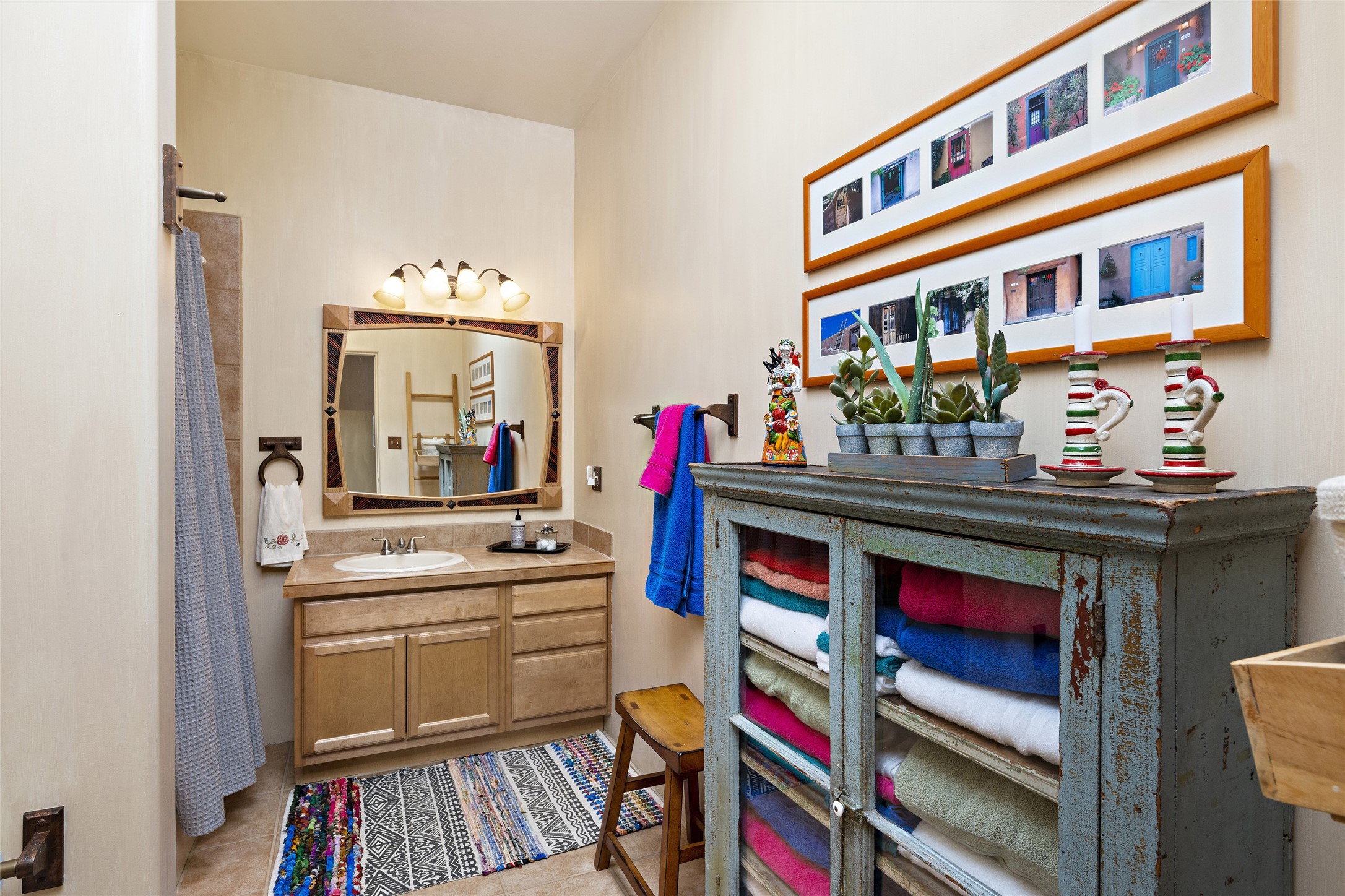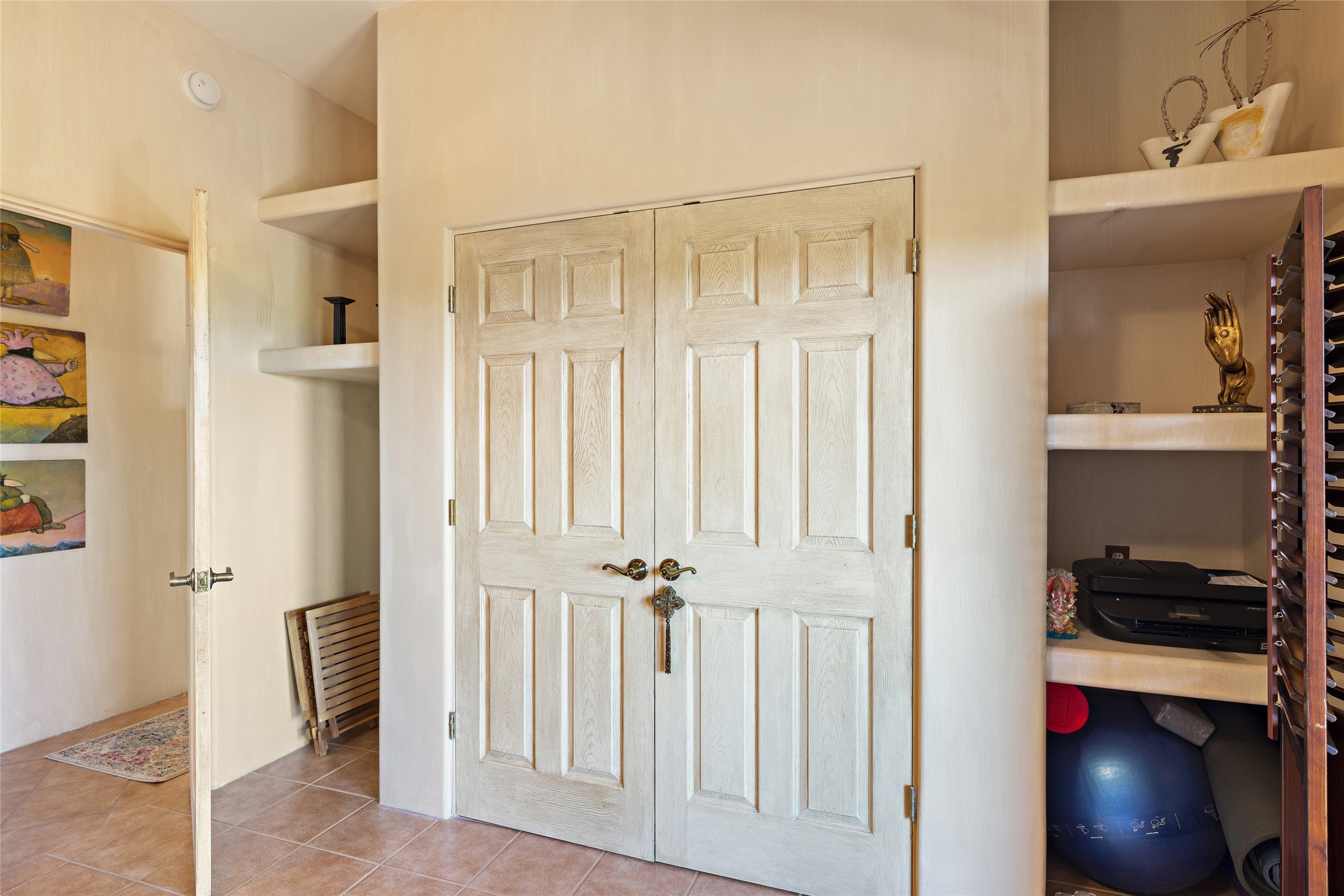 Beautiful custom Eldorado home on a cul-de-sac with separate working artist studio and mountain and foothill views! ***This home has been reduced 95K due to the presence of Kitec in the walls and the radiant heat tubing. Original price 870K. Estimate for $62,754 is in the supplements from Reliable-Tech to replumb and install 5 more splits - two already exist.*** The remaining 27K+ should cover drywall repairs. ***This single-level property has in-floor natural gas radiant heat and mini-splits in the primary bedroom and studio for air conditioning. Dramatic high viga ceilings in spacious living room. Three wood burning kiva fireplaces - primary bedroom, living room and rear covered portal. This happy and sunny home has a deck and covered portal surrounding 2/3 of the home and overlooks the greenbelt with amazing sunset views. Kitchen opens to dining area and has it's own breakfast area and lots of counter space and storage. Primary bedroom has walk-in closet and separate bathtub and shower. Each of the 4 bedrooms has exterior access. New modified bitumen roof 2018 with 10-year warranty. New STO stucco 2018 with 7-year warranty. Deck refinished last summer. Each bedroom has exterior access. NO STEPS, NO CARPET. Proper laundry room with storge. Finished oversized 2-car garage. Custom-made vanities above bath sinks all convey. Property has a Leak Defense System to alert owner to any unusual water usage. Items which do not convey - two lights over dining table and entry light.