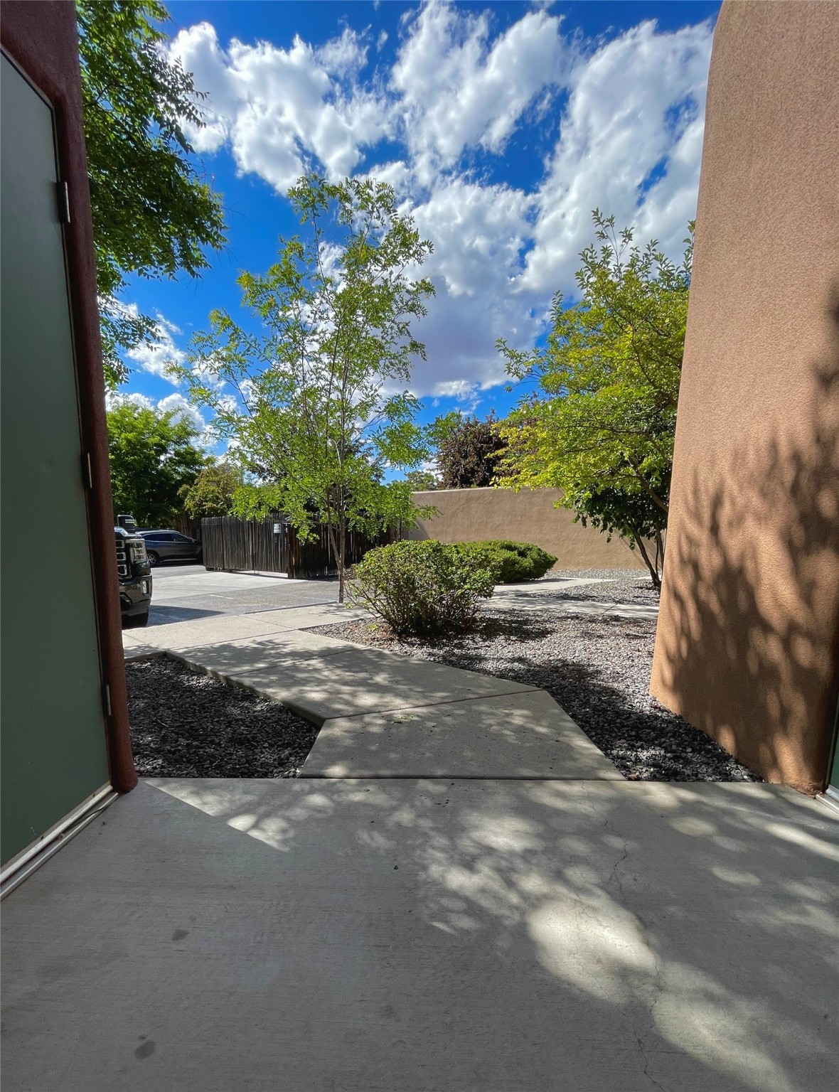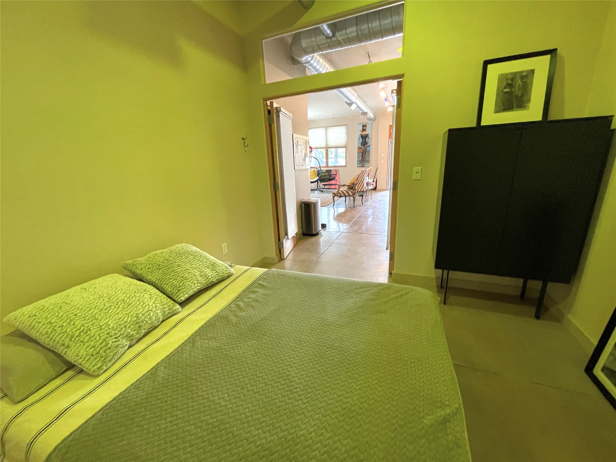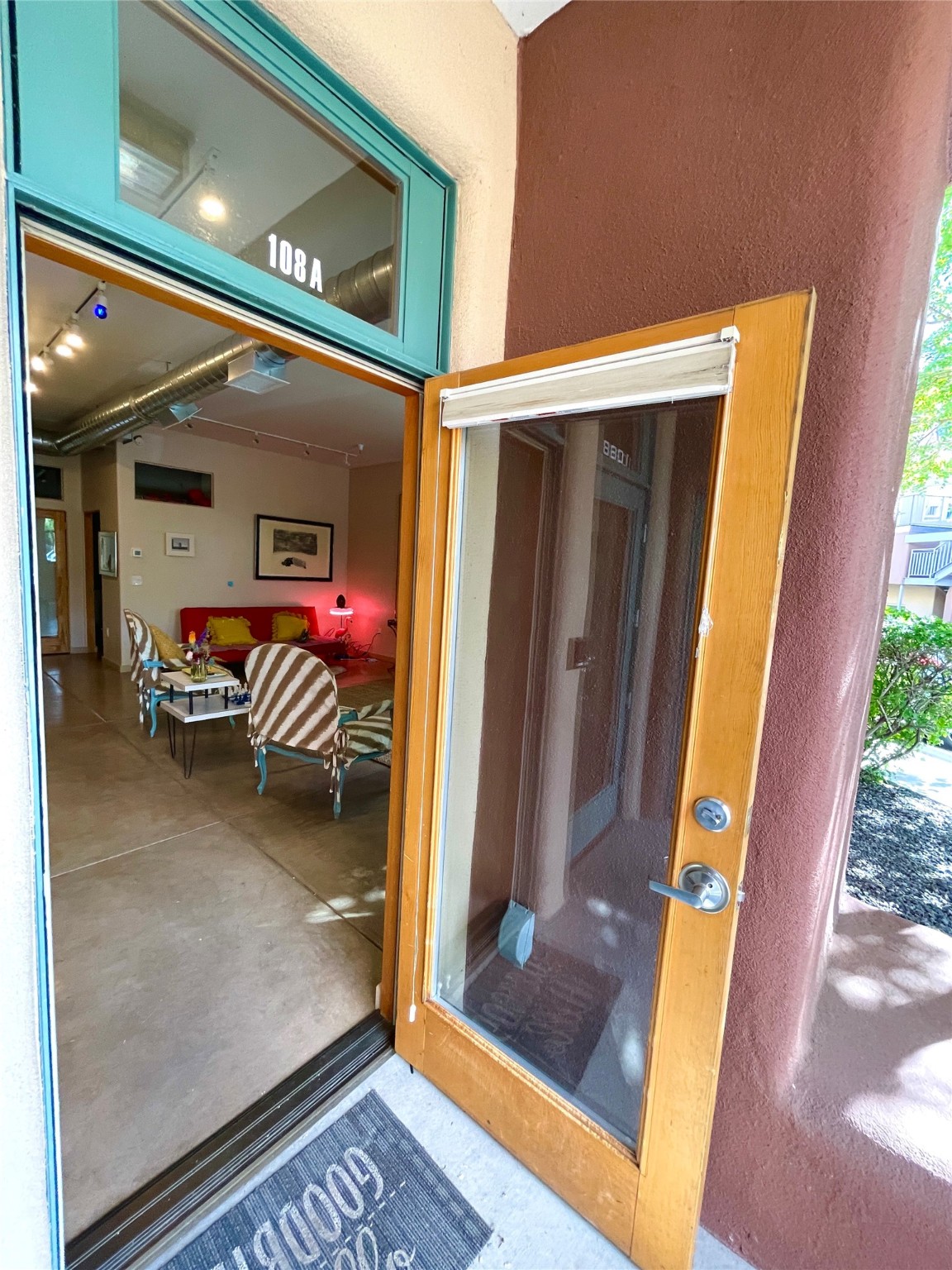 Stylish pied-a-terre, short term weekly rental, live /work, lock and leave, or a Santa Fe Rail Yard home. Quiet, end ground unit with high ceilings, lots of light, and a sense of privacy. Fantastic location.
