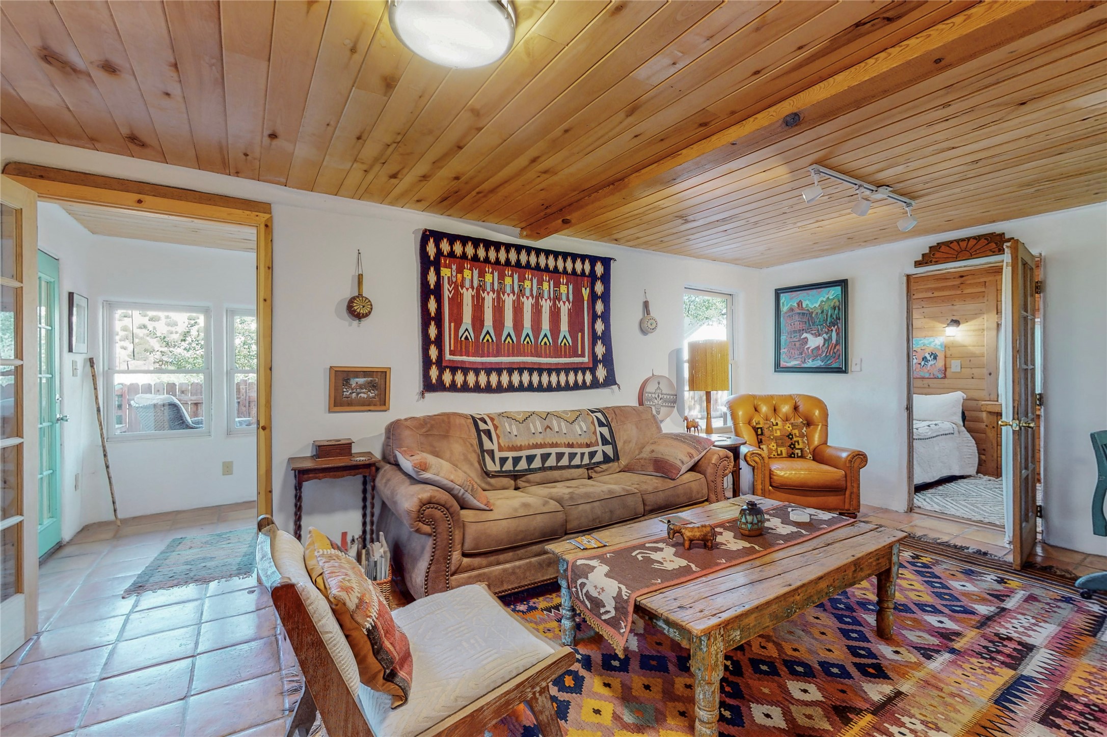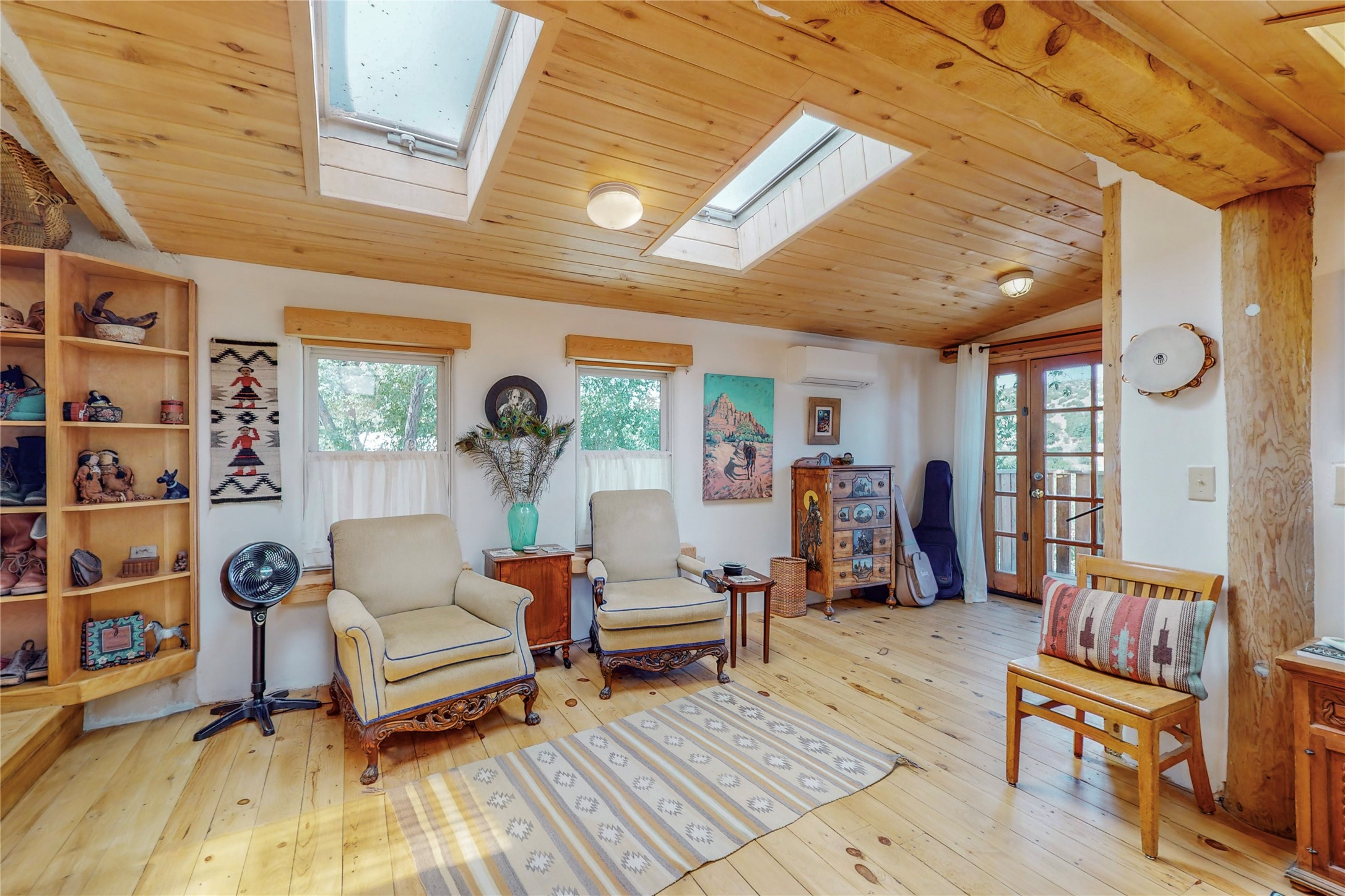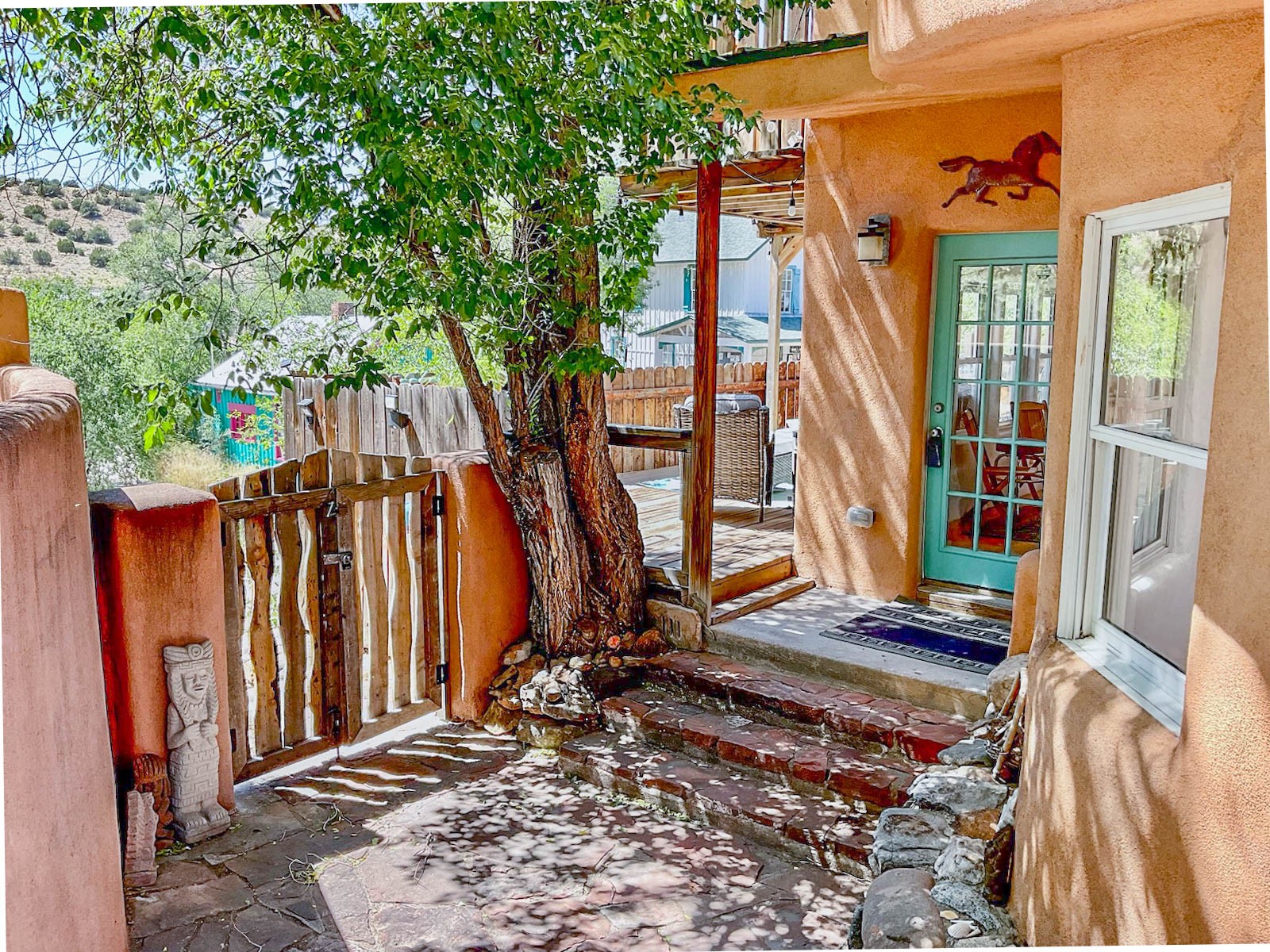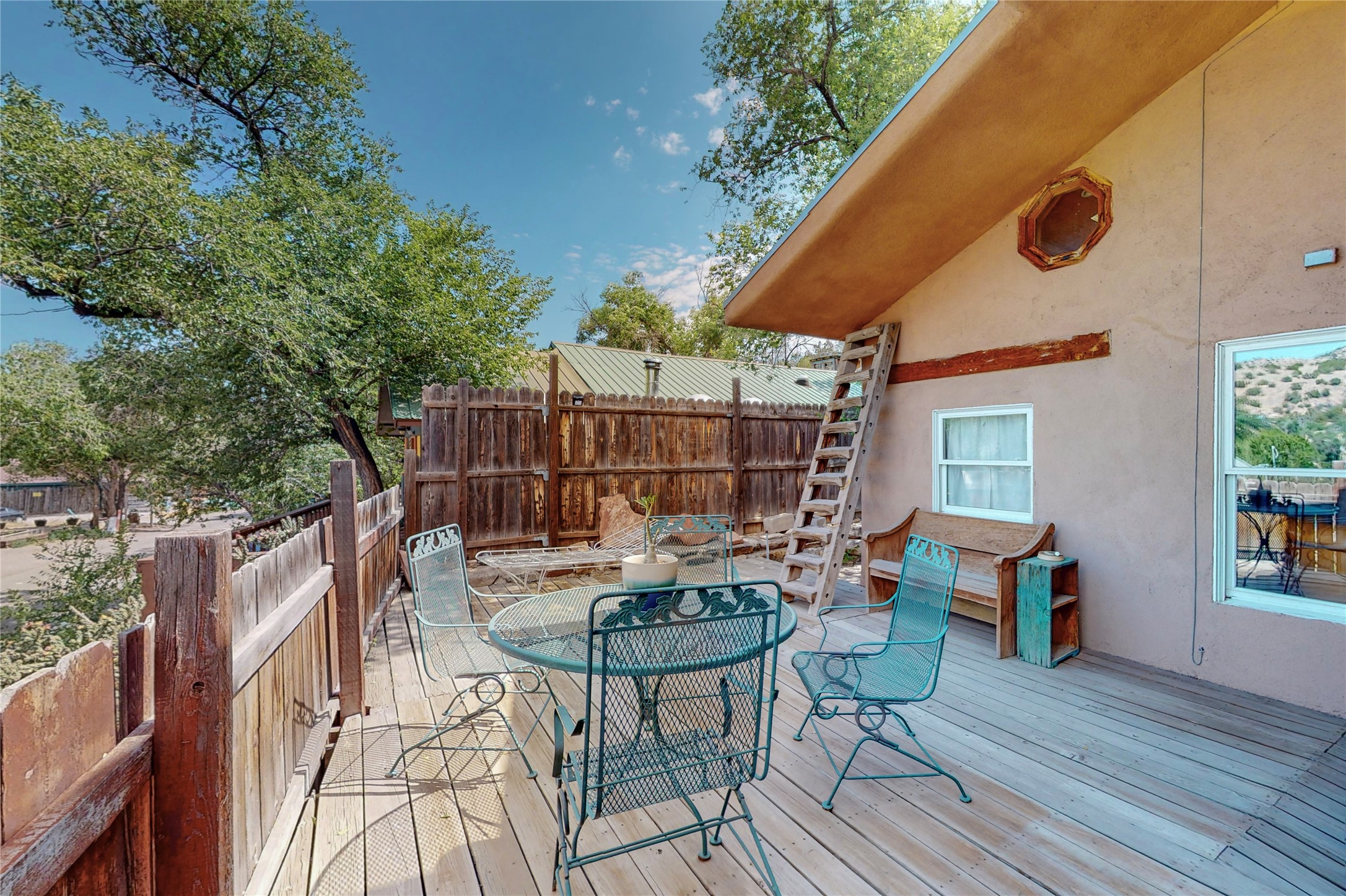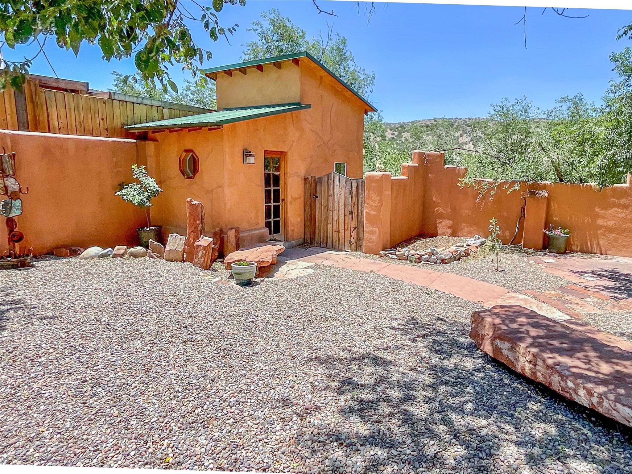 What an incredible find! This beautiful Madrid home is an artist's dream, offering both residential and commercial potential on two side by side lots. The charming home sits up high, right on the Turquoise Trail. The large deck out front offers great entertainment potential with wonderful views and lots of privacy. This home offers an open floorplan, including a large kitchen, a bedroom and office downstairs, and a large master suite with a walk in closet upstairs. There is plenty of natural light, as well as a whole home water filtration system, including reverse osmosis under the kitchen sink. The large side yard is tastefully landscaped and has a small outbuilding, perfect for an artist studio or gallery. Access and offstreet parking is available off of Ice House Rd.