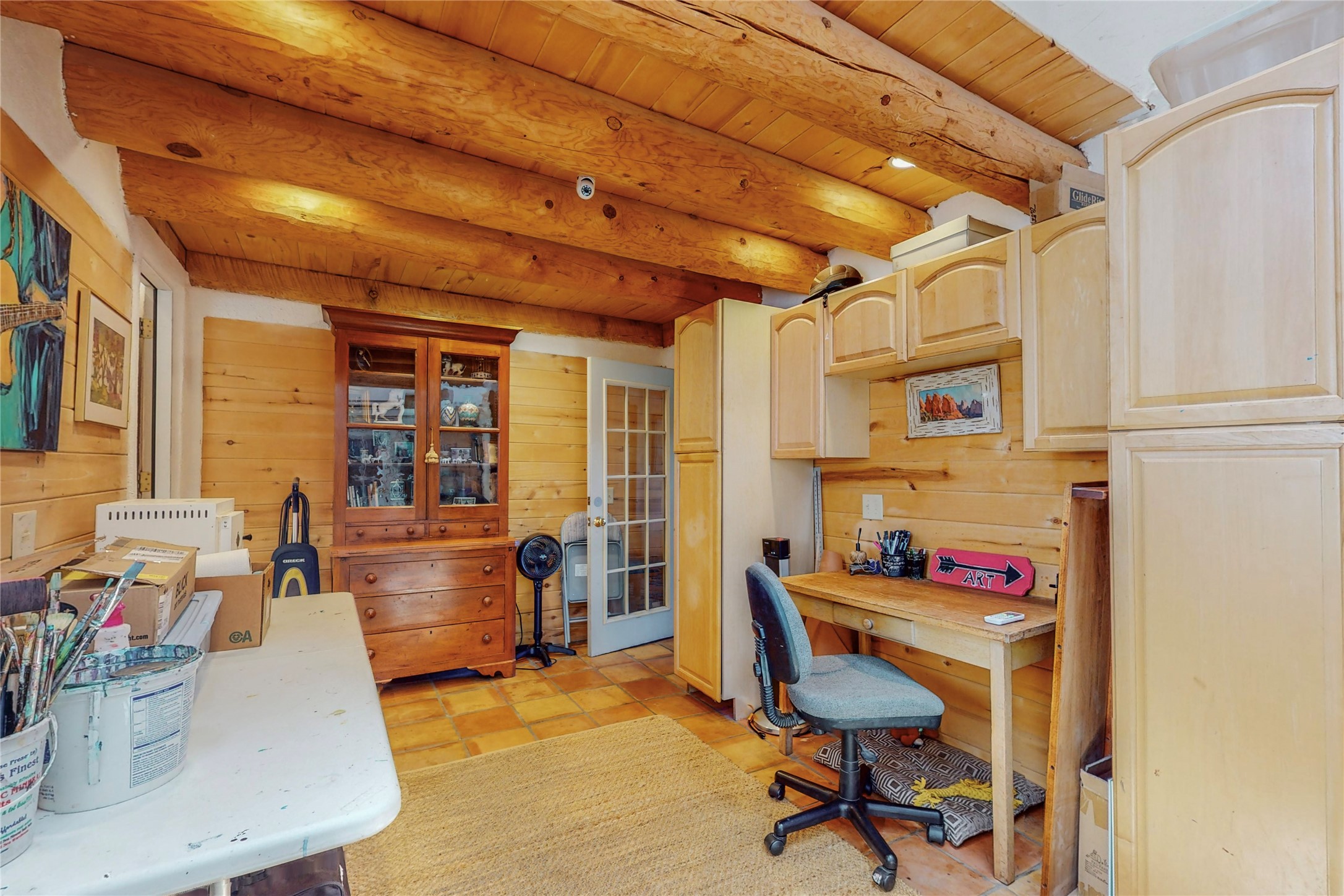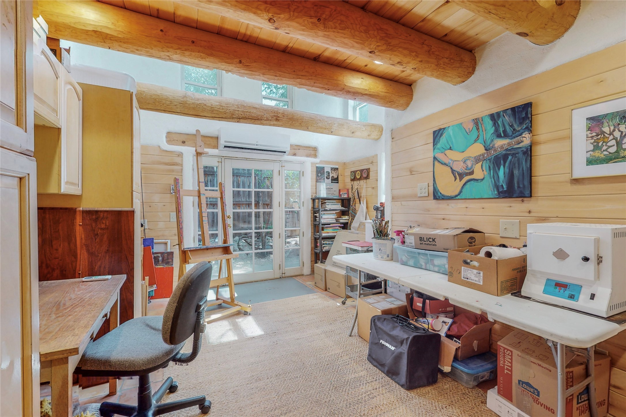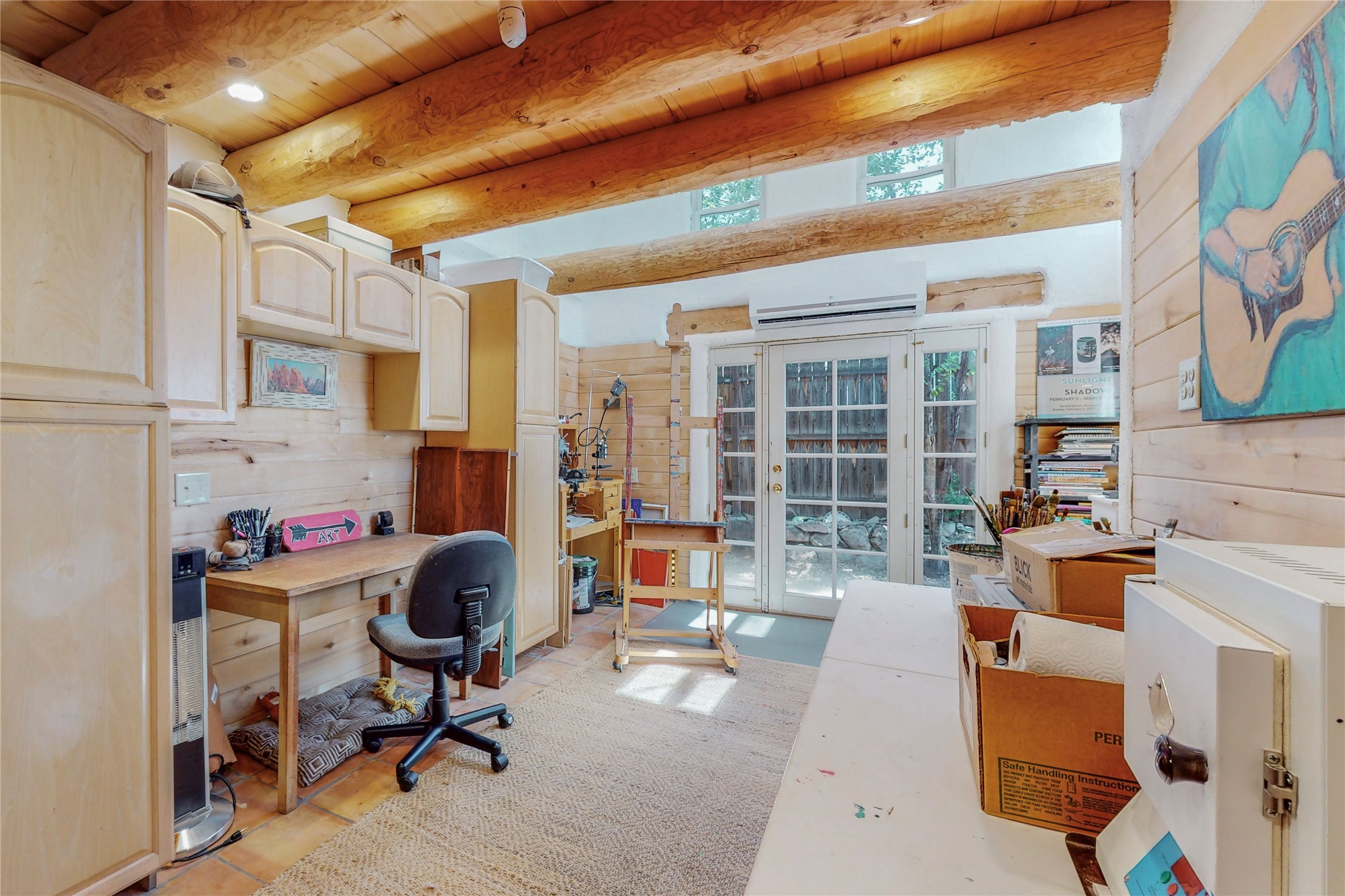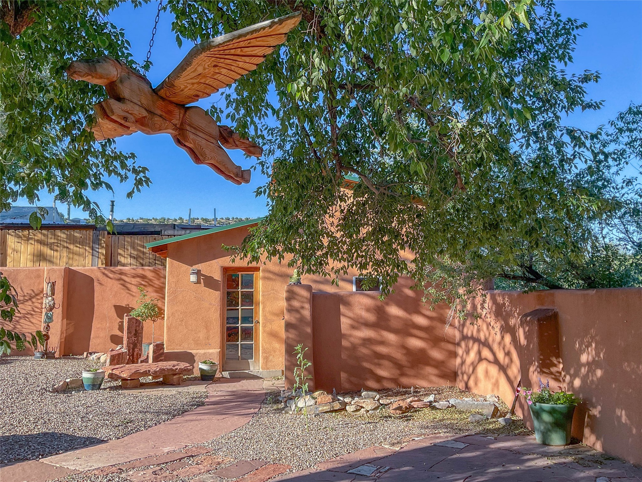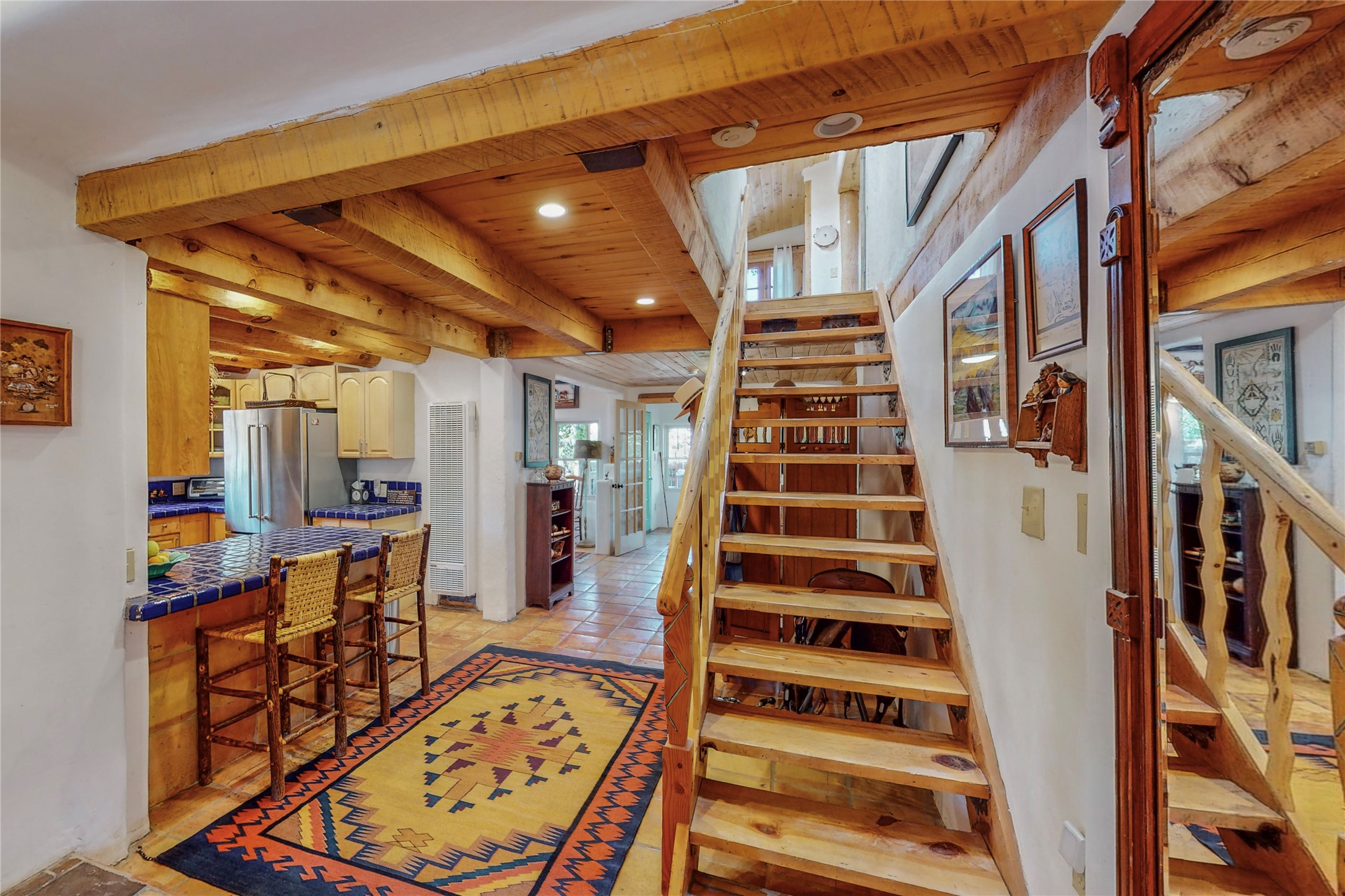 What an incredible find! This beautiful Madrid home is an artist's dream, offering both residential and commercial potential on two side by side lots. The charming home sits up high, right on the Turquoise Trail. The large deck out front offers great entertainment potential with wonderful views and lots of privacy. This home offers an open floorplan, including a large kitchen, a bedroom and office downstairs, and a large master suite with a walk in closet upstairs. There is plenty of natural light, as well as a whole home water filtration system, including reverse osmosis under the kitchen sink. The large side yard is tastefully landscaped and has a small outbuilding, perfect for an artist studio or gallery. Access and offstreet parking is available off of Ice House Rd.