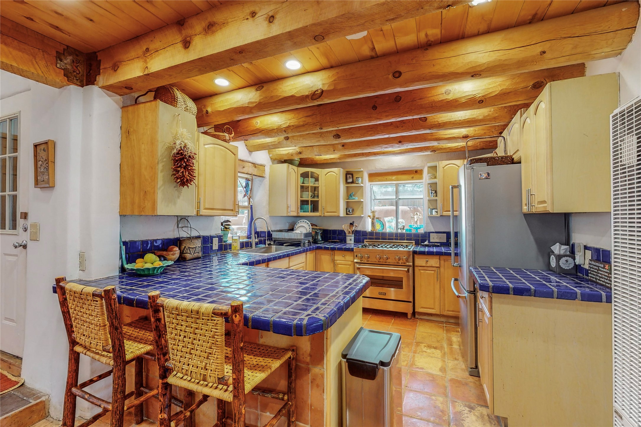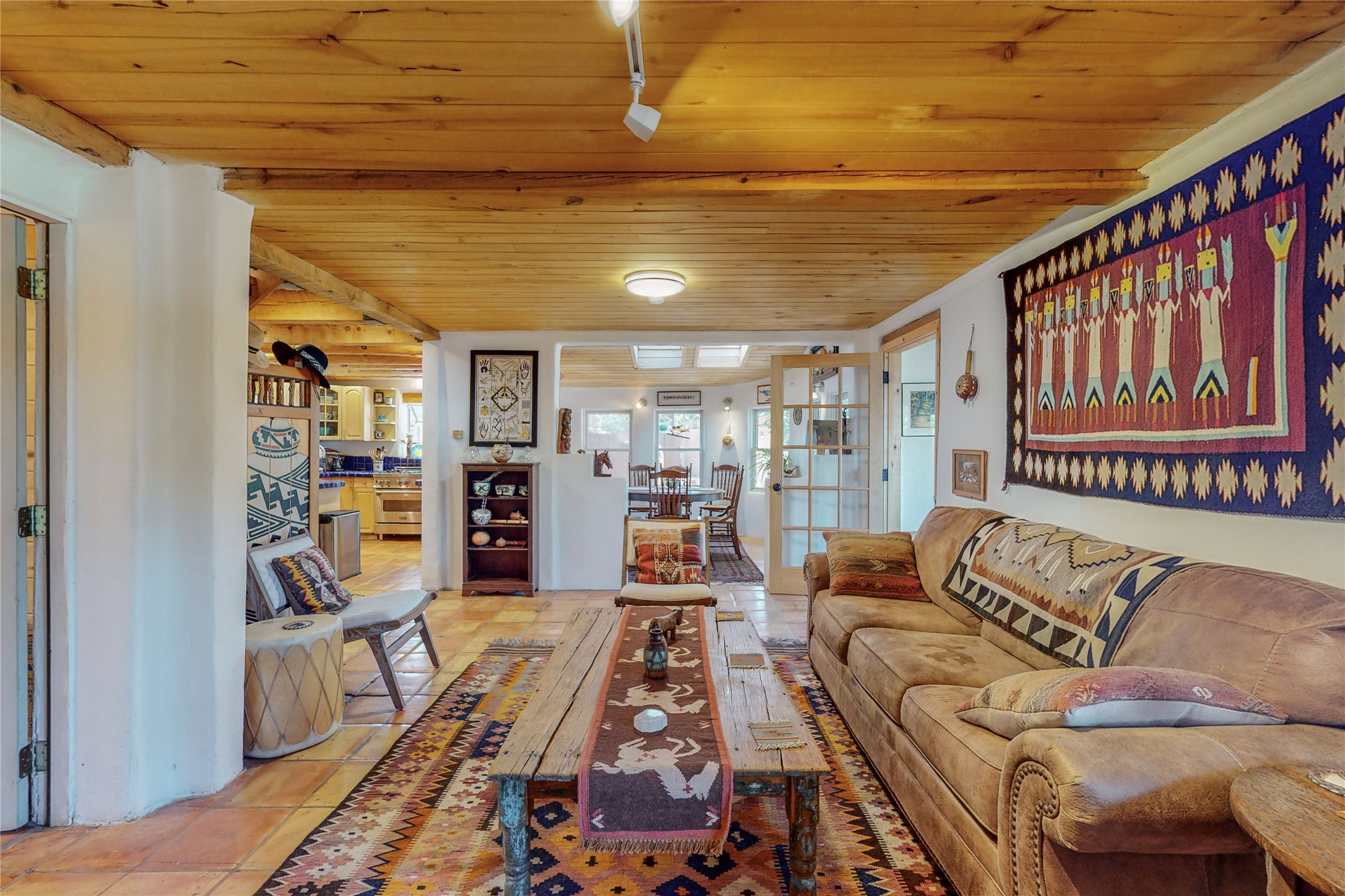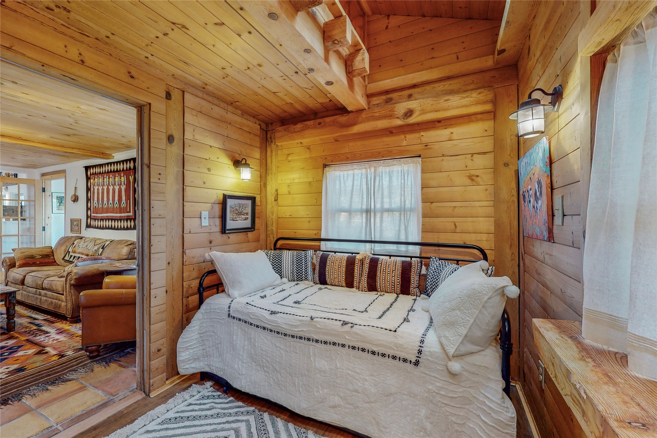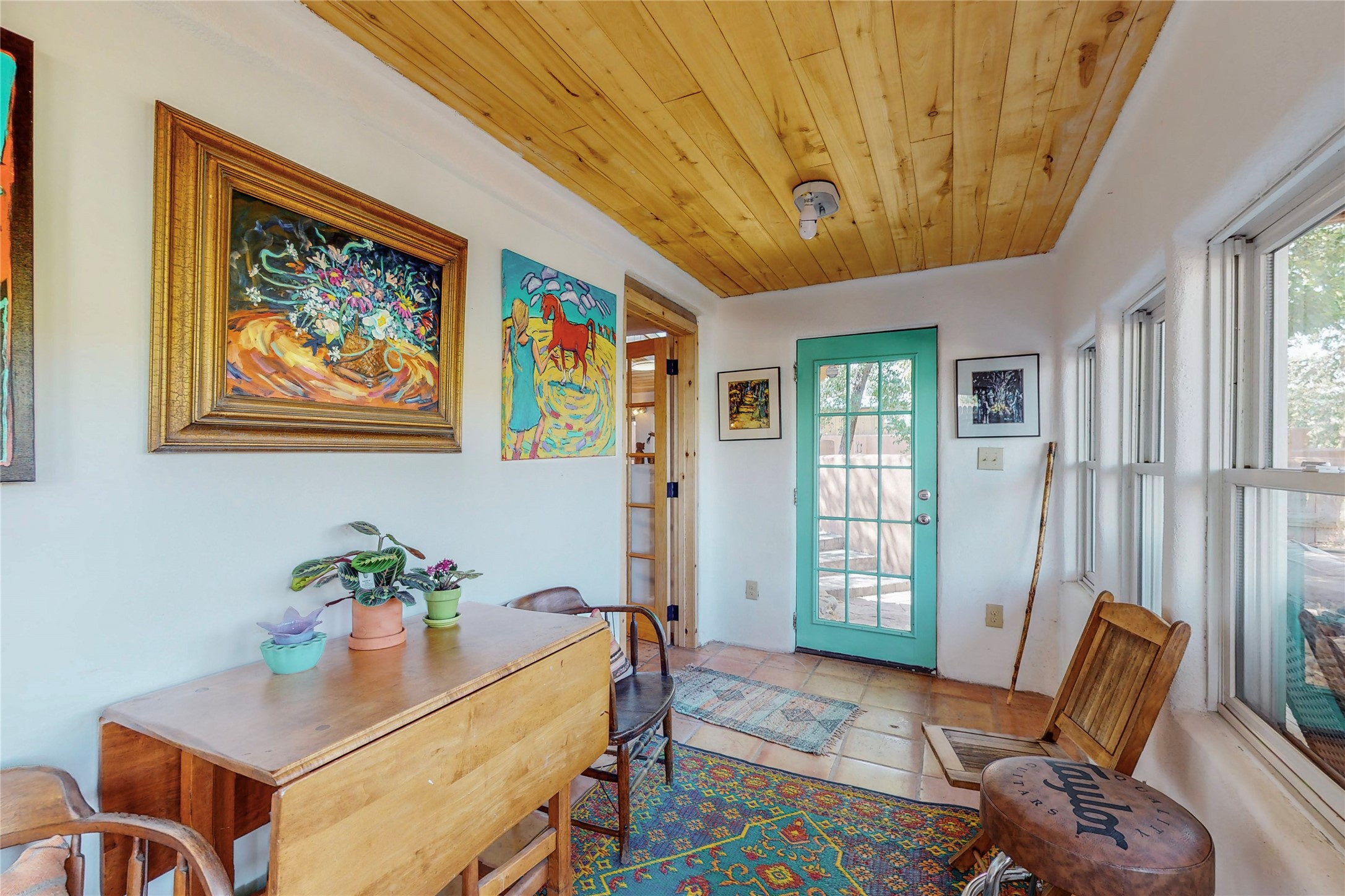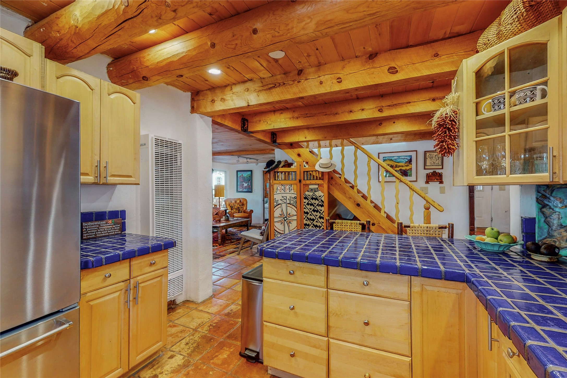 What an incredible find! This beautiful Madrid home is an artist's dream, offering both residential and commercial potential on two side by side lots. The charming home sits up high, right on the Turquoise Trail. The large deck out front offers great entertainment potential with wonderful views and lots of privacy. This home offers an open floorplan, including a large kitchen, a bedroom and office downstairs, and a large master suite with a walk in closet upstairs. There is plenty of natural light, as well as a whole home water filtration system, including reverse osmosis under the kitchen sink. The large side yard is tastefully landscaped and has a small outbuilding, perfect for an artist studio or gallery. Access and offstreet parking is available off of Ice House Rd.