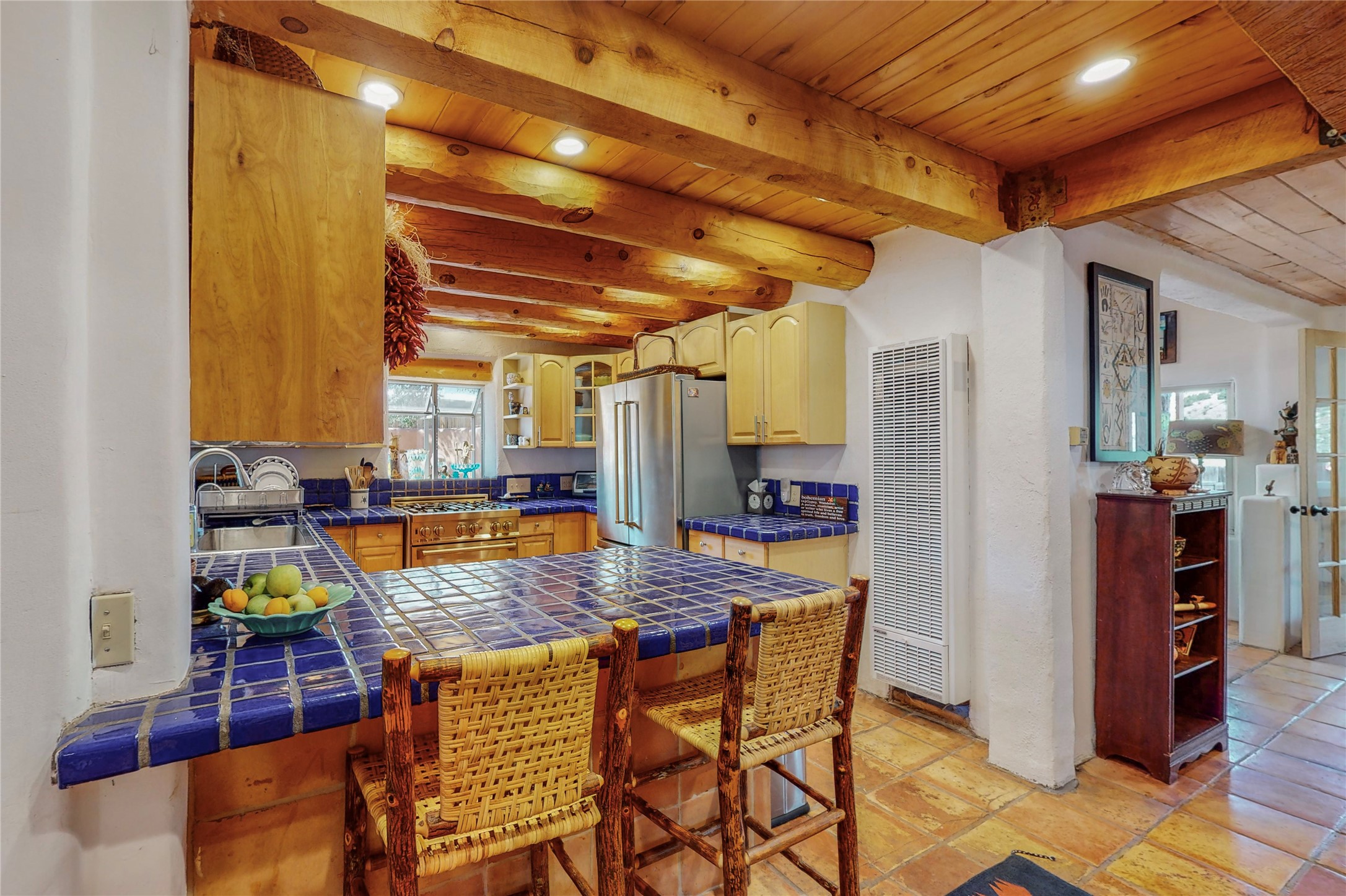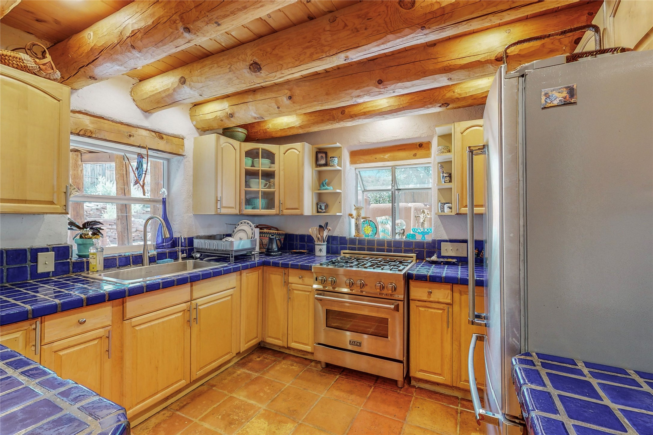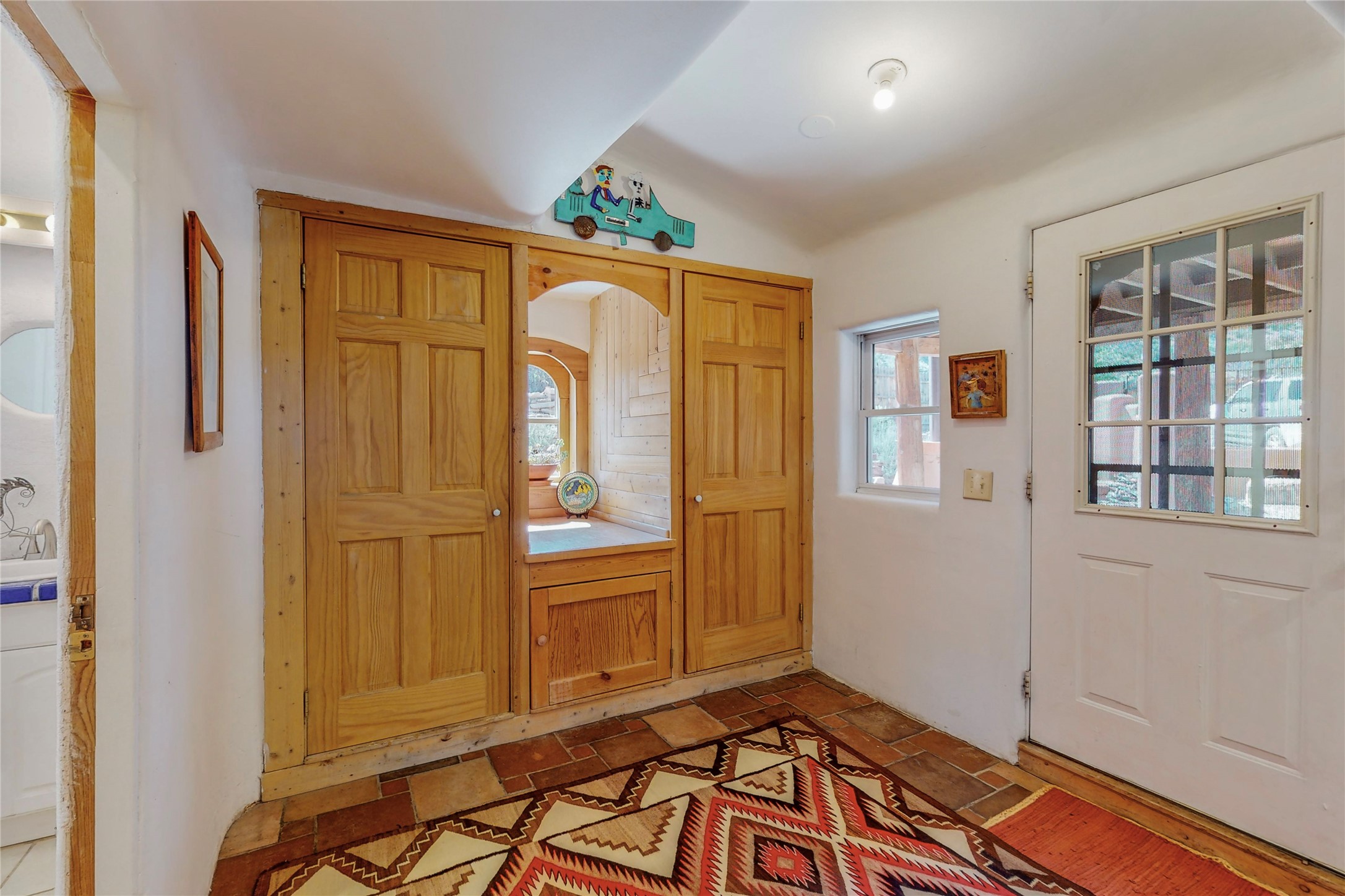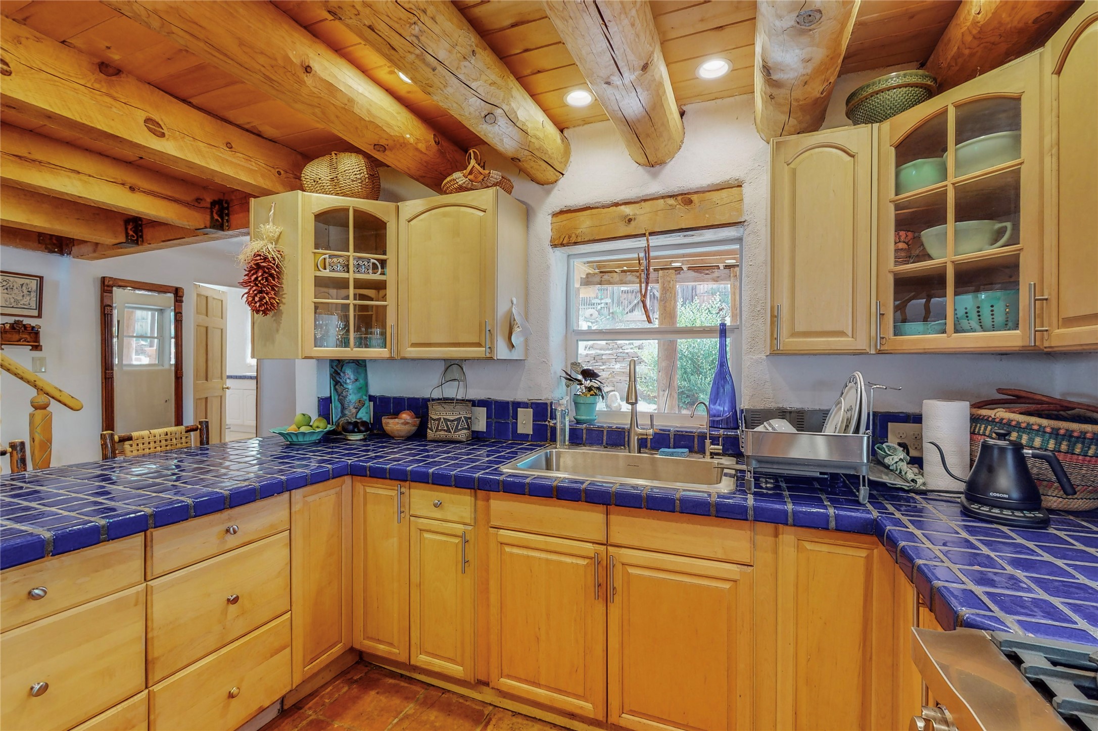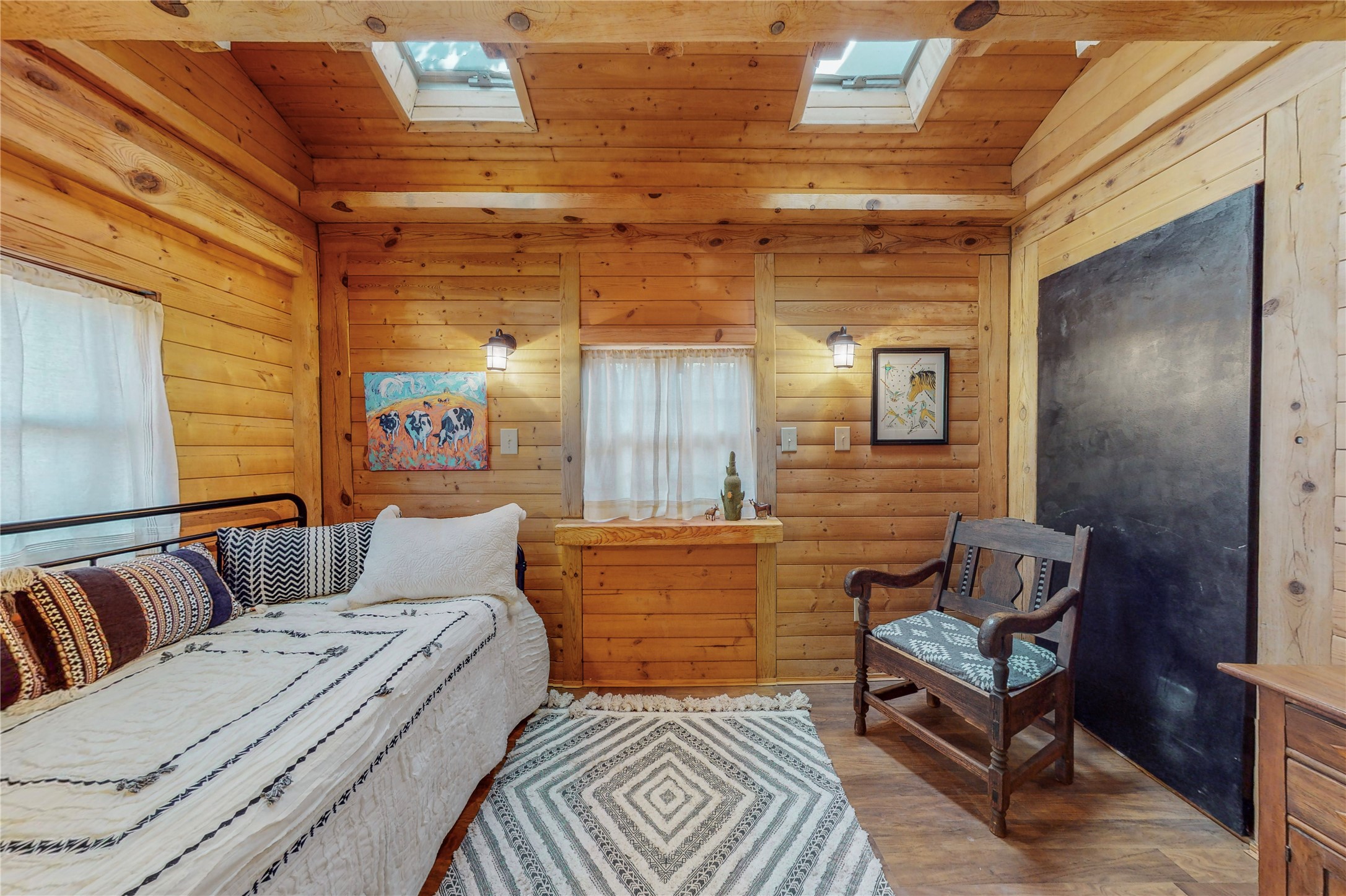 What an incredible find! This beautiful Madrid home is an artist's dream, offering both residential and commercial potential on two side by side lots. The charming home sits up high, right on the Turquoise Trail. The large deck out front offers great entertainment potential with wonderful views and lots of privacy. This home offers an open floorplan, including a large kitchen, a bedroom and office downstairs, and a large master suite with a walk in closet upstairs. There is plenty of natural light, as well as a whole home water filtration system, including reverse osmosis under the kitchen sink. The large side yard is tastefully landscaped and has a small outbuilding, perfect for an artist studio or gallery. Access and offstreet parking is available off of Ice House Rd.