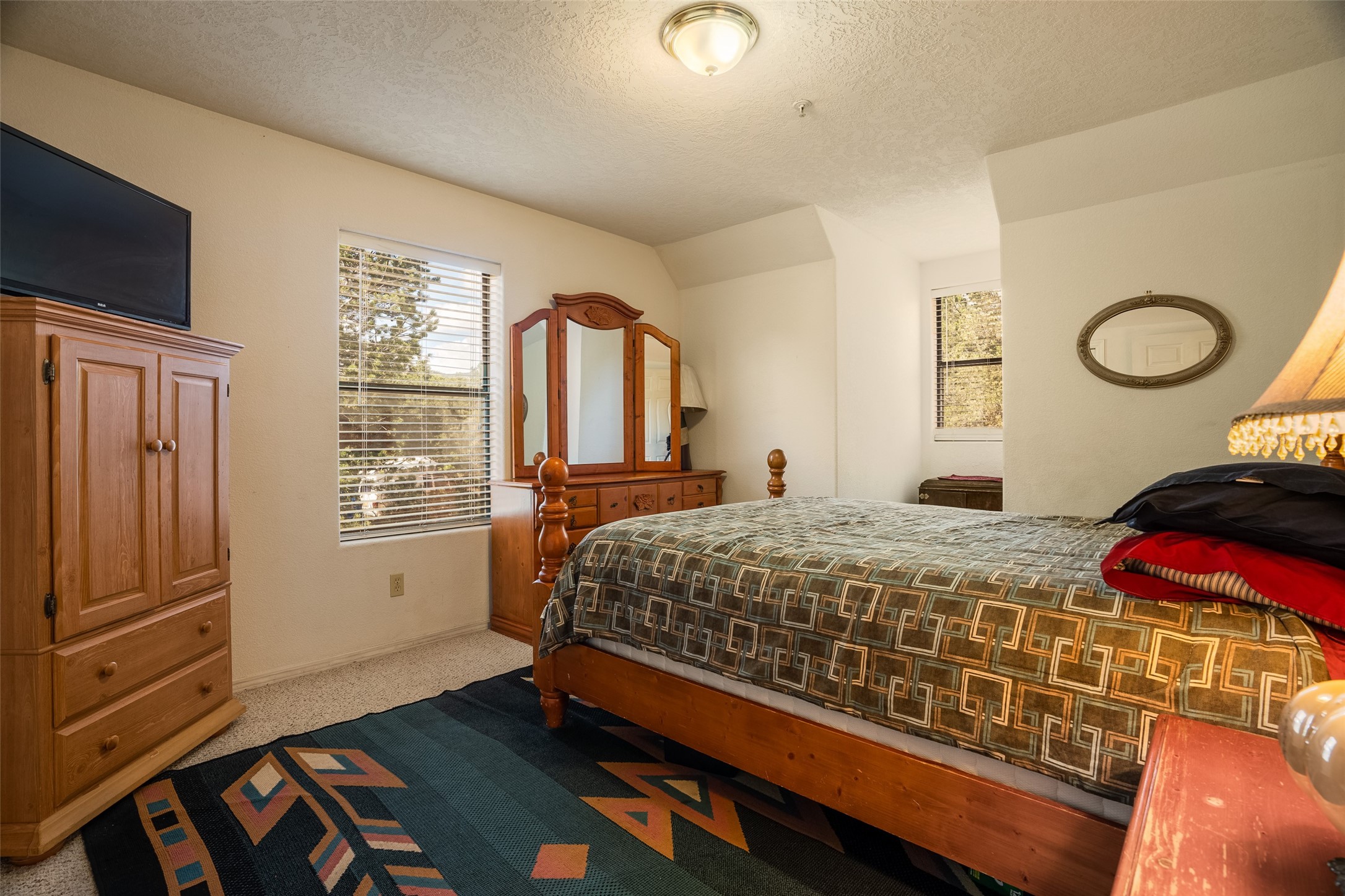 Great house just off Hwy 50 before Pecos. 3 bedrooms, 3 baths, 1753 +/- sq ft, with 38' covered porch. Landscaped 1.27 +/- ac lot that affords strong Sangre views. Dog friendly fenced yard (7,400 +/- sqft), Grass terraced front yard, open concept Living/Dining/Kitchen. Master on main, 2 beds & full bath upstairs. Ample storage. 16'x10' Tuff shed, sprinkler system for interior fire proofing, New roof installed June 19, 2023. 30 minutes to Old Pecos Trail in Santa Fe.
