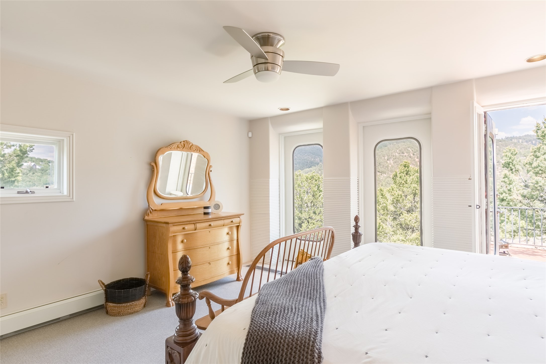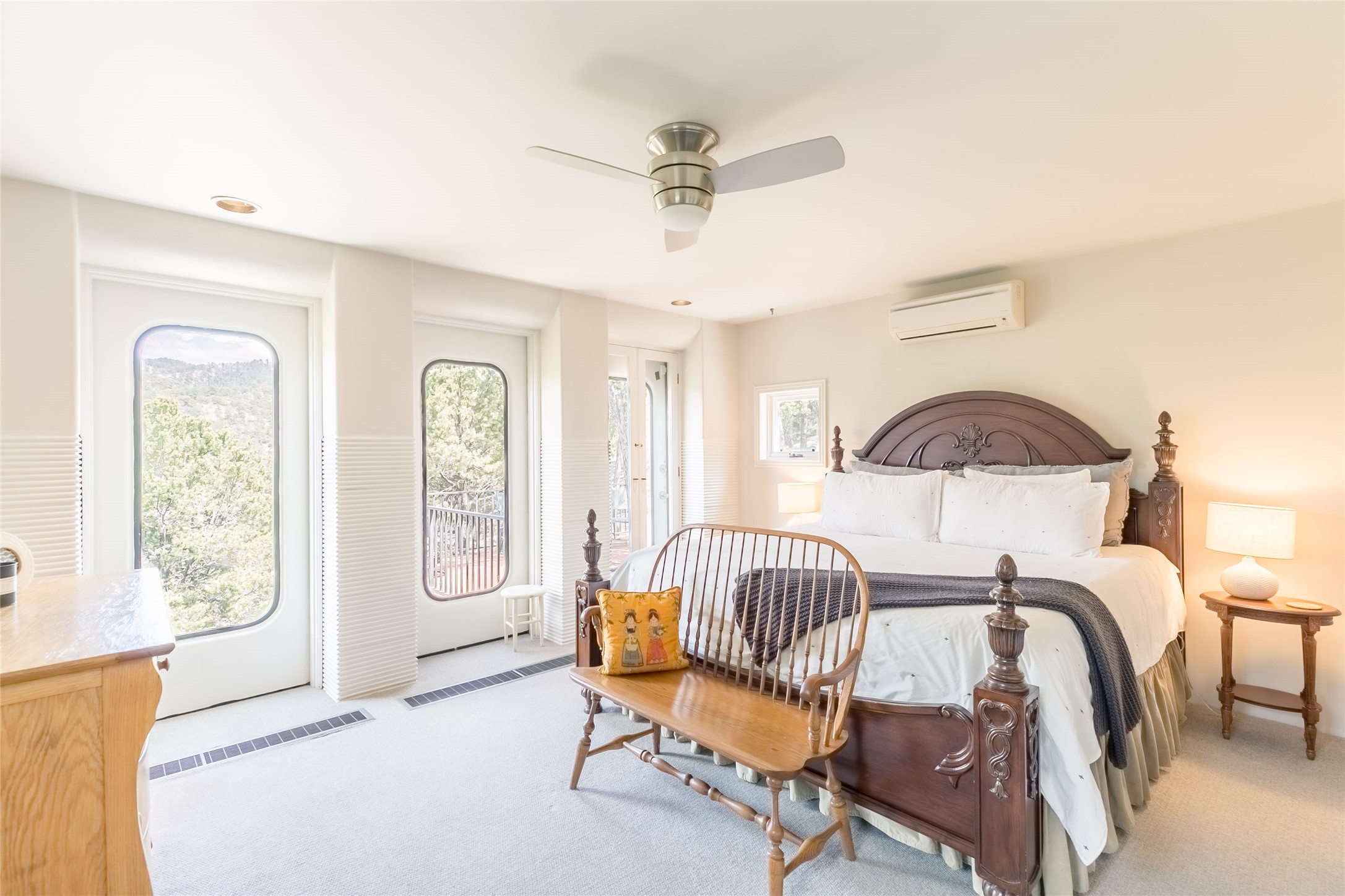 Welcome to 2092 Paseo Primero in the breathtaking Hyde Park area just outside Santa Fe. This luxurious mountain getaway offers a serene retreat while being conveniently located only 3.5 miles from the bustling SF Plaza and within walking distance to the renowned Ten Thousand Waves spa. Step inside the main house and instantly feel the embrace of a high-end mountain retreat. The property exudes an incredible sense of remoteness, allowing you to escape from the hustle and bustle of city life while indulging in a touch of luxury. Prepare to be captivated by the awe-inspiring views of the Jemez and Los Alamos mountains, as well as the majestic Ski Santa Fe, from not one, but four expansive decks. Whether you're sipping a glass of wine, admiring the sunrise, or stargazing under a blanket of stars, these decks offer a perfect setting to elevate your mountain getaway experience. Inside, this property showcases multiple living areas, providing ample space for relaxation, entertainment, and privacy. The main house can be divided into two separate units, offering the flexibility to accommodate extended family, guests, or even generate rental income. Each unit features its own distinct character and style, creating an inviting and versatile living arrangement. You'll appreciate the wood beam ceilings that add a touch of rustic elegance to the space. Cozy up by the fireplace, as the flames dance and create a warm ambiance that perfectly complements the natural beauty surrounding the property. For those seeking outdoor adventure, the hiking trails accessible right from the side and back yard beckon you to explore the picturesque landscape. As you pass through the electric front gate and meander down the driveway, you'll feel a sense of exclusivity and tranquility that only a private mountain retreat can provide.