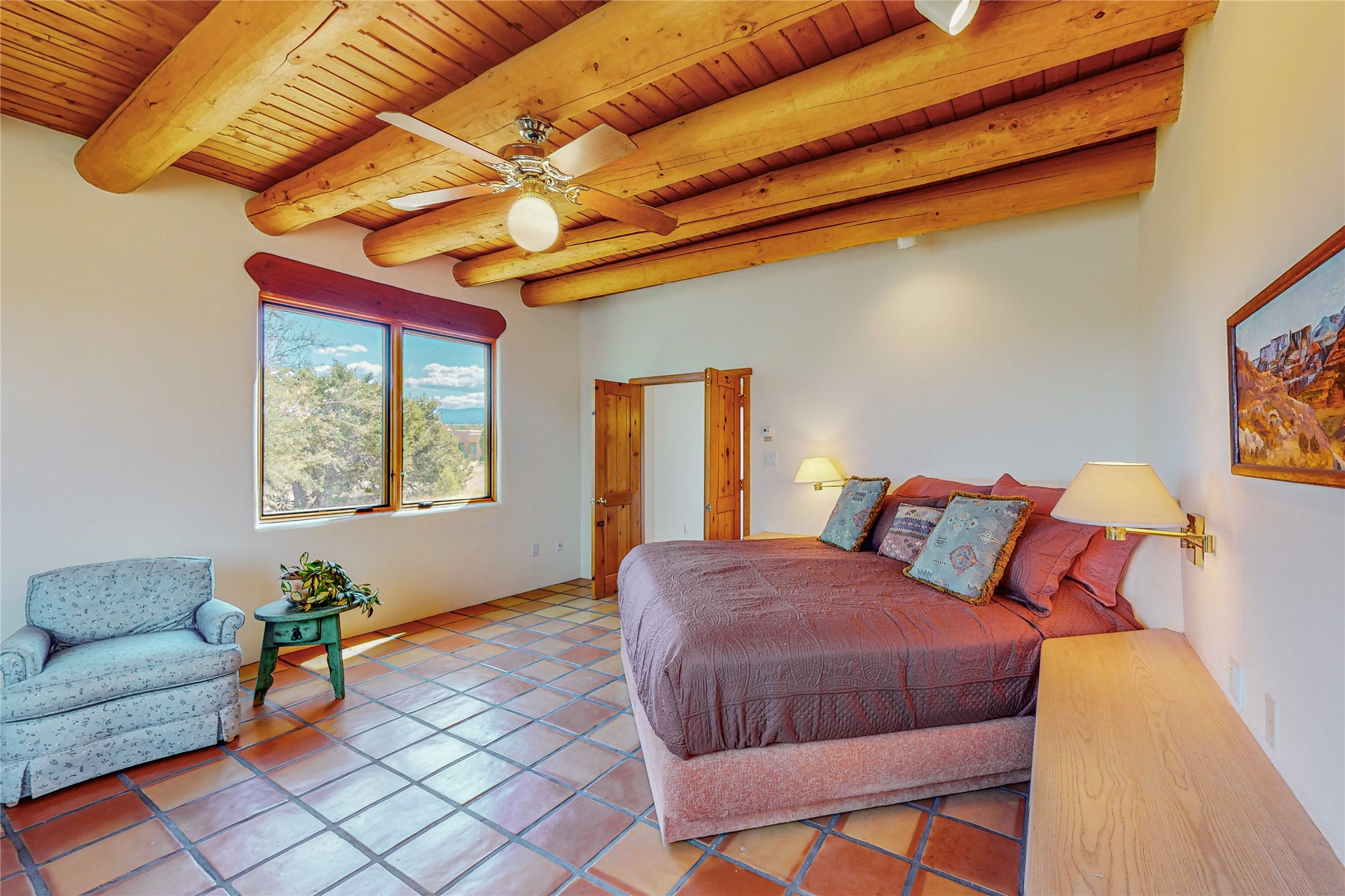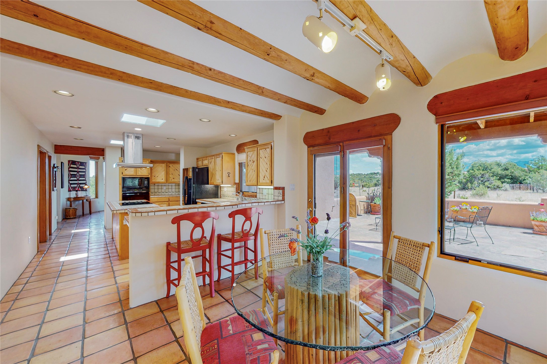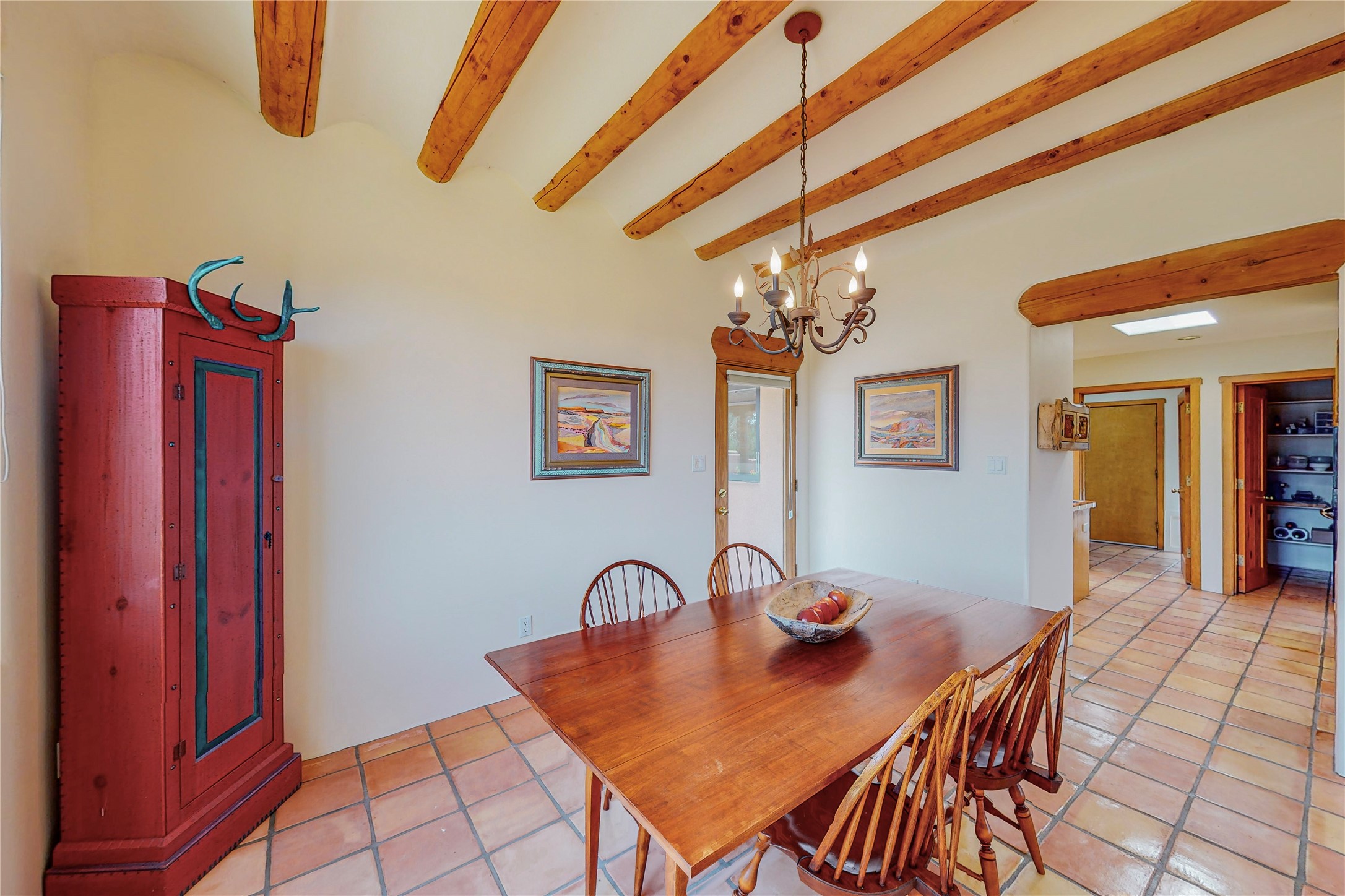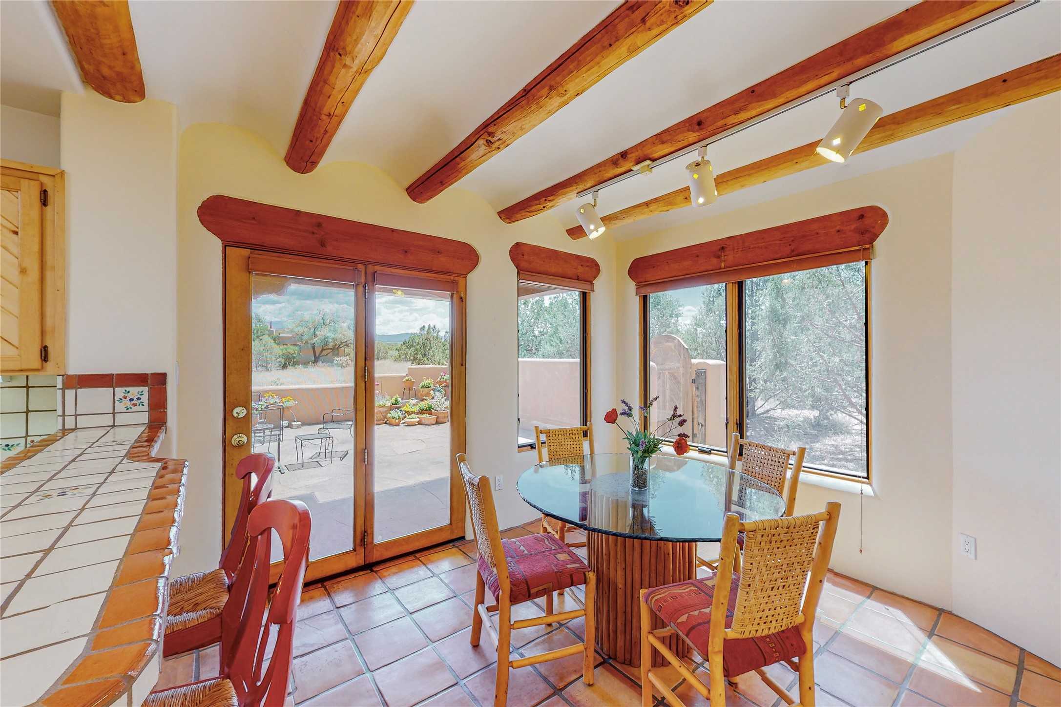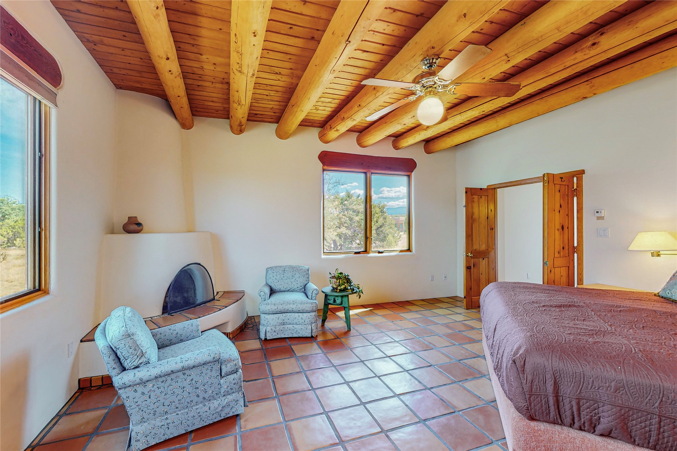 Take a closer look at this property----Newly priced!!! Newly staged!! This home is located in the private and gated Salva Tierra subdivision, just a short distance from the plaza. It has impressive views of the Sangres.This traditional Santa Fe style home is in original condition and waiting for your new-fashioned touch! Flexible floor plan. Large master suite with kiva fireplace and massive walk-in closet. Lots of closets and storage space in this home. Full-view doors off the kitchen and dining room open to the spacious patio for a great entertaining flow. Sweet breakfast room with kiva fireplace. Meadow-like surroundings and private outdoor spaces. Plenty of walking and hiking trails just outside your door. Great HOAs include trash, recycle, gate maintenance, roads and common areas. 2742 square feet. 3 bedrooms, 2 1/2 baths. Two car garage, all on 1.5 acres. Pre-inspected and ready to go.
