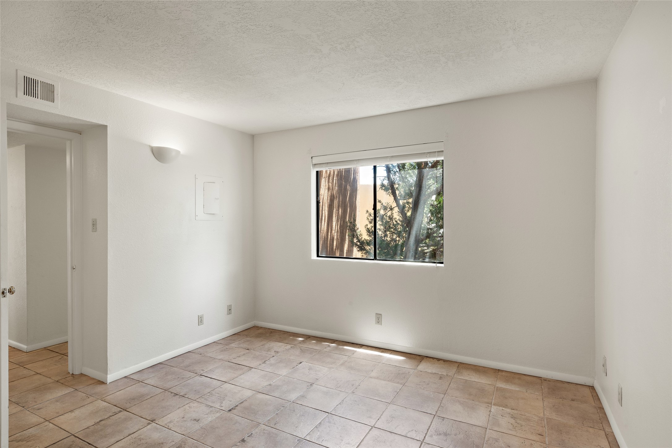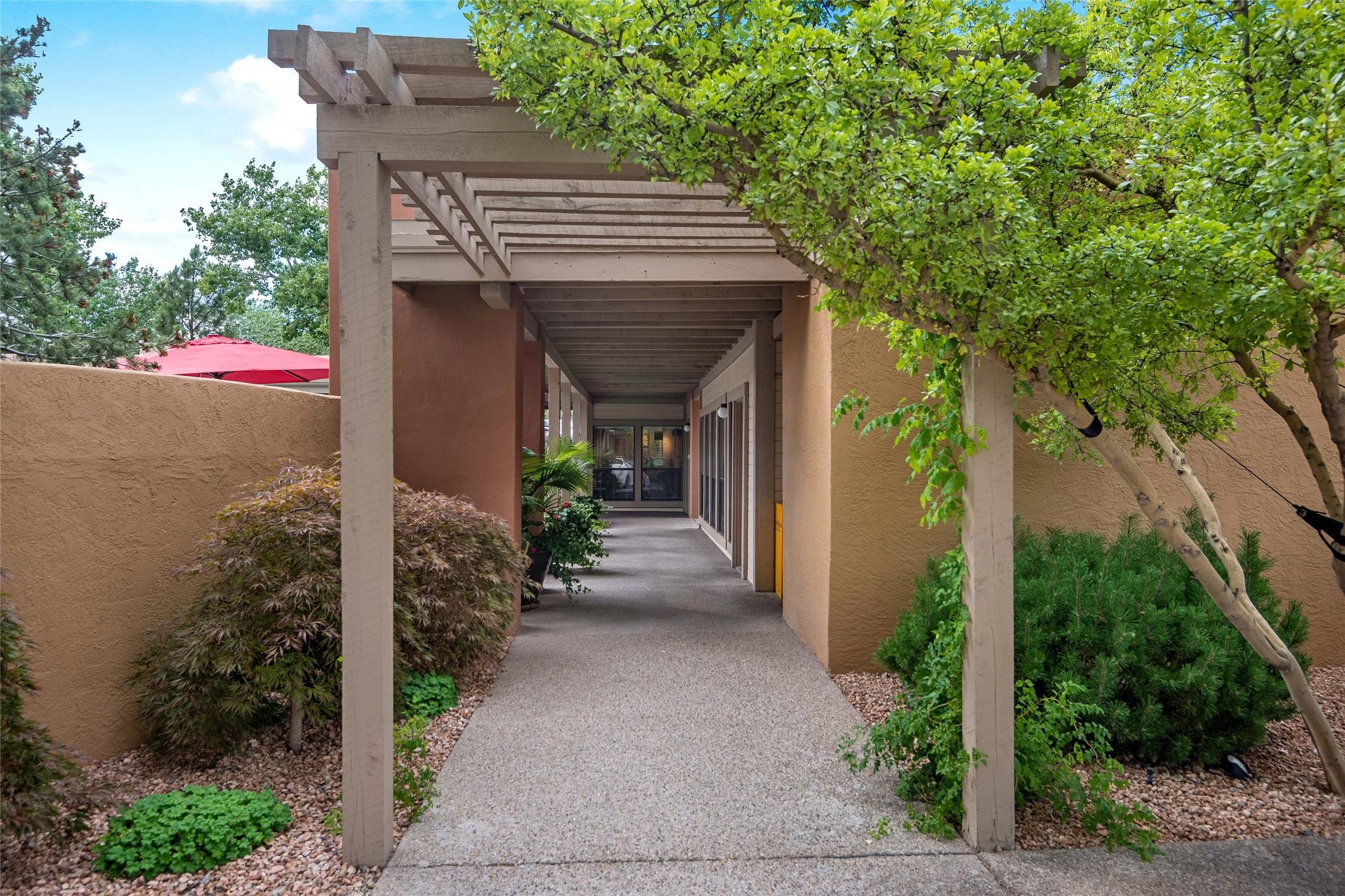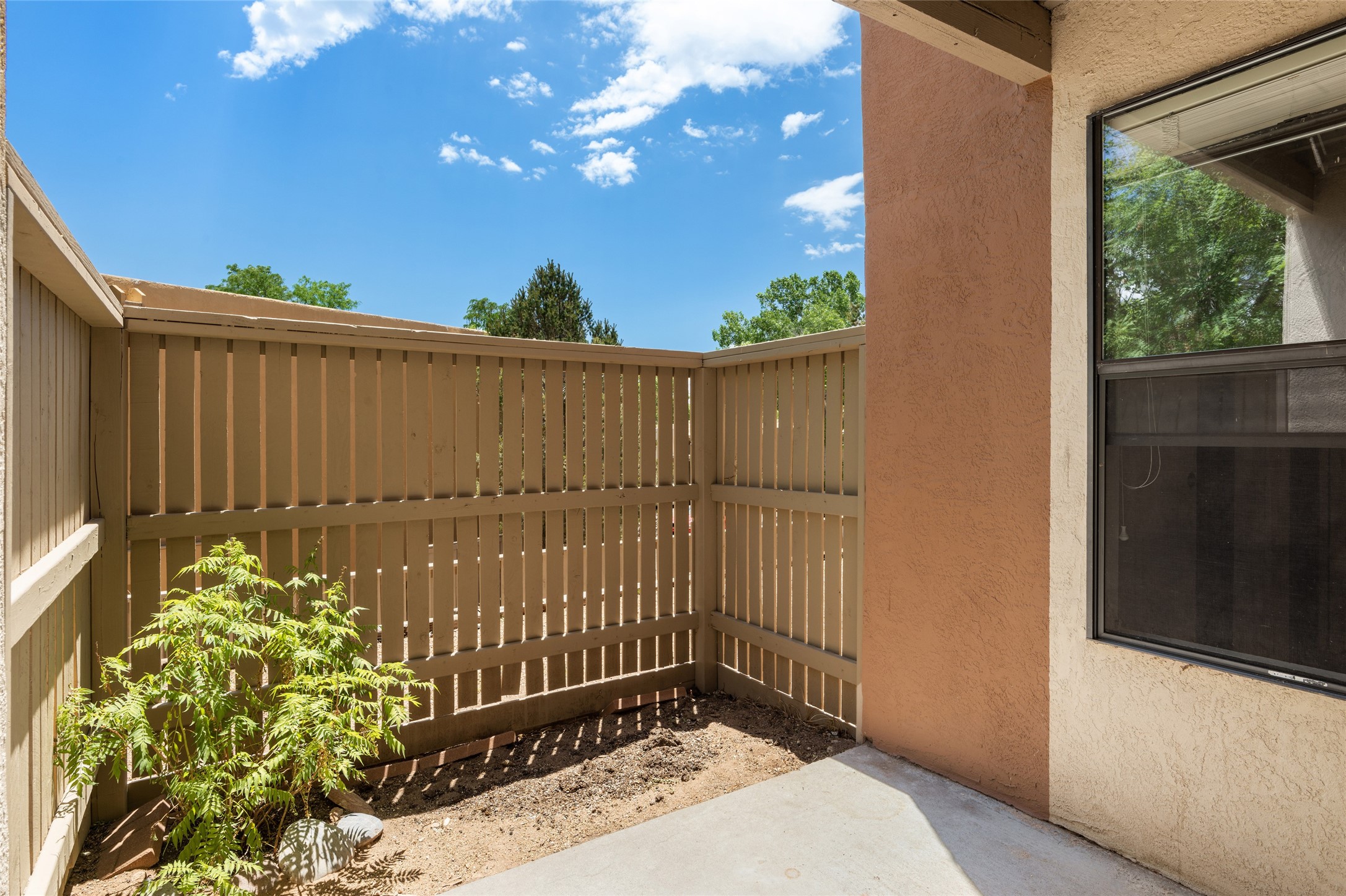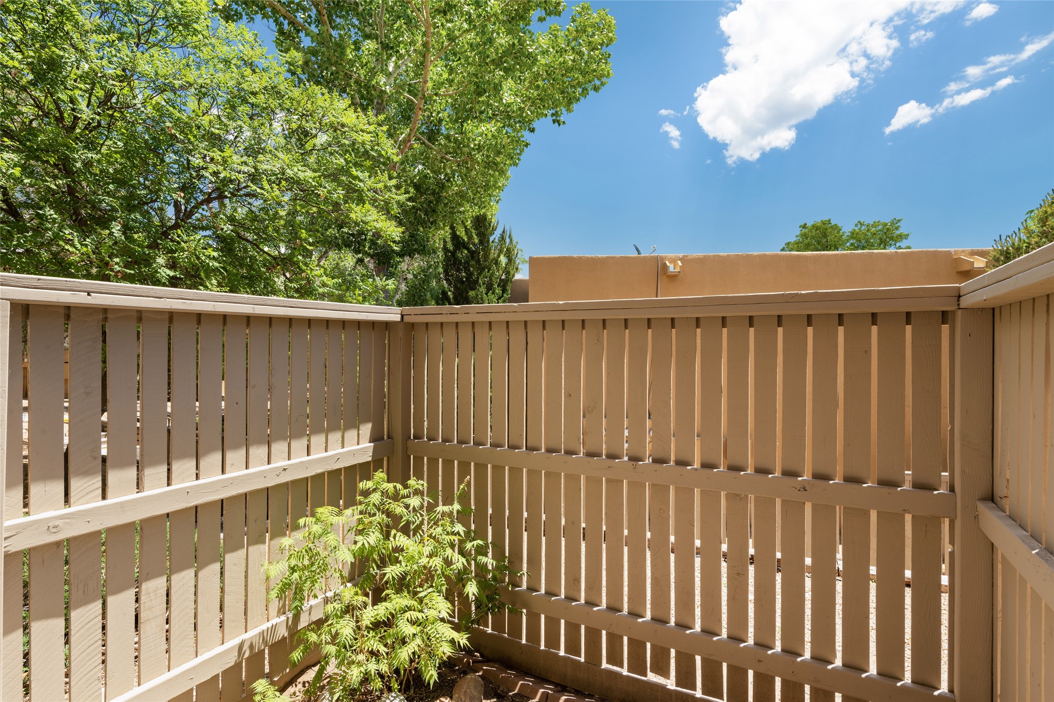 Light, bright, quiet, private, ground floor, end unit with uninterrupted, sky filled views, energizing morning light, and shelter from the afternoon sun in The Reserve, a gated, non-smoking condo community on 16 tree covered acres with adjoining nature trail access, just minutes north of the DeVargas Mall the Santa Fe Plaza and an easy commute to Los Alamos offers a heated outdoor pool and hot tub, a clean gym, large laundry facility, night time security, and a beautiful clubhouse. This awesome condo features ceramic tiled floors throughout, an updated kitchen, spacious closets, and a private patio. This is a prime unit in a prime location. Low maintenance; the roof, stucco, and landscaping are maintained by the HOA. And small pets are welcome! Call today for your private showing.