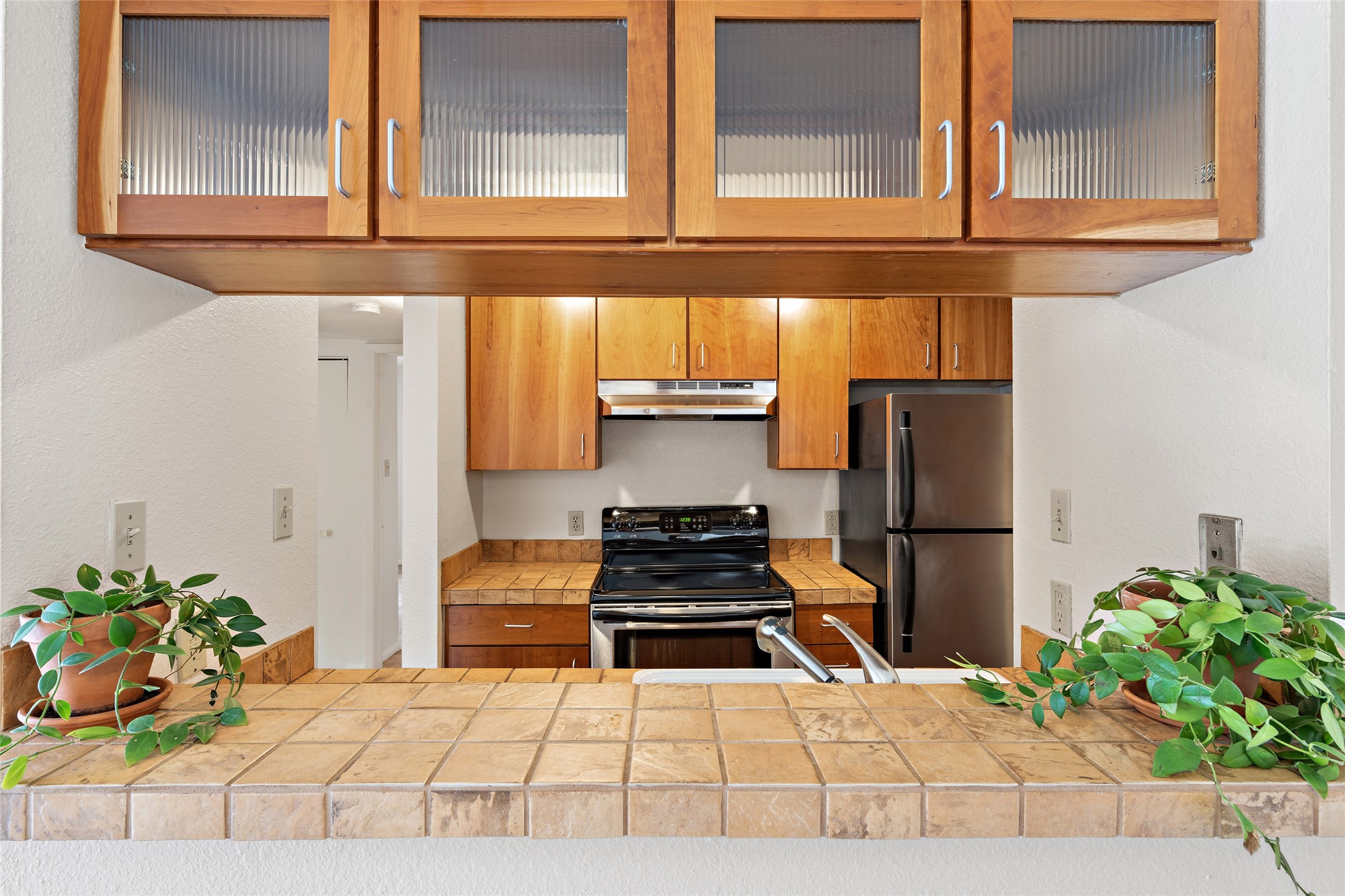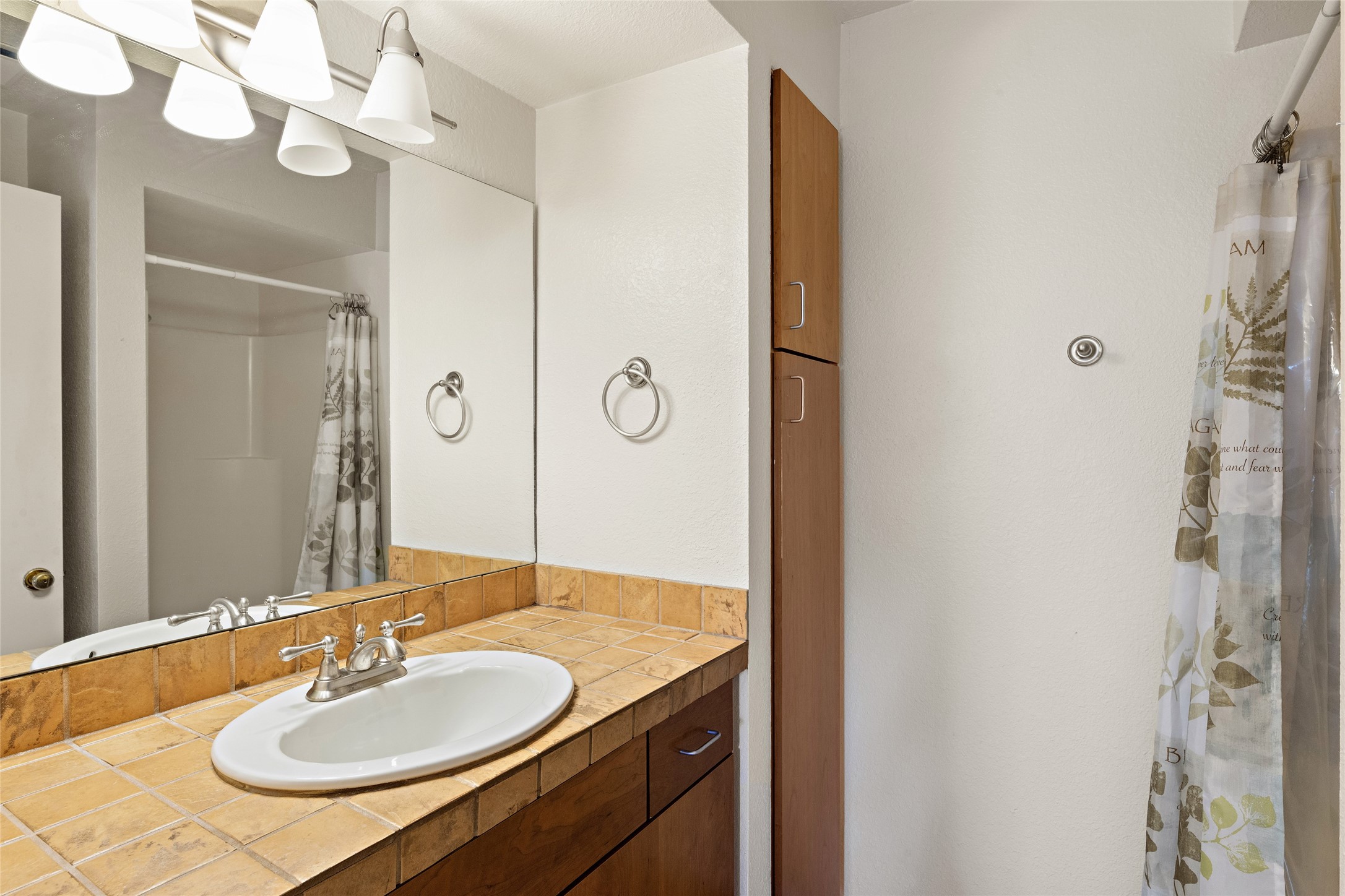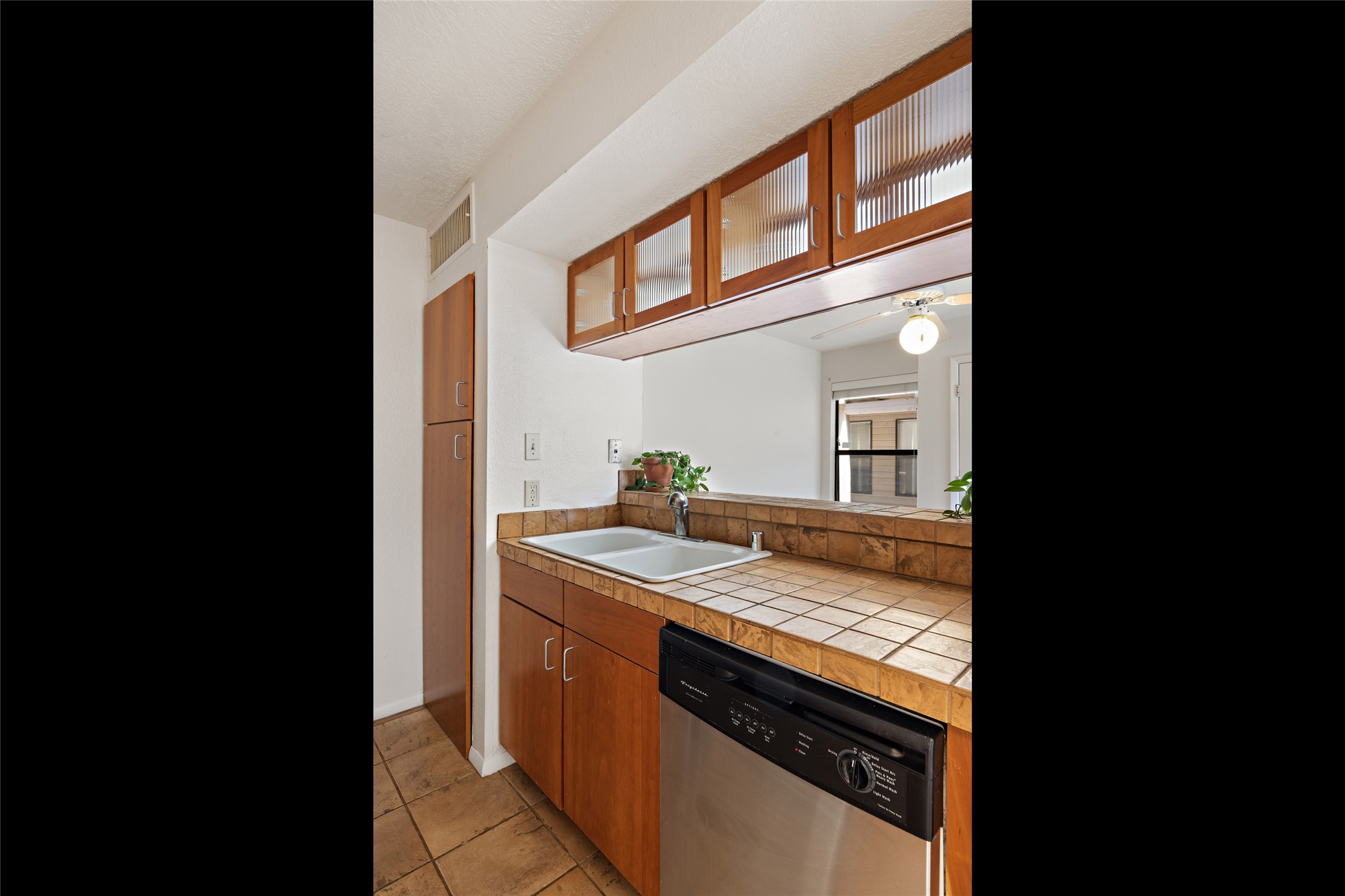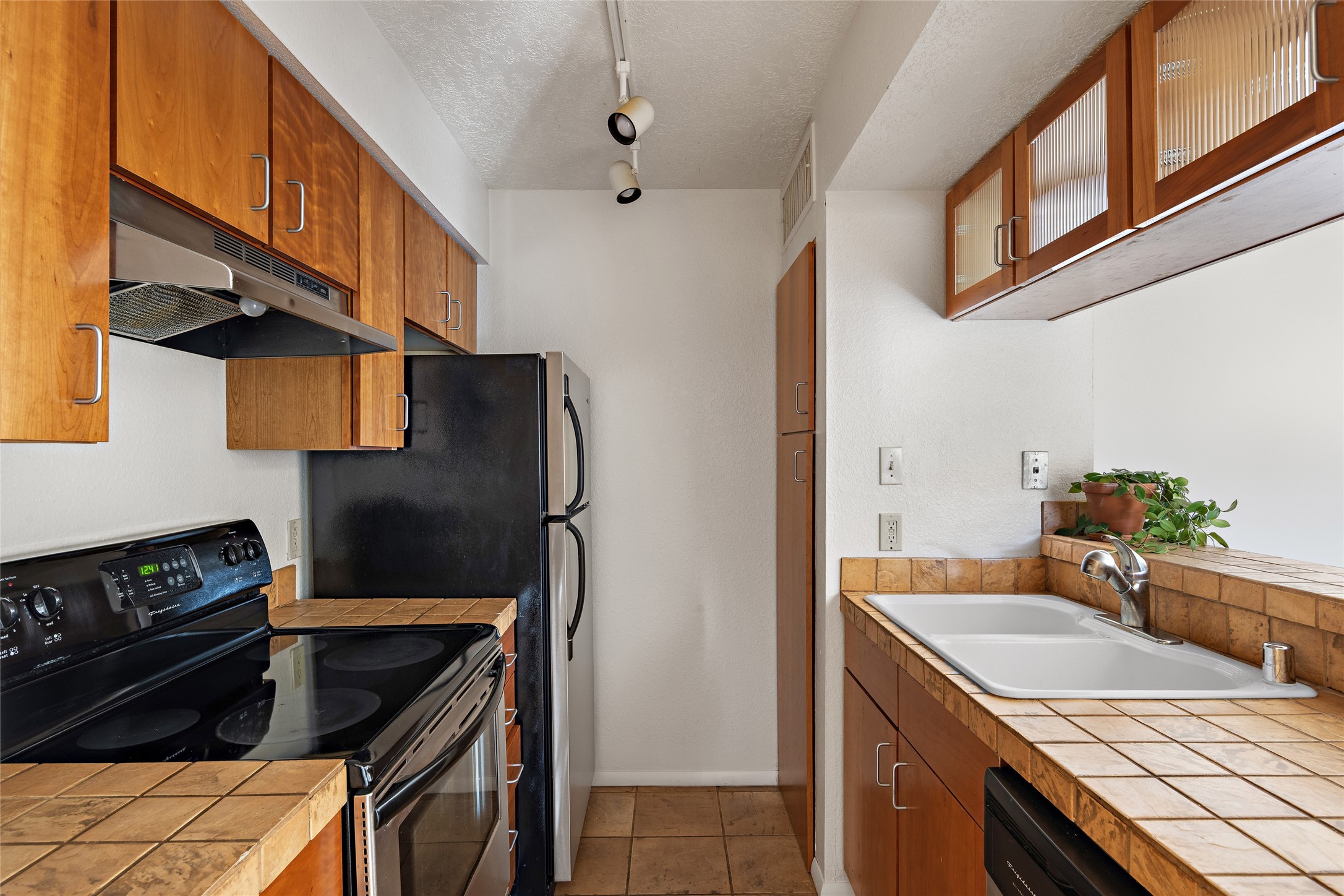 Light, bright, quiet, private, ground floor, end unit with uninterrupted, sky filled views, energizing morning light, and shelter from the afternoon sun in The Reserve, a gated, non-smoking condo community on 16 tree covered acres with adjoining nature trail access, just minutes north of the DeVargas Mall the Santa Fe Plaza and an easy commute to Los Alamos offers a heated outdoor pool and hot tub, a clean gym, large laundry facility, night time security, and a beautiful clubhouse. This awesome condo features ceramic tiled floors throughout, an updated kitchen, spacious closets, and a private patio. This is a prime unit in a prime location. Low maintenance; the roof, stucco, and landscaping are maintained by the HOA. And small pets are welcome! Call today for your private showing.