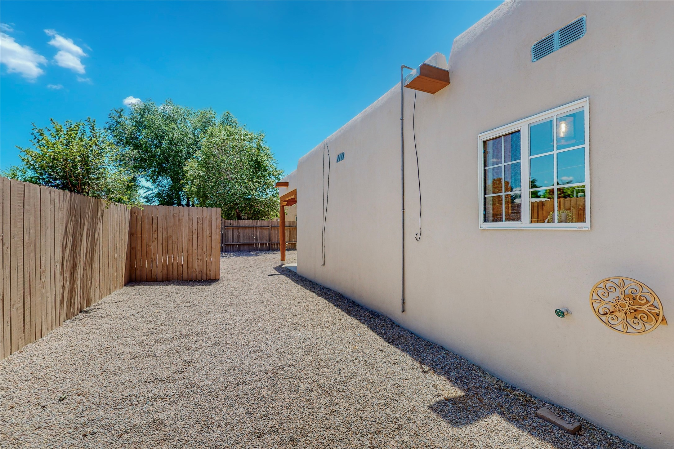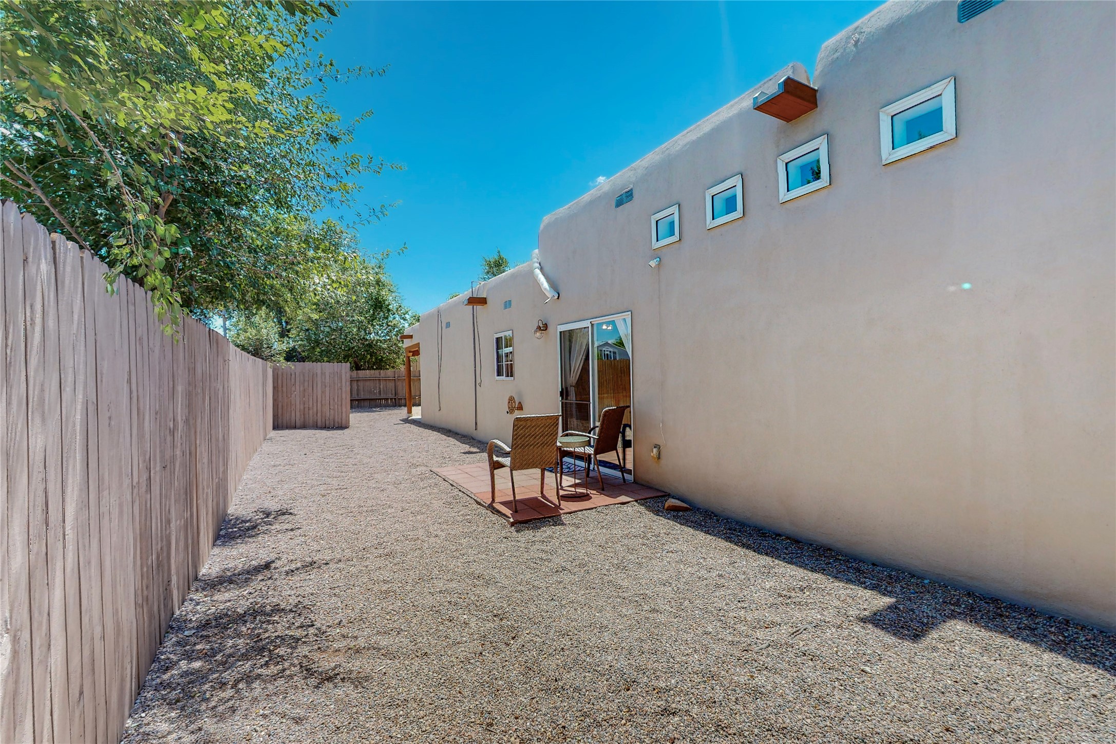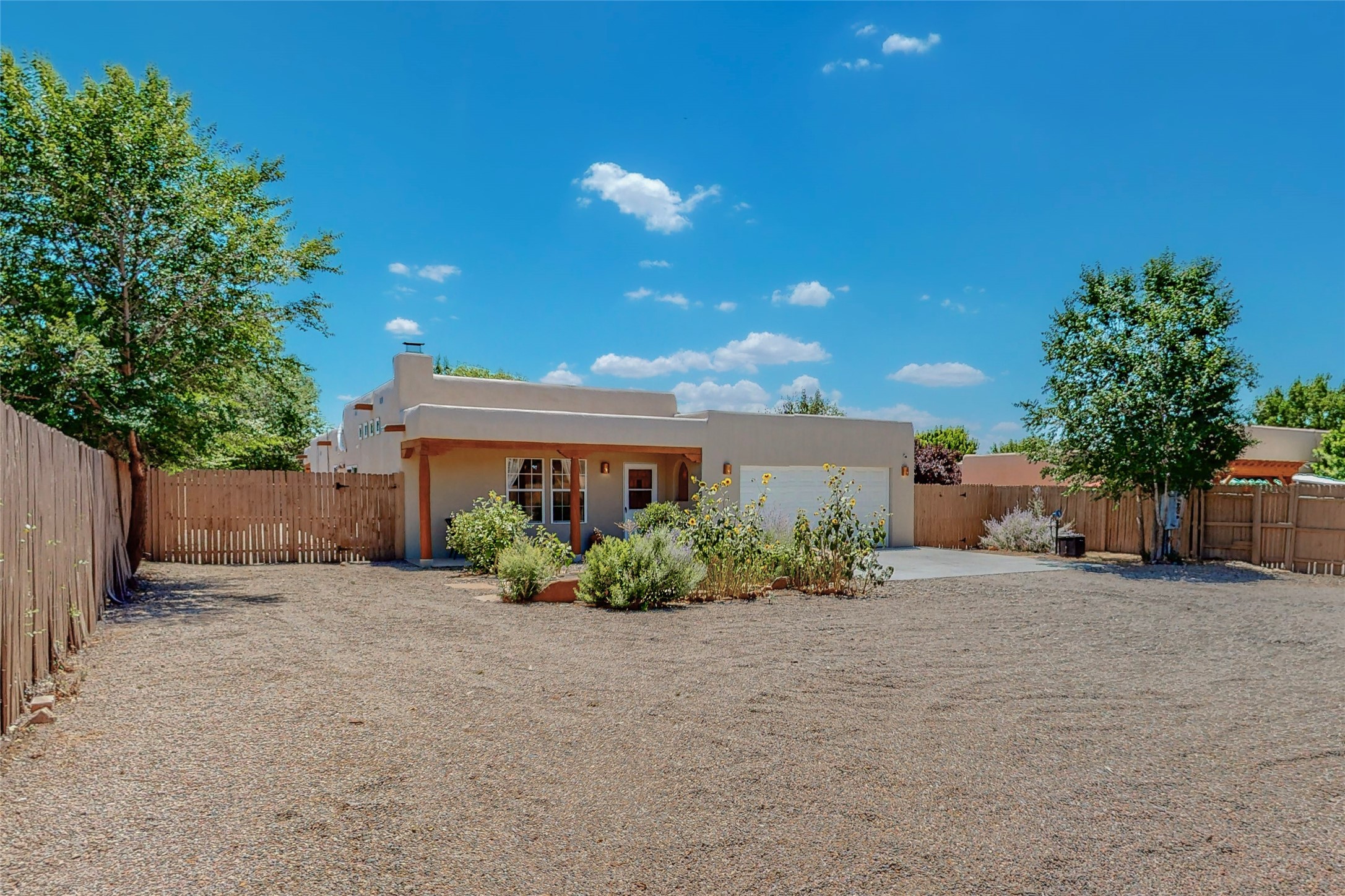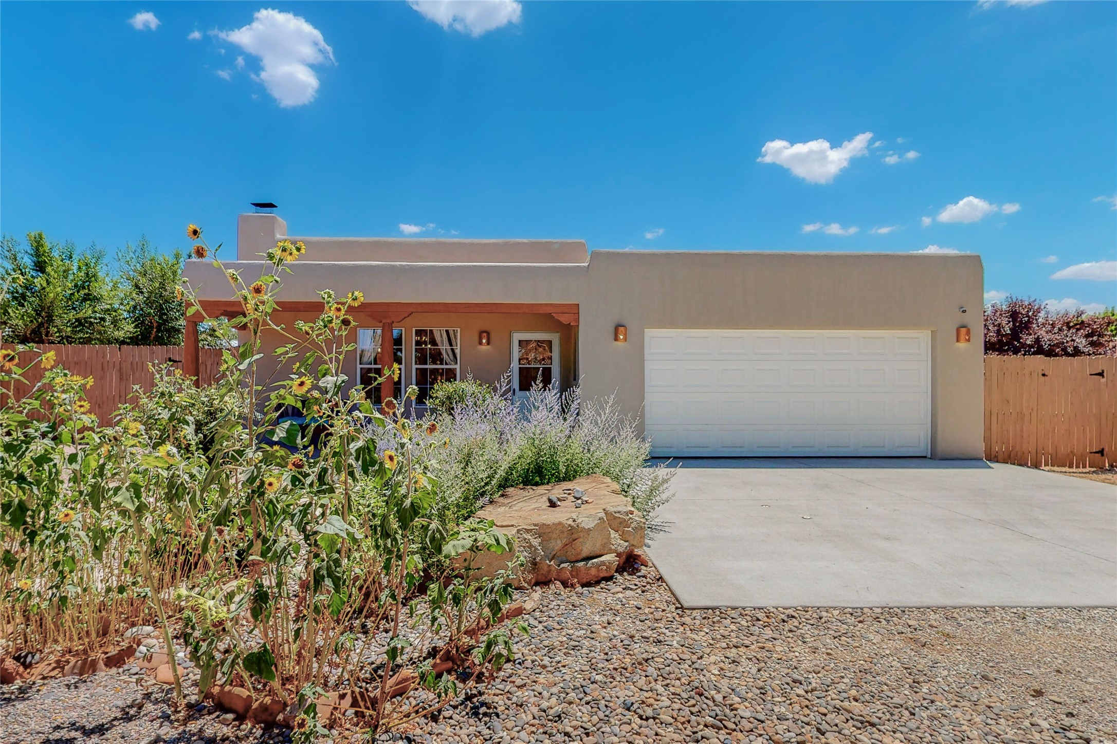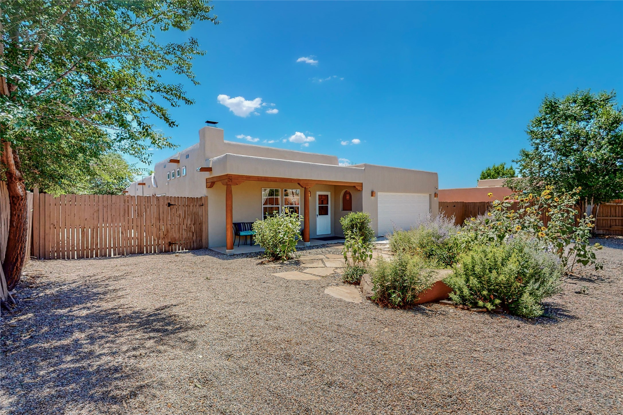 Your little piece of country in central Santa Fe. This beautiful, spacious home boasts an open floor plan, four bedrooms, in-floor radiant heat, mini-splits, fresh appliances, and much more. Enjoy your morning coffee in the full-length backyard portal and your autumn/winter evenings nestled up next to the Kiva fireplace in the living room. This unique lot offers plenty of privacy in a prime location near downtown and HWY 599. Updates include remodeled master bathroom, water heater/boiler 2 in 1 unit installed in 2021, light fixtures in 2023, and an updated kitchen with granite counters, farmhouse sink, and appliances. Do not miss this opportunity and schedule your showing today. Imagine the Possibilities!