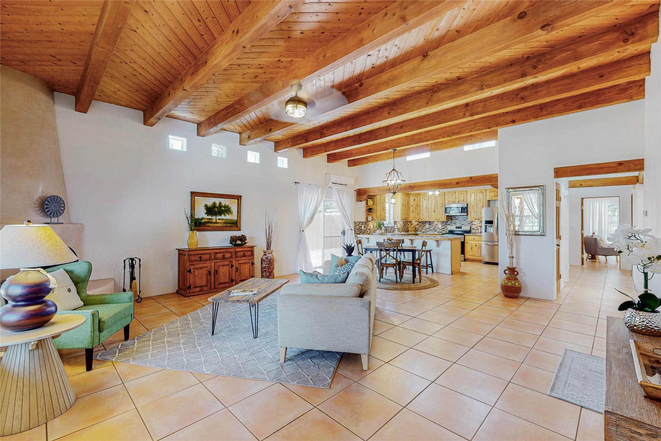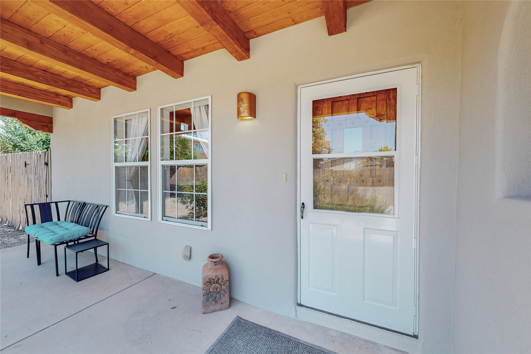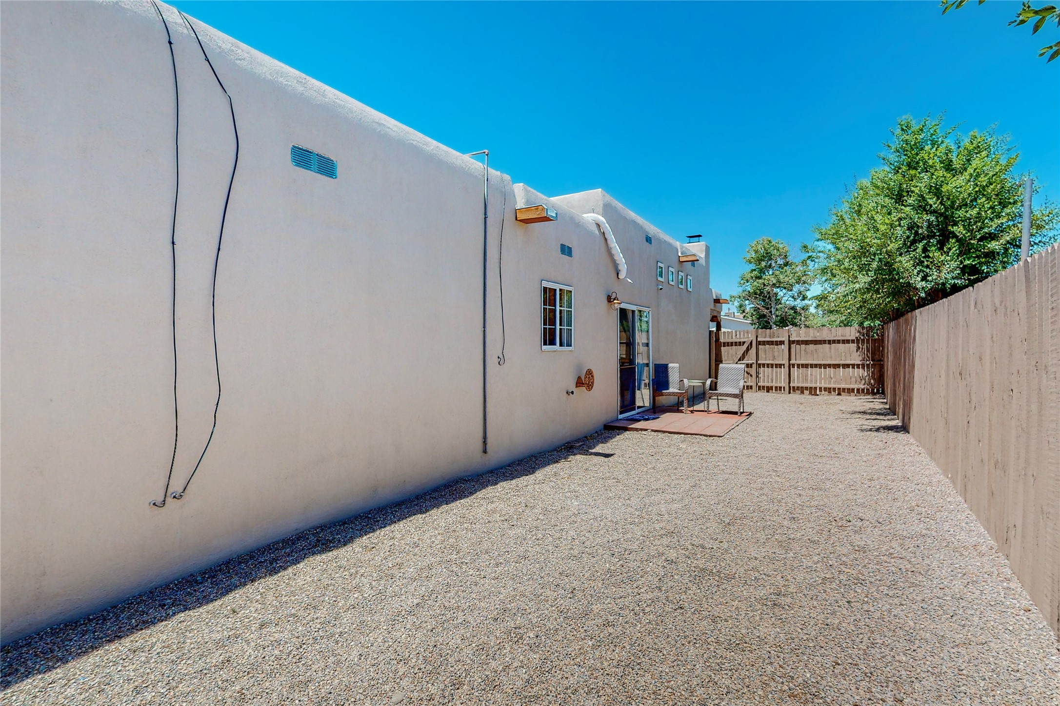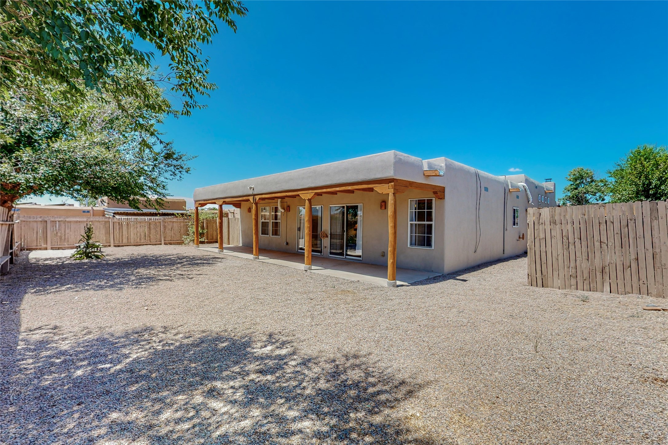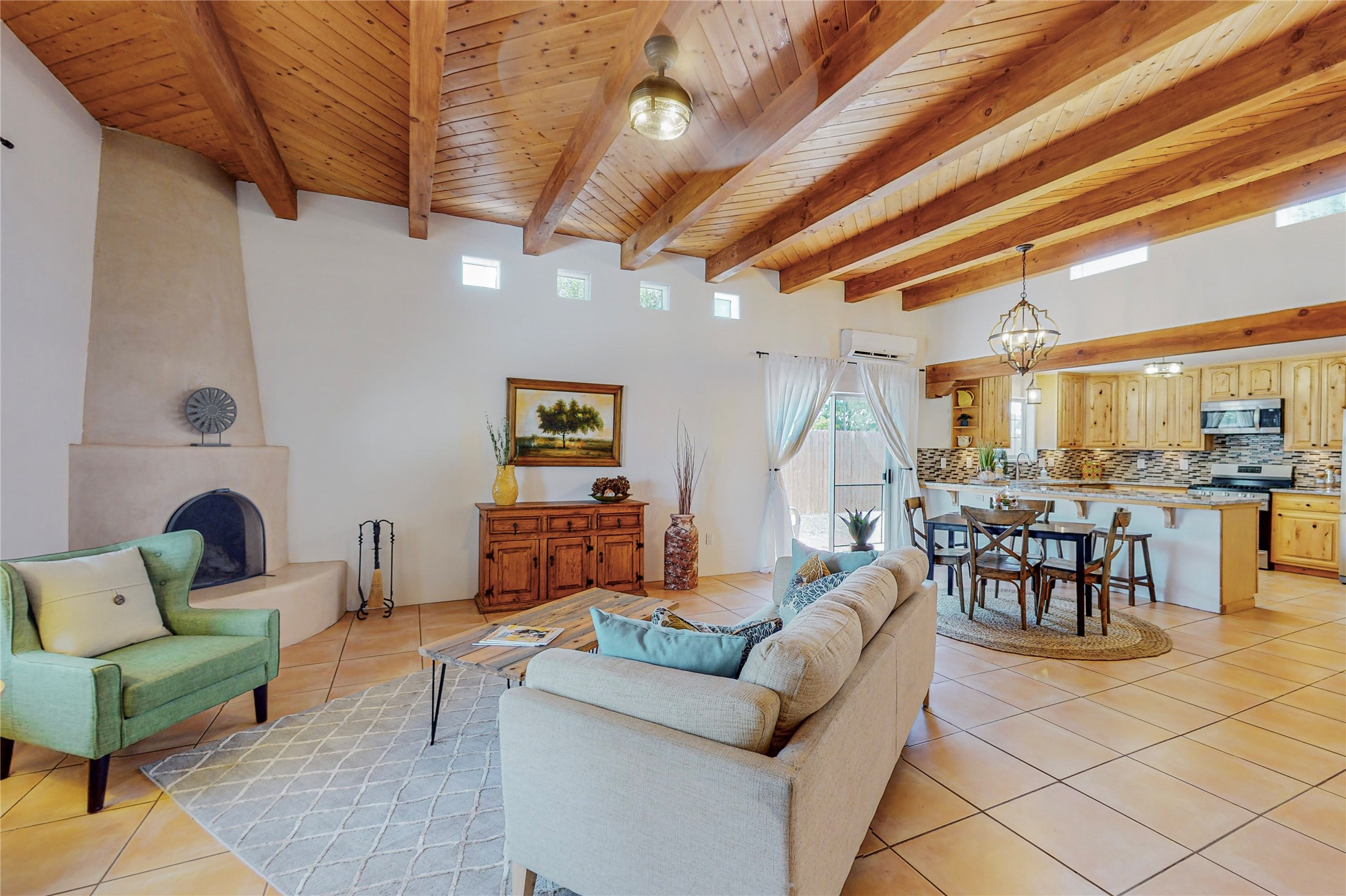 Your little piece of country in central Santa Fe. This beautiful, spacious home boasts an open floor plan, four bedrooms, in-floor radiant heat, mini-splits, fresh appliances, and much more. Enjoy your morning coffee in the full-length backyard portal and your autumn/winter evenings nestled up next to the Kiva fireplace in the living room. This unique lot offers plenty of privacy in a prime location near downtown and HWY 599. Updates include remodeled master bathroom, water heater/boiler 2 in 1 unit installed in 2021, light fixtures in 2023, and an updated kitchen with granite counters, farmhouse sink, and appliances. Do not miss this opportunity and schedule your showing today. Imagine the Possibilities!