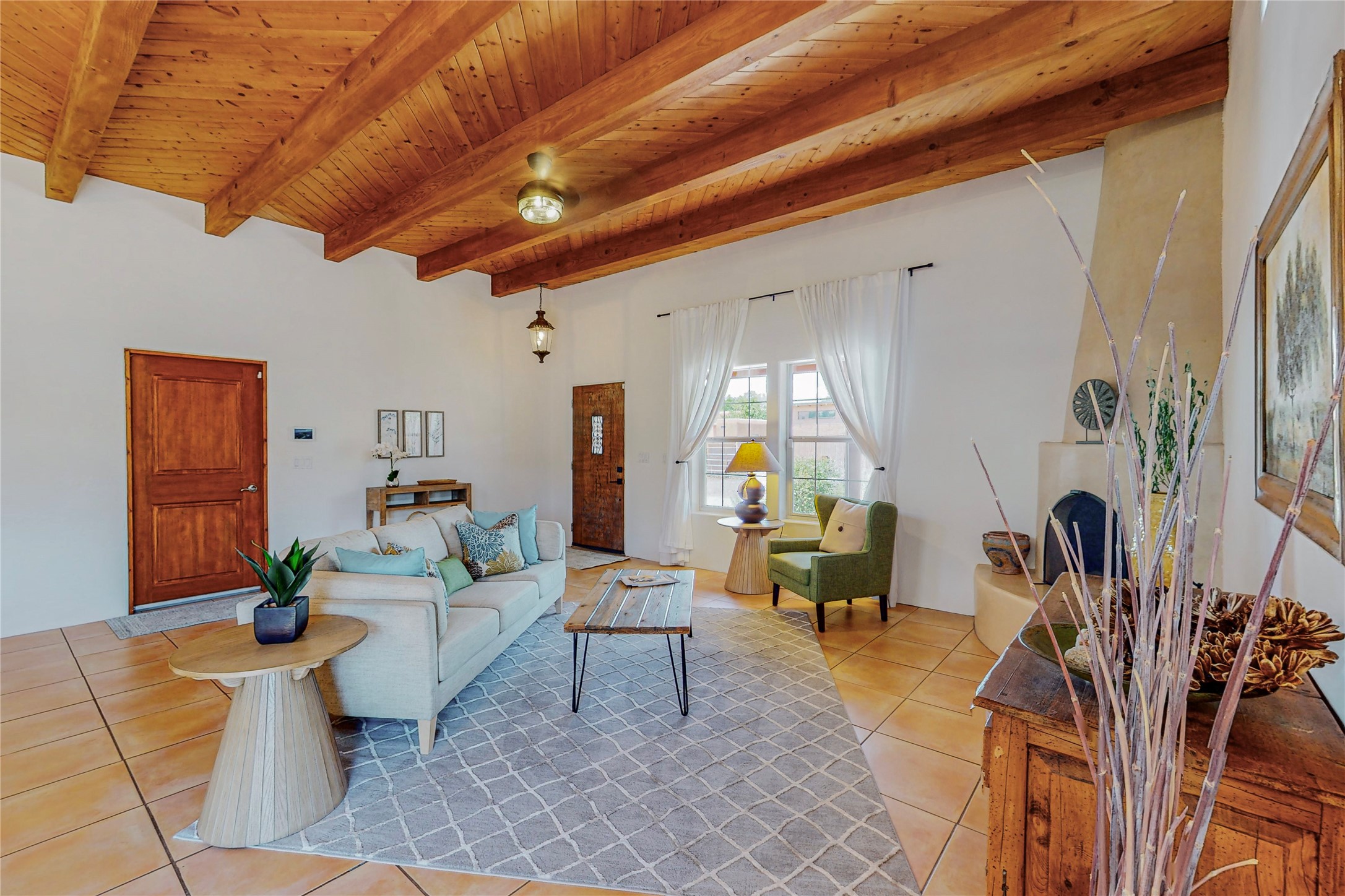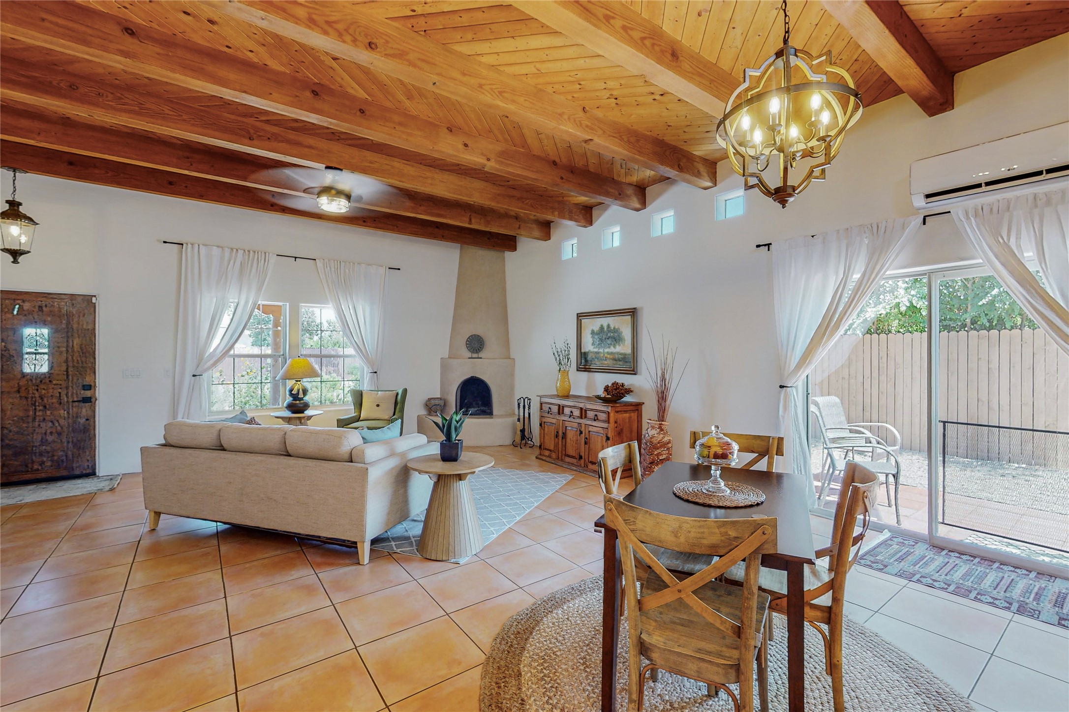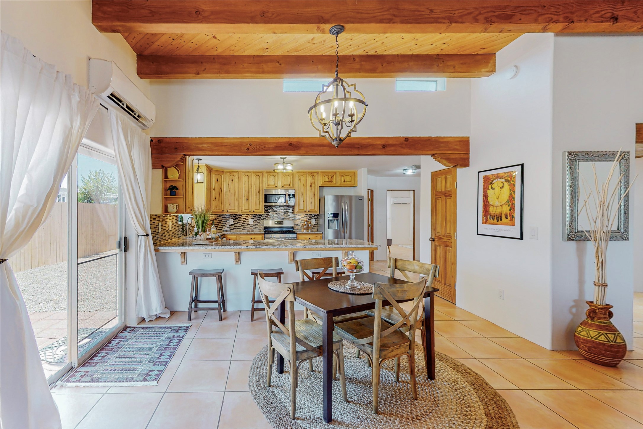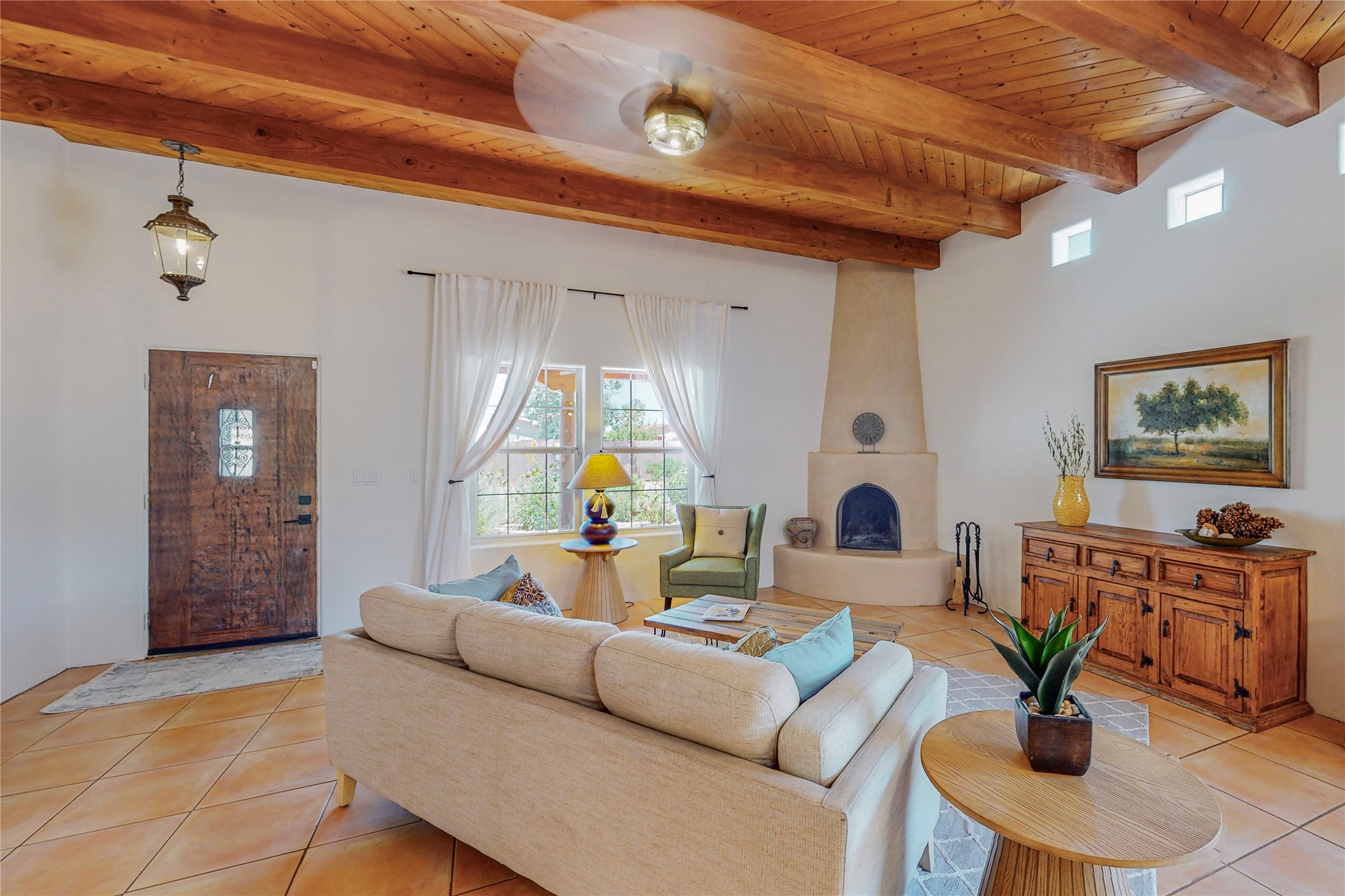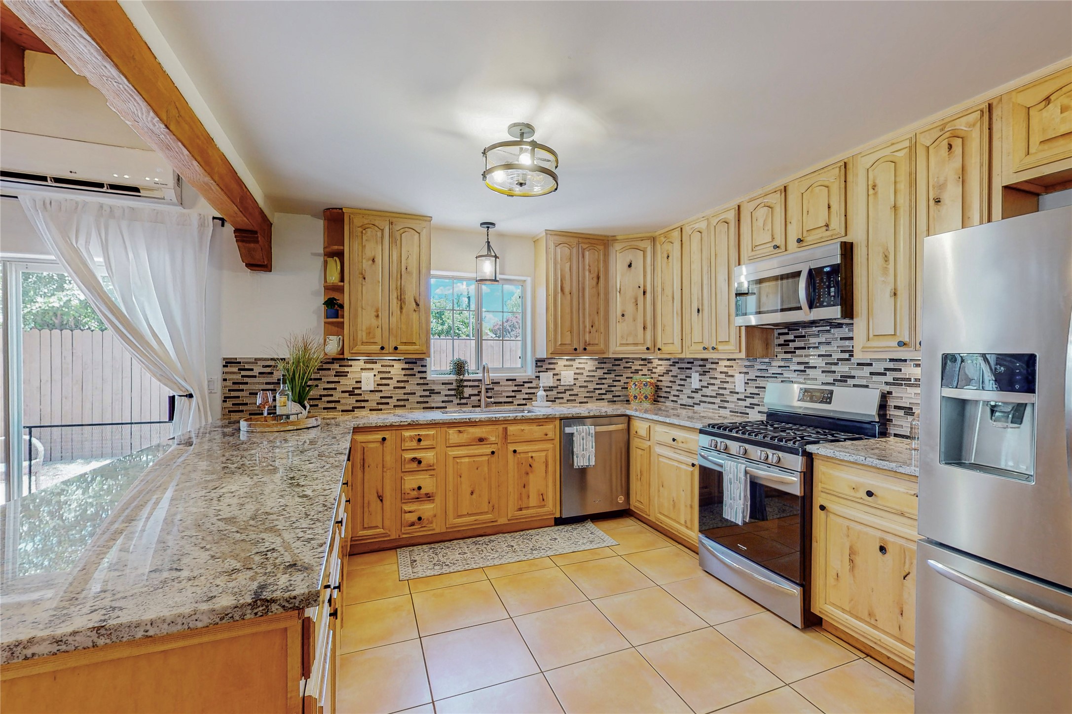Your little piece of country in central Santa Fe. This beautiful, spacious home boasts an open floor plan, four bedrooms, in-floor radiant heat, mini-splits, fresh appliances, and much more. Enjoy your morning coffee in the full-length backyard portal and your autumn/winter evenings nestled up next to the Kiva fireplace in the living room. This unique lot offers plenty of privacy in a prime location near downtown and HWY 599. Updates include remodeled master bathroom, water heater/boiler 2 in 1 unit installed in 2021, light fixtures in 2023, and an updated kitchen with granite counters, farmhouse sink, and appliances. Do not miss this opportunity and schedule your showing today. Imagine the Possibilities!