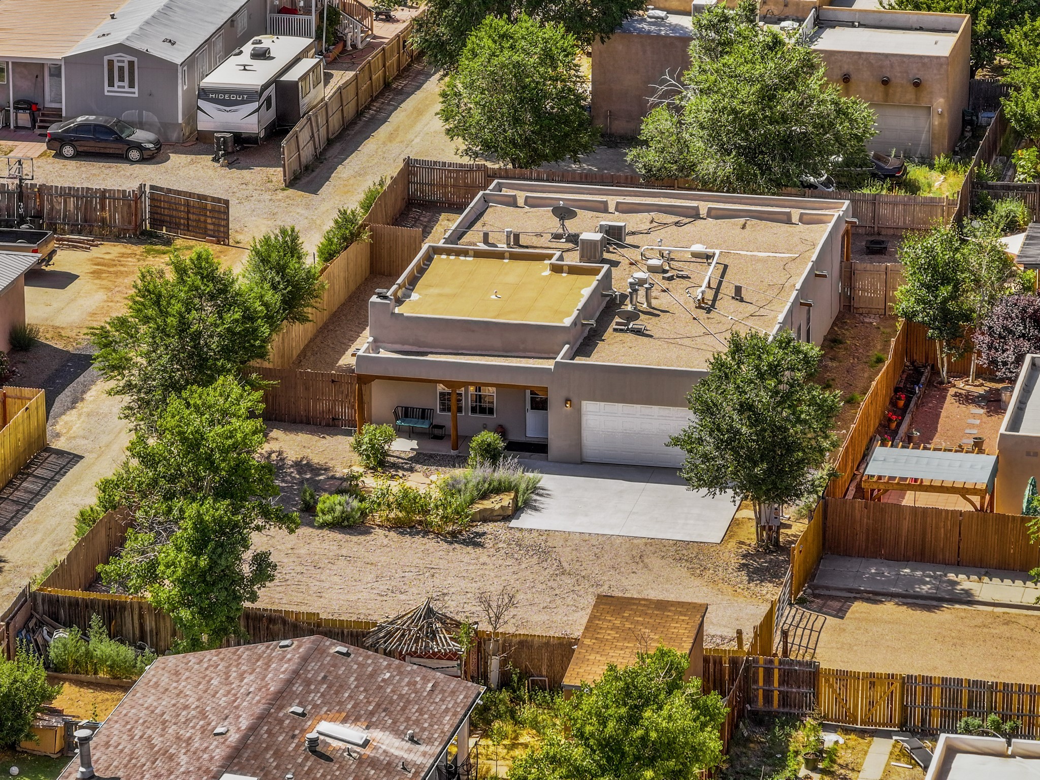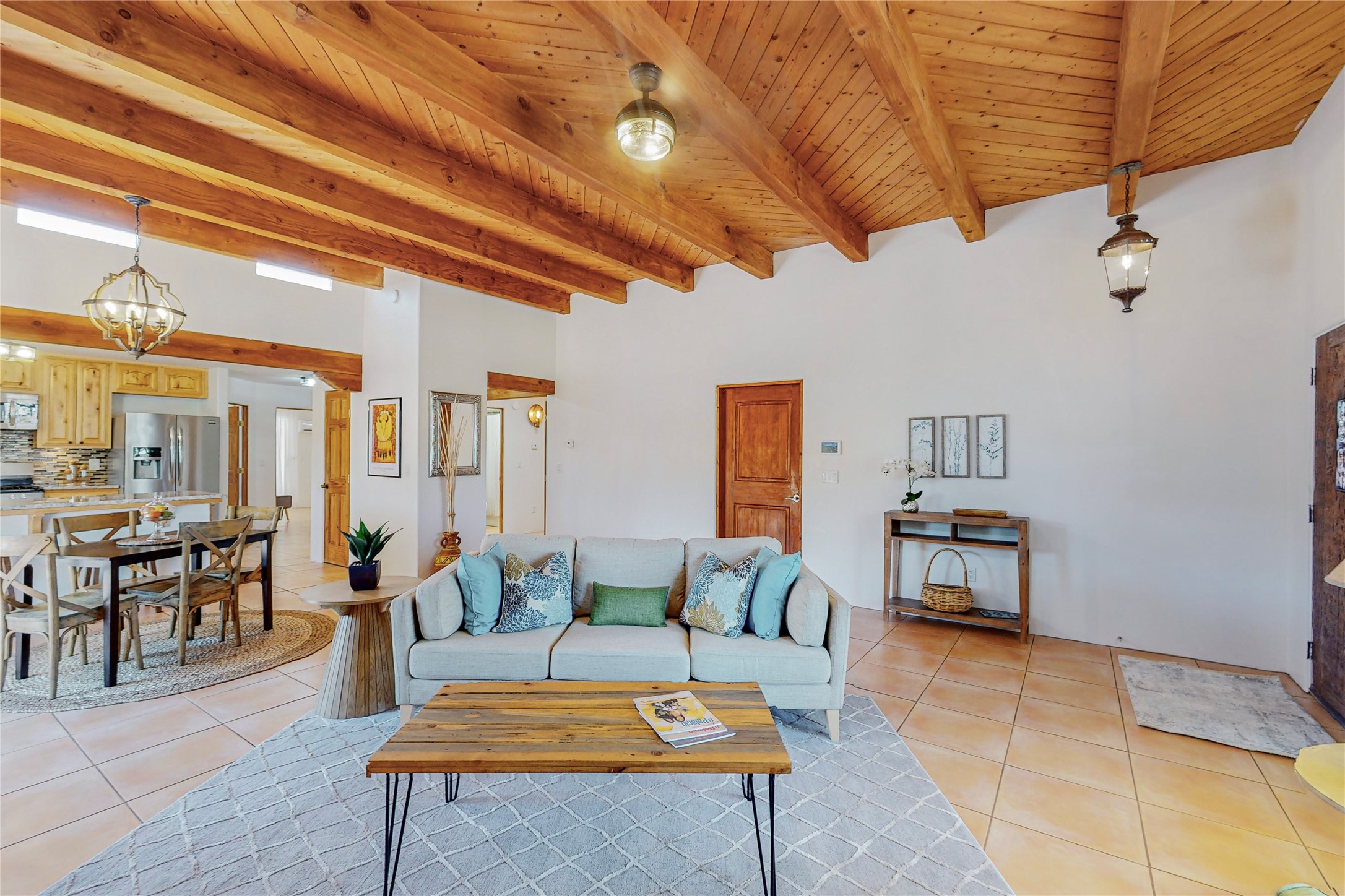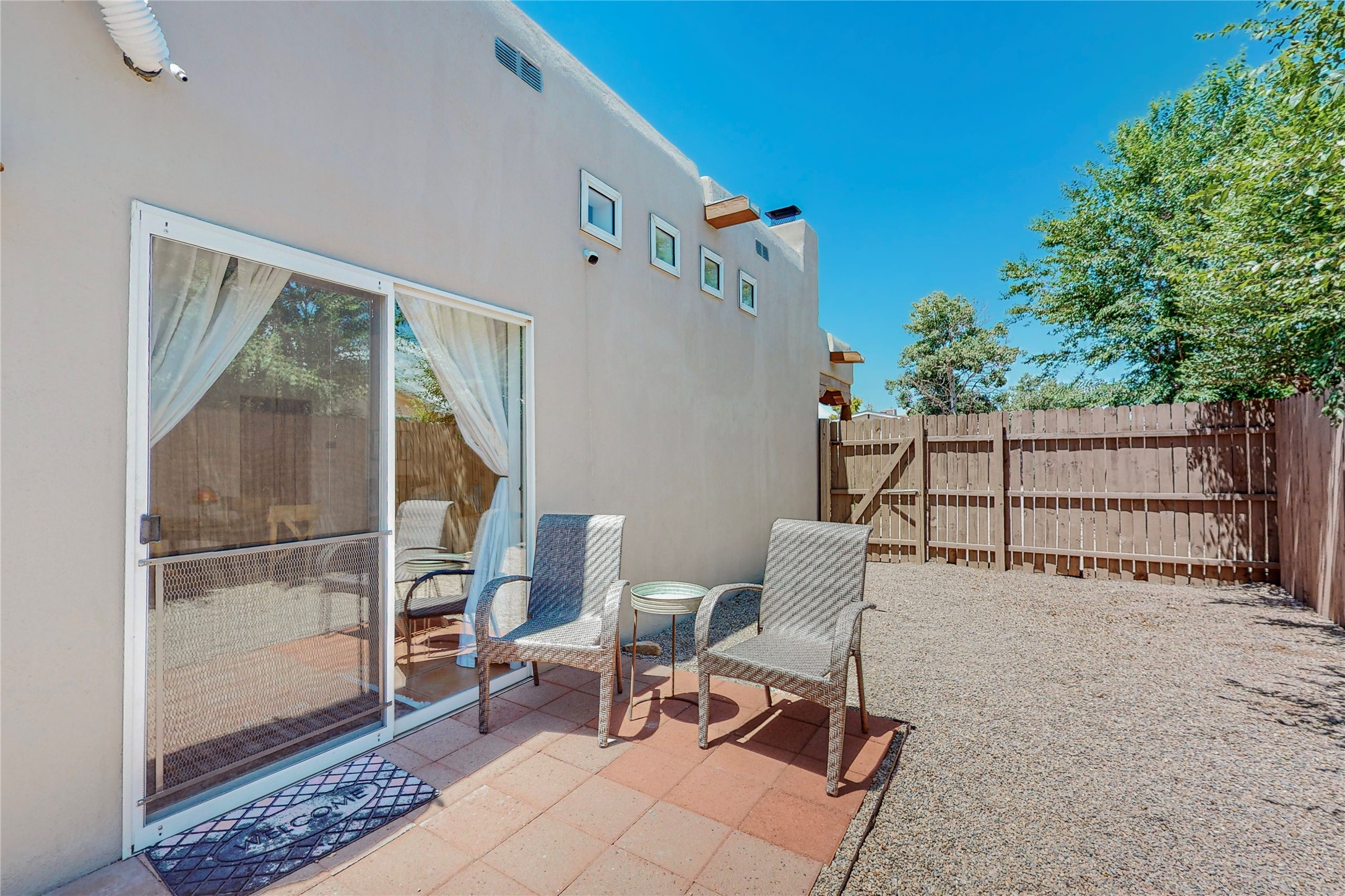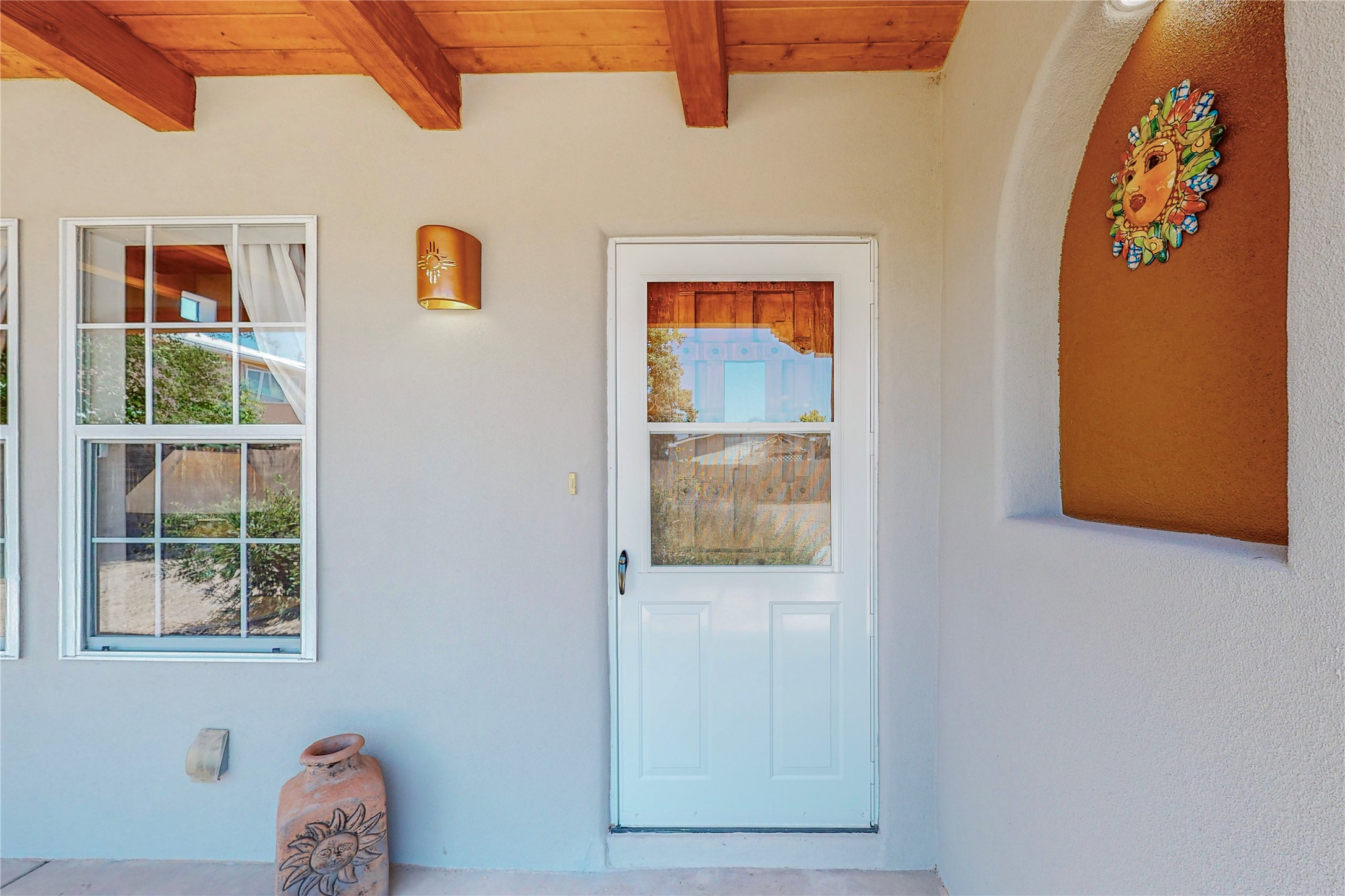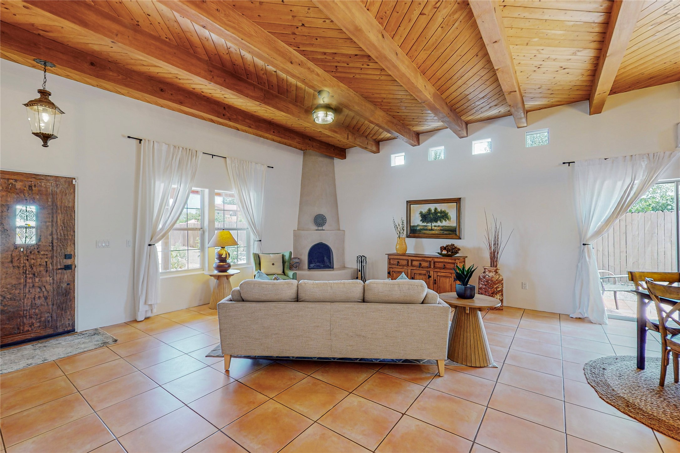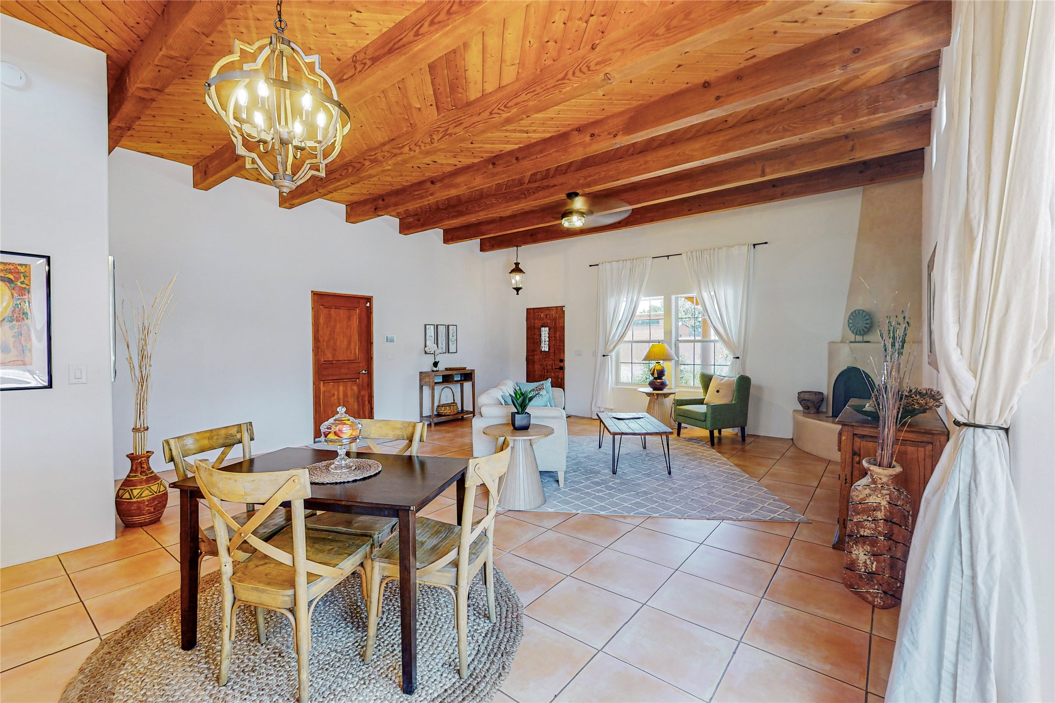 Your little piece of country in central Santa Fe. This beautiful, spacious home boasts an open floor plan, four bedrooms, in-floor radiant heat, mini-splits, fresh appliances, and much more. Enjoy your morning coffee in the full-length backyard portal and your autumn/winter evenings nestled up next to the Kiva fireplace in the living room. This unique lot offers plenty of privacy in a prime location near downtown and HWY 599. Updates include remodeled master bathroom, water heater/boiler 2 in 1 unit installed in 2021, light fixtures in 2023, and an updated kitchen with granite counters, farmhouse sink, and appliances. Do not miss this opportunity and schedule your showing today. Imagine the Possibilities!