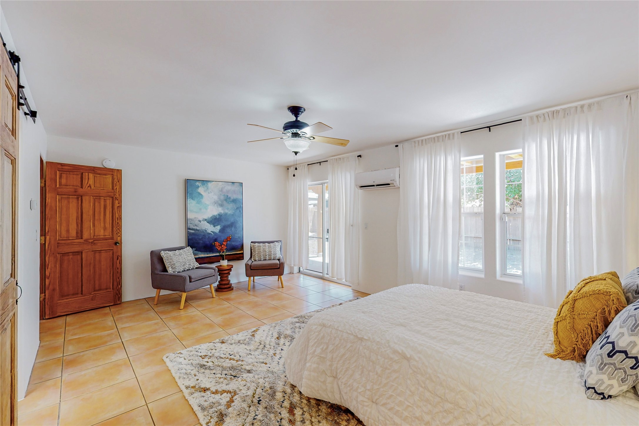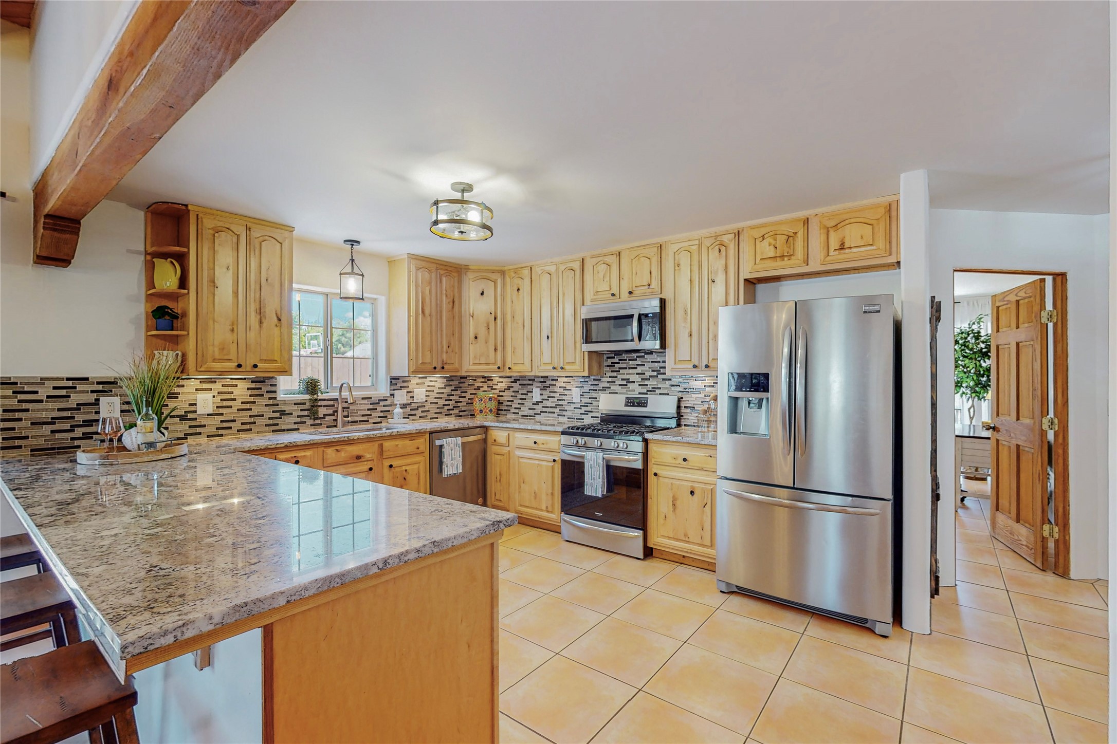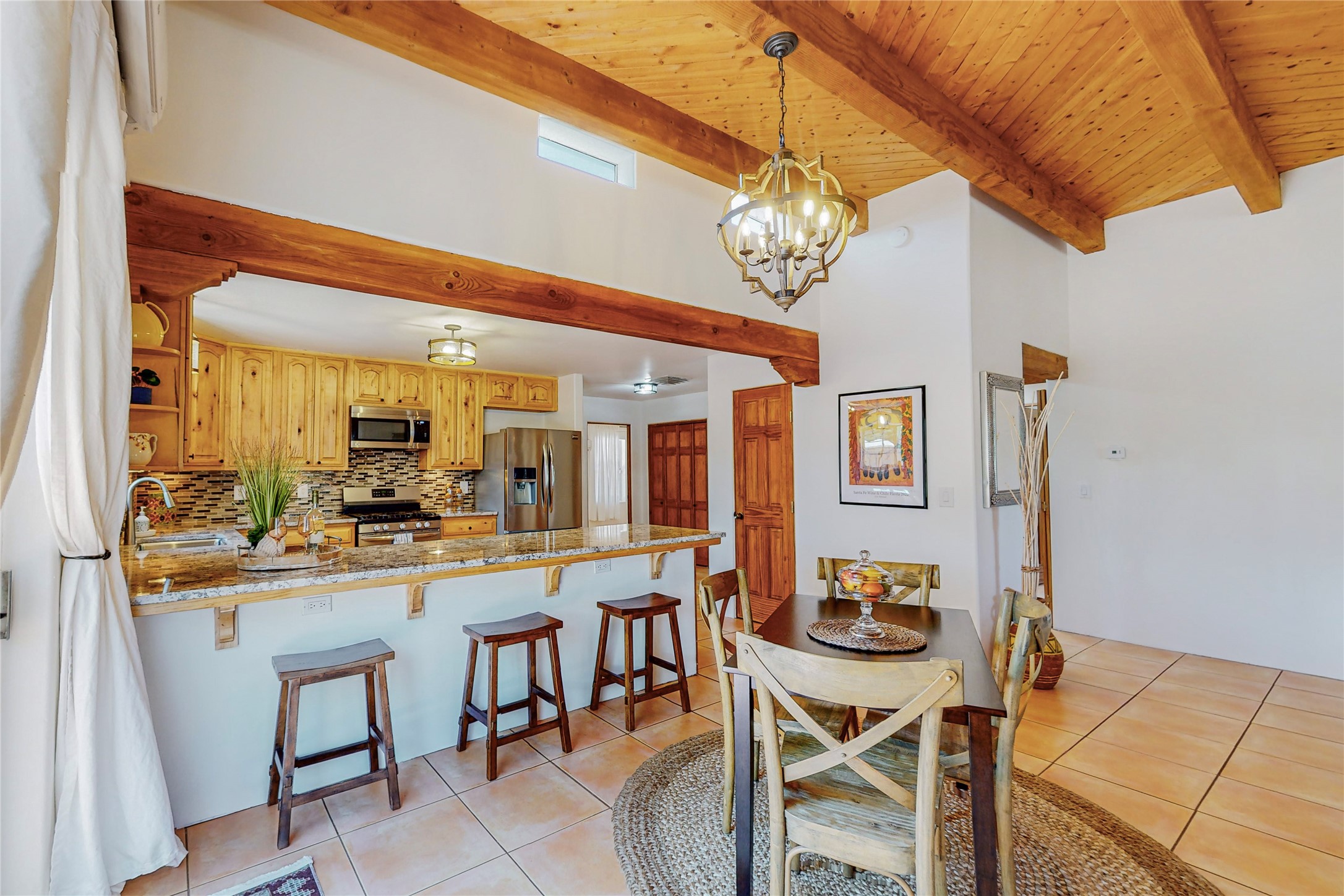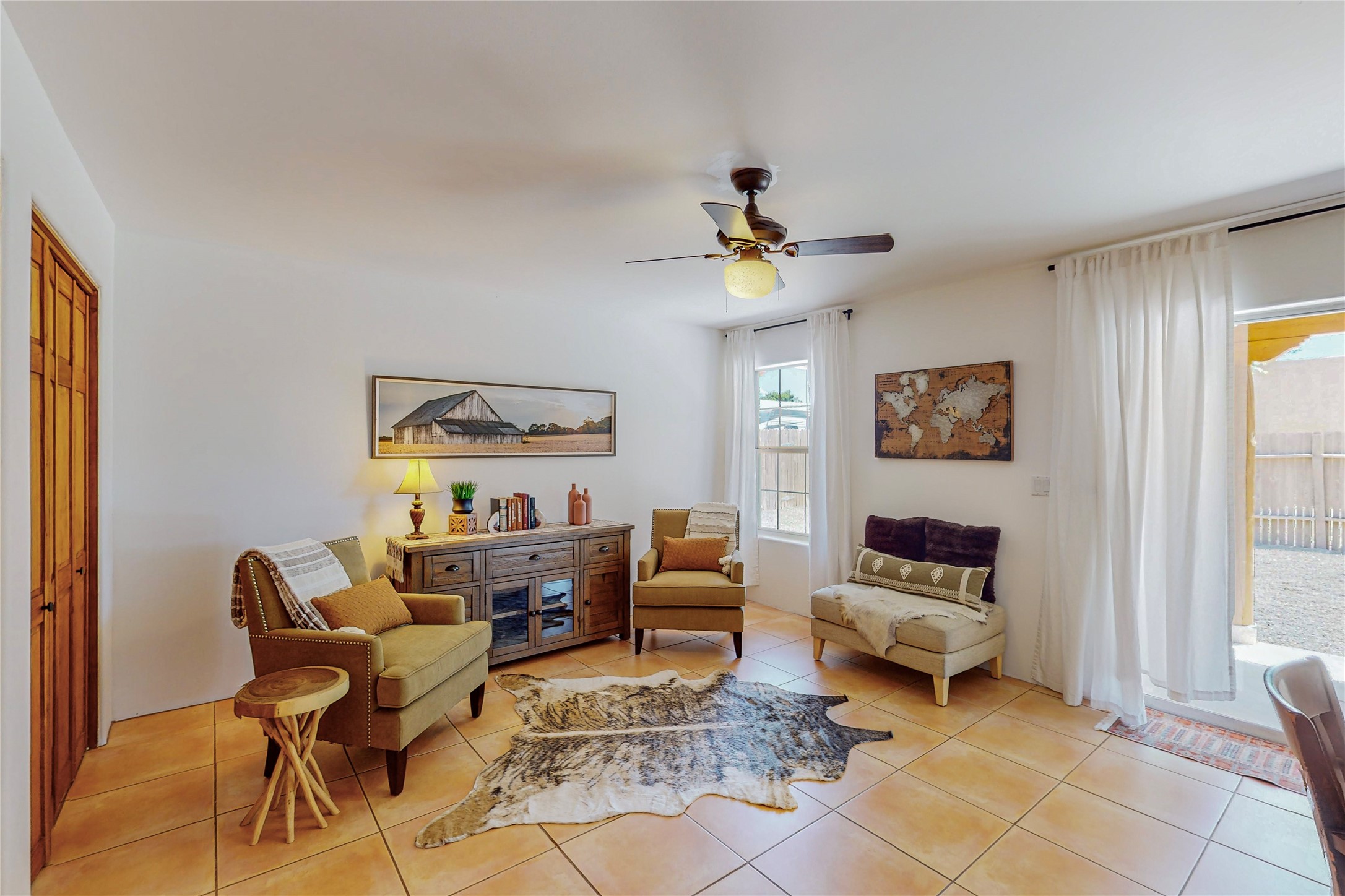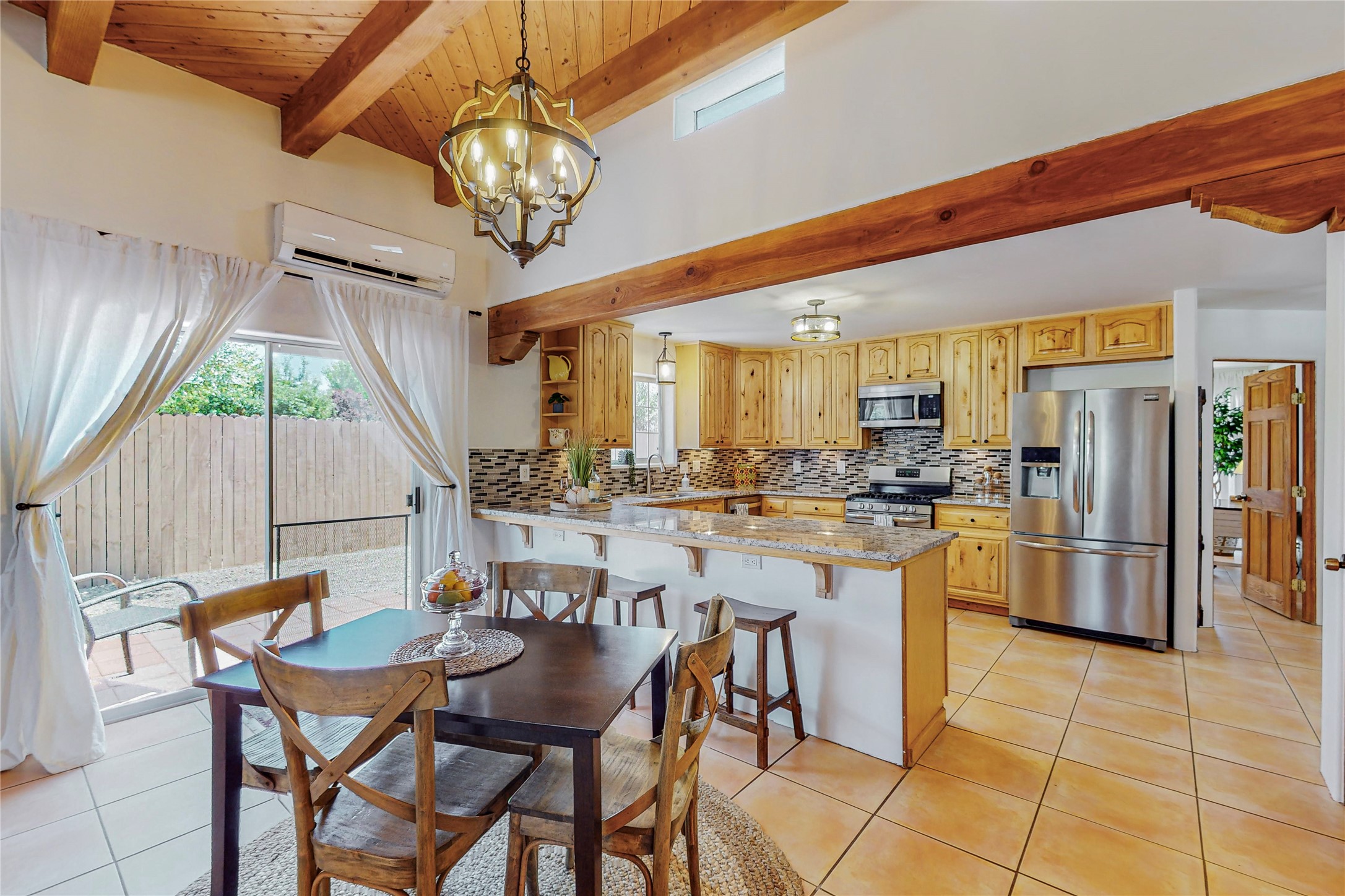 Your little piece of country in central Santa Fe. This beautiful, spacious home boasts an open floor plan, four bedrooms, in-floor radiant heat, mini-splits, fresh appliances, and much more. Enjoy your morning coffee in the full-length backyard portal and your autumn/winter evenings nestled up next to the Kiva fireplace in the living room. This unique lot offers plenty of privacy in a prime location near downtown and HWY 599. Updates include remodeled master bathroom, water heater/boiler 2 in 1 unit installed in 2021, light fixtures in 2023, and an updated kitchen with granite counters, farmhouse sink, and appliances. Do not miss this opportunity and schedule your showing today. Imagine the Possibilities!