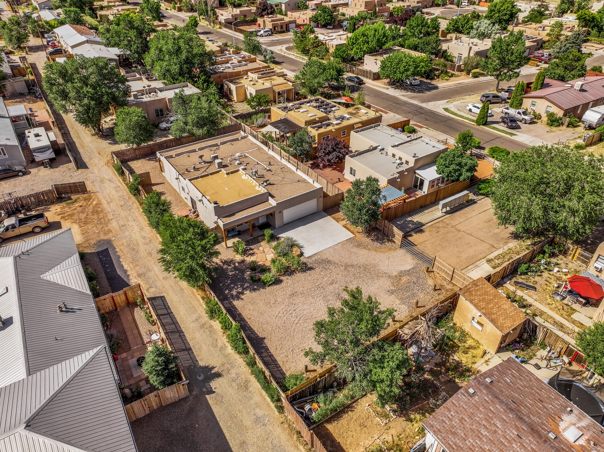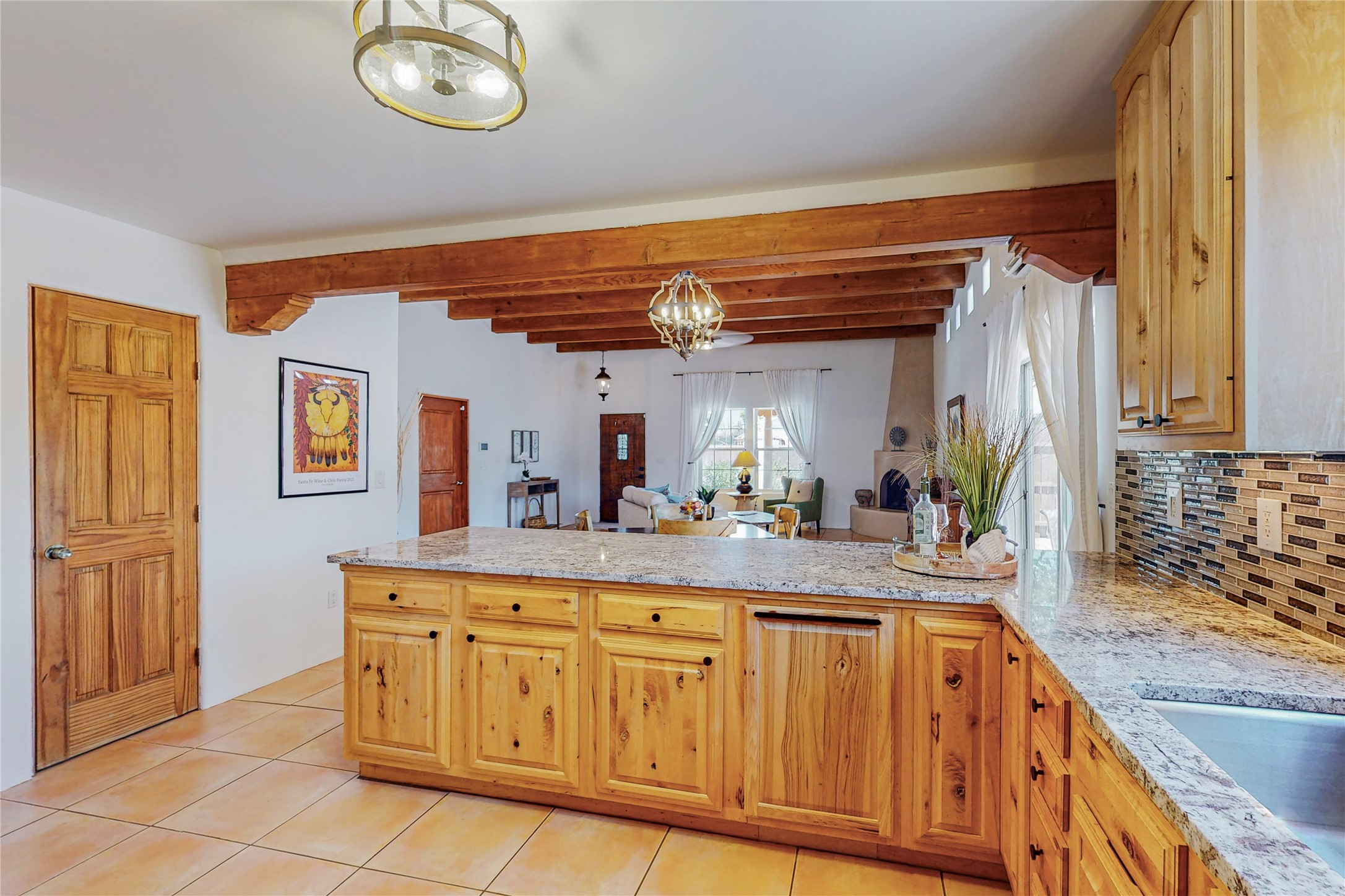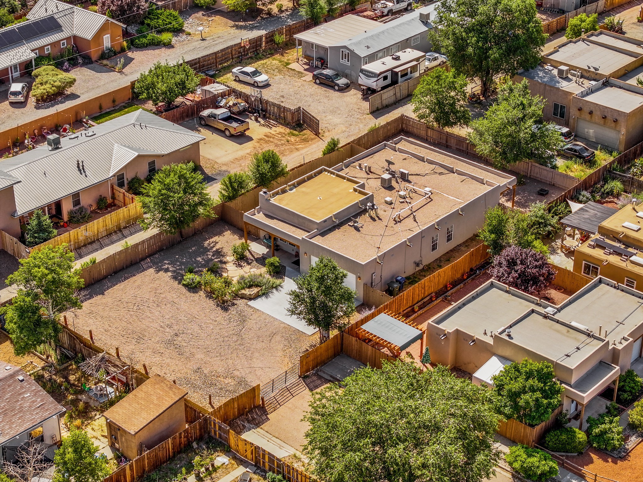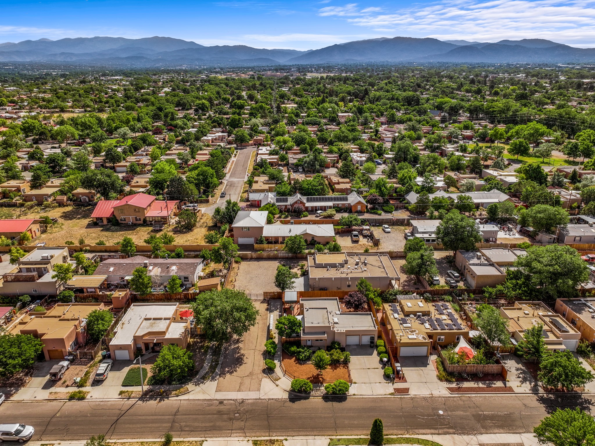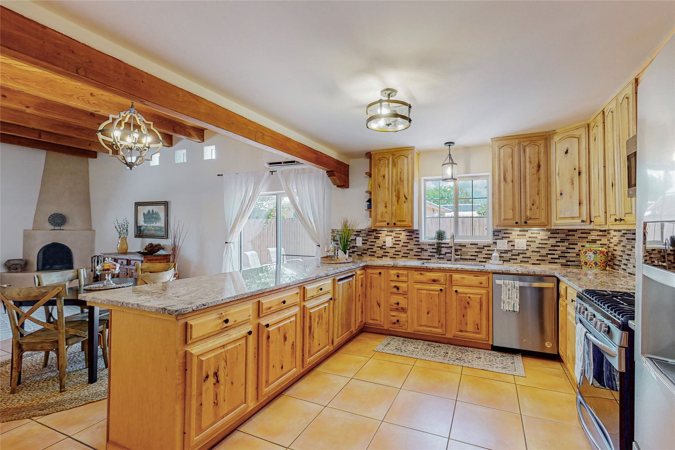 Your little piece of country in central Santa Fe. This beautiful, spacious home boasts an open floor plan, four bedrooms, in-floor radiant heat, mini-splits, fresh appliances, and much more. Enjoy your morning coffee in the full-length backyard portal and your autumn/winter evenings nestled up next to the Kiva fireplace in the living room. This unique lot offers plenty of privacy in a prime location near downtown and HWY 599. Updates include remodeled master bathroom, water heater/boiler 2 in 1 unit installed in 2021, light fixtures in 2023, and an updated kitchen with granite counters, farmhouse sink, and appliances. Do not miss this opportunity and schedule your showing today. Imagine the Possibilities!