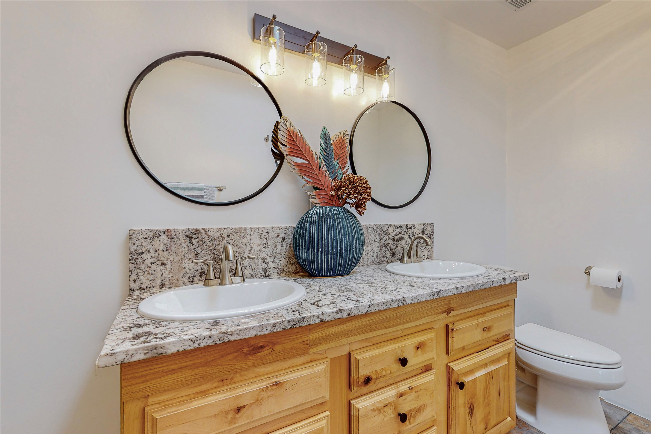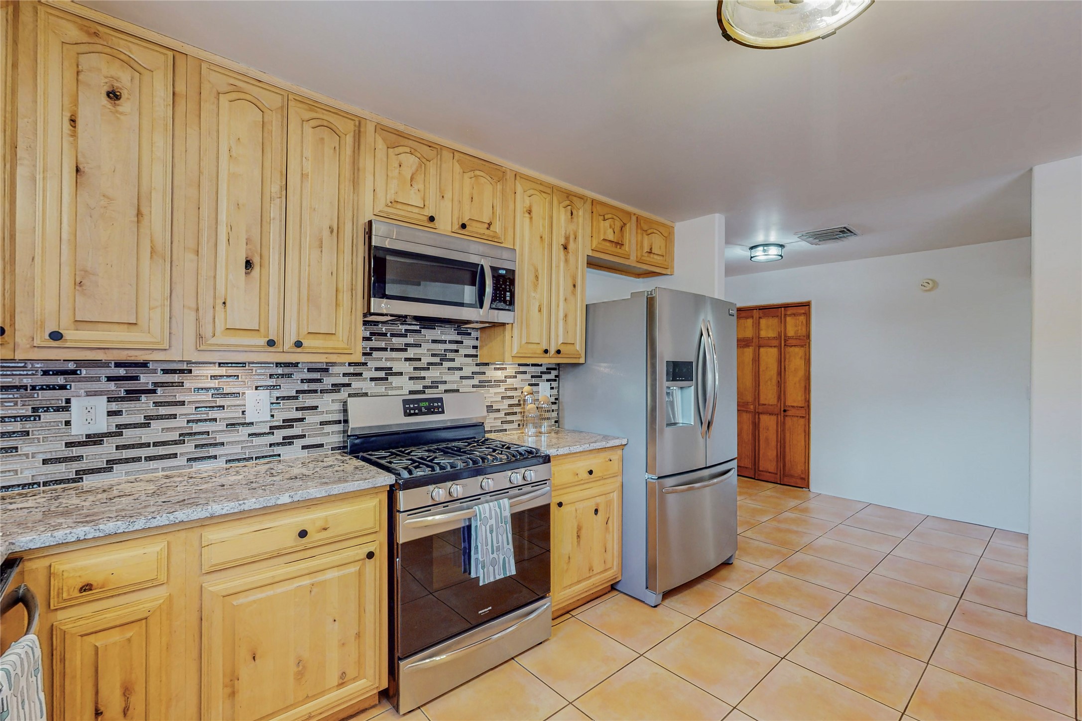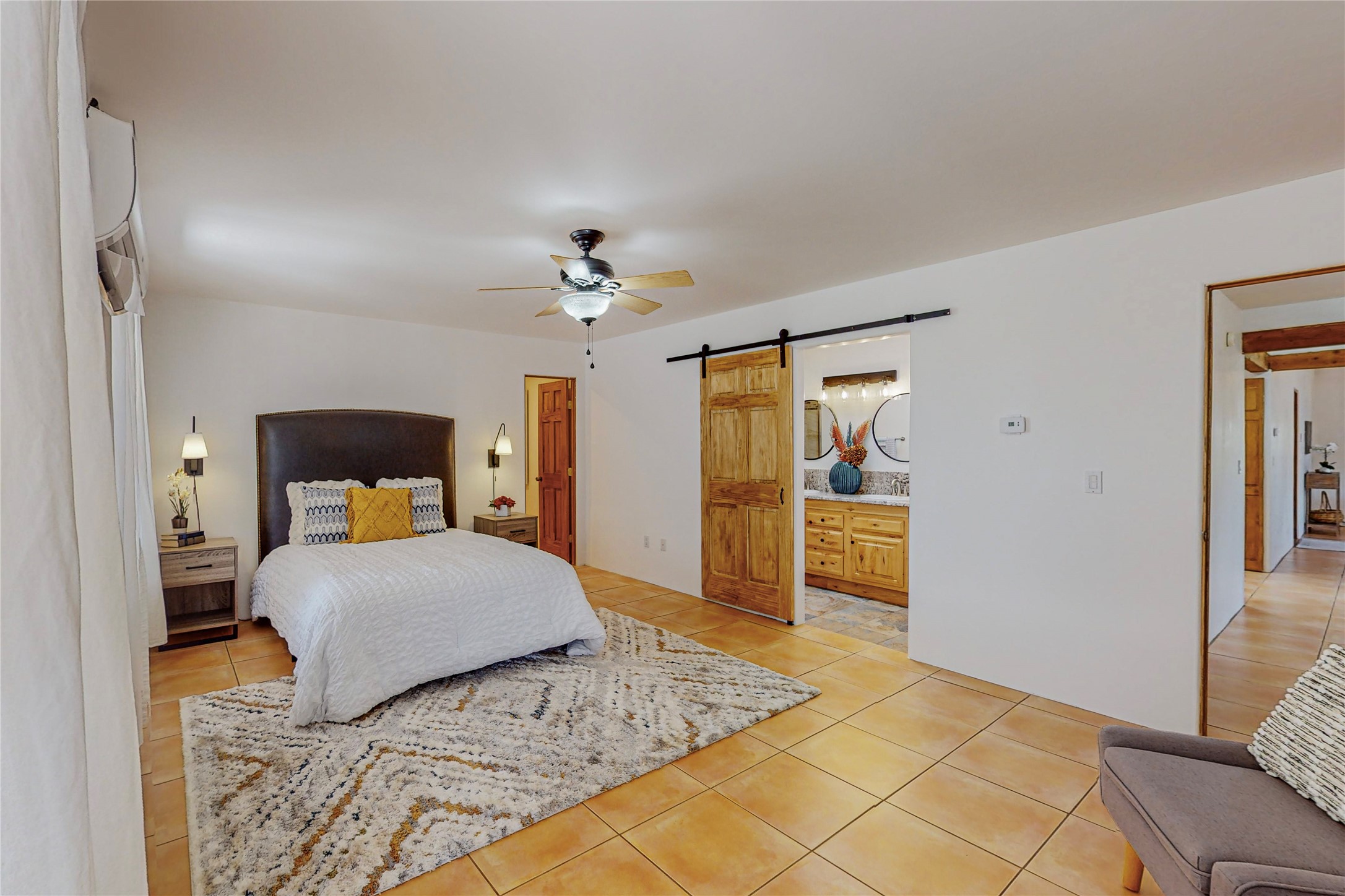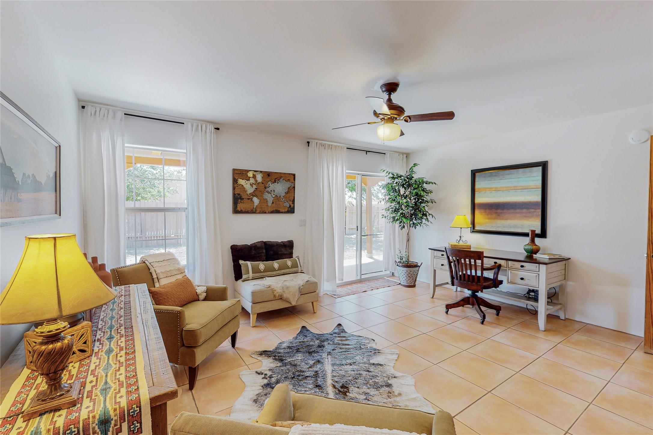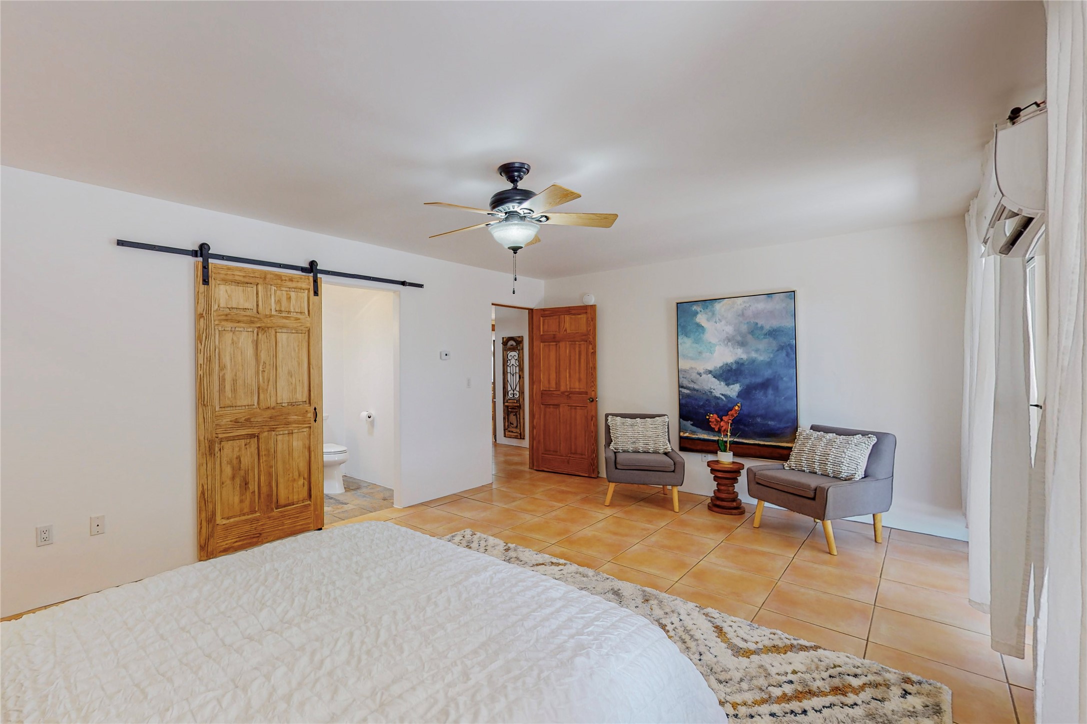 Your little piece of country in central Santa Fe. This beautiful, spacious home boasts an open floor plan, four bedrooms, in-floor radiant heat, mini-splits, fresh appliances, and much more. Enjoy your morning coffee in the full-length backyard portal and your autumn/winter evenings nestled up next to the Kiva fireplace in the living room. This unique lot offers plenty of privacy in a prime location near downtown and HWY 599. Updates include remodeled master bathroom, water heater/boiler 2 in 1 unit installed in 2021, light fixtures in 2023, and an updated kitchen with granite counters, farmhouse sink, and appliances. Do not miss this opportunity and schedule your showing today. Imagine the Possibilities!