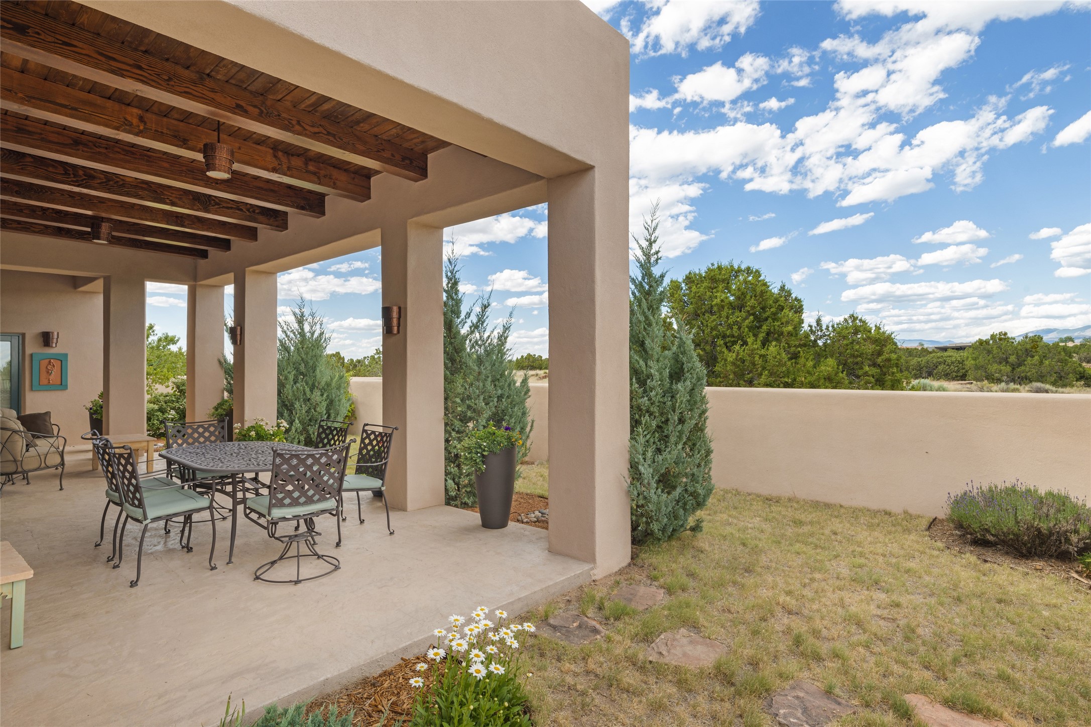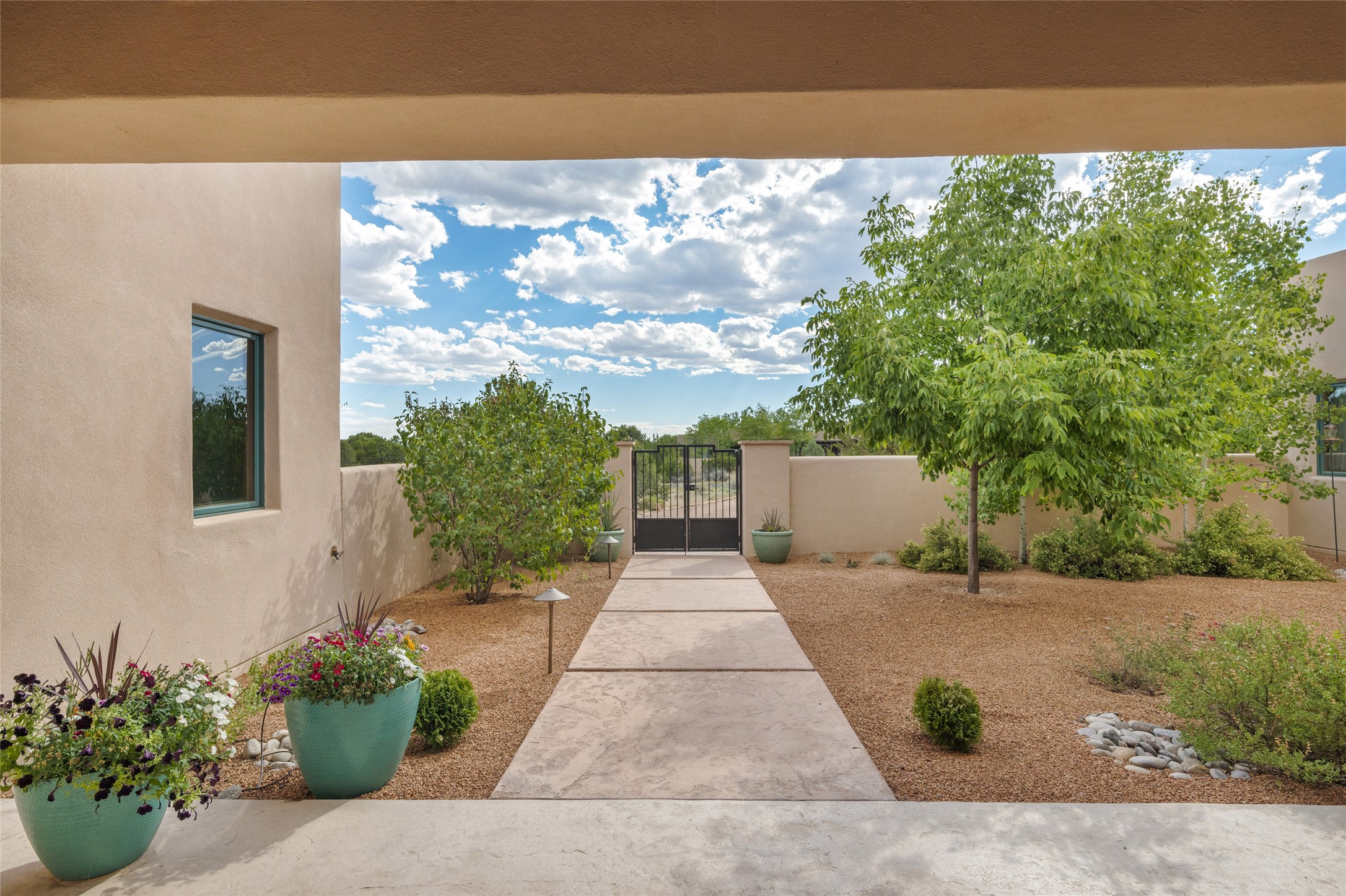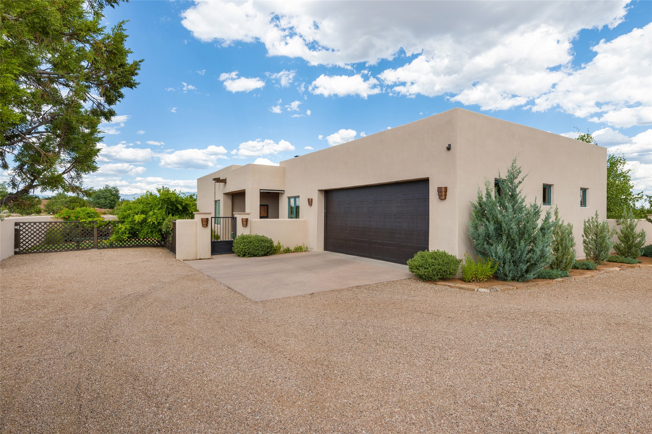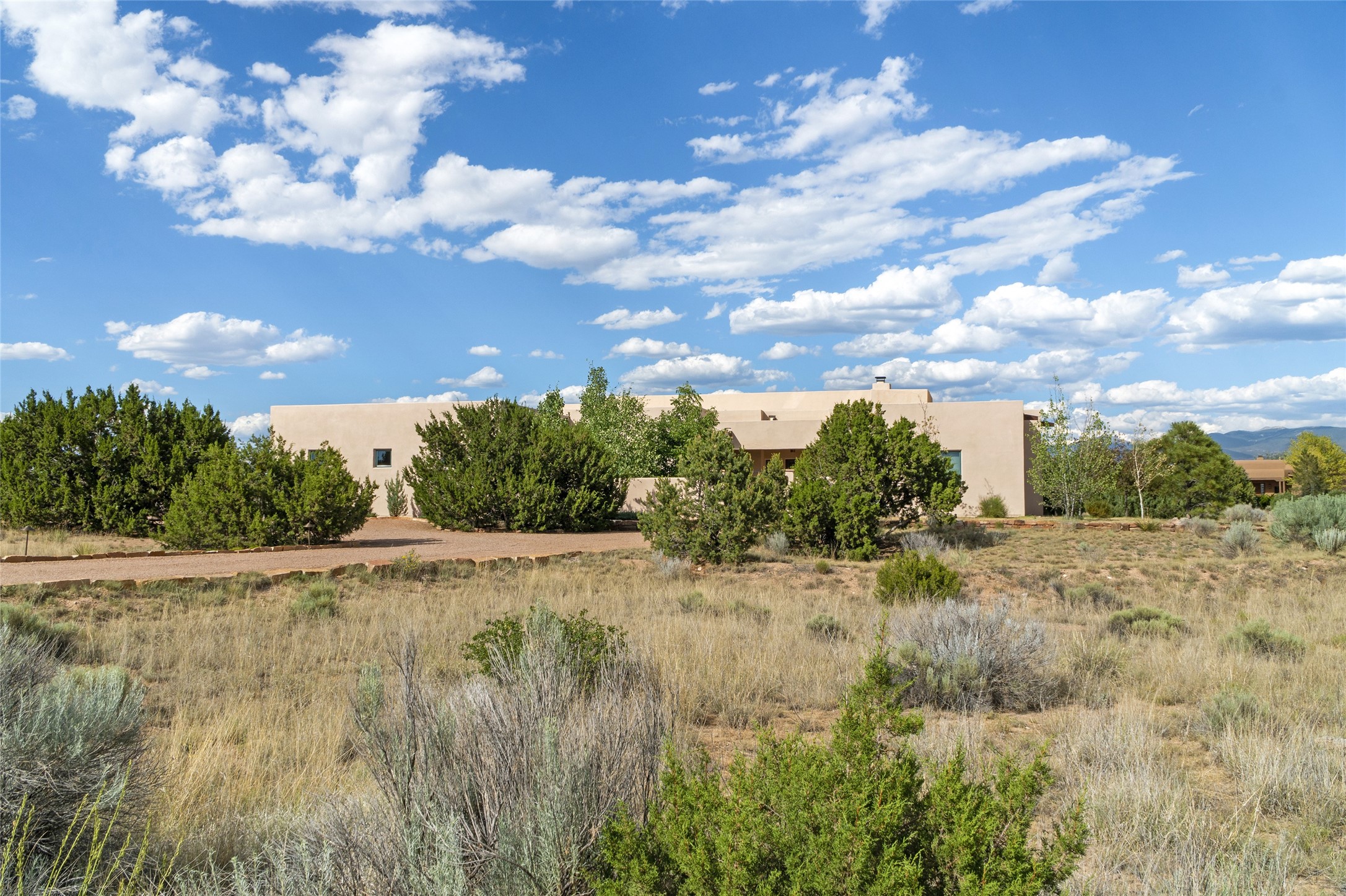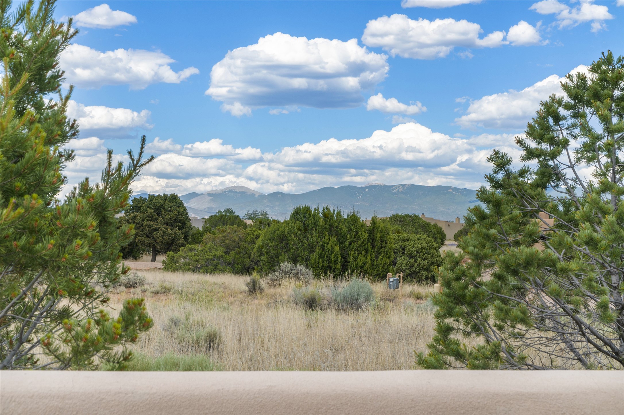 This thoughtfully designed, custom-built home with beautiful views of the Sangre de Cristo Mountains is located in the Sierra Rosa Loop enclave on a private cul-de-sac in Las Campanas. Owner-built and lightly lived-in, the property has been meticulously maintained. A lovely landscaped entrance entrance welcomes visitors to a front vestibule and beckons entry to the open living/dining area with high ceilings and access to the outdoor east facing portal. The large gourmet kitchen is complete with high-end appliances and a large center island, ideal for entertaining, and opens to the family area and north-facing portal with a miniature practice putting green. The separation of the primary bedroom and guest bedroom wings is ideal. Located off the family area is an office and the generous primary bedroom/spa bath with a large walk-in closet and convenient to the laundry room. The guest wing is on the opposite side of the home and each guest bedroom is ensuite with a shared breakfast bar area. Outdoor spaces are irrigated with manicured landscaping and there are partial views to the Jemez Mountains. 15 minutes to the Sante Fe Plaza and the Santa Fe Airport. Memberships to the Club at Las Campanas are optional and available for purchase upon approval.