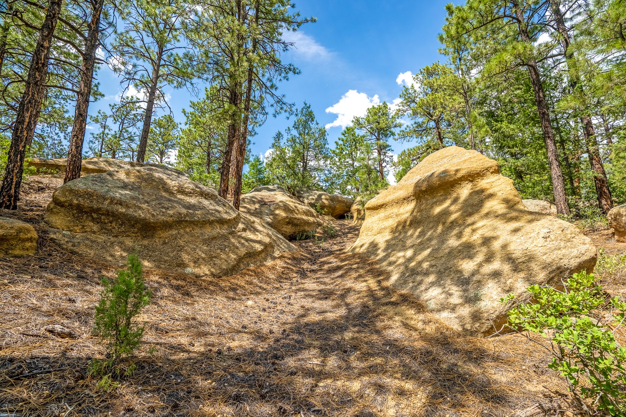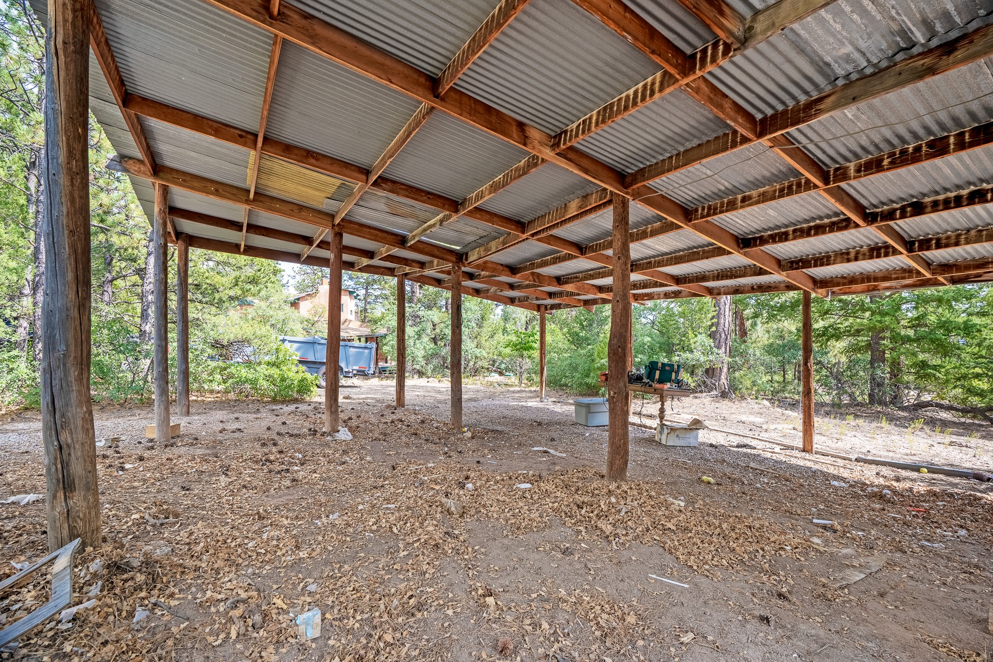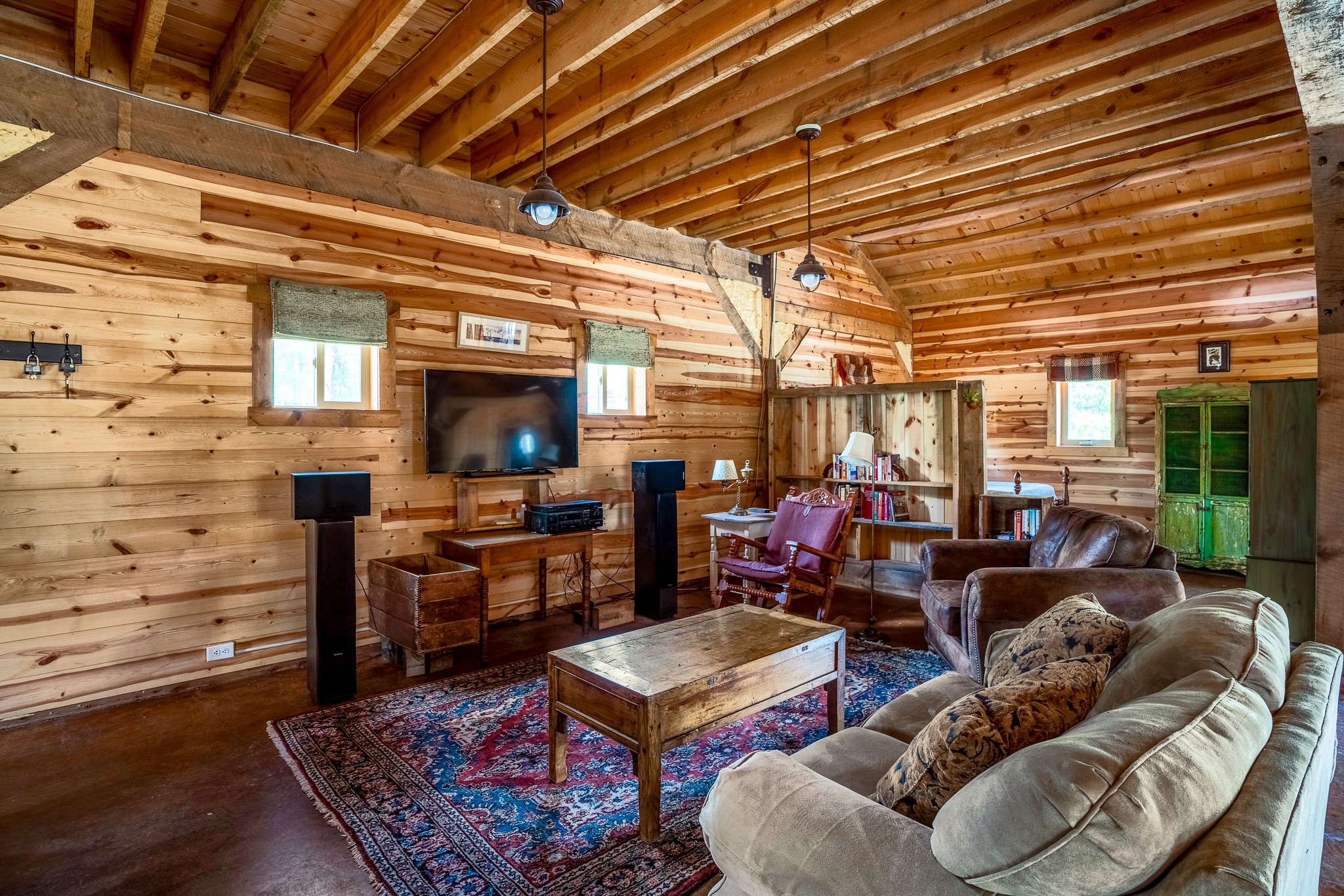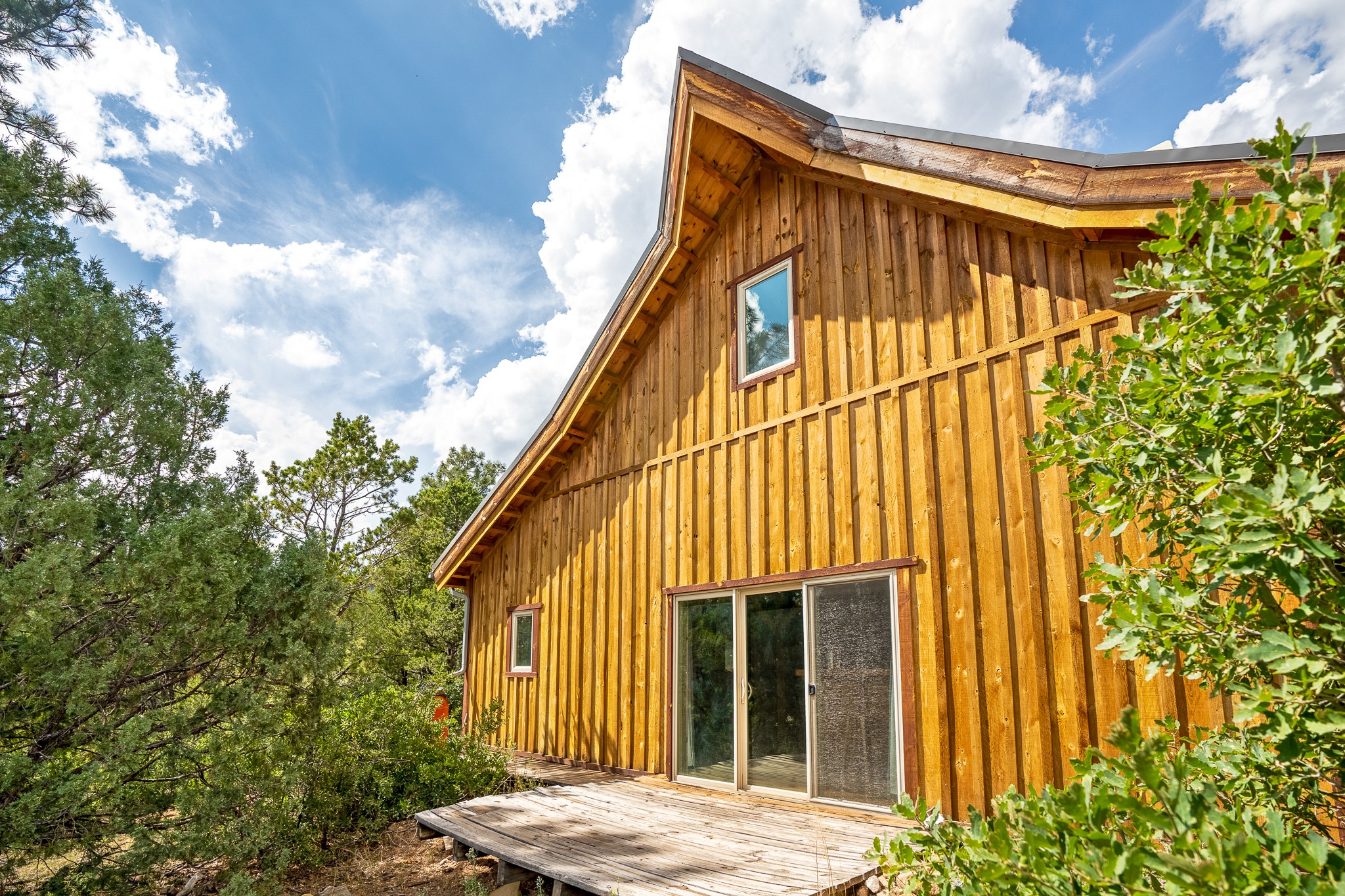 Discover serenity in this beautiful property, nine plus acres on La Cueva Road, in Glorieta. Embrace the rural setting with mature pine trees and captivating rock outcroppings. "The Barn," a spacious cabin-style home on the property, offers off-grid living at its finest. With a small PV solar system, water cistern, composting toilet and clawfoot bathtub, it's a sustainable retreat. Large exposed beams frame two loft spaces, connected by a great center staircase and catwalk. The open main level integrates the kitchen, dining, and living areas seamlessly with 3 sets of glass doors to nature. The original main structure will require renovation and is currently uninhabitable but offers features such as a private well, septic, electric utility services, large south-facing windows, sun deck, loft space, and a private primary suite. Escape the city to this rustic haven just 40 minutes from Santa Fe. Whether you seek tranquility or a creative sanctuary, this property offers both - a genuine mountain retreat. This property is an estate and being sold "as-is" with limited information available. Will most likely need to be a cash transaction given condition.