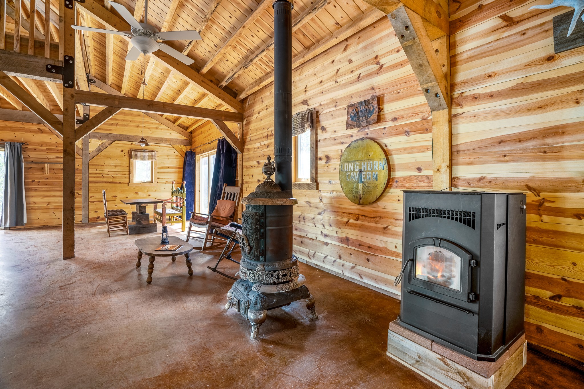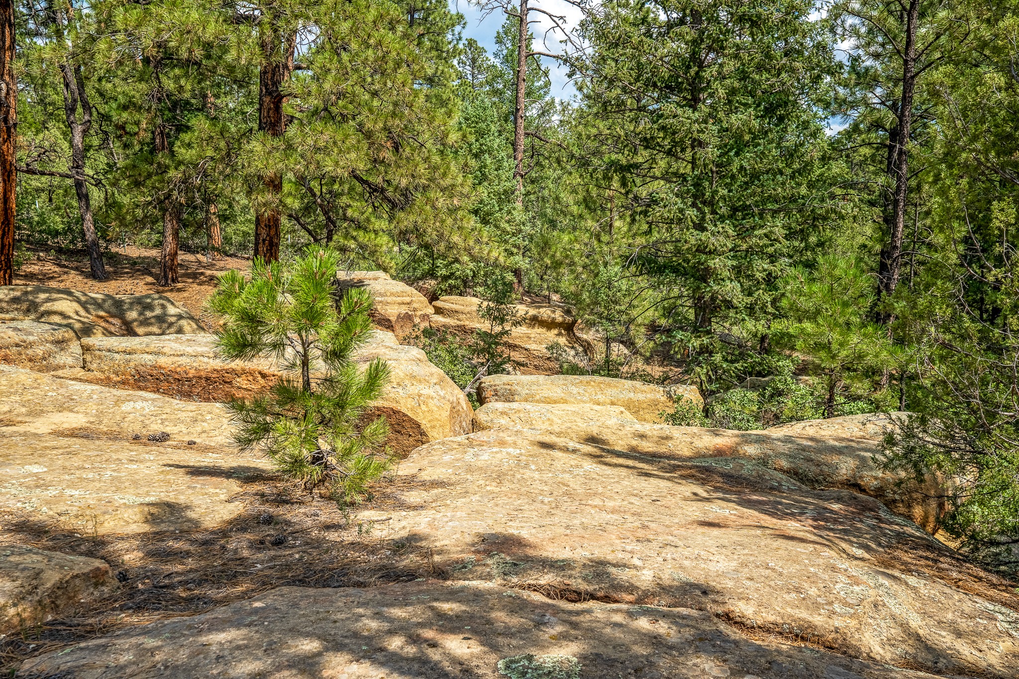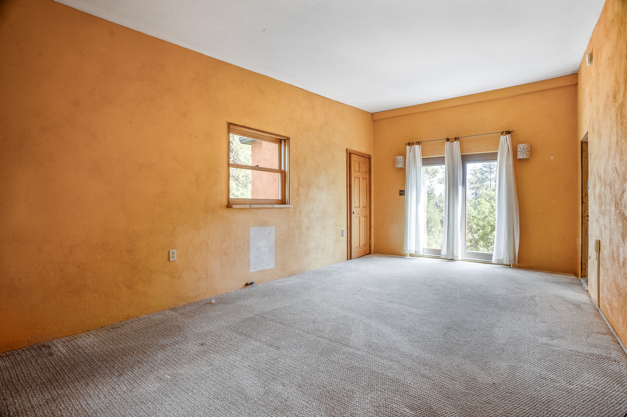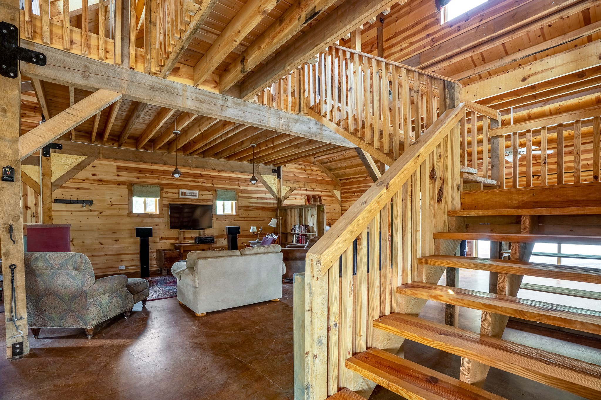 Discover serenity in this beautiful property, nine plus acres on La Cueva Road, in Glorieta. Embrace the rural setting with mature pine trees and captivating rock outcroppings. "The Barn," a spacious cabin-style home on the property, offers off-grid living at its finest. With a small PV solar system, water cistern, composting toilet and clawfoot bathtub, it's a sustainable retreat. Large exposed beams frame two loft spaces, connected by a great center staircase and catwalk. The open main level integrates the kitchen, dining, and living areas seamlessly with 3 sets of glass doors to nature. The original main structure will require renovation and is currently uninhabitable but offers features such as a private well, septic, electric utility services, large south-facing windows, sun deck, loft space, and a private primary suite. Escape the city to this rustic haven just 40 minutes from Santa Fe. Whether you seek tranquility or a creative sanctuary, this property offers both - a genuine mountain retreat. This property is an estate and being sold "as-is" with limited information available. Will most likely need to be a cash transaction given condition.