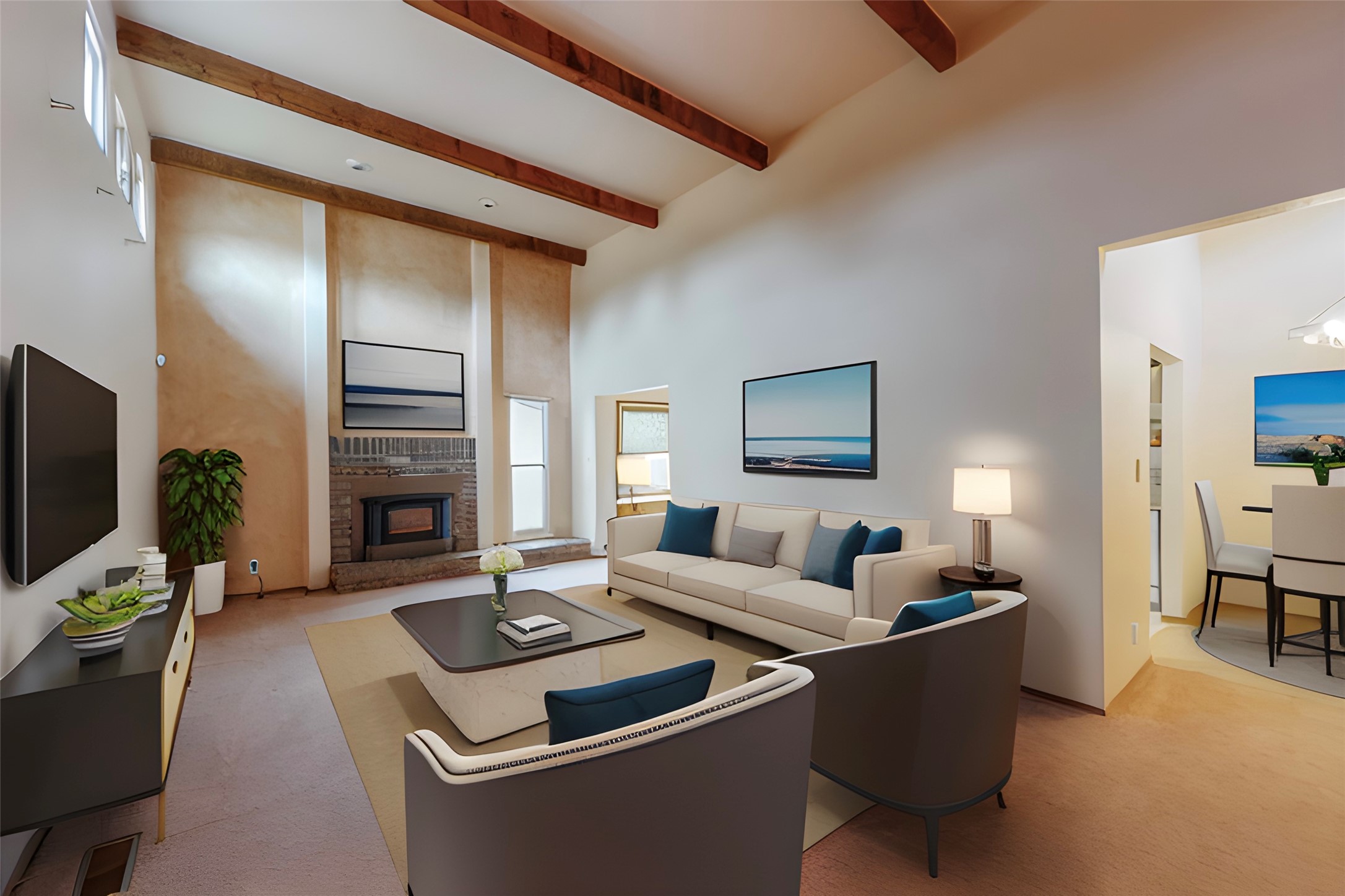 - Interior FeaturesBeamed Ceilings, No Interior Steps