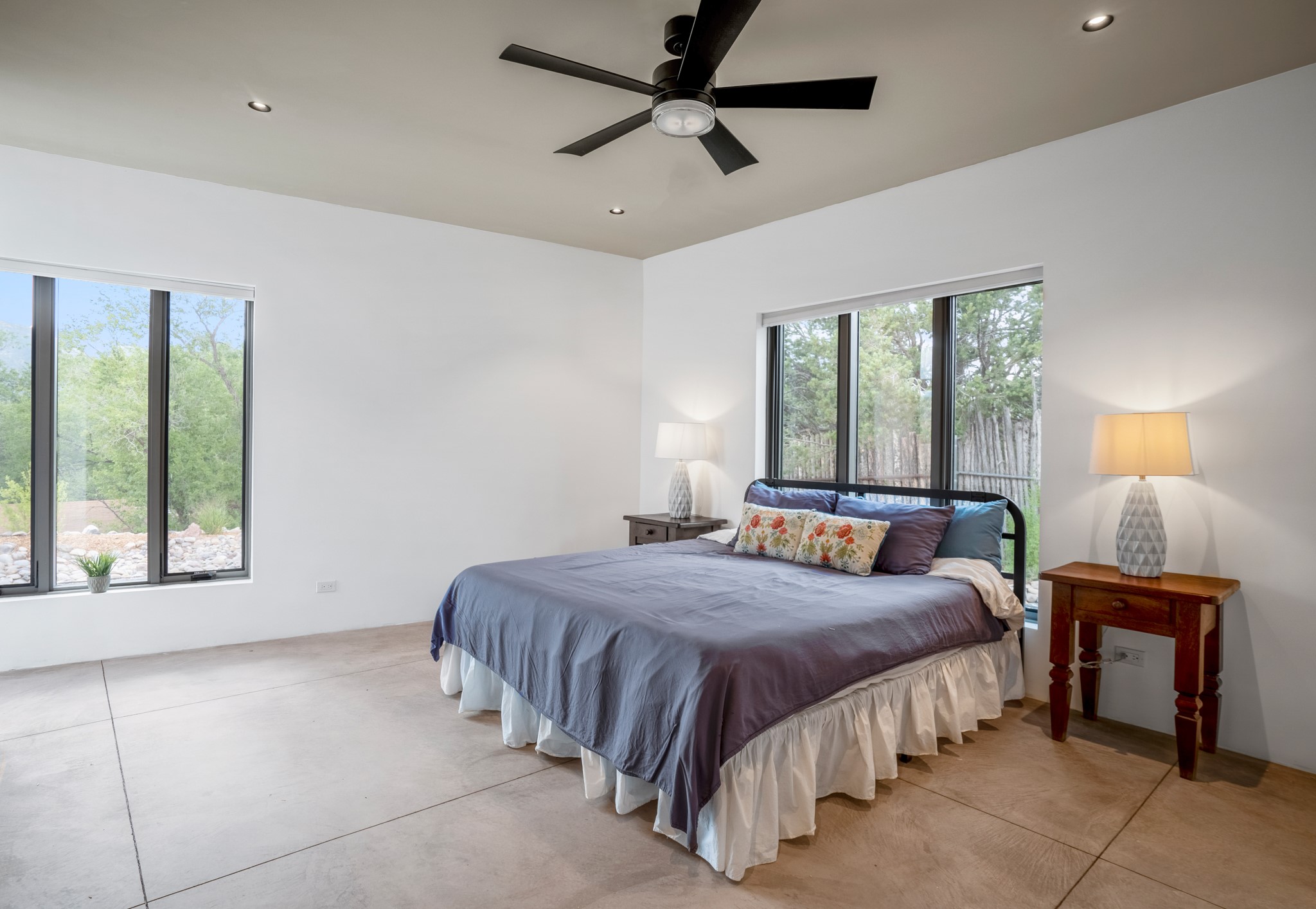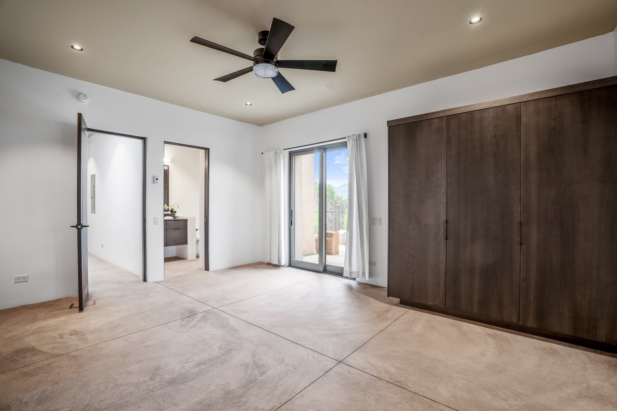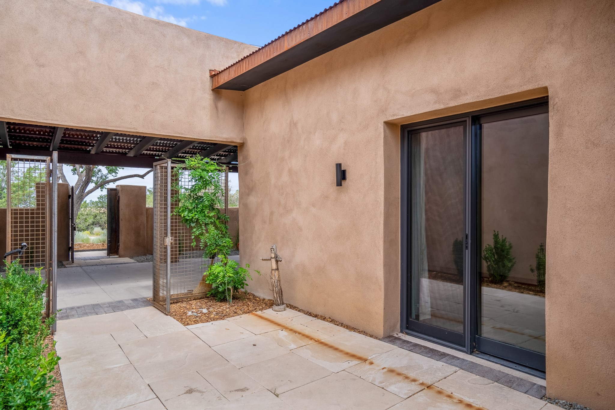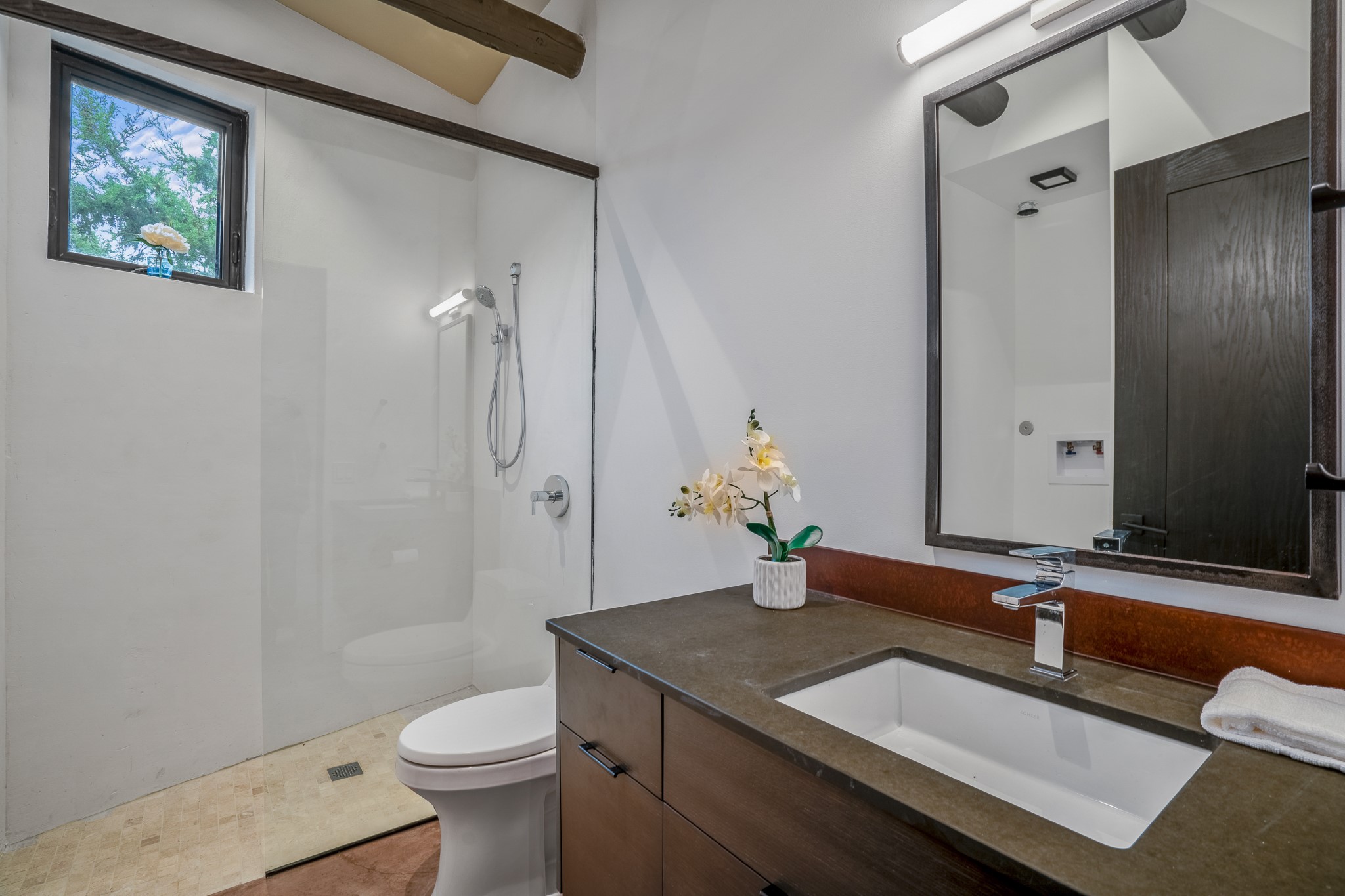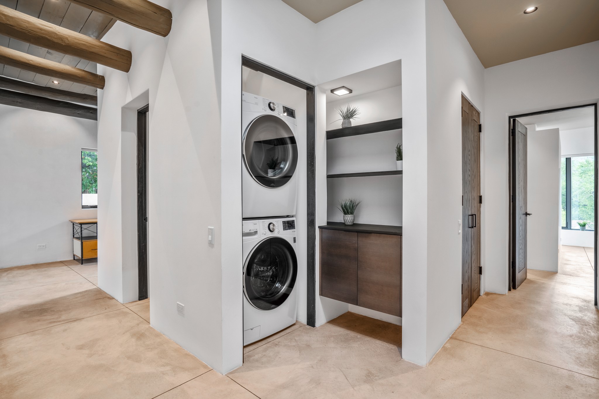 Sited a stone's throw from the Santa Fe River Trail, a virtually brand new adobe home with newly built guest house offers the ideal multi-dwelling retreat for those exploring and enjoying the City Different. The extensive renovation gracefully merges form & function, with new electric, plumbing, and appliances, roof, stucco, and landscaping augmenting the polished contemporary interiors with enticing views of the city below. This thoughtful design has tastefully incorporated elements of the original Southwestern style, like the restored beams and kiva fireplace, into the move-in ready jewel it is now. Clean lines, high ceilings, skylights, and new windows allow an abundance of natural light to fill the interiors. The nearly 2000 square foot floor plan offers an open flow for the kitchen, dining and living spaces, while providing excellent separation for the 2 bedroom suites and additional office. Features of the main house include radiant heated floors, stone countertops, stainless steel appliances, built-in shelving, plaster finishes, spa-like owner's suite, and multiple outdoor patios to enjoy fabulous sunsets. Separated by a front portal and breezeway, the detached 1 bed/1bath casita is a well-appointed haven for visitors. Features of the casita include a Swedish fireplace, full kitchen, high ceilings, built in cabinets and shelving. This rare offering is a short distance from the Plaza, Canyon Road, the ski basin, and Fort Marcy Park complex and an incredible value with immeasurable peace of mind for years to come.
