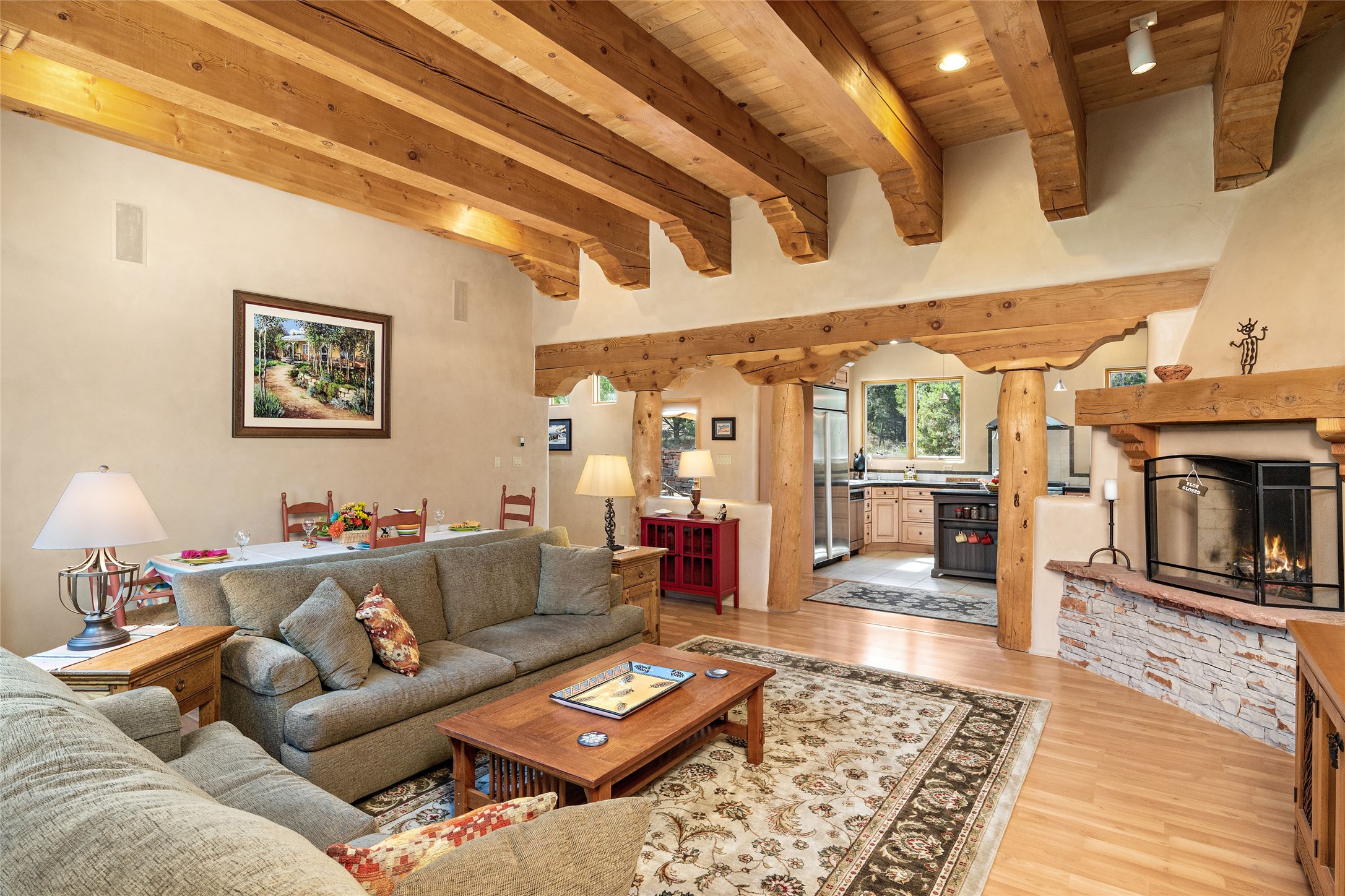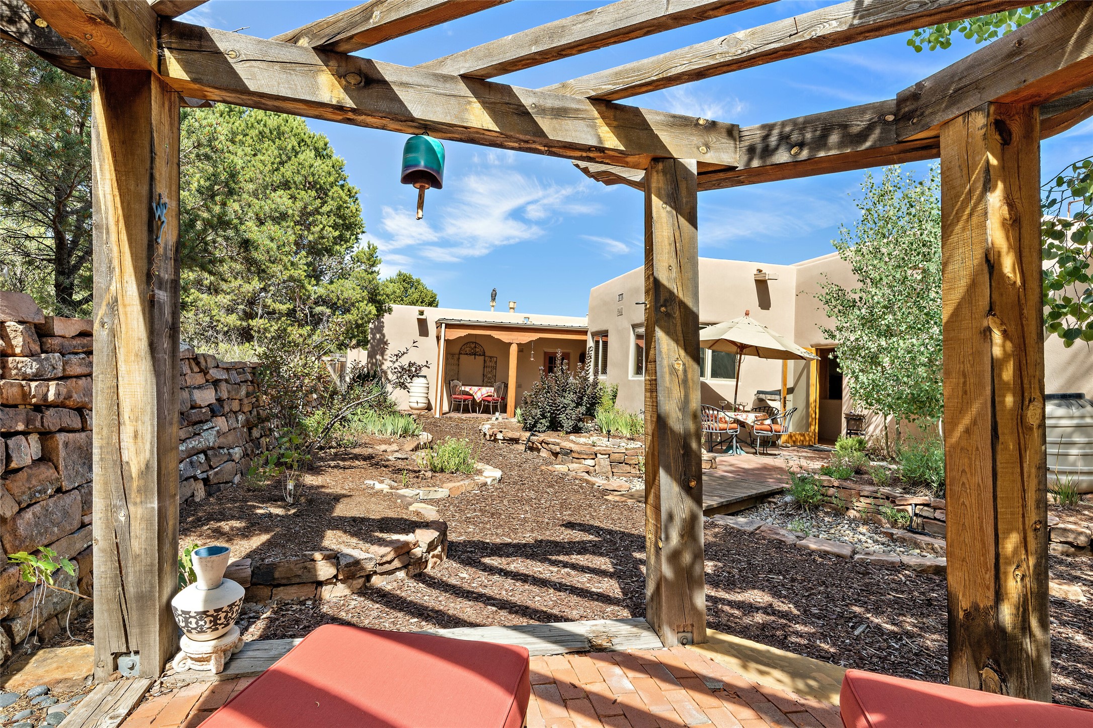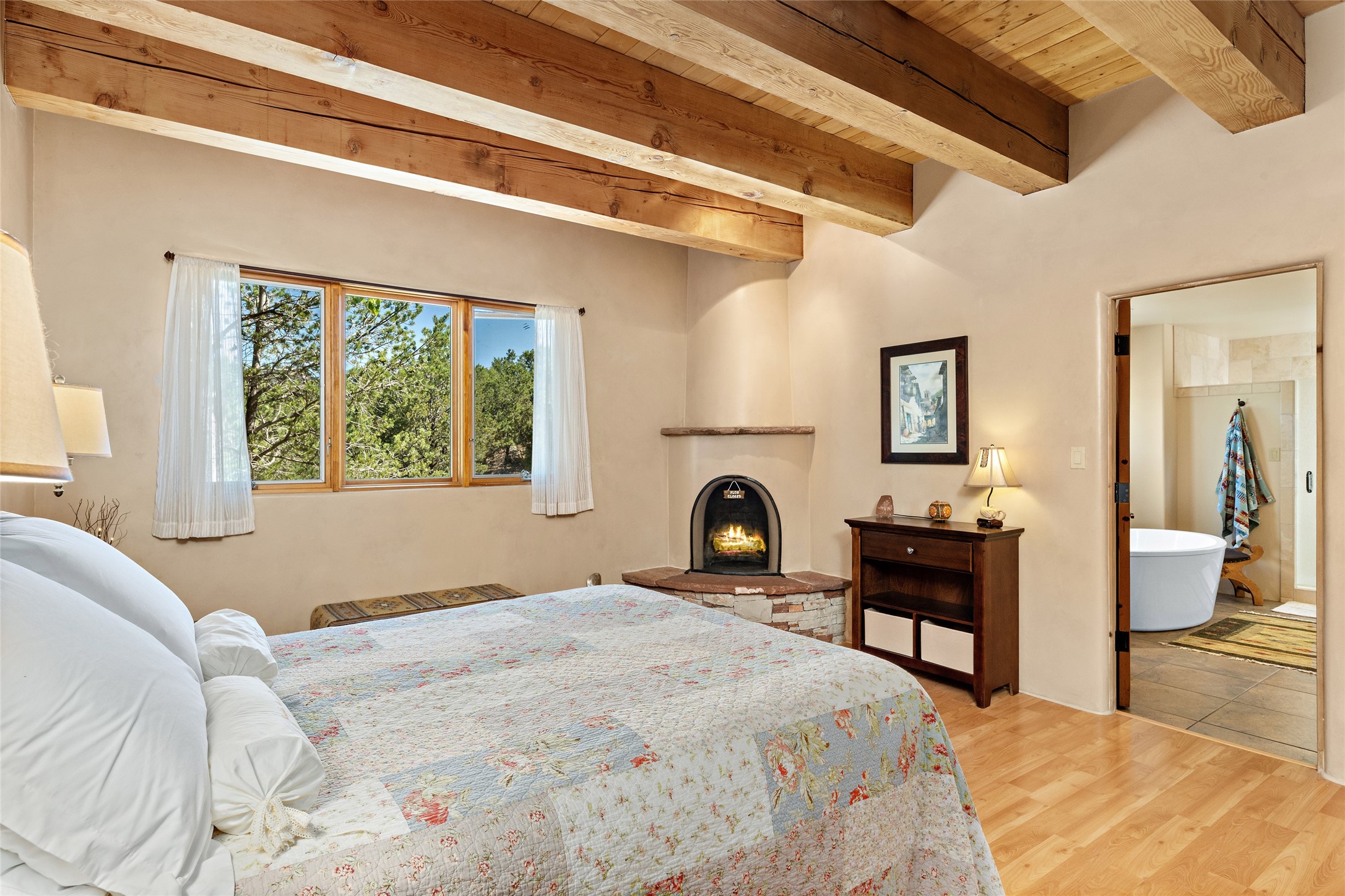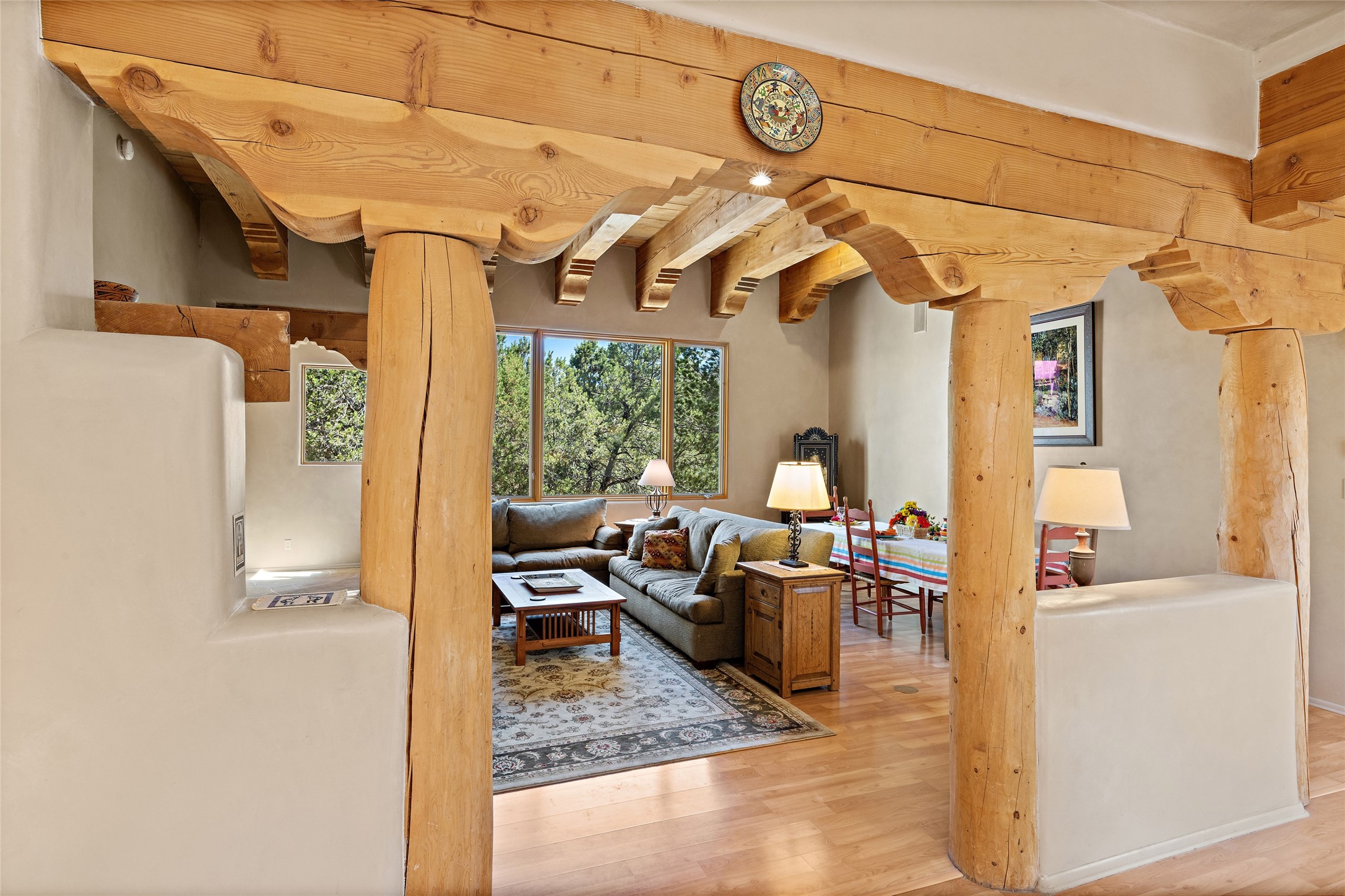 Located in the popular Alteza Estates neighborhood, this stunning home sits on 2.5+ nicely wooded acres and features an open floorplan combining living, dining and kitchen - ideal for entertaining. Dramatic beams and corbels in the majority of the home and hand-troweled plaster in the public areas. Remodeled kitchen has deep soft close drawers, stainless appliances, generous pantry with wine fridge and an island with storage and a granite countertop. Two woodburning fireplaces to enjoy - one in the living room and the other in the primary bedroom. Primary bath has 70-gallon soaking tub, large separate shower and double sinks. Very nice bedroom separation. Pretty gallery hallway to display family photos or artwork. Lush and established landscaping provide a private sanctuary complete with a night sky ramada to check out the milky way nearly every night. Fix My Roof complete silicone coating in 2019. Ten-year transferrable warranty. NO CARPET, NO STEPS. Finished 2-car attached garage. Close to shopping, hiking and parks. All this and on a paved road too! Four minisplits for heat and air conditioning are scheduled to be installed by October 4. Domestic plumbing supply is copper.