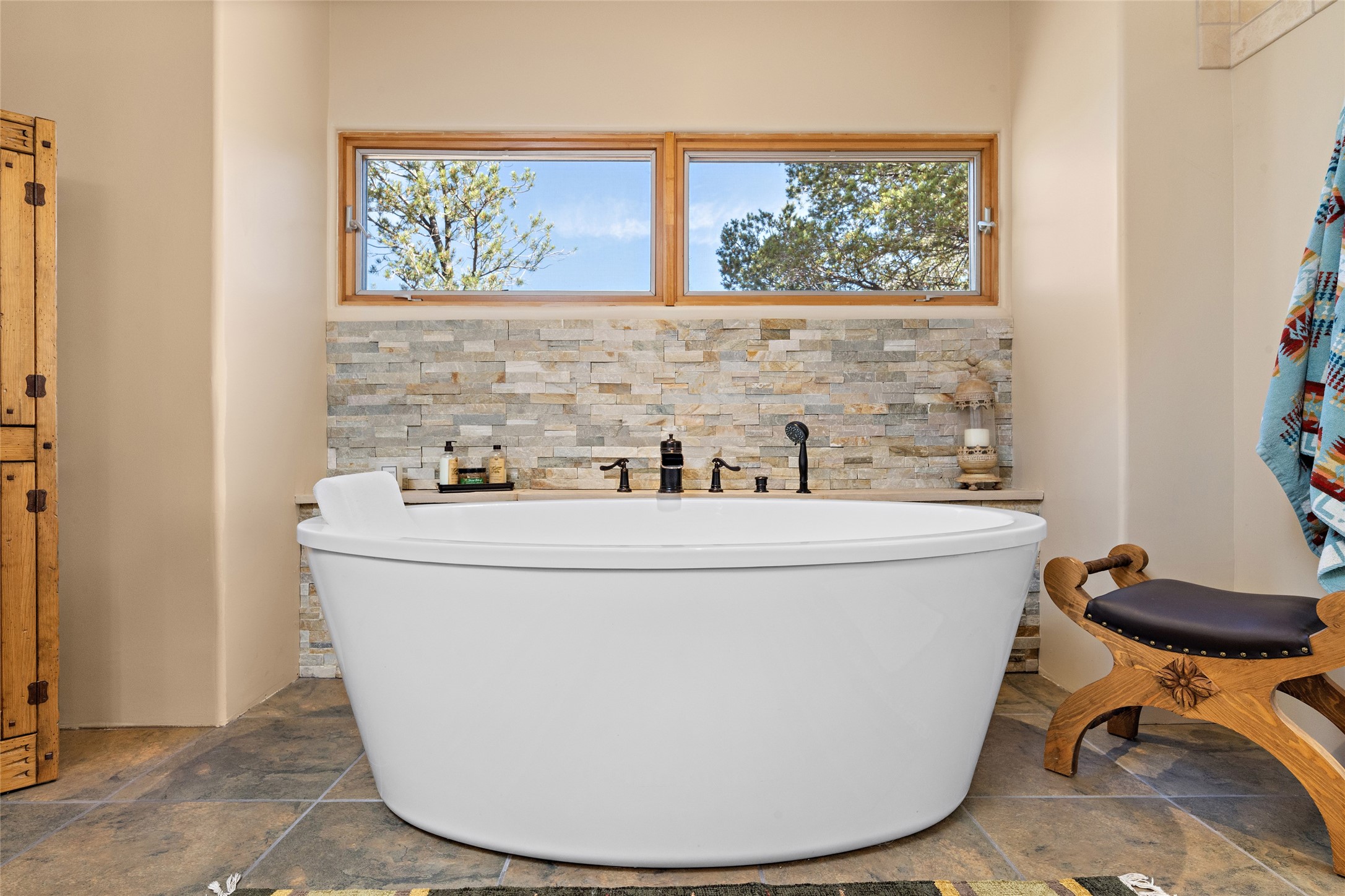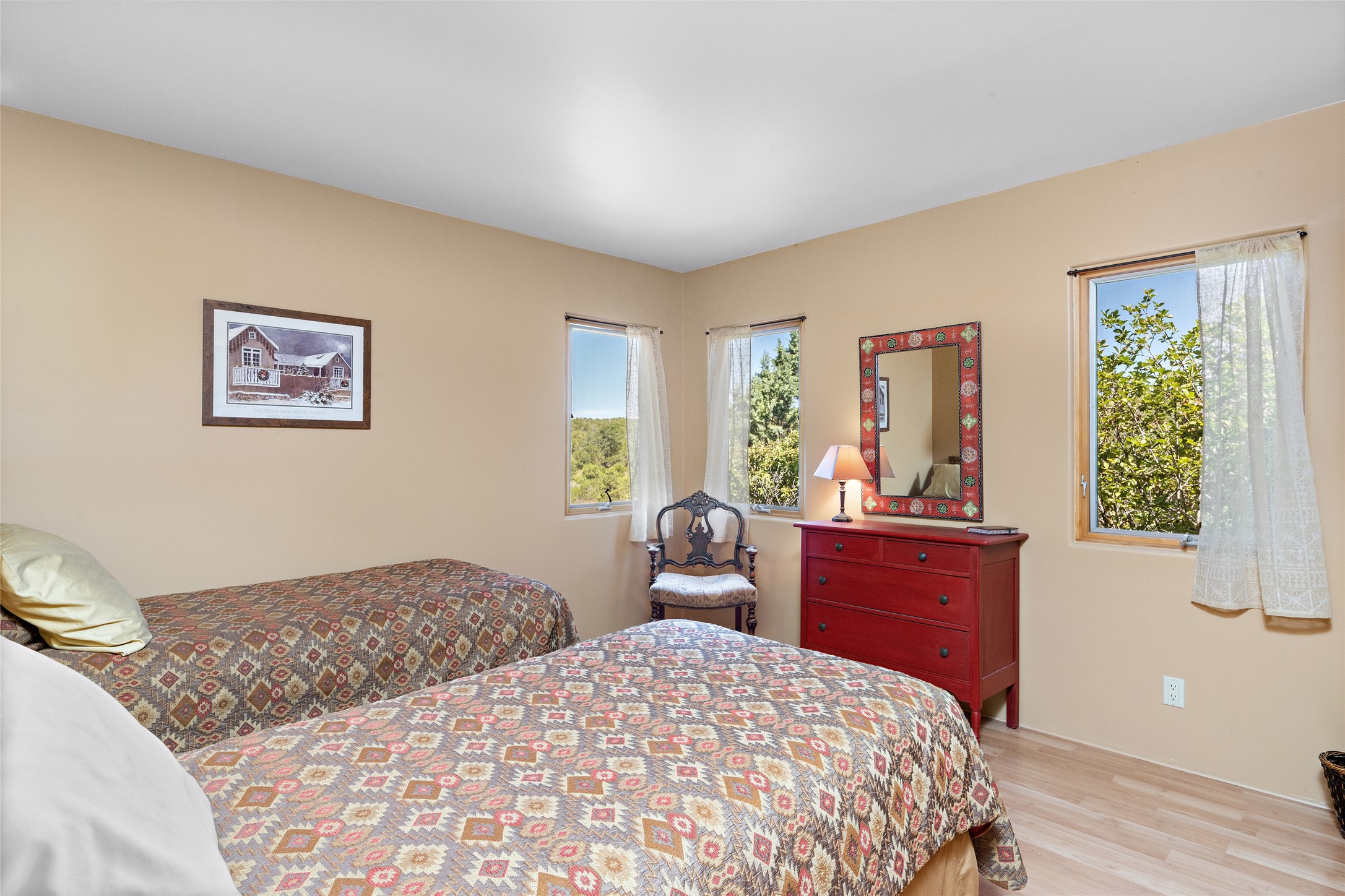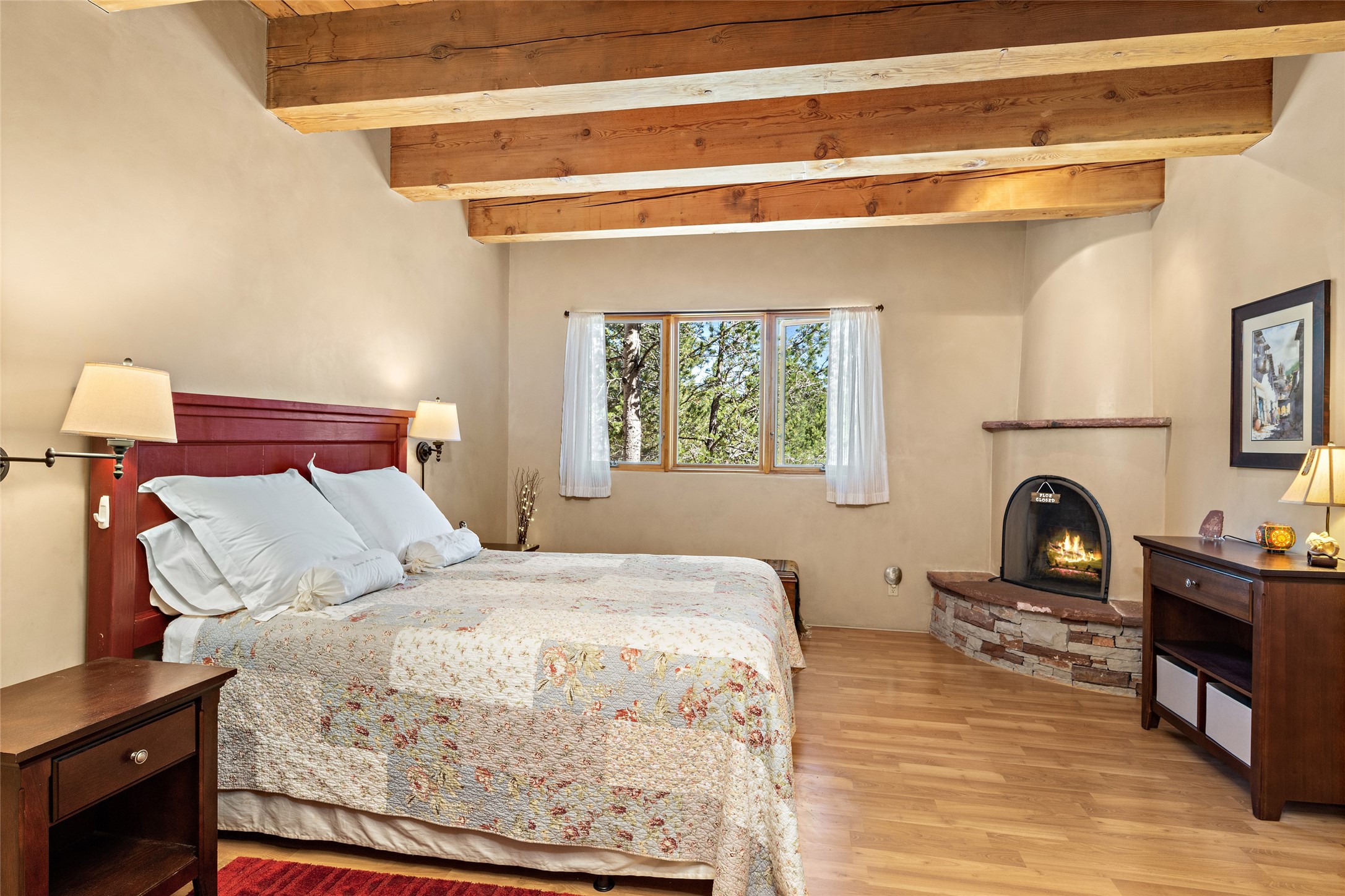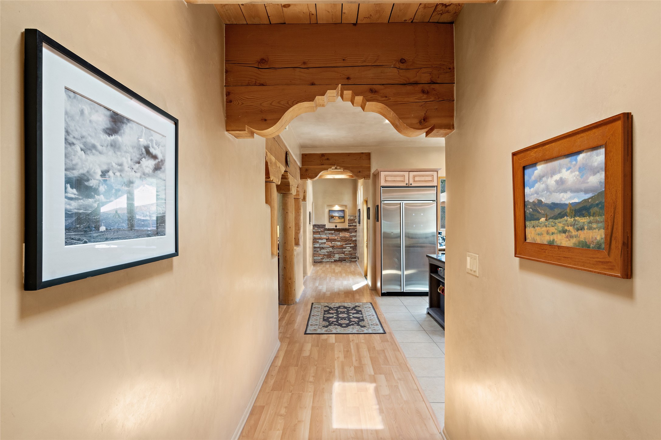 Located in the popular Alteza Estates neighborhood, this stunning home sits on 2.5+ nicely wooded acres and features an open floorplan combining living, dining and kitchen - ideal for entertaining. Dramatic beams and corbels in the majority of the home and hand-troweled plaster in the public areas. Remodeled kitchen has deep soft close drawers, stainless appliances, generous pantry with wine fridge and an island with storage and a granite countertop. Two woodburning fireplaces to enjoy - one in the living room and the other in the primary bedroom. Primary bath has 70-gallon soaking tub, large separate shower and double sinks. Very nice bedroom separation. Pretty gallery hallway to display family photos or artwork. Lush and established landscaping provide a private sanctuary complete with a night sky ramada to check out the milky way nearly every night. Fix My Roof complete silicone coating in 2019. Ten-year transferrable warranty. NO CARPET, NO STEPS. Finished 2-car attached garage. Close to shopping, hiking and parks. All this and on a paved road too! Four minisplits for heat and air conditioning are scheduled to be installed by October 4. Domestic plumbing supply is copper.