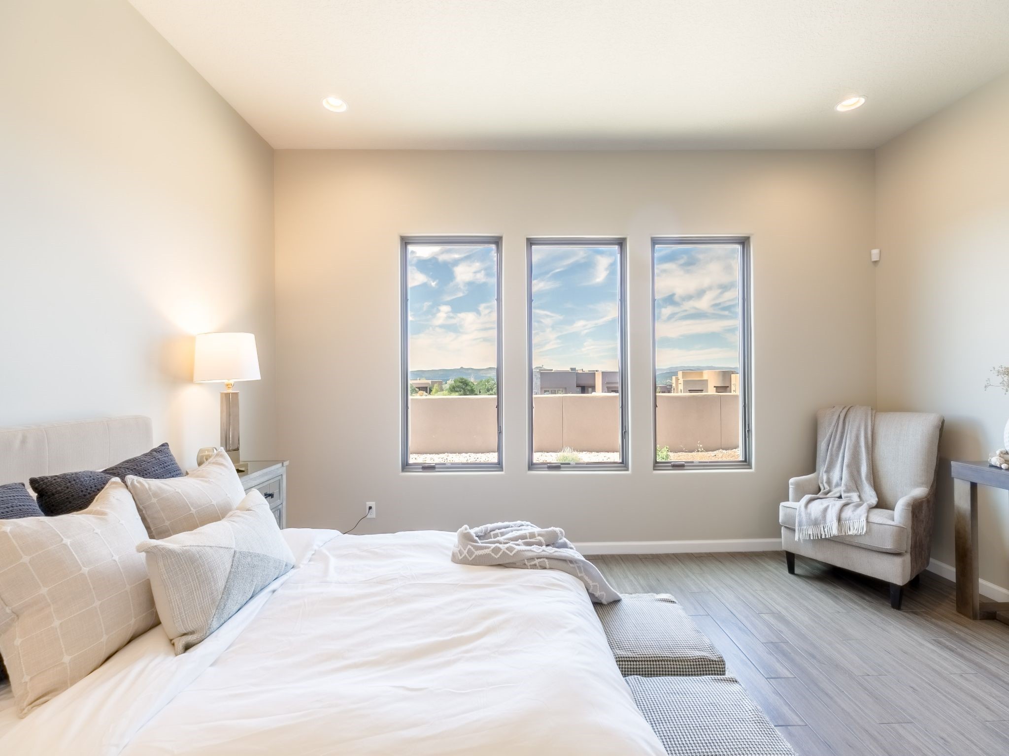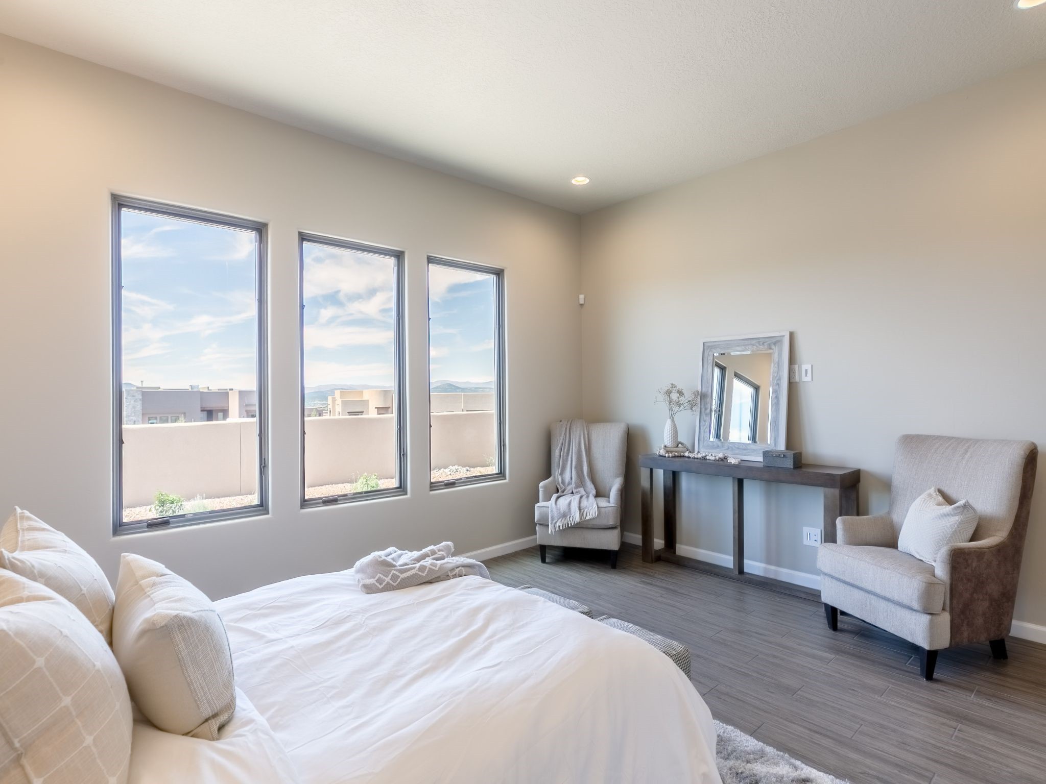 Completed August 2023; Ready for Move-In. the Patagonia pueblo floorplan is 3,265 sq. ft. in the main residence with a 218 sq. ft. guest suite with top-of-the line finishes. The main residence offers an open floor plan ideal for entertaining with light-filled, dining & kitchen areas; three bedrooms; media room; office & a 3-car garage. Retracting sliding glass doors frame the view & connect the living room with the covered portal area with gas fireplace & further to the generous walled-in. A spacious Wolf kitchen is anchored by a large center island with caf seating & is adjacent to the dining area which opens to the covered portal. The luxurious owner's suite features a walk-in shower with retreat area. Near the walking path, the Las Campanas Hacienda is minutes away. HOA fees cover maintenance, gated entries, paved roads, common areas, 24-hr roaming security & 24-hour EMT's. Membership to the Club at Las Campanas is optional.