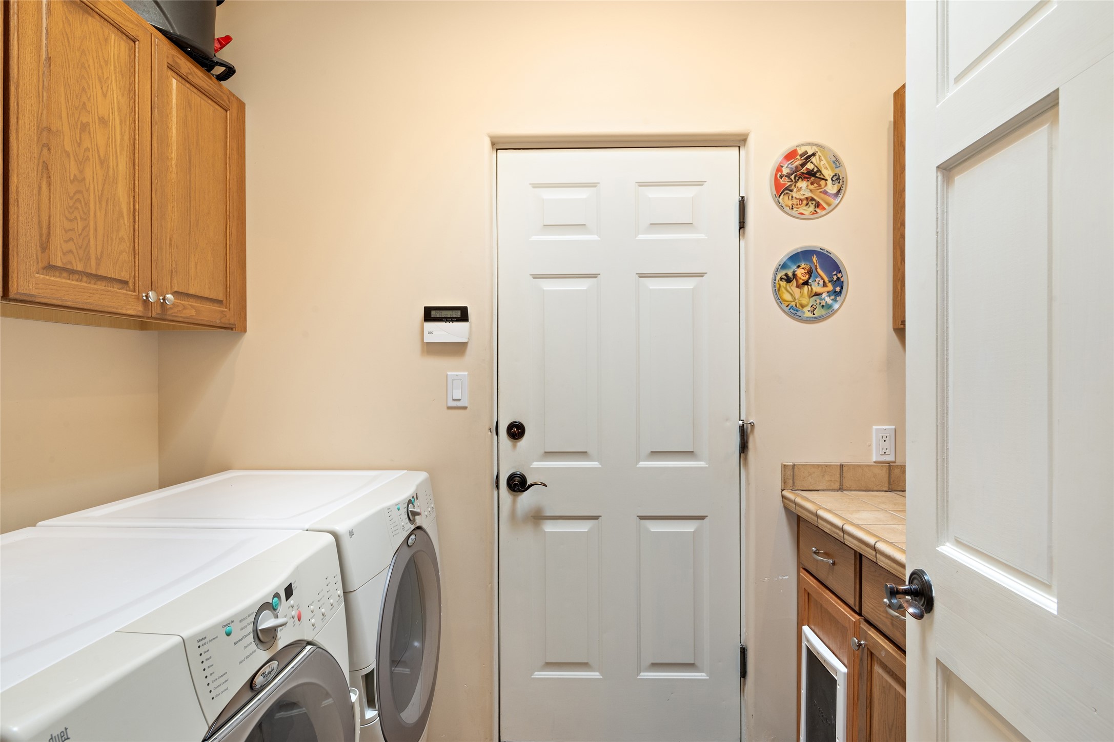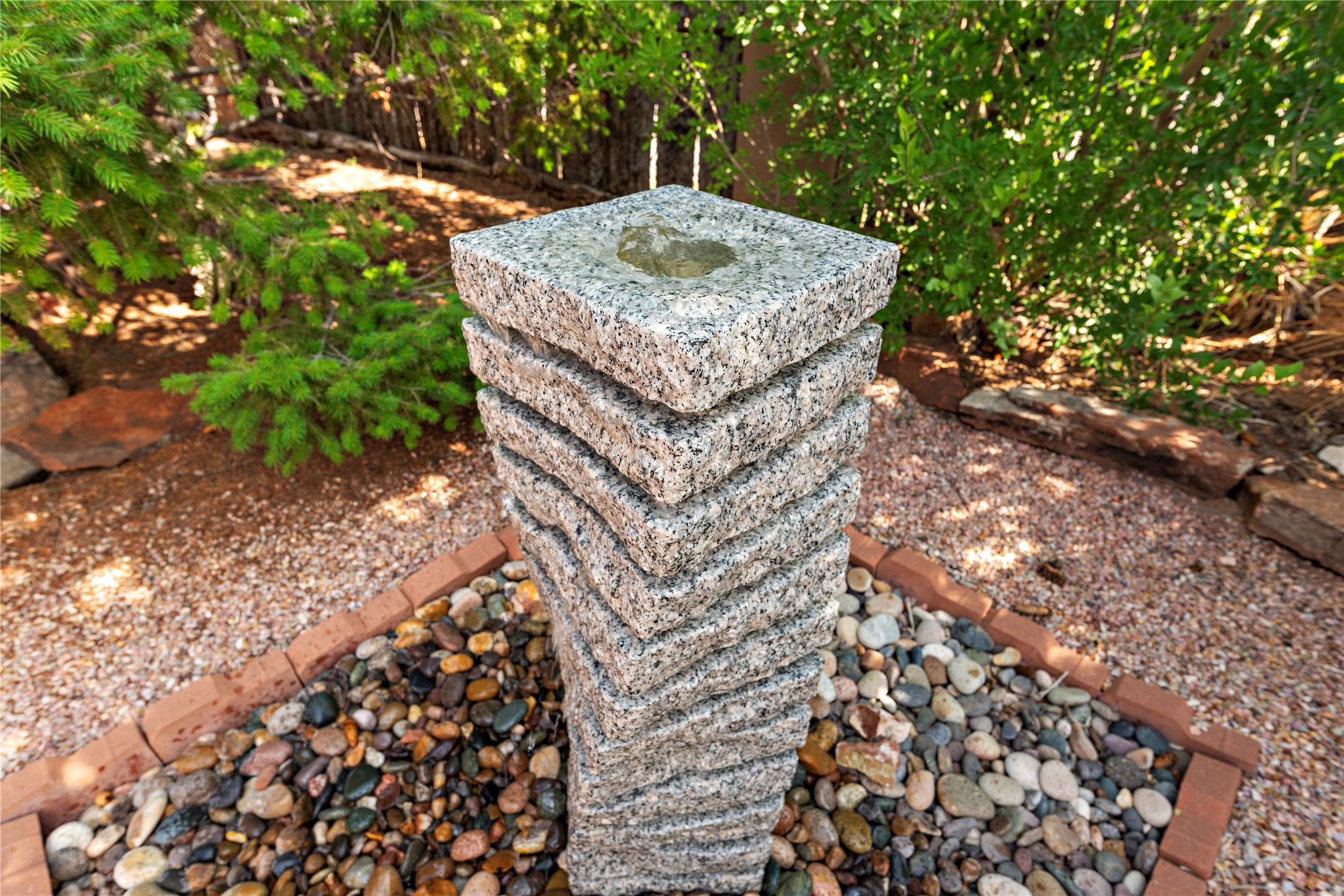 Discover the enchantment of Santa Fe in this 3-bed, 2-bath home. Built in 2002 on .22 acres, it exudes Southwestern charm with a Sun Mountain view, wood floors, and open layout. The living room boasts a kiva fireplace, high ceilings, and skylights, creating an inviting ambiance. The kitchen, complete with a large island, new appliances, and walk-in pantry, is perfect for culinary enthusiasts. Unwind in the primary bedroom, a true homeowner's retreat, featuring a kiva fireplace and access to the back portal. The spacious primary bathroom offers a jetted tub for relaxation. Custom closet organizers enhance the primary walk-in closet, and beautiful hardwood floors grace the home. A newer roof adds value and peace of mind. Radiant heat and evaporative cooling ensure year-round comfort indoors. Step outside to a xeriscaped yard with a captivating garden, soothing fountain, and a cozy Rumford fireplace. This outdoor oasis sets the stage for entertaining and tranquil moments. The garage organization and abundant storage throughout the home make staying organized effortless. Meticulously maintained, this property embodies the beauty of Santa Fe living and entertaining. Beyond a house, it's a sanctuary, a retreat, and a statement of living well. Embrace Southwestern elegance and make 2736 Pradera your home today.