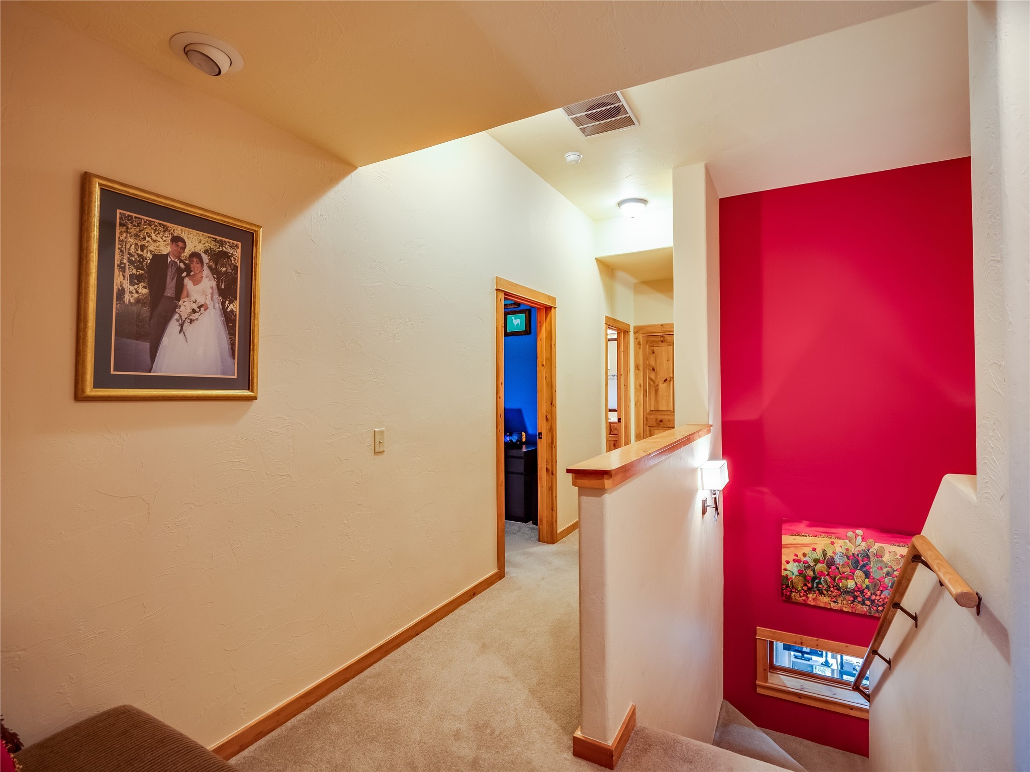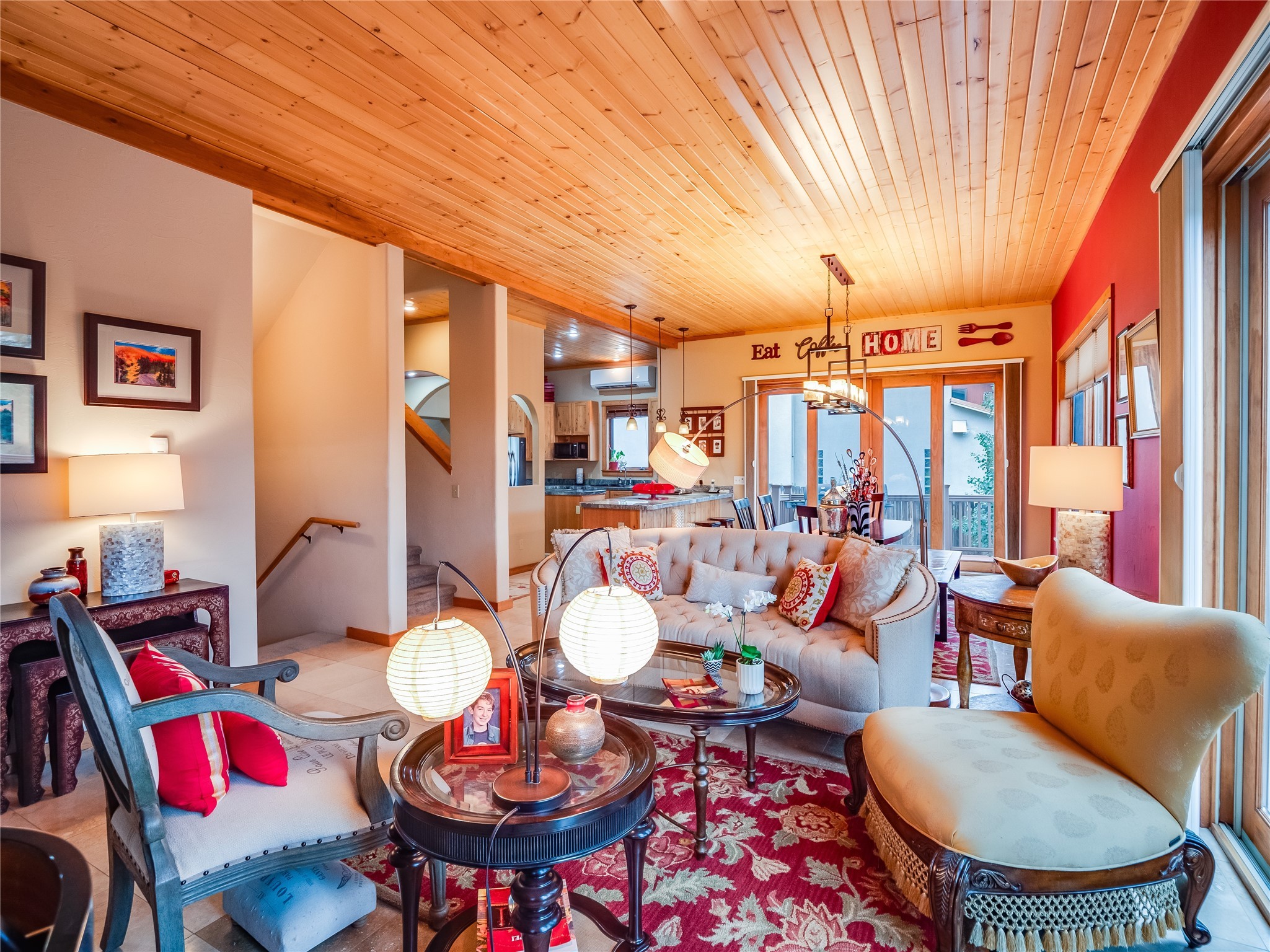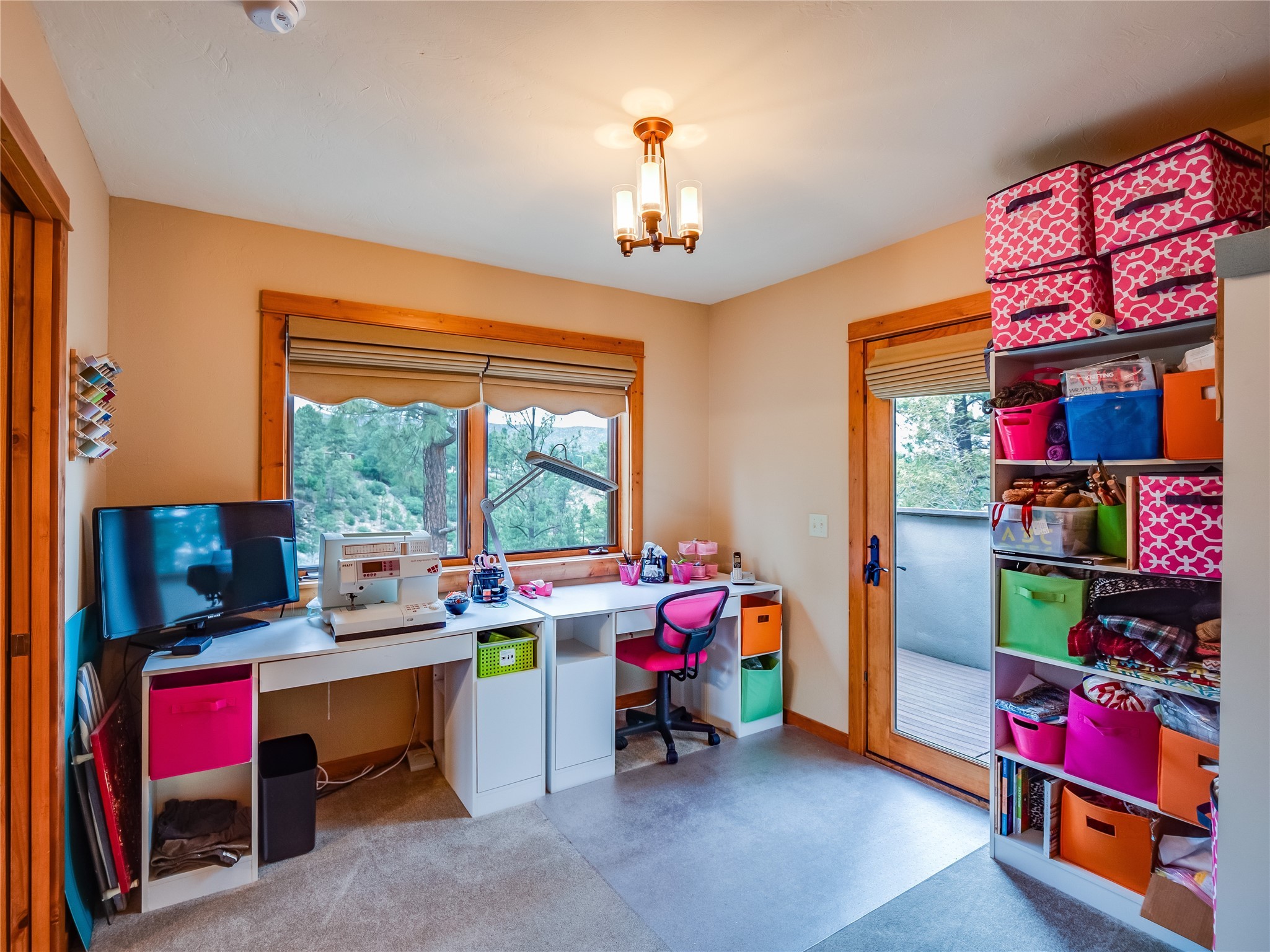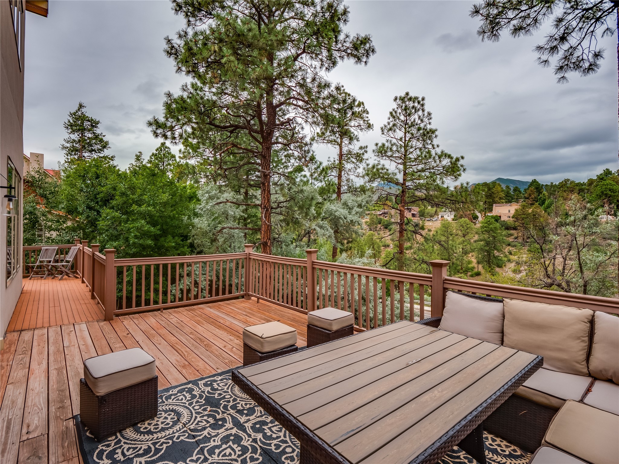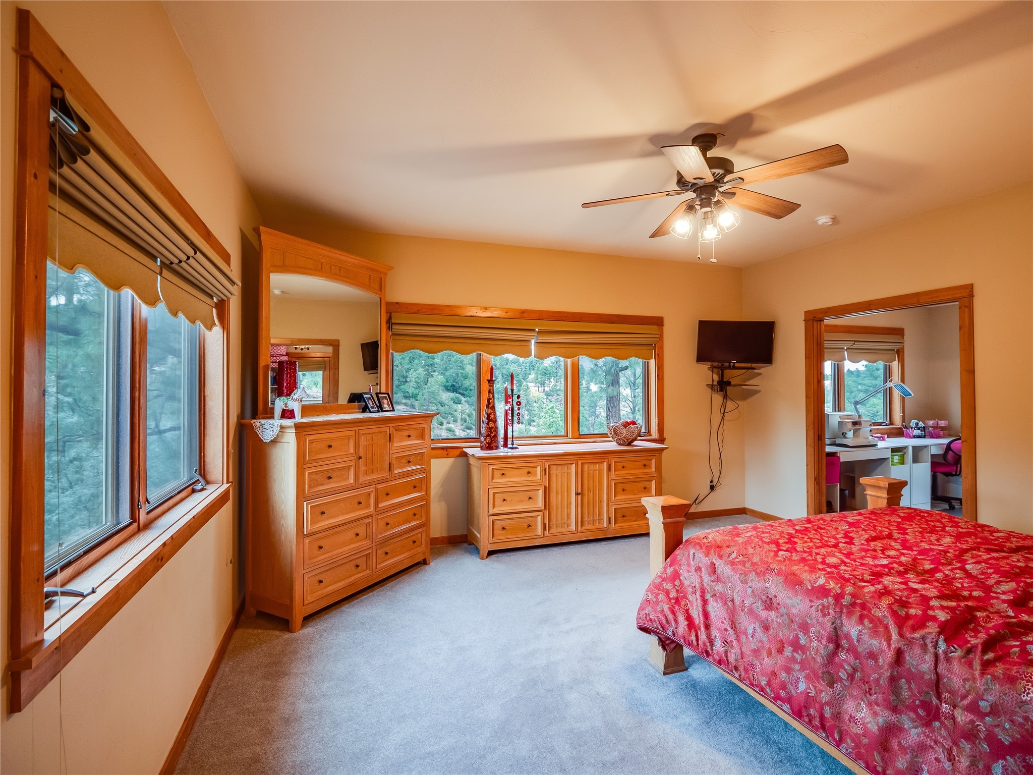Absolutely gorgeous home with Canyon and Mountain views in the Western Area! Beautiful curb appeal with mature flower beds but also low maintenance. You walk right into the large Foyer/Sunroom with flagstone flooring, and tons of large windows overlooking the front yard that's been temporarily turned into a work studio. A Great Room layout with stunning views brings the outdoors right into your Living Room with wall to wall windows and glass sliding doors that lead to the back wrap around deck. Travertine floors throughout the main floor with wood slat ceilings and a gas fireplace with stone surround. Connected is the Dining Room with more windows and a set of sliding doors leading to the side deck. The Kitchen is a chefs dream space, tons of the granite counter space, a plethora of wood cabinets with chrome hardware, gas cooktop, stainless steel appliances and much more. Off the kitchen is an open pantry and the Laundry Room and access to the detached two car garage. Also on this floor is an office and powder room. Upstairs is carpeted with two nice sized guest bedrooms with walk-in closets and a full guest bath. The spacious Primary En-Suite has wonderful views and a small sitting room with a private deck. A spa like Bathroom with a double sink wood vanity, a deep jetted tub, walk-in shower with glass enclosure and a large walk-in closet. The basement has a large Family/Game Room with wood floors, an included Pool table, and access to the fenced in backyard with covered flagstone patio with an in ground firepit. There's also a guest bedroom, a full guest bath and a ton of storage space and closets on the other side of this floor. This home is outfitted with a fire suppression sprinkler system mounted under the roof eaves for that extra peace of mind. Radiant flooring throughout and a few A/C units in the home. Great location with trails, parks, and schools within walking distance. This home is more than move-in ready so come take your tour today!