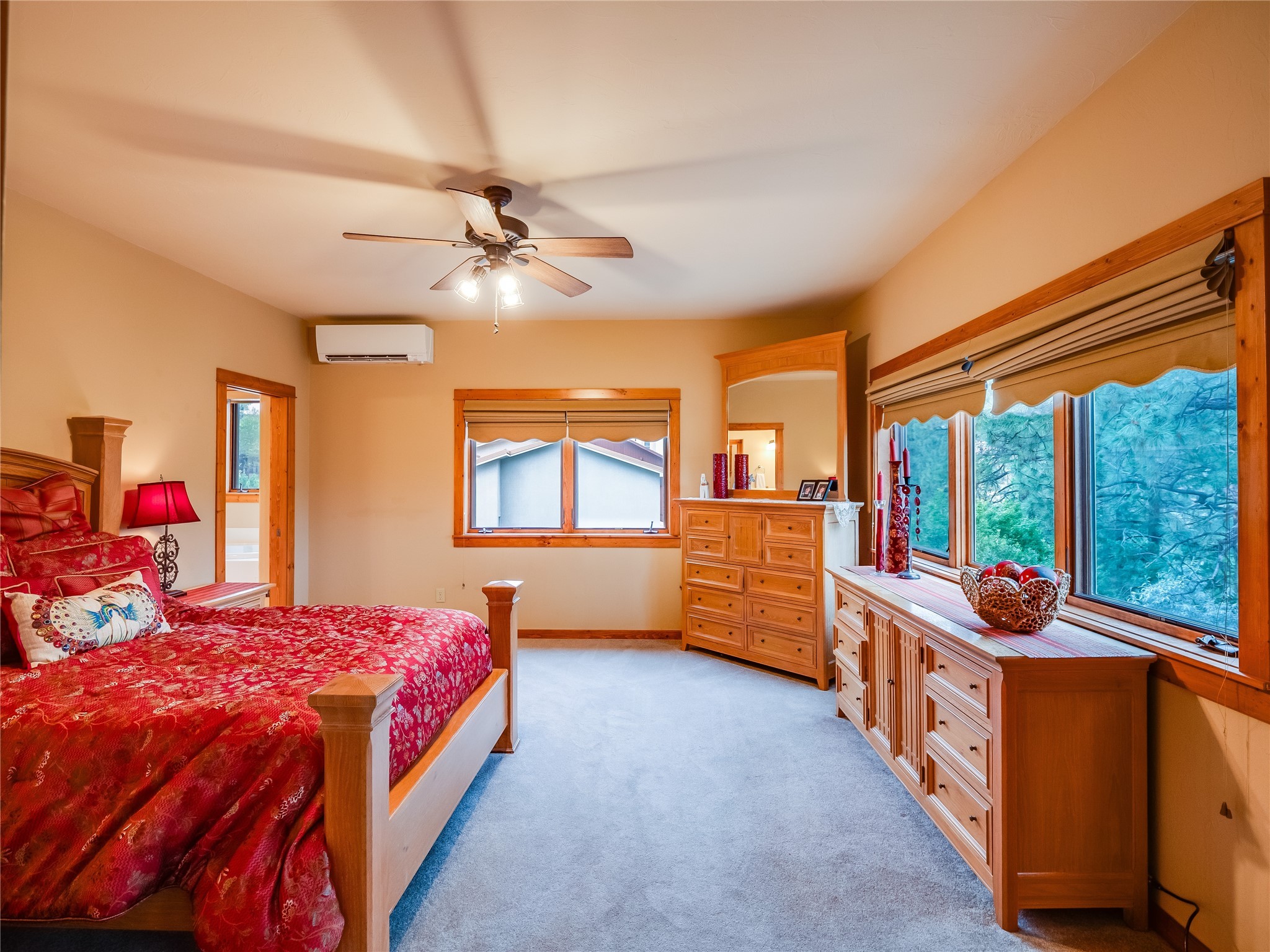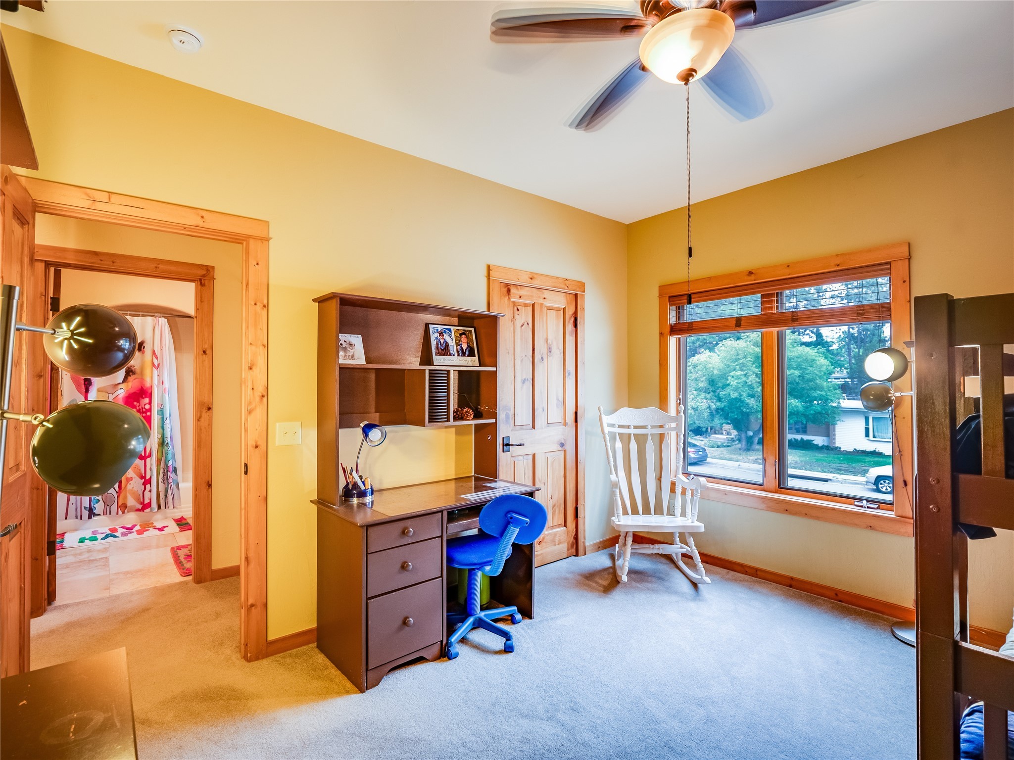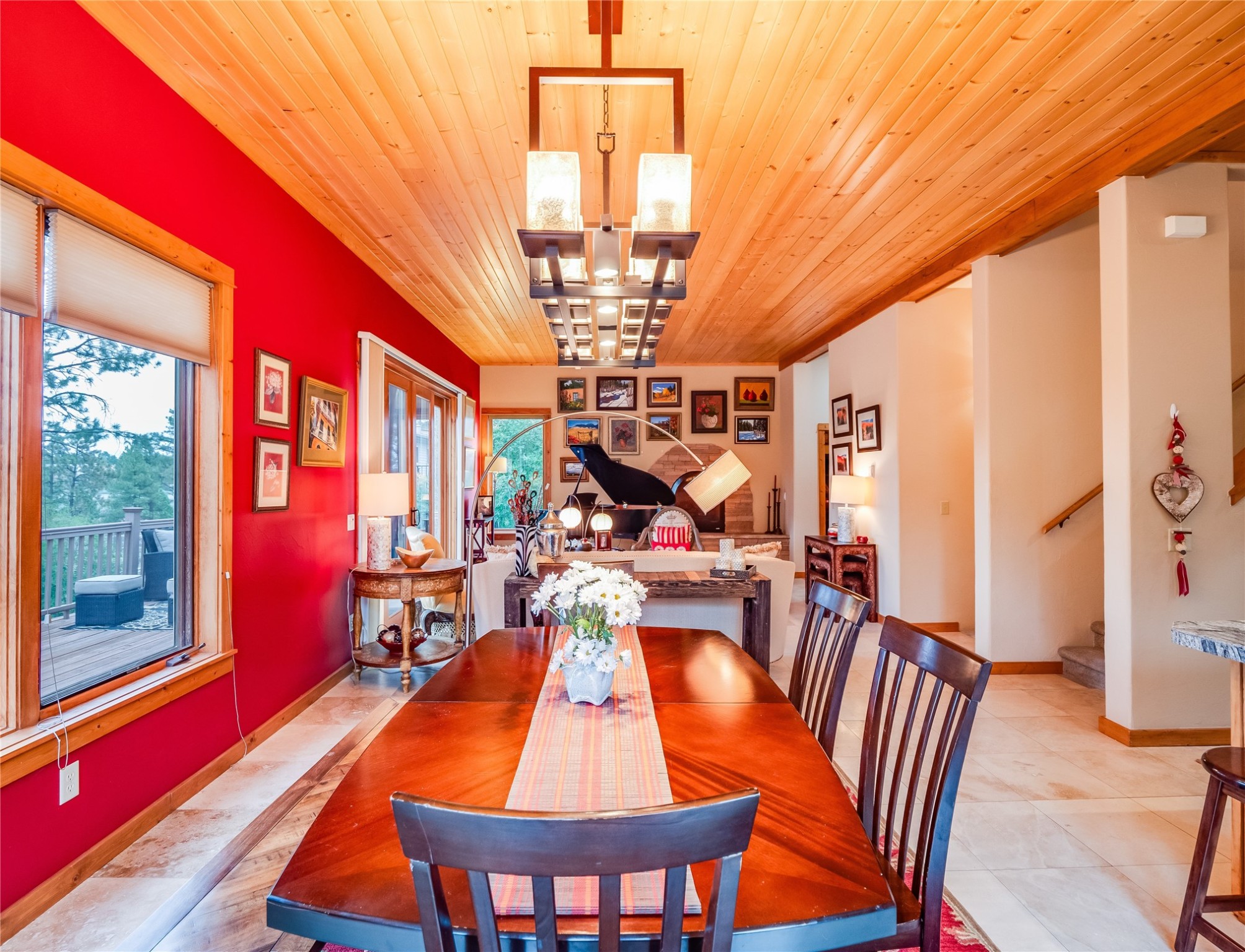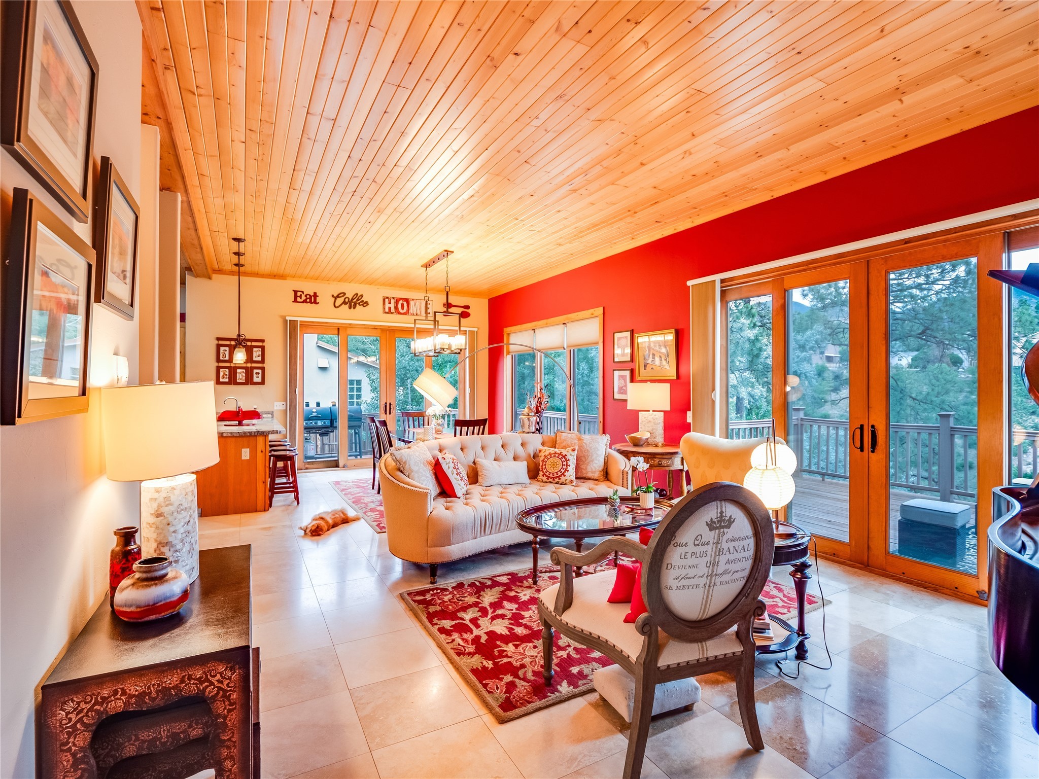 Absolutely gorgeous home with Canyon and Mountain views in the Western Area! Beautiful curb appeal with mature flower beds but also low maintenance. You walk right into the large Foyer/Sunroom with flagstone flooring, and tons of large windows overlooking the front yard that's been temporarily turned into a work studio. A Great Room layout with stunning views brings the outdoors right into your Living Room with wall to wall windows and glass sliding doors that lead to the back wrap around deck. Travertine floors throughout the main floor with wood slat ceilings and a gas fireplace with stone surround. Connected is the Dining Room with more windows and a set of sliding doors leading to the side deck. The Kitchen is a chefs dream space, tons of the granite counter space, a plethora of wood cabinets with chrome hardware, gas cooktop, stainless steel appliances and much more. Off the kitchen is an open pantry and the Laundry Room and access to the detached two car garage. Also on this floor is an office and powder room. Upstairs is carpeted with two nice sized guest bedrooms with walk-in closets and a full guest bath. The spacious Primary En-Suite has wonderful views and a small sitting room with a private deck. A spa like Bathroom with a double sink wood vanity, a deep jetted tub, walk-in shower with glass enclosure and a large walk-in closet. The basement has a large Family/Game Room with wood floors, an included Pool table, and access to the fenced in backyard with covered flagstone patio with an in ground firepit. There's also a guest bedroom, a full guest bath and a ton of storage space and closets on the other side of this floor. This home is outfitted with a fire suppression sprinkler system mounted under the roof eaves for that extra peace of mind. Radiant flooring throughout and a few A/C units in the home. Great location with trails, parks, and schools within walking distance. This home is more than move-in ready so come take your tour today!