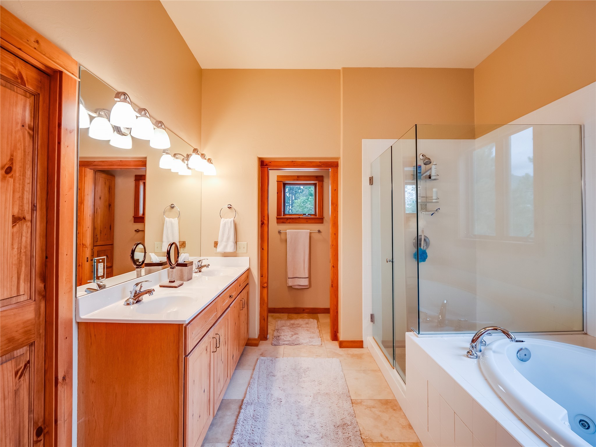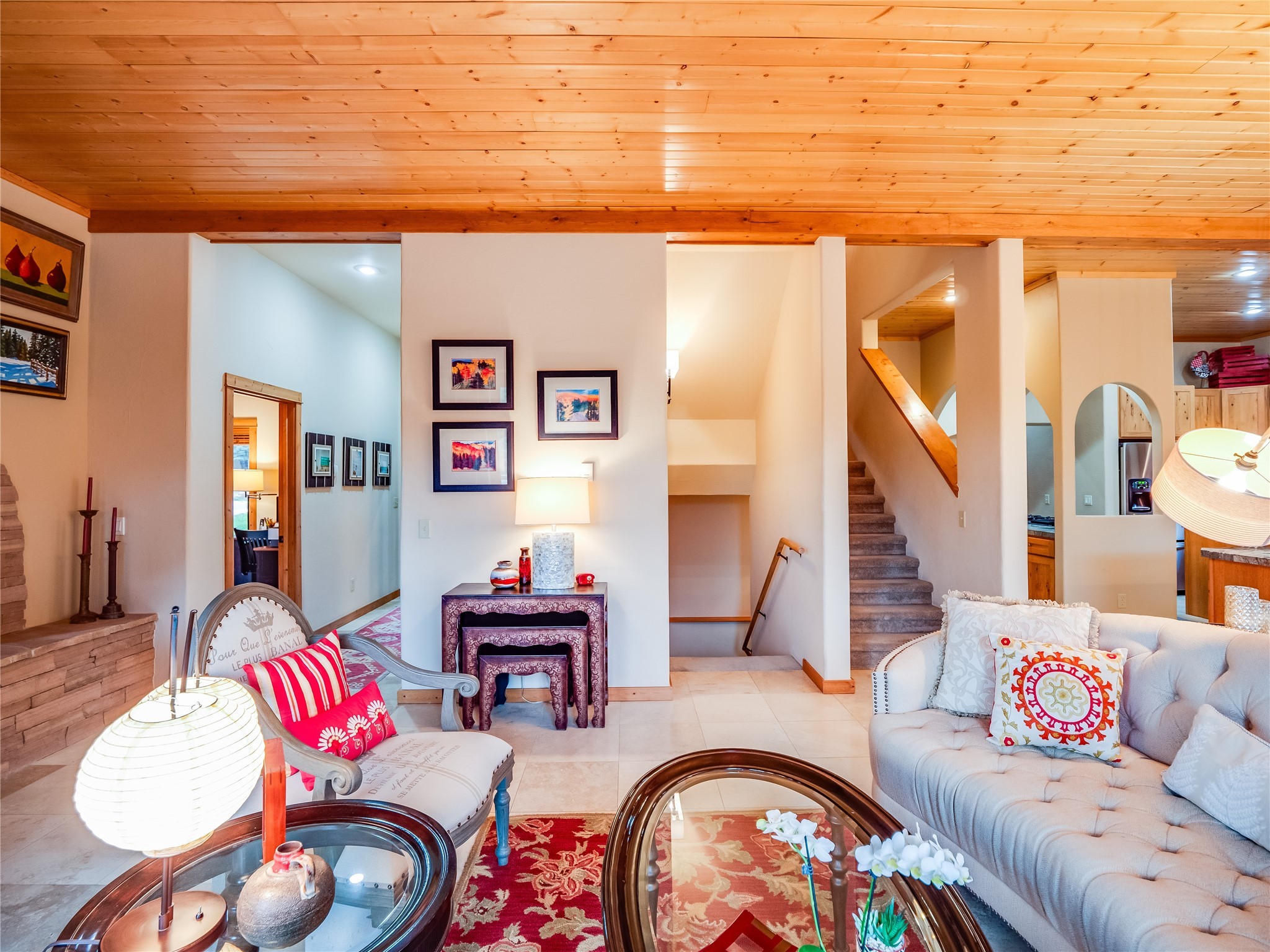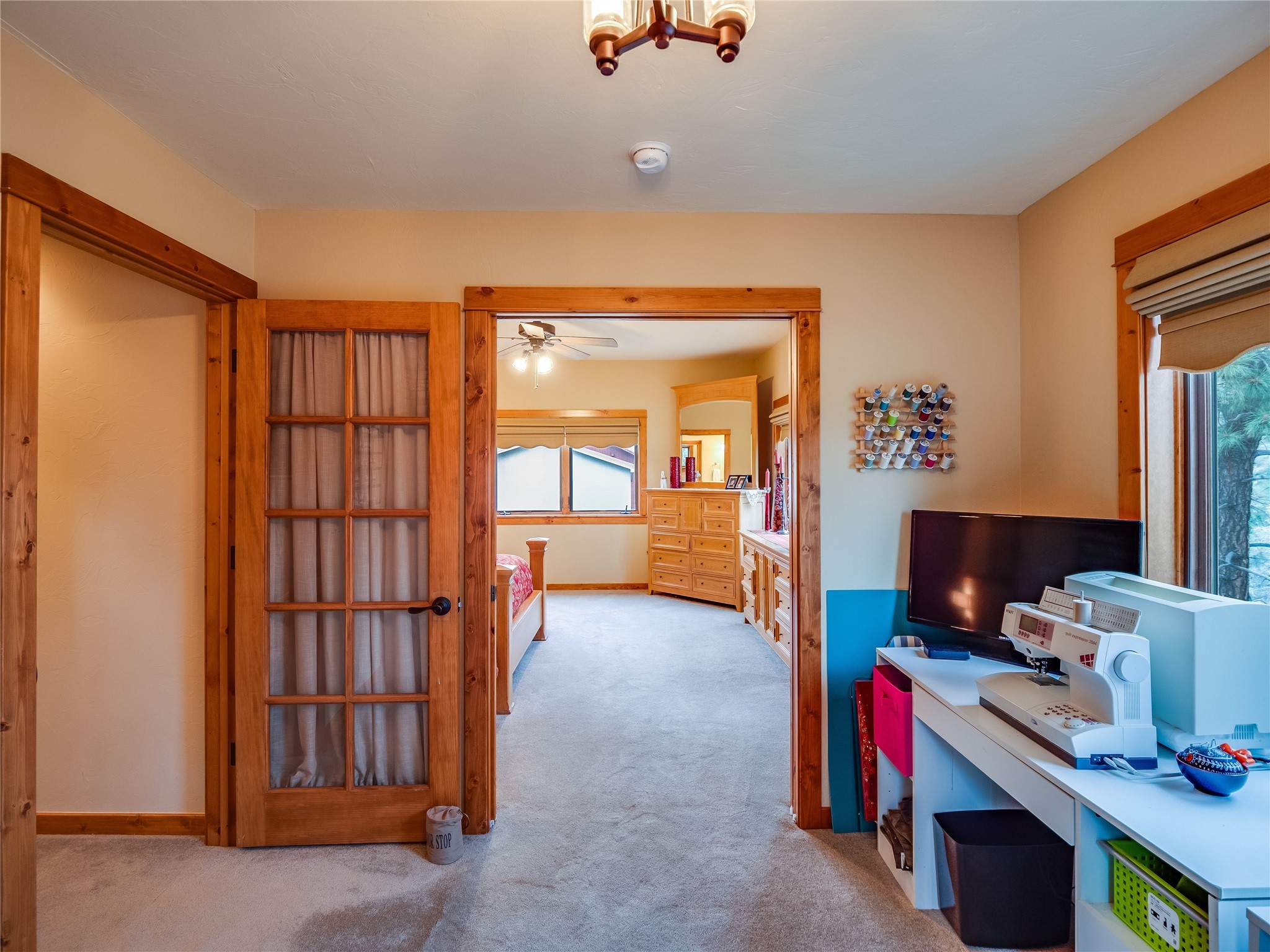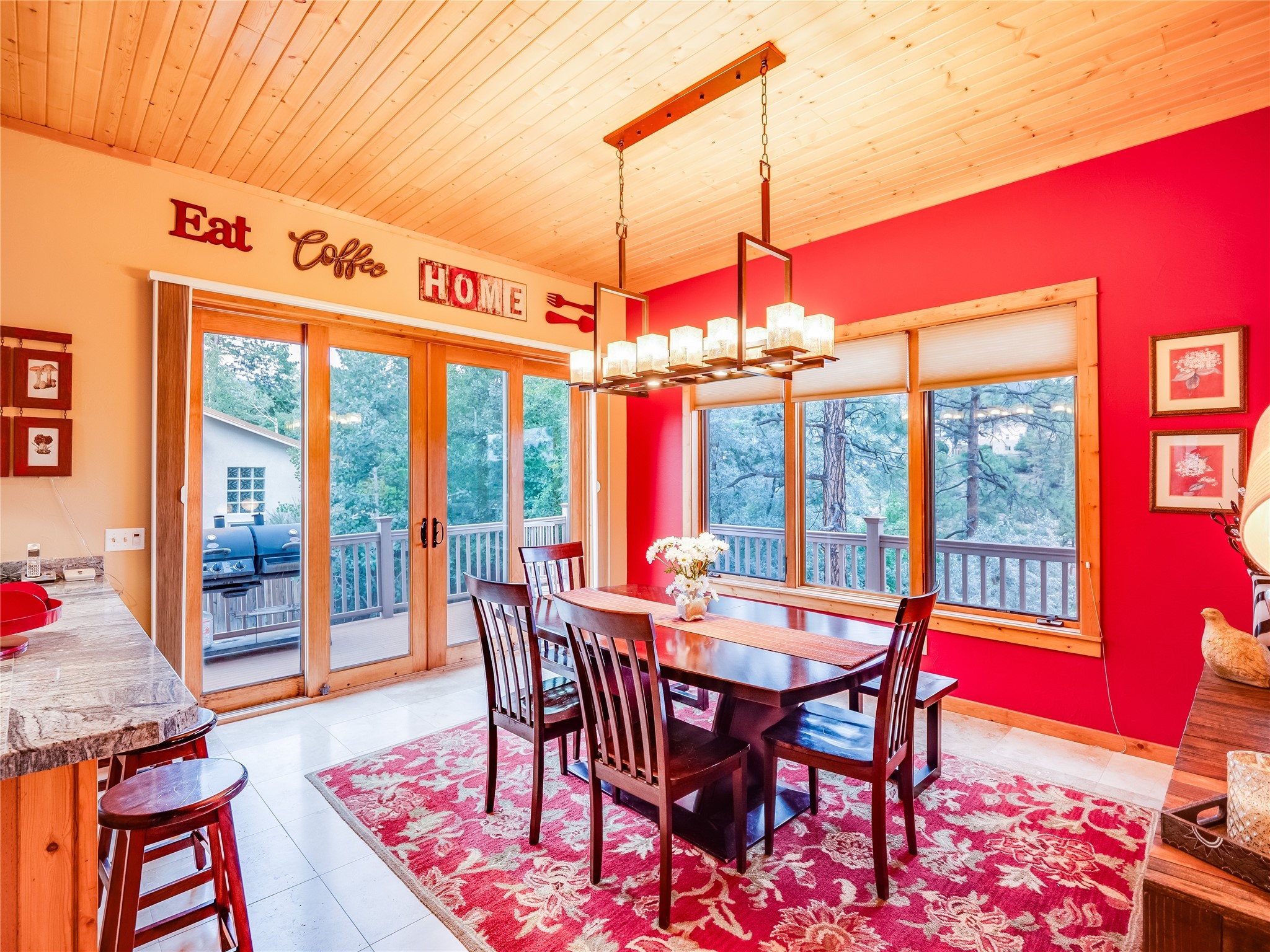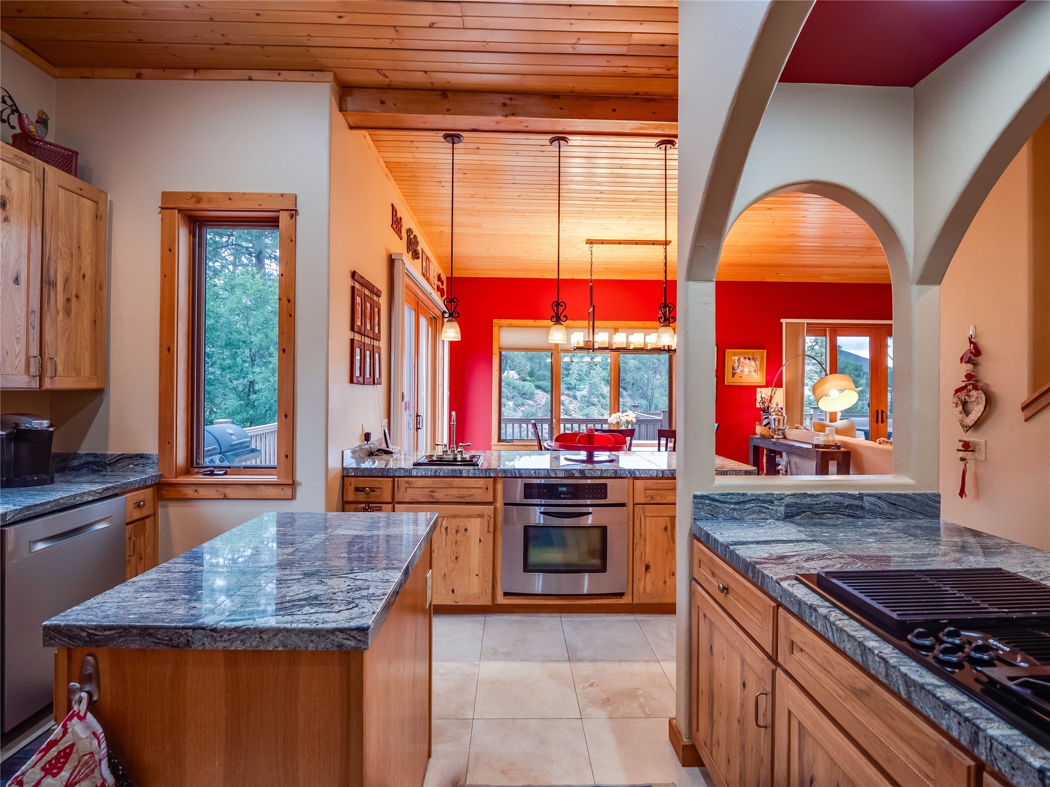 Absolutely gorgeous home with Canyon and Mountain views in the Western Area! Beautiful curb appeal with mature flower beds but also low maintenance. You walk right into the large Foyer/Sunroom with flagstone flooring, and tons of large windows overlooking the front yard that's been temporarily turned into a work studio. A Great Room layout with stunning views brings the outdoors right into your Living Room with wall to wall windows and glass sliding doors that lead to the back wrap around deck. Travertine floors throughout the main floor with wood slat ceilings and a gas fireplace with stone surround. Connected is the Dining Room with more windows and a set of sliding doors leading to the side deck. The Kitchen is a chefs dream space, tons of the granite counter space, a plethora of wood cabinets with chrome hardware, gas cooktop, stainless steel appliances and much more. Off the kitchen is an open pantry and the Laundry Room and access to the detached two car garage. Also on this floor is an office and powder room. Upstairs is carpeted with two nice sized guest bedrooms with walk-in closets and a full guest bath. The spacious Primary En-Suite has wonderful views and a small sitting room with a private deck. A spa like Bathroom with a double sink wood vanity, a deep jetted tub, walk-in shower with glass enclosure and a large walk-in closet. The basement has a large Family/Game Room with wood floors, an included Pool table, and access to the fenced in backyard with covered flagstone patio with an in ground firepit. There's also a guest bedroom, a full guest bath and a ton of storage space and closets on the other side of this floor. This home is outfitted with a fire suppression sprinkler system mounted under the roof eaves for that extra peace of mind. Radiant flooring throughout and a few A/C units in the home. Great location with trails, parks, and schools within walking distance. This home is more than move-in ready so come take your tour today!