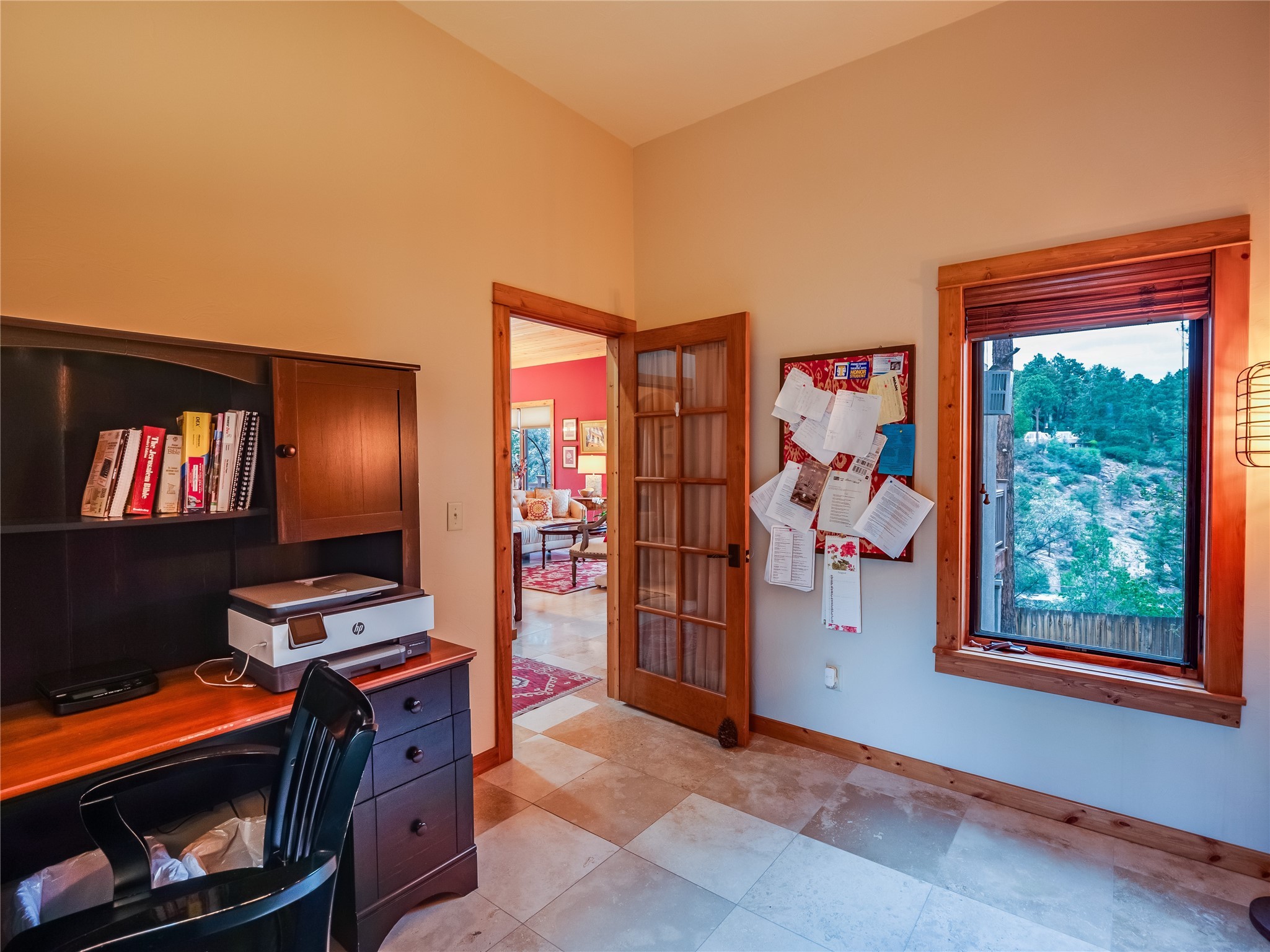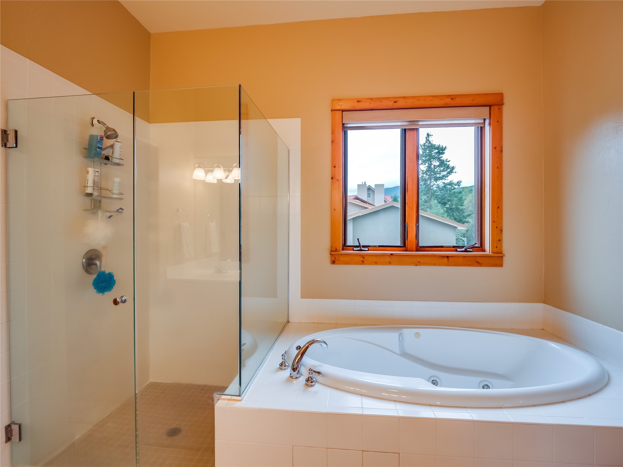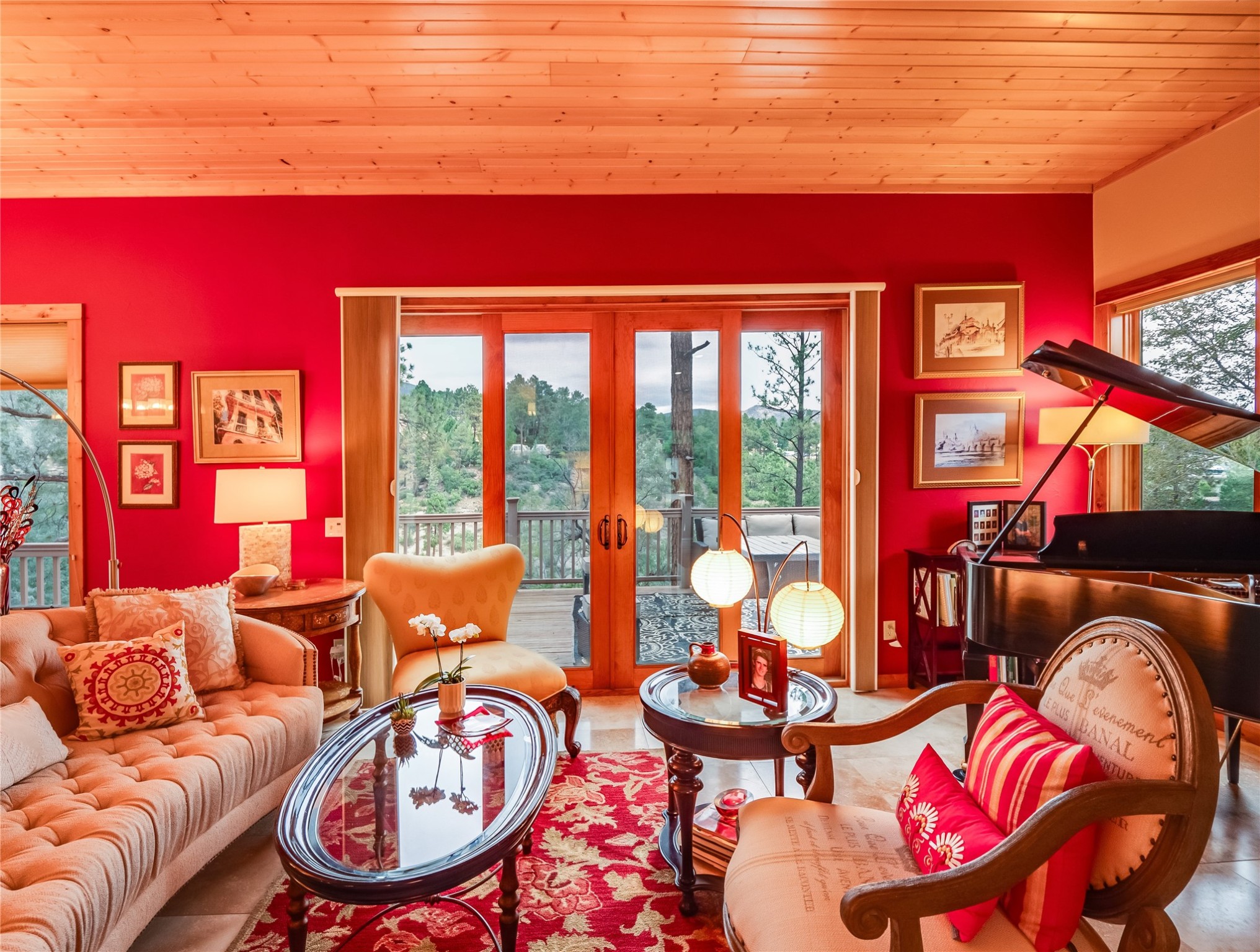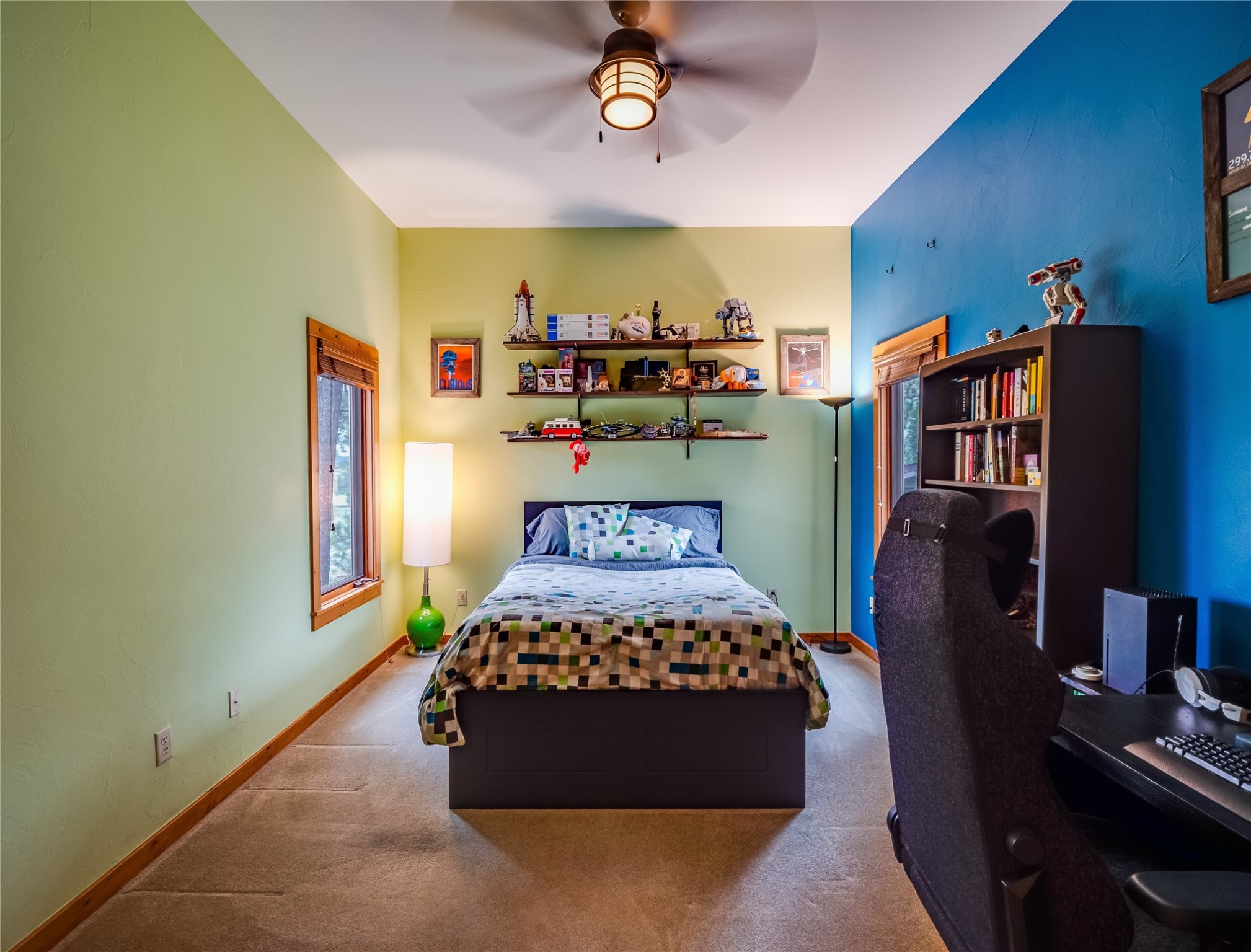 Absolutely gorgeous home with Canyon and Mountain views in the Western Area! Beautiful curb appeal with mature flower beds but also low maintenance. You walk right into the large Foyer/Sunroom with flagstone flooring, and tons of large windows overlooking the front yard that's been temporarily turned into a work studio. A Great Room layout with stunning views brings the outdoors right into your Living Room with wall to wall windows and glass sliding doors that lead to the back wrap around deck. Travertine floors throughout the main floor with wood slat ceilings and a gas fireplace with stone surround. Connected is the Dining Room with more windows and a set of sliding doors leading to the side deck. The Kitchen is a chefs dream space, tons of the granite counter space, a plethora of wood cabinets with chrome hardware, gas cooktop, stainless steel appliances and much more. Off the kitchen is an open pantry and the Laundry Room and access to the detached two car garage. Also on this floor is an office and powder room. Upstairs is carpeted with two nice sized guest bedrooms with walk-in closets and a full guest bath. The spacious Primary En-Suite has wonderful views and a small sitting room with a private deck. A spa like Bathroom with a double sink wood vanity, a deep jetted tub, walk-in shower with glass enclosure and a large walk-in closet. The basement has a large Family/Game Room with wood floors, an included Pool table, and access to the fenced in backyard with covered flagstone patio with an in ground firepit. There's also a guest bedroom, a full guest bath and a ton of storage space and closets on the other side of this floor. This home is outfitted with a fire suppression sprinkler system mounted under the roof eaves for that extra peace of mind. Radiant flooring throughout and a few A/C units in the home. Great location with trails, parks, and schools within walking distance. This home is more than move-in ready so come take your tour today!
