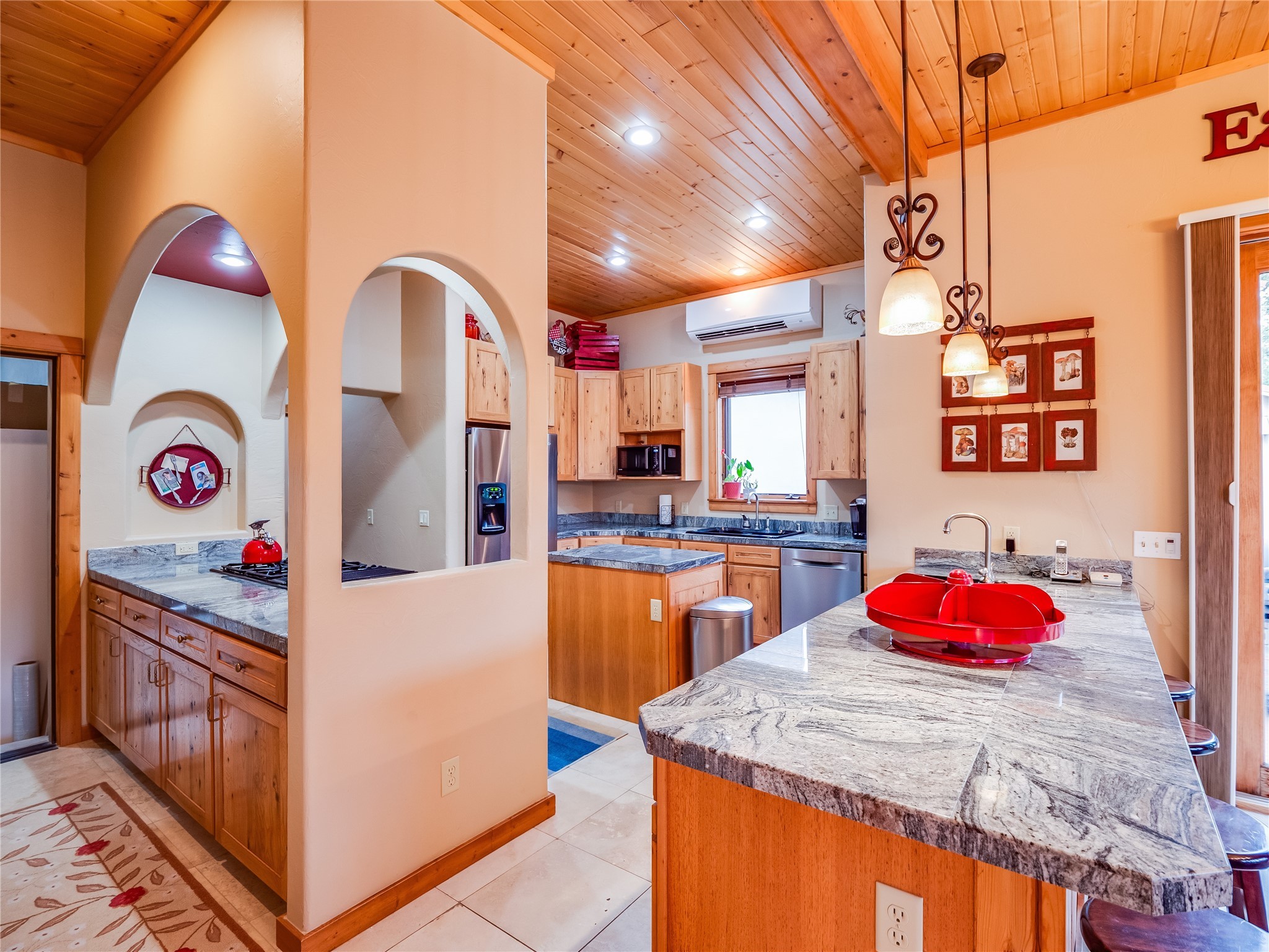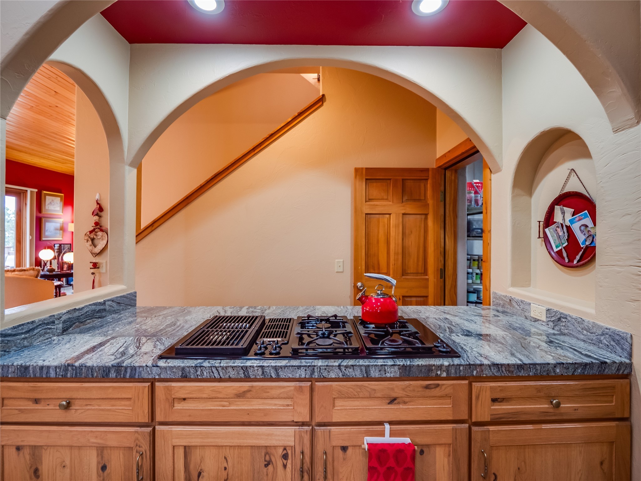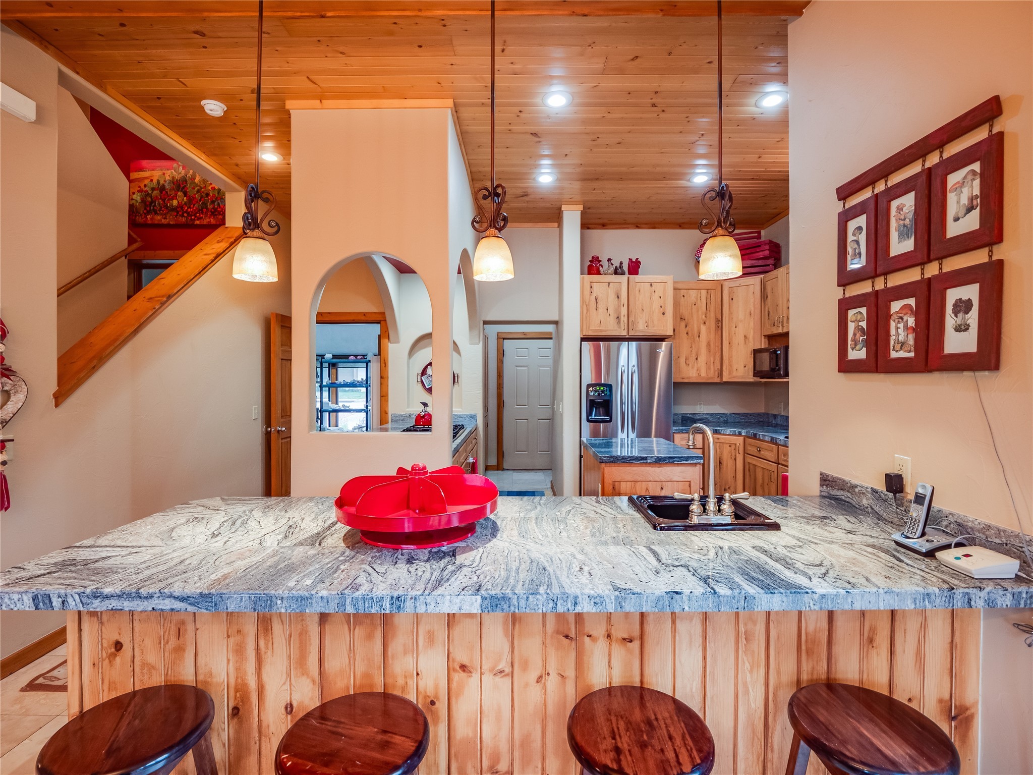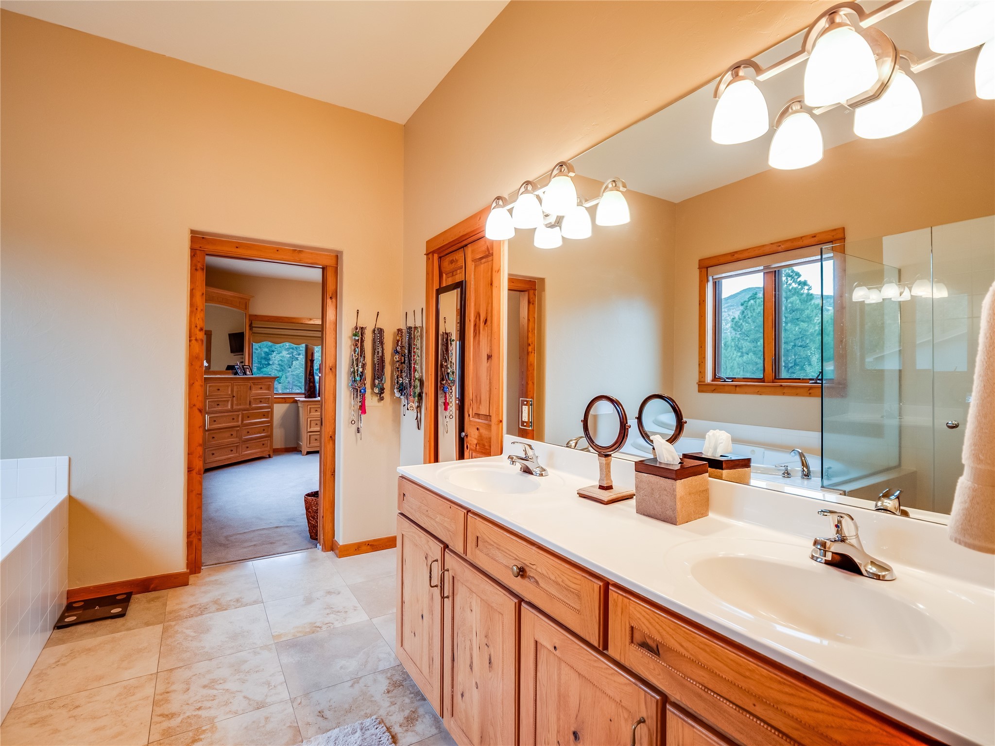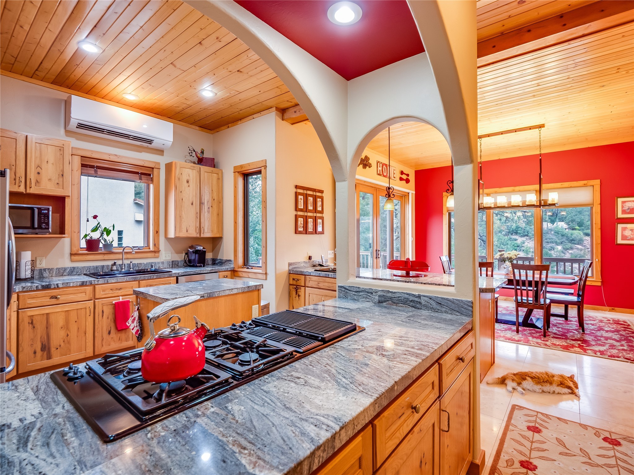 Absolutely gorgeous home with Canyon and Mountain views in the Western Area! Beautiful curb appeal with mature flower beds but also low maintenance. You walk right into the large Foyer/Sunroom with flagstone flooring, and tons of large windows overlooking the front yard that's been temporarily turned into a work studio. A Great Room layout with stunning views brings the outdoors right into your Living Room with wall to wall windows and glass sliding doors that lead to the back wrap around deck. Travertine floors throughout the main floor with wood slat ceilings and a gas fireplace with stone surround. Connected is the Dining Room with more windows and a set of sliding doors leading to the side deck. The Kitchen is a chefs dream space, tons of the granite counter space, a plethora of wood cabinets with chrome hardware, gas cooktop, stainless steel appliances and much more. Off the kitchen is an open pantry and the Laundry Room and access to the detached two car garage. Also on this floor is an office and powder room. Upstairs is carpeted with two nice sized guest bedrooms with walk-in closets and a full guest bath. The spacious Primary En-Suite has wonderful views and a small sitting room with a private deck. A spa like Bathroom with a double sink wood vanity, a deep jetted tub, walk-in shower with glass enclosure and a large walk-in closet. The basement has a large Family/Game Room with wood floors, an included Pool table, and access to the fenced in backyard with covered flagstone patio with an in ground firepit. There's also a guest bedroom, a full guest bath and a ton of storage space and closets on the other side of this floor. This home is outfitted with a fire suppression sprinkler system mounted under the roof eaves for that extra peace of mind. Radiant flooring throughout and a few A/C units in the home. Great location with trails, parks, and schools within walking distance. This home is more than move-in ready so come take your tour today!