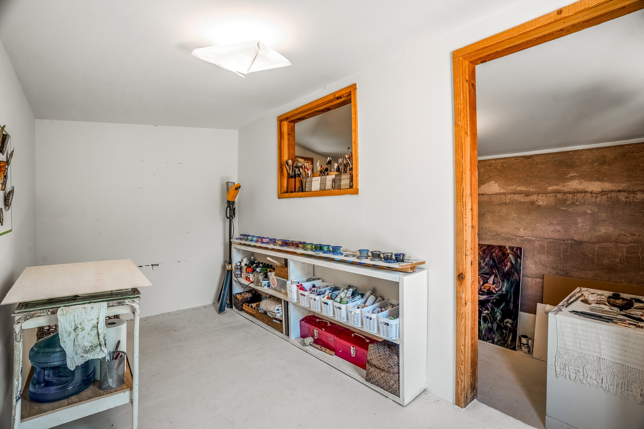 Gracious off-grid living in Lamy only 1 mile East of the Legal Tender and the heart of the Lamy village. This elegant 2bed/1 bath home with a separate studio is beautifully sited on 5 acres with broad views down Lamy's valley. Built in 2004by Karen Terry, a highly respected eco-friendly builder, this property is completely self-sufficient: a shared well (thewell is on the property of the owners of 73 Los Hornos), solar-powered with a 2+ year old battery bank, E-creteconstruction, 3 hand-poured trombe walls for warmth in the winter, 3 cisterns for water catchment, and a Morso wood stove in the beautiful main living area. The main house has an open concept living/dining/kitchen with high ceilings andskylights in every room. Brick flooring throughout the house. Established native pollinator plant beds. There are 3wonderful outdoor areas and 5 raised vegetable garden beds. The art studio is separate and has also been used as a guest casita/office. This special property is 25 minutes to Santa Fe's Plaza and yet another world and time period away.