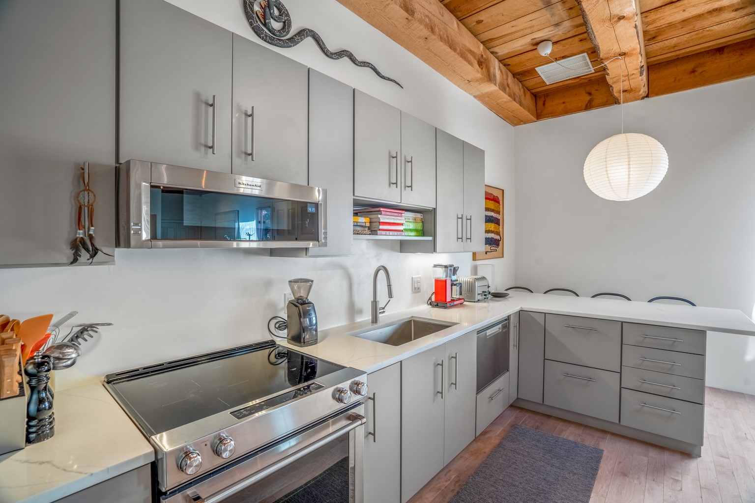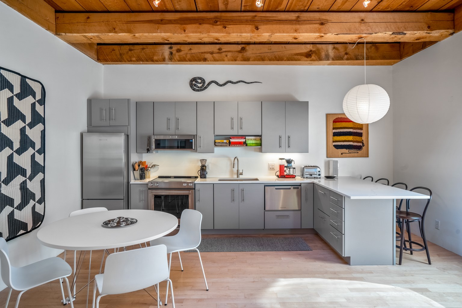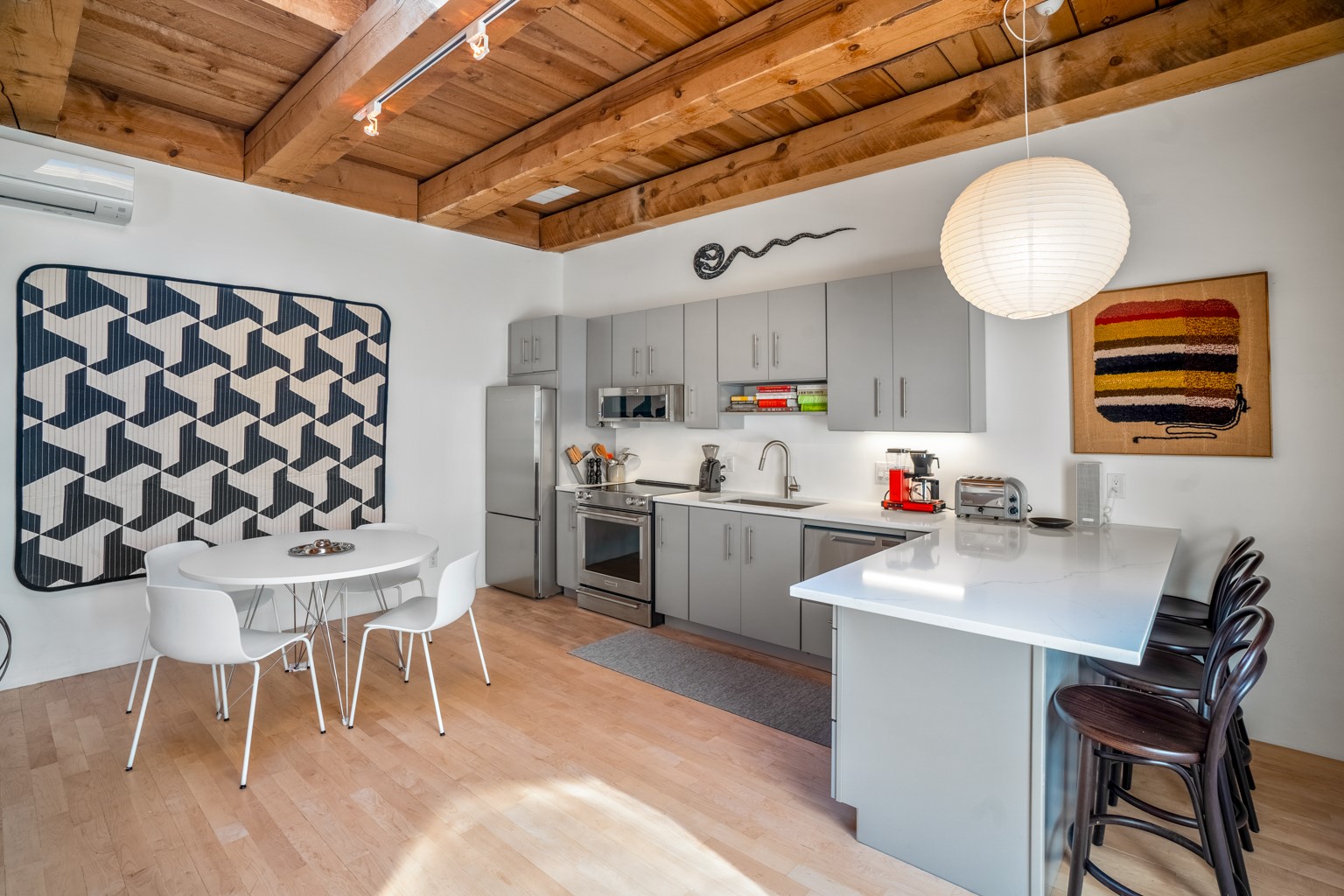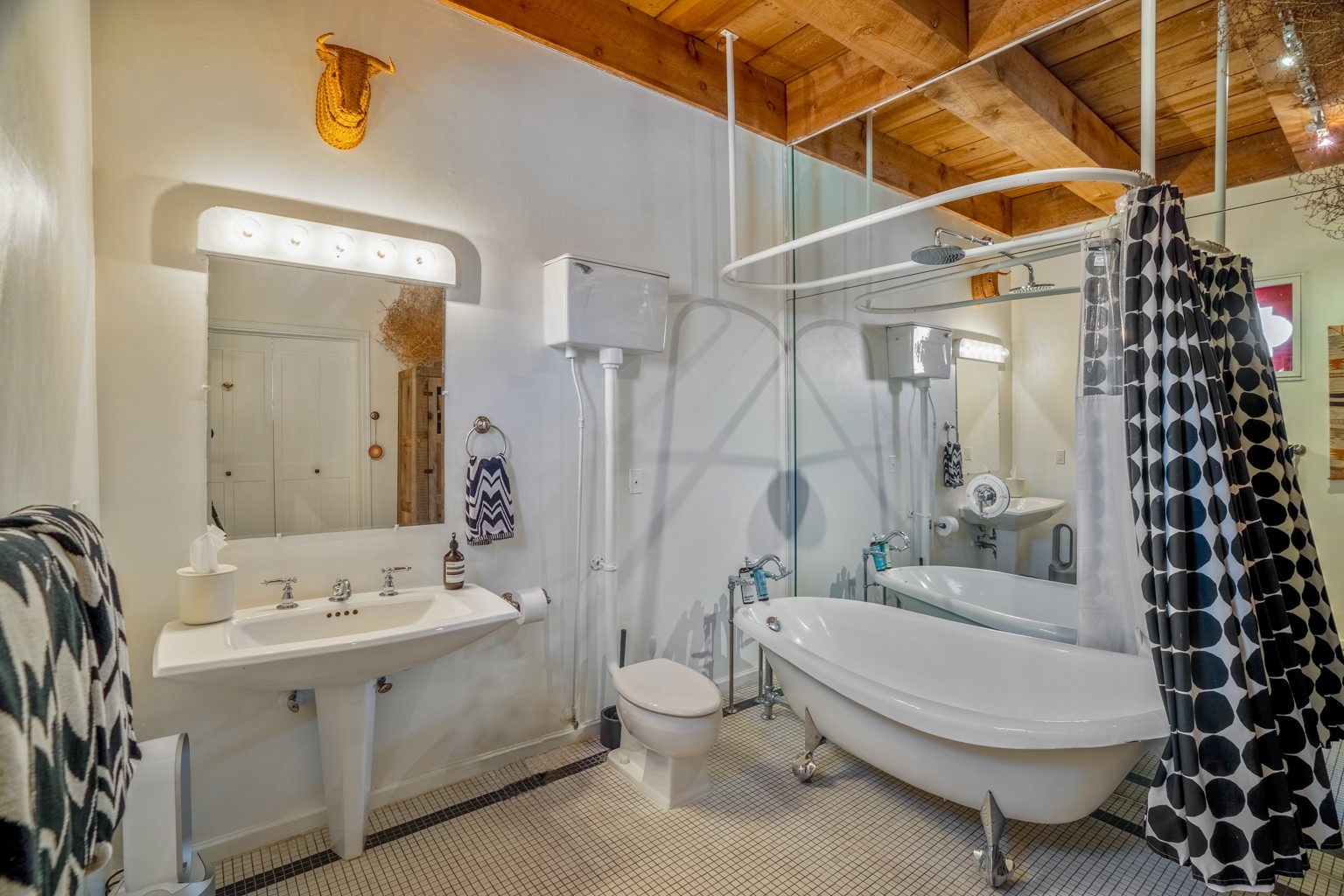 Nestled behind an impressive gated entrance, rests a remarkable compound comprising 4 architecturally unique units. Positioned alongside the Santa Fe river, this compound offers not only stunning aesthetics but also convenience, being a leisurely stroll away from both the Santa Fe Plaza and the lively Guadalupe Historic Railyard District.Meticulously renovated from the ground up, every facet of this condo has been transformed. The result is an exquisite living space featuring a modernized chef's kitchen, lofty ceiling adorned with wooded beams, and expansive skylights that flood the interior with natural light. Currently utilized as a short term rental property with consistently high occupancy rates, this pied-a-terre presents an exceptional opportunity for savvy investors looking to establish a foothold in Santa Fe's competitive rental and housing market. Furniture Package does not convey. It is handled at an additional price.