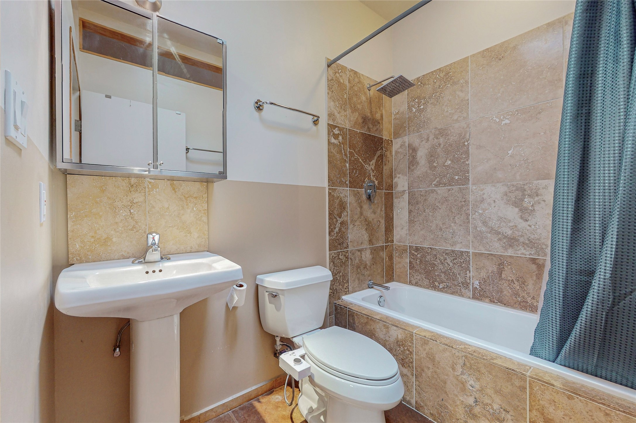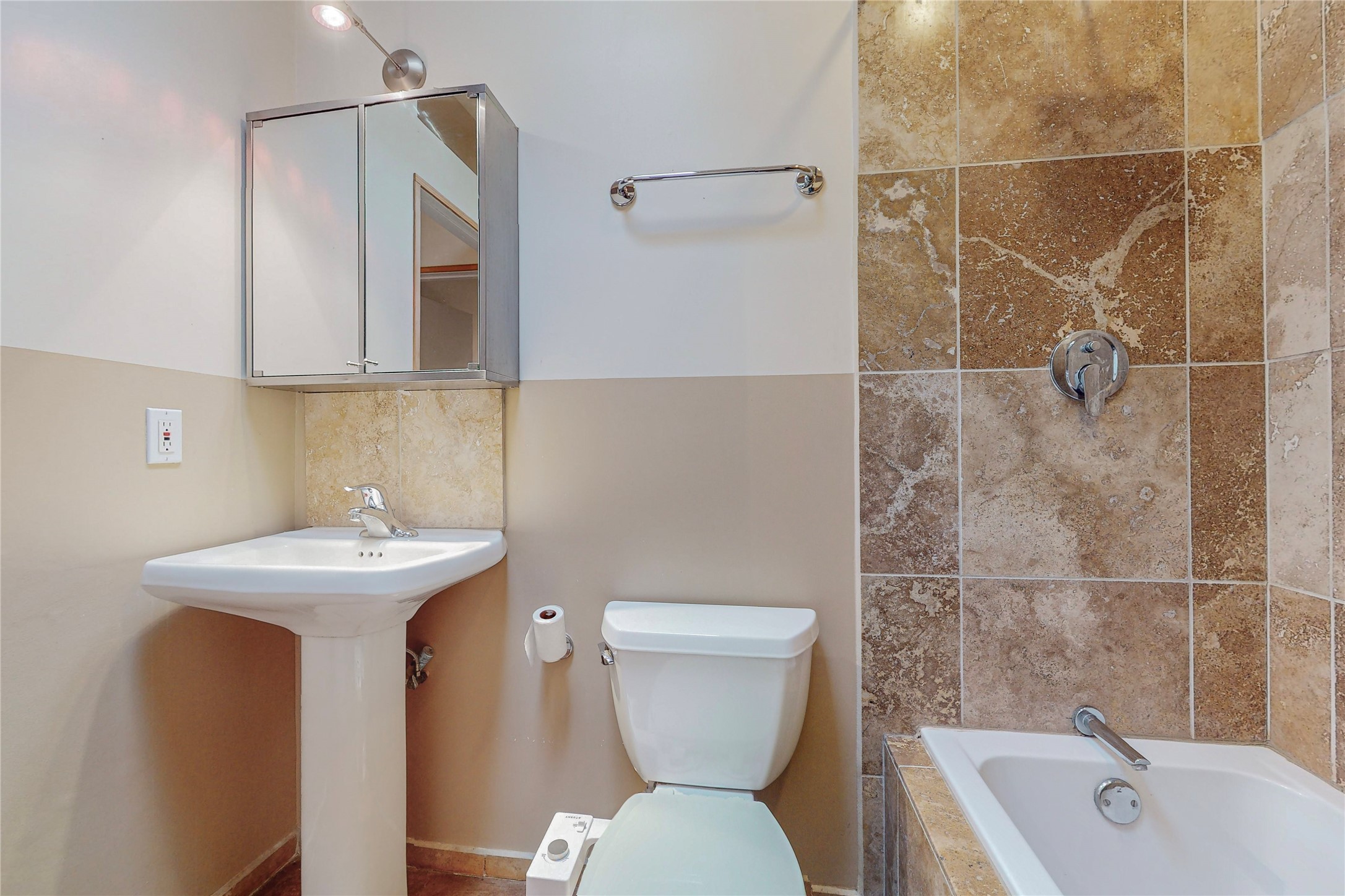 This private, freestanding condo enjoys modern finishes and is well set-back from the street, with off-street parking, for maximum privacy. Scandinavian design aesthetics by an award-winning designer conceived the contemporary floor plan, admitting tons of natural light through clerestory windows. Pine floors and double doors to the kitchen and bedroom allow a flowing open plan, or space separation if hosting a guest on the bonus Murphy bed. There are two separate, large terrace areas, inviting gardeners to cultivate and offering discrete seating areas for entertaining. Bedroom opens onto patio. A fantastic, serene location in Santa Fe's dynamic Midtown district, short distance to all amenities.