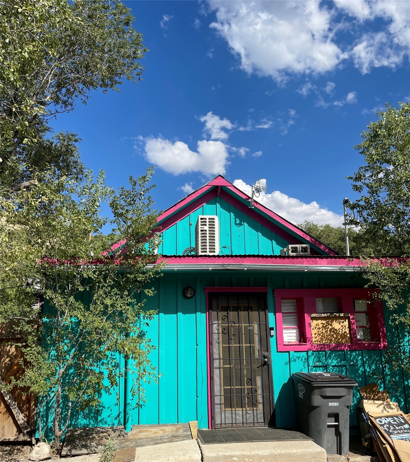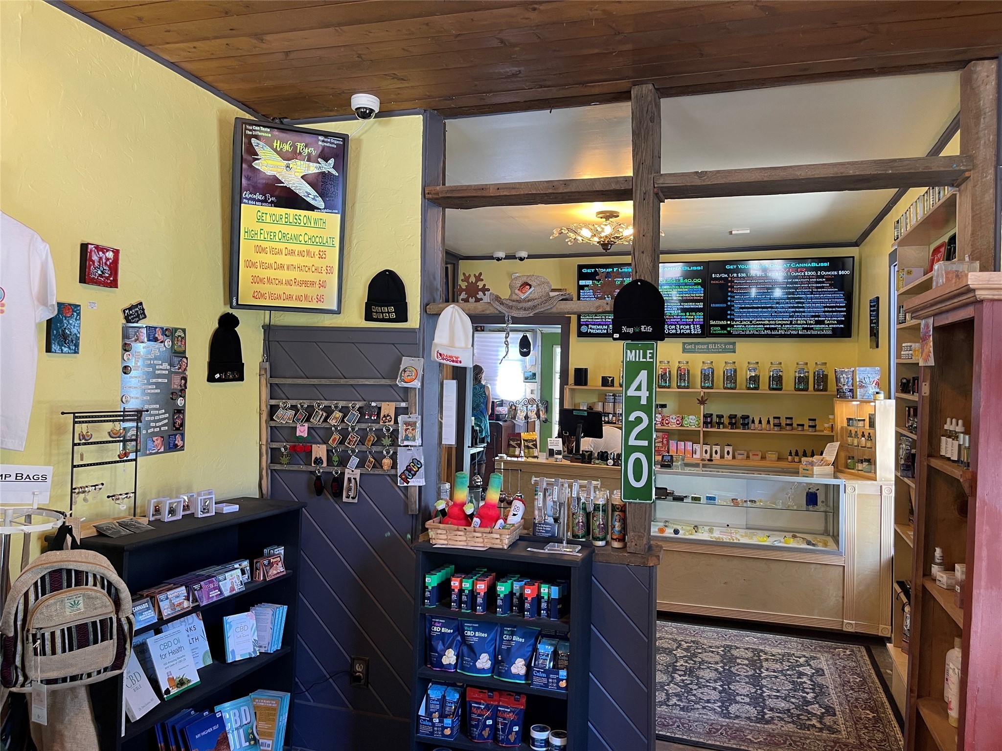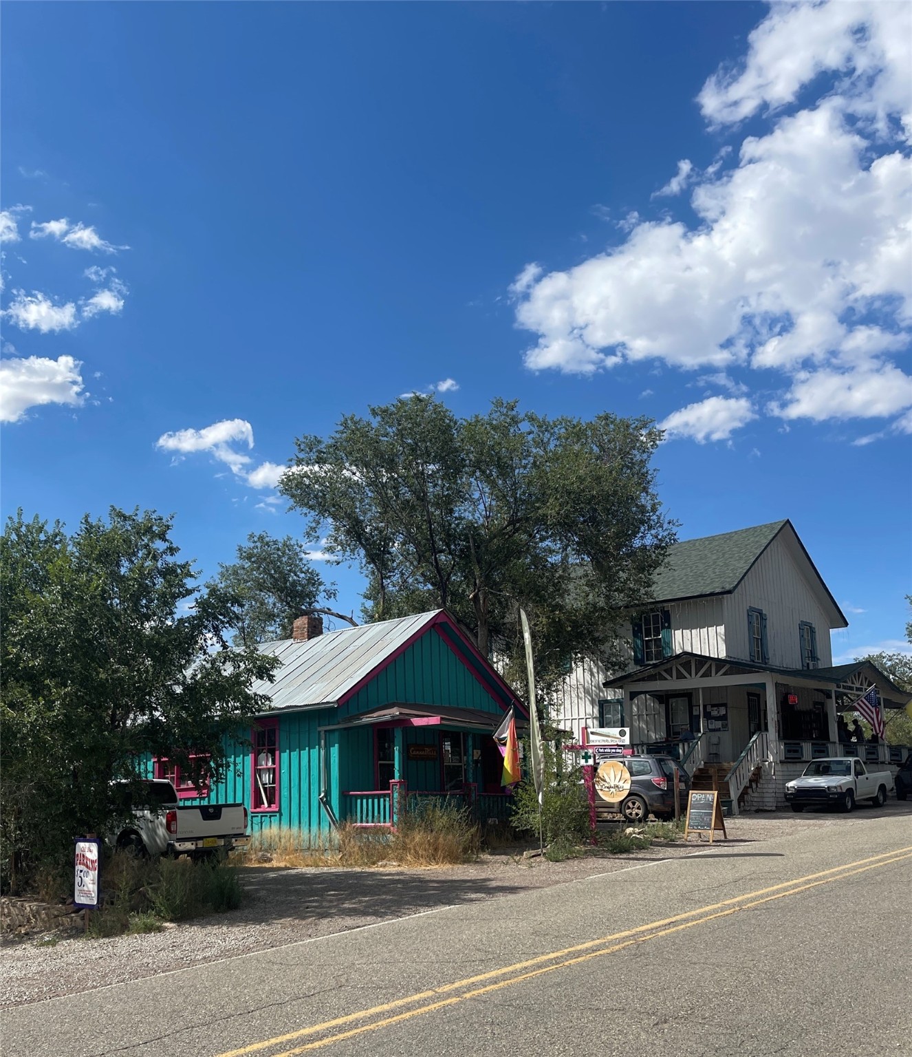 Alluring shop in Madrid with location and charm. It is currently used as a cannabis dispensary. In the past, it was a jewelry shop and a Real Estate office.Great street level visibility, next door to the Old Boarding House Mercantile.