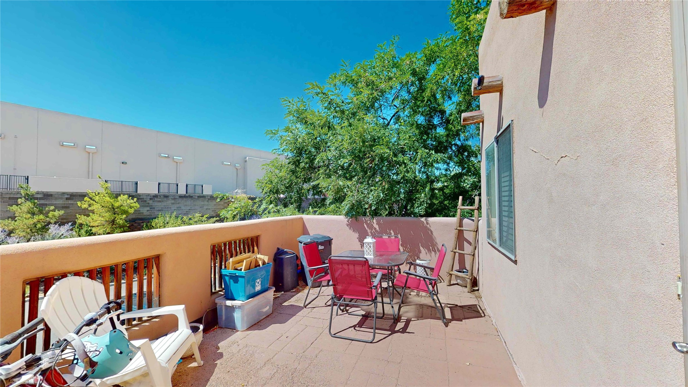 Step inside this bright and airy second floor condo and feel right at home! This well-maintained home is centrally located in the gated community of Plaza Encantada. The spacious floorplan provides a great flow for everyday living and entertaining. The generously sized balcony provides a wonderful outdoor living area to enjoy the beautiful NM skies all year round. This well-thought-out floorplan has three nicely sized bedrooms and two full bathrooms. Plenty of closet/storage space throughout, updated appliances, and a new roof in 2020. Condo Association maintains stucco, concrete stairs and roof. Close to shopping, restaurants and Meow Wolf. Don't miss out on this great opportunity- Schedule your showing today!