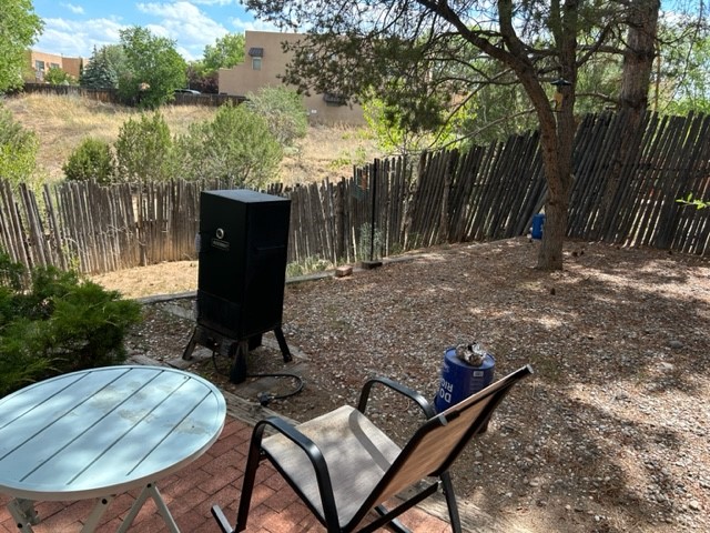 Under 400,000 in Santa Fe! Townhome with great outdoor living space that offers beautiful backyard privacy and second level deck to enjoy relaxation and enjoy night skies. Easy care brick flooring in main living area, wood burning fireplace. Great open floor plan. Appliances included so move right in. This property has a successful long term rental history too.