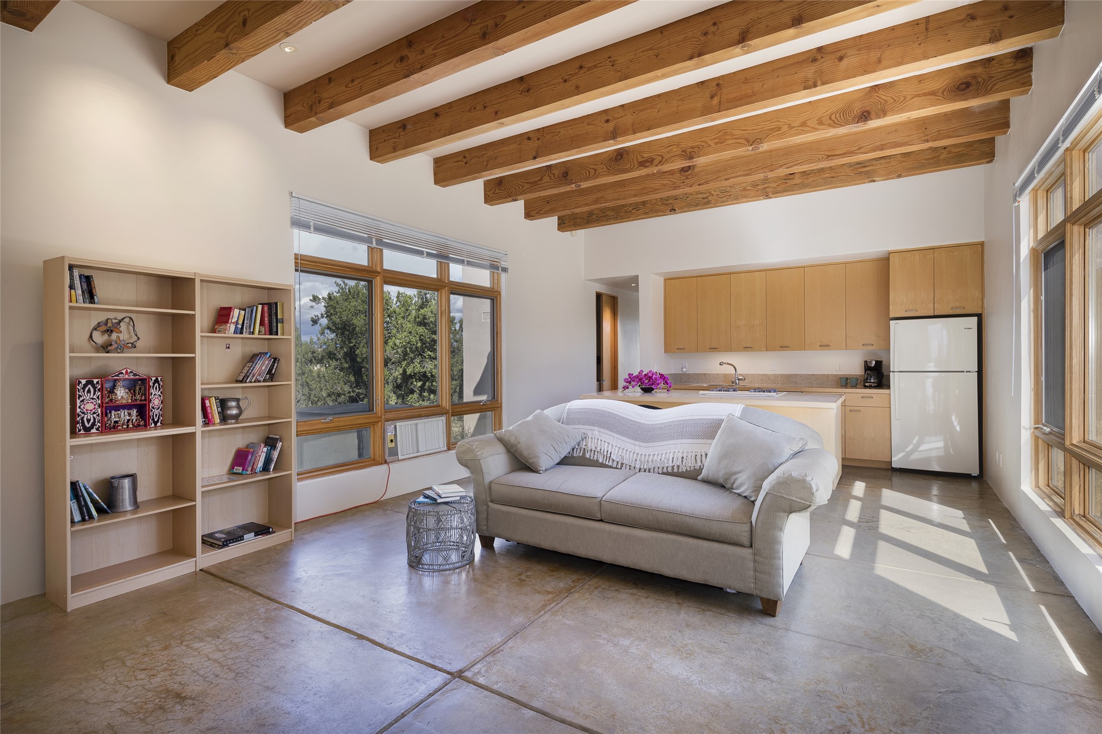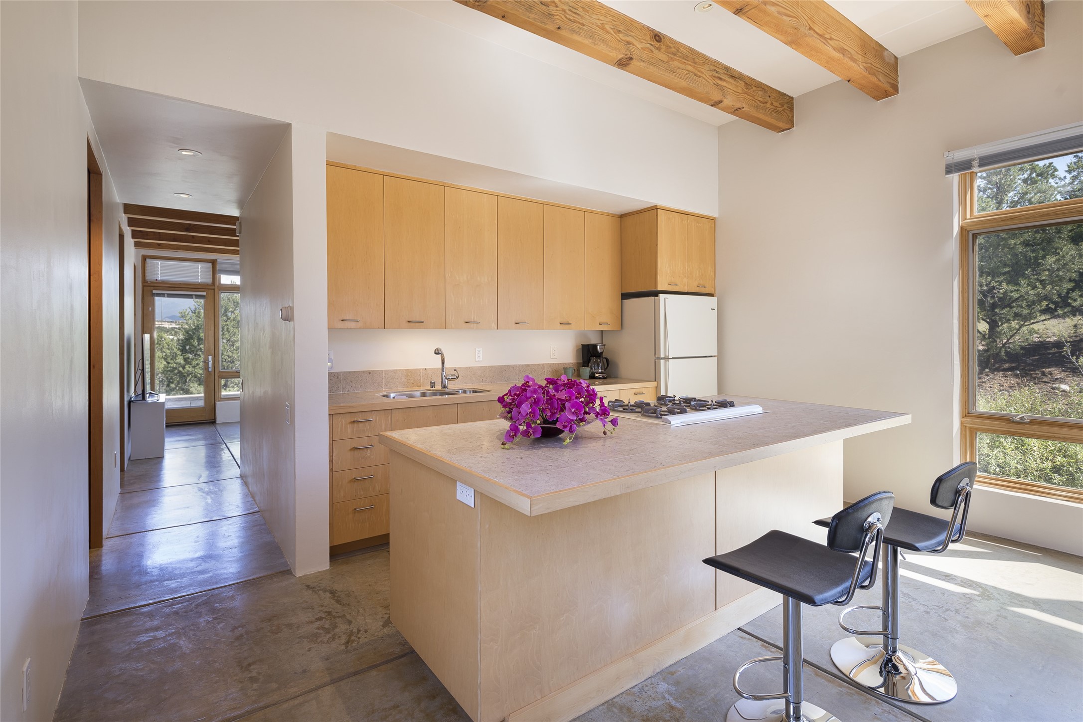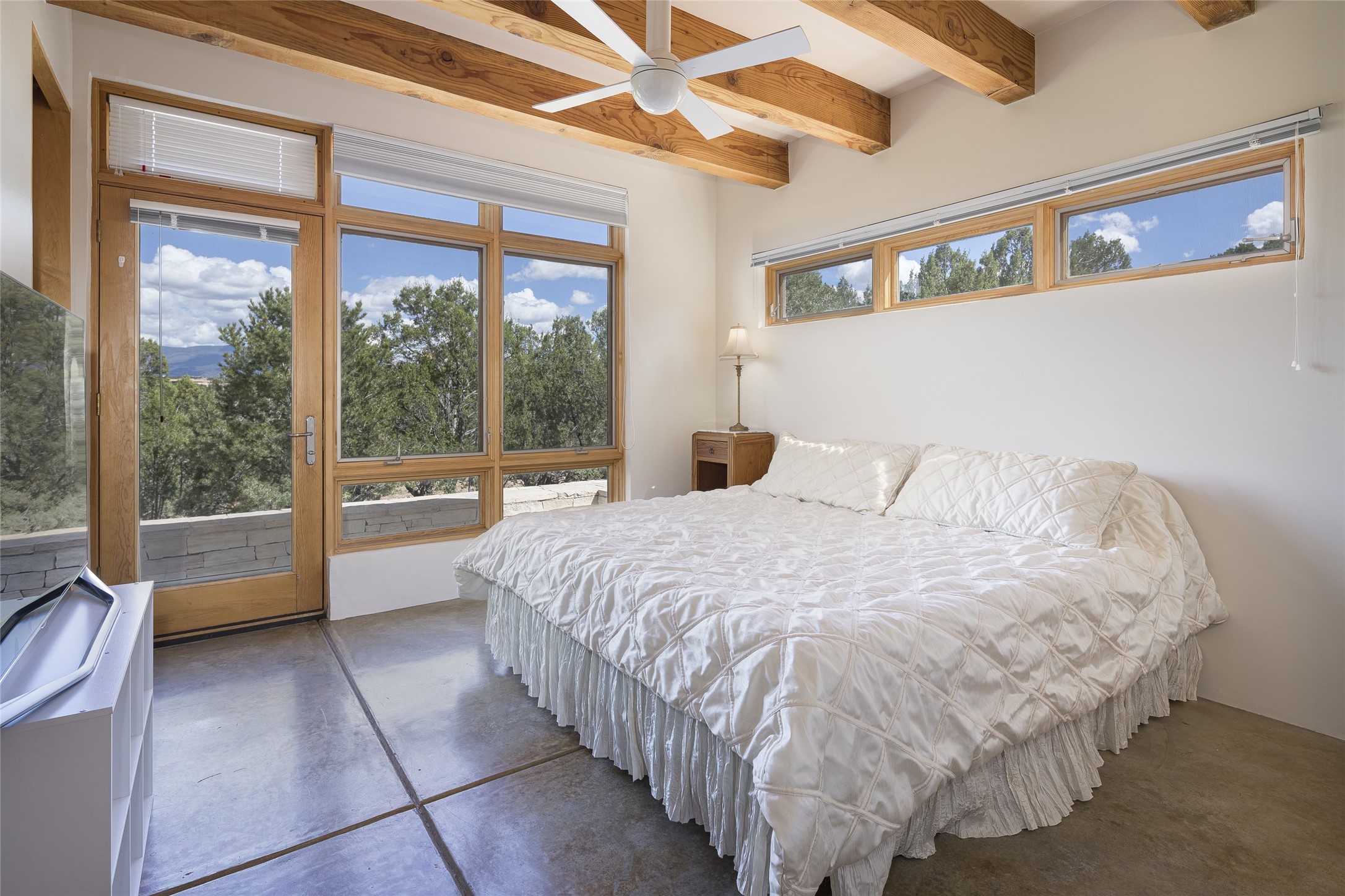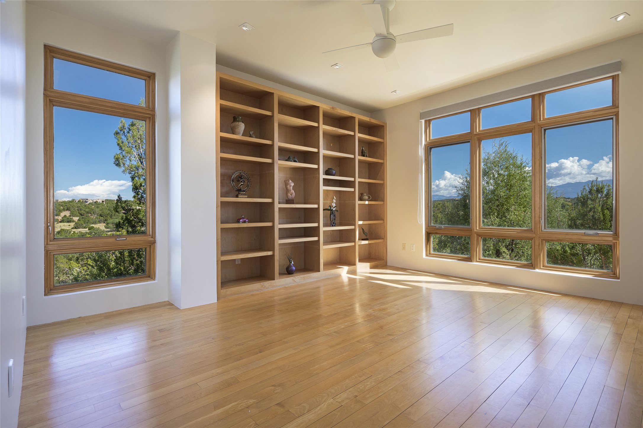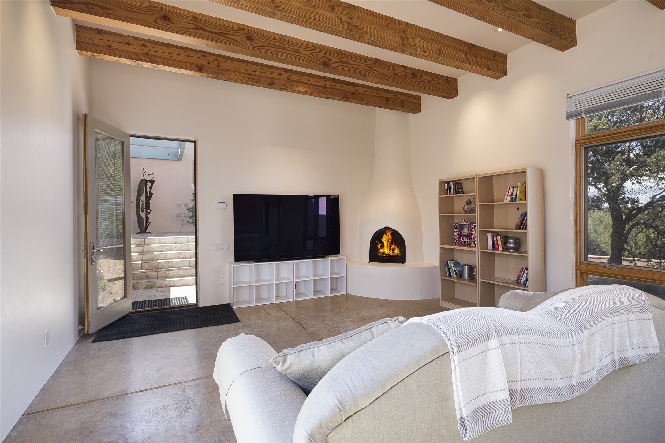 Experience the ultimate Santa Fe lifestyle with this Tour de Force contemporary house and guest house with unparalleled Sangre De Cristo Mountain views and a fabulous heated indoor lap pool. Located within close proximity to the Plaza and The Club at Las Campanas, and sited on a private, elevated 2+ acre cul de sac view lot, this sophisticated retreat, designed by renowned architect, Craig Hoopes, masterfully incorporates seamless indoor and outdoor living at its finest and perfectly blends contemporary design with Santa Fe warmth. The 3,127 square foot main house excites with a spacious open-concept great room complete with surround view windows which frame the Sangre De Cristo Mountains, fireplace, and access to dual outdoor portals and zen gardens. The industrial-style island kitchen is ideal for entertaining with stainless appliances, a casual dining area with a fireplace, and a large walk-in pantry, all of which enjoy expansive views and opens directly to the formal dining room and all main living areas. The spacious owner's suite delights with mountain views, fireplace, sitting area, a spa-like bath with its own private outdoor lounging area, dual walk-in closets, and a generous attached bonus room ideal as an office, media room, or art studio. Separate from the main living area is a private ensuite bedroom, a secondary bedroom or office, and access to the 1,183 square foot pool house complete with a resort-like indoor heated lap pool, sauna, shower, and exercise areas. Guests enjoy complete independence with the well-appointed detached 876 square foot one-bedroom guest house with a full kitchen, living room, fireplace, full bath, washer/dryer, and stunning views. Exceptional features include endless art walls, soft natural light, a flexible floor plan, excellent storage throughout, a backup generator, an updated roof, 2 newly replaced boilers, and updated interior plaster. This home represents a rare opportunity and truly, the ultimate Santa Fe lifestyle.