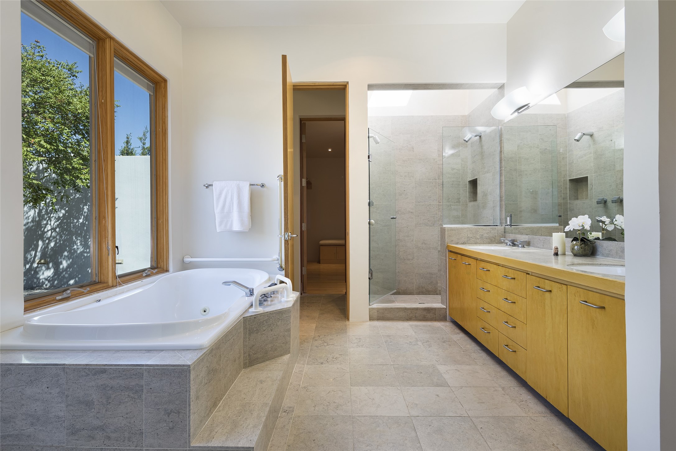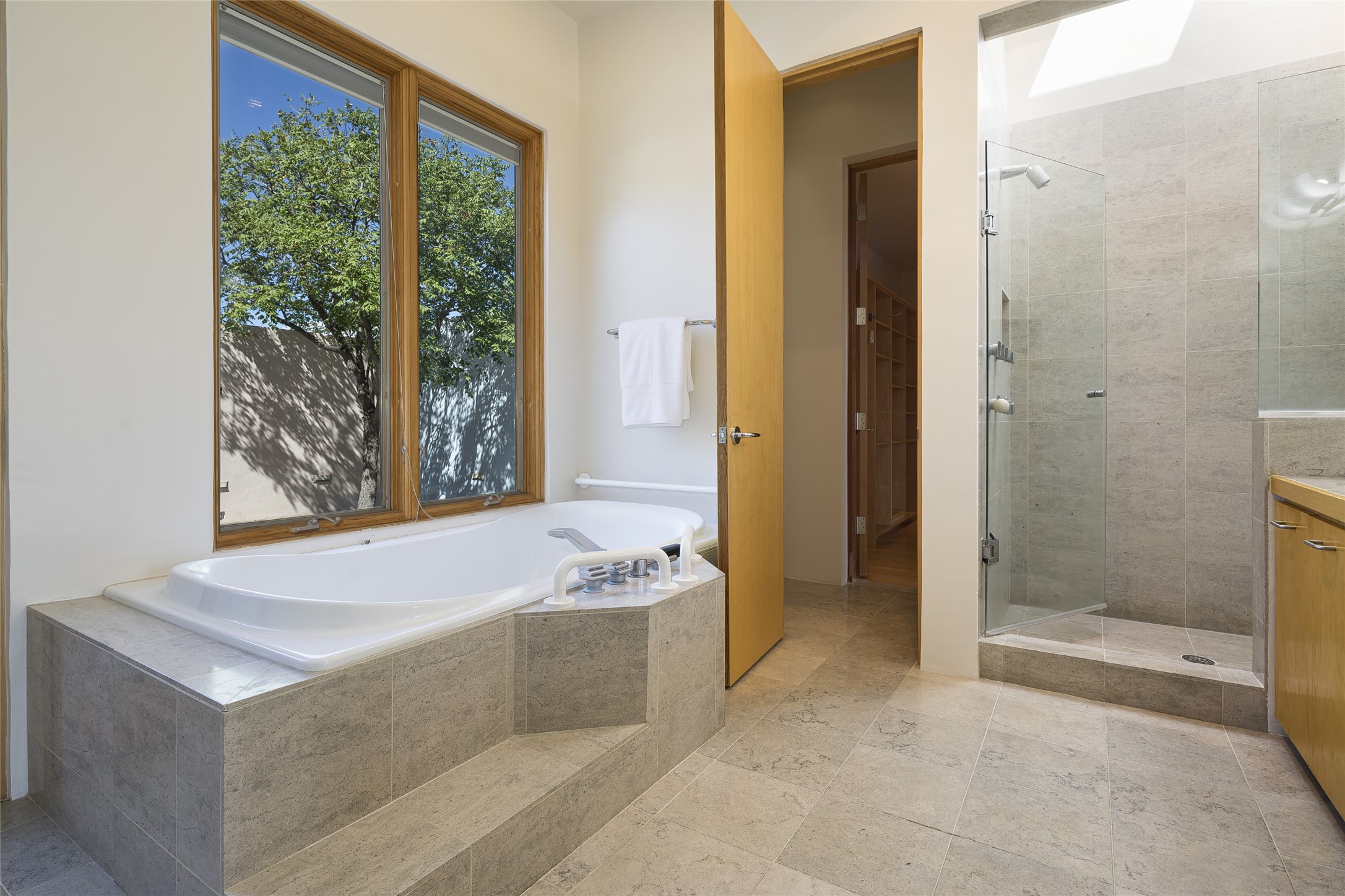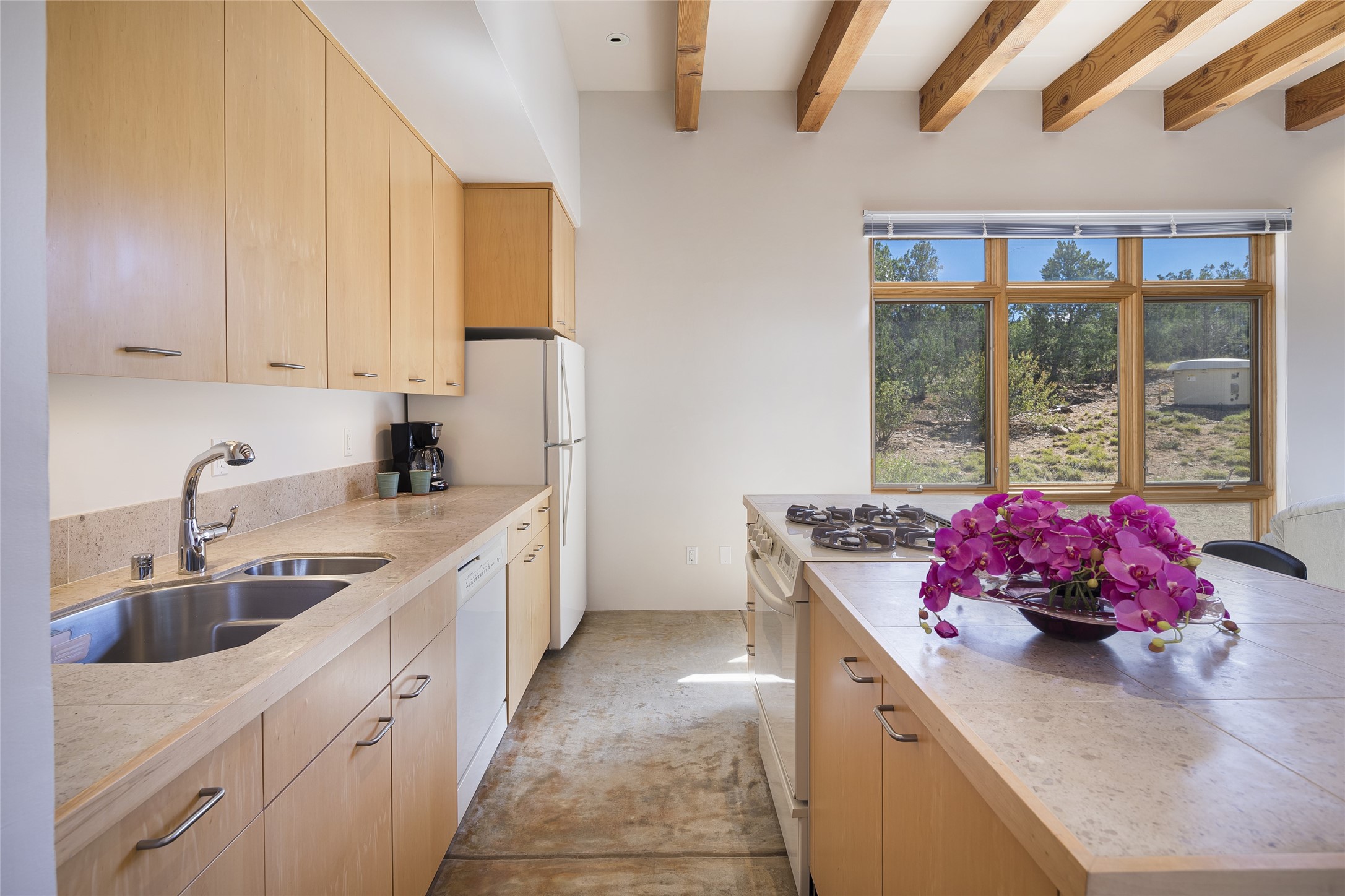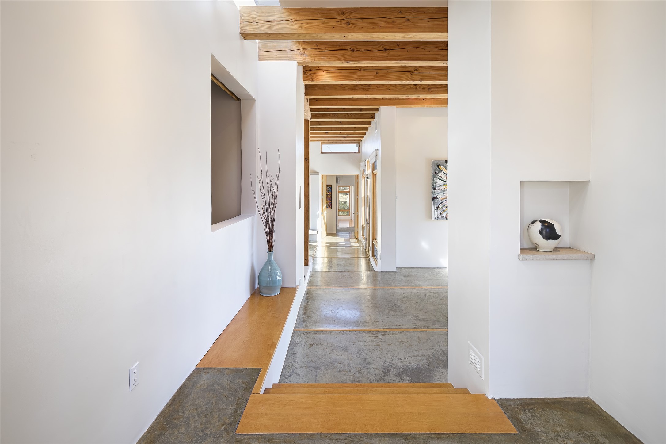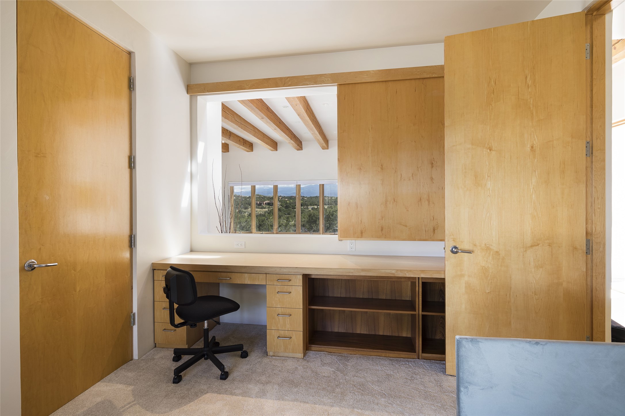 Experience the ultimate Santa Fe lifestyle with this Tour de Force contemporary house and guest house with unparalleled Sangre De Cristo Mountain views and a fabulous heated indoor lap pool. Located within close proximity to the Plaza and The Club at Las Campanas, and sited on a private, elevated 2+ acre cul de sac view lot, this sophisticated retreat, designed by renowned architect, Craig Hoopes, masterfully incorporates seamless indoor and outdoor living at its finest and perfectly blends contemporary design with Santa Fe warmth. The 3,127 square foot main house excites with a spacious open-concept great room complete with surround view windows which frame the Sangre De Cristo Mountains, fireplace, and access to dual outdoor portals and zen gardens. The industrial-style island kitchen is ideal for entertaining with stainless appliances, a casual dining area with a fireplace, and a large walk-in pantry, all of which enjoy expansive views and opens directly to the formal dining room and all main living areas. The spacious owner's suite delights with mountain views, fireplace, sitting area, a spa-like bath with its own private outdoor lounging area, dual walk-in closets, and a generous attached bonus room ideal as an office, media room, or art studio. Separate from the main living area is a private ensuite bedroom, a secondary bedroom or office, and access to the 1,183 square foot pool house complete with a resort-like indoor heated lap pool, sauna, shower, and exercise areas. Guests enjoy complete independence with the well-appointed detached 876 square foot one-bedroom guest house with a full kitchen, living room, fireplace, full bath, washer/dryer, and stunning views. Exceptional features include endless art walls, soft natural light, a flexible floor plan, excellent storage throughout, a backup generator, an updated roof, 2 newly replaced boilers, and updated interior plaster. This home represents a rare opportunity and truly, the ultimate Santa Fe lifestyle.