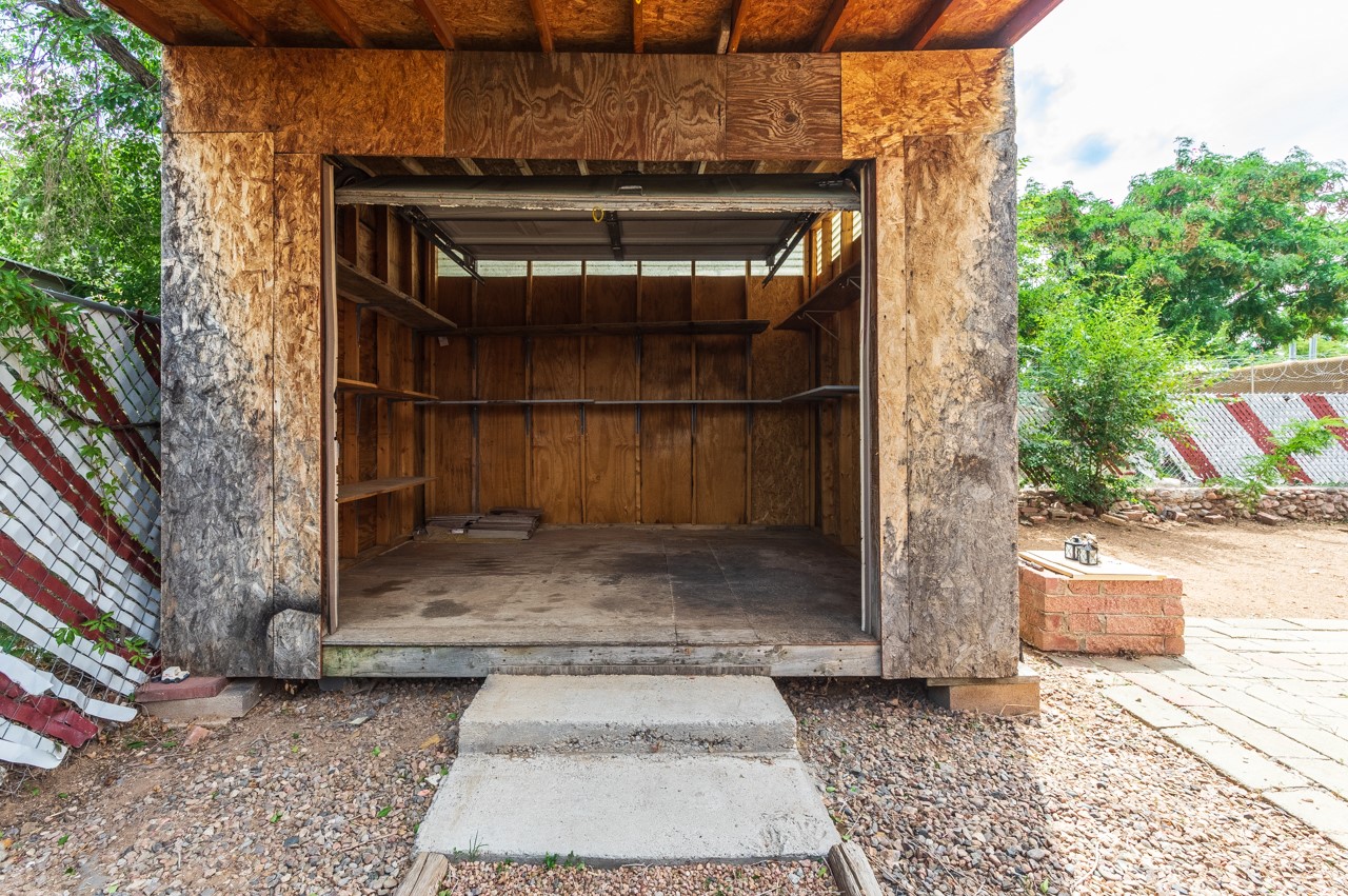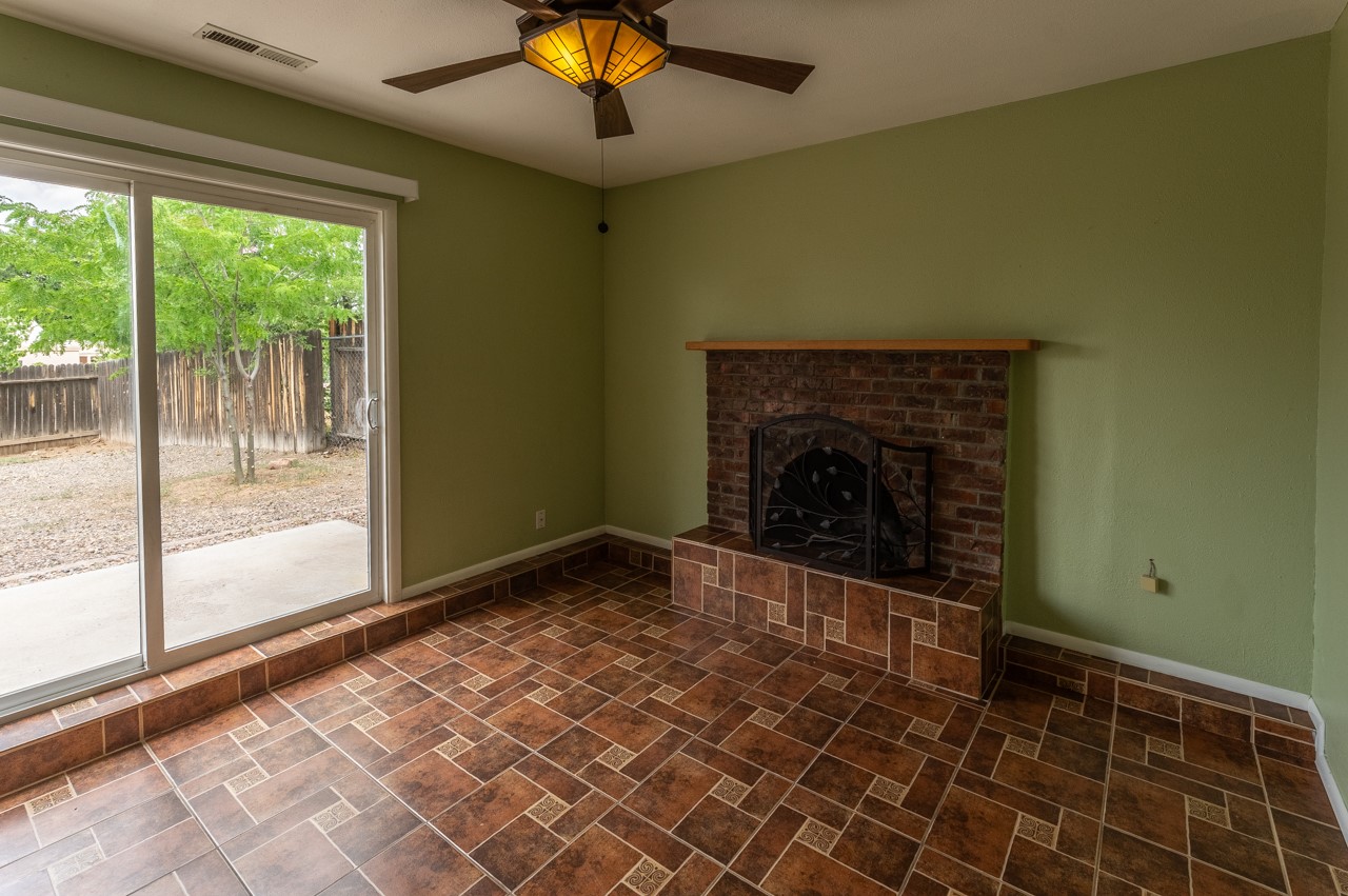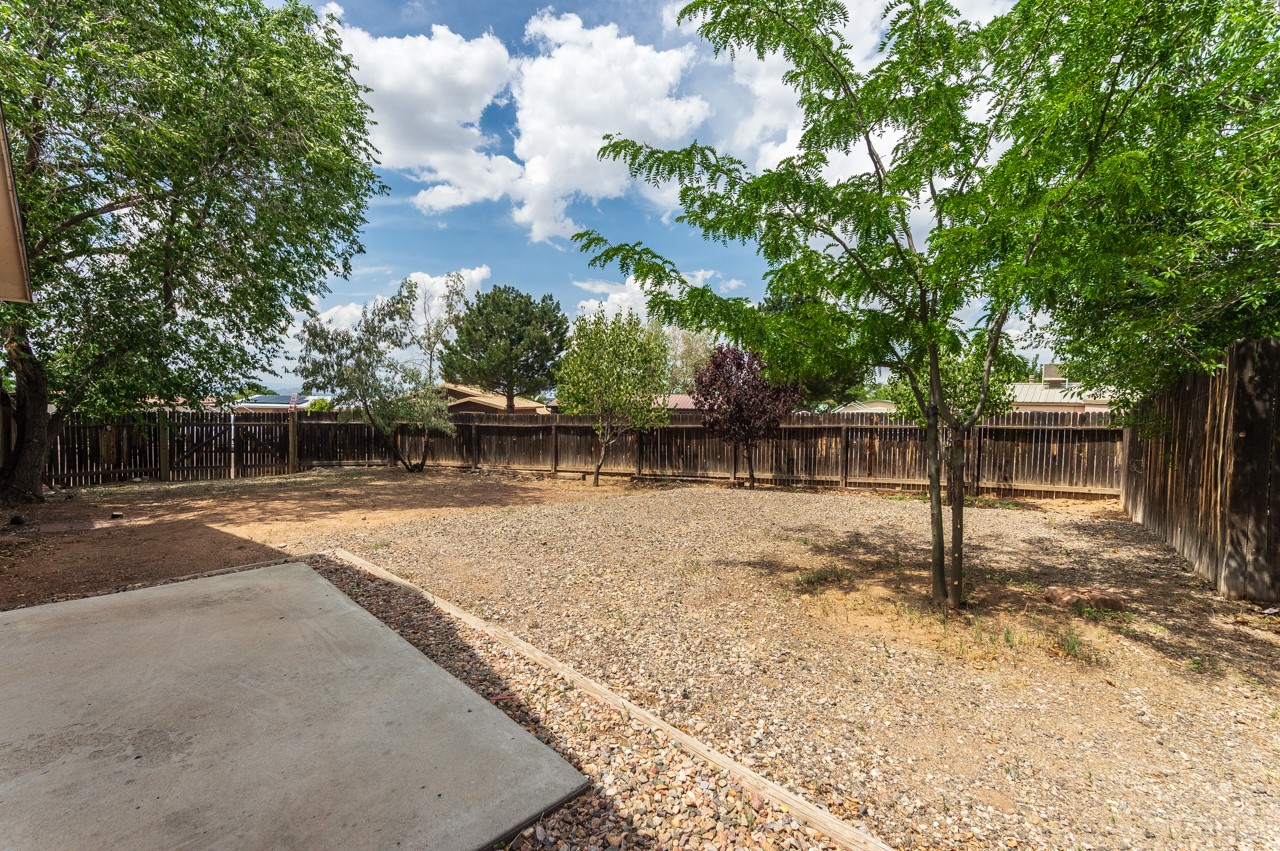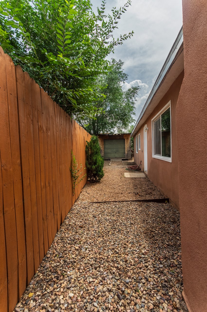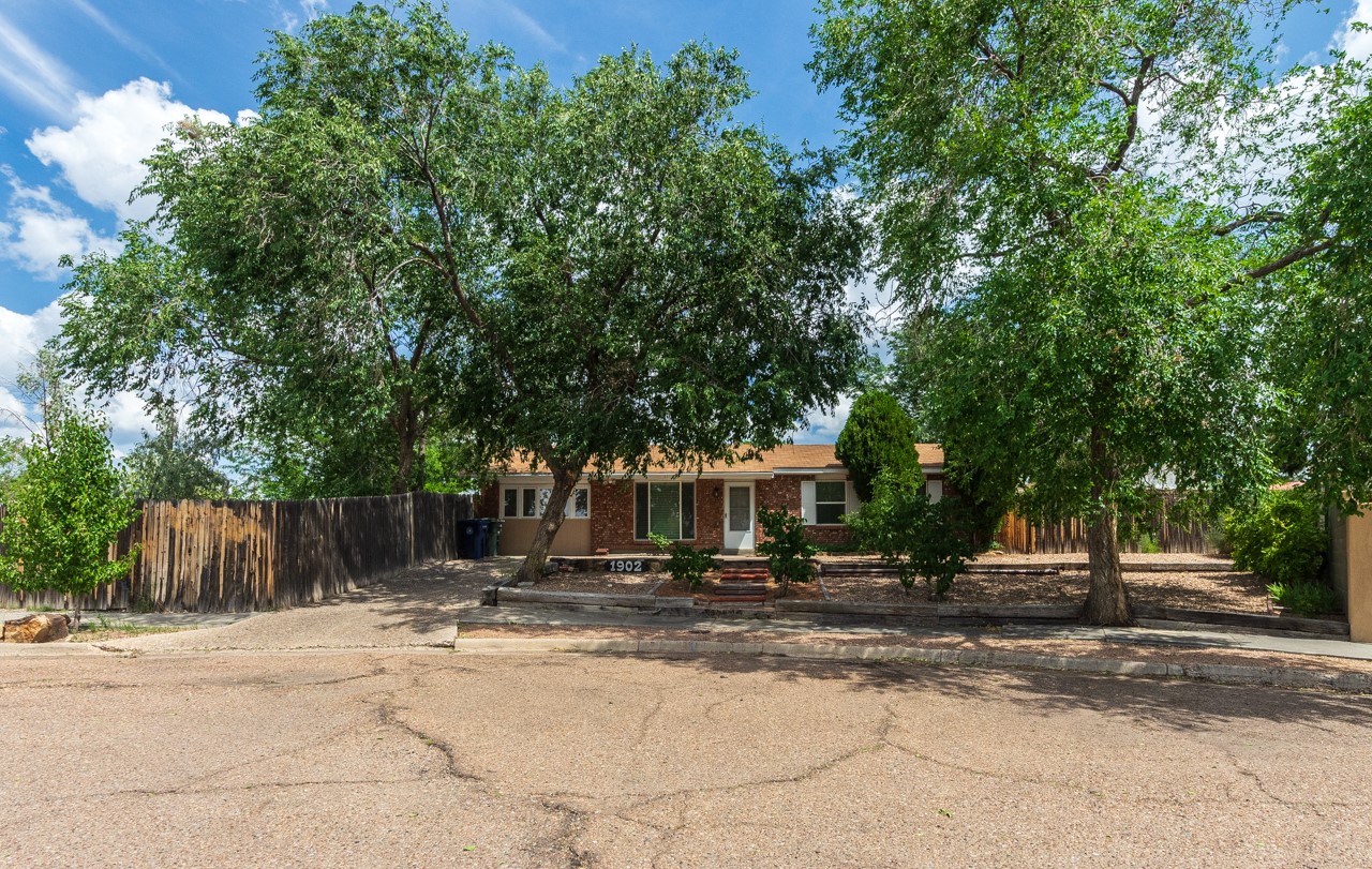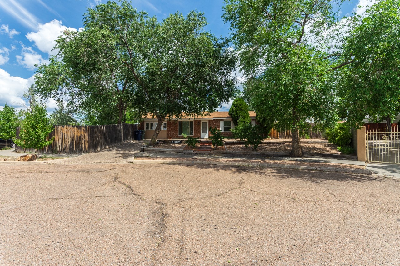 This home is charming with a large living room with a wood-burning stove and entry into a den with a fireplace and sliding glass door to the large fenced yard with double gate access from the street. The kitchen has an eating area and a back door to the west side of the backyard complete with a shed, that wraps around to another smaller side yard. The primary bedroom has an en suite half bath. Tile floor throughout the home. The original driveway has room for two-car parking. Large trees shade the front yard with the homesitting on a corner lot.