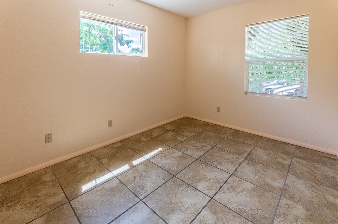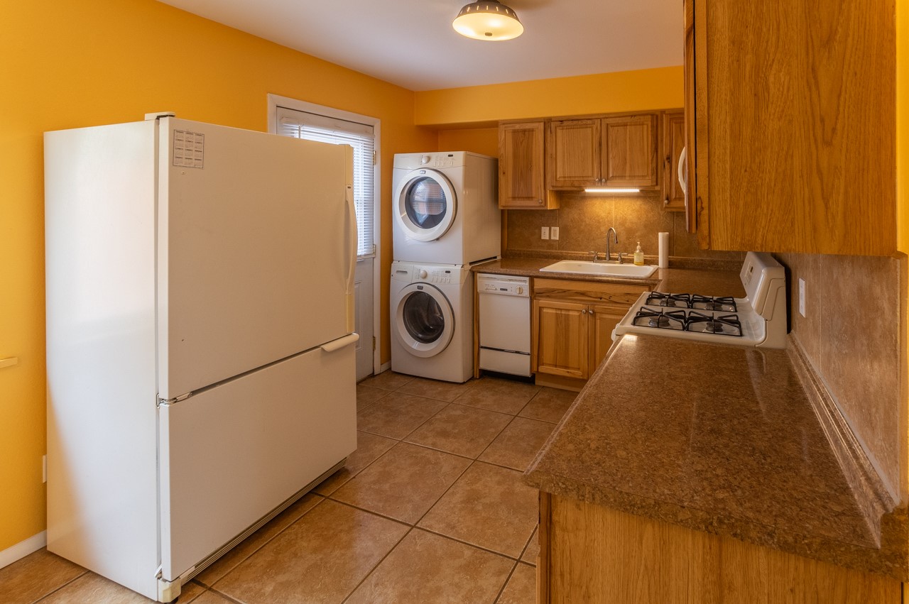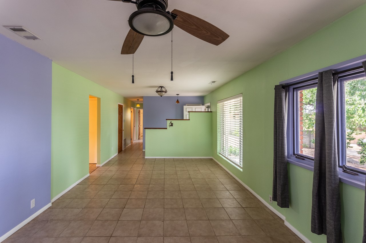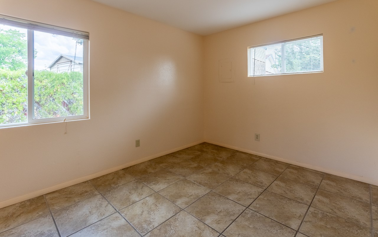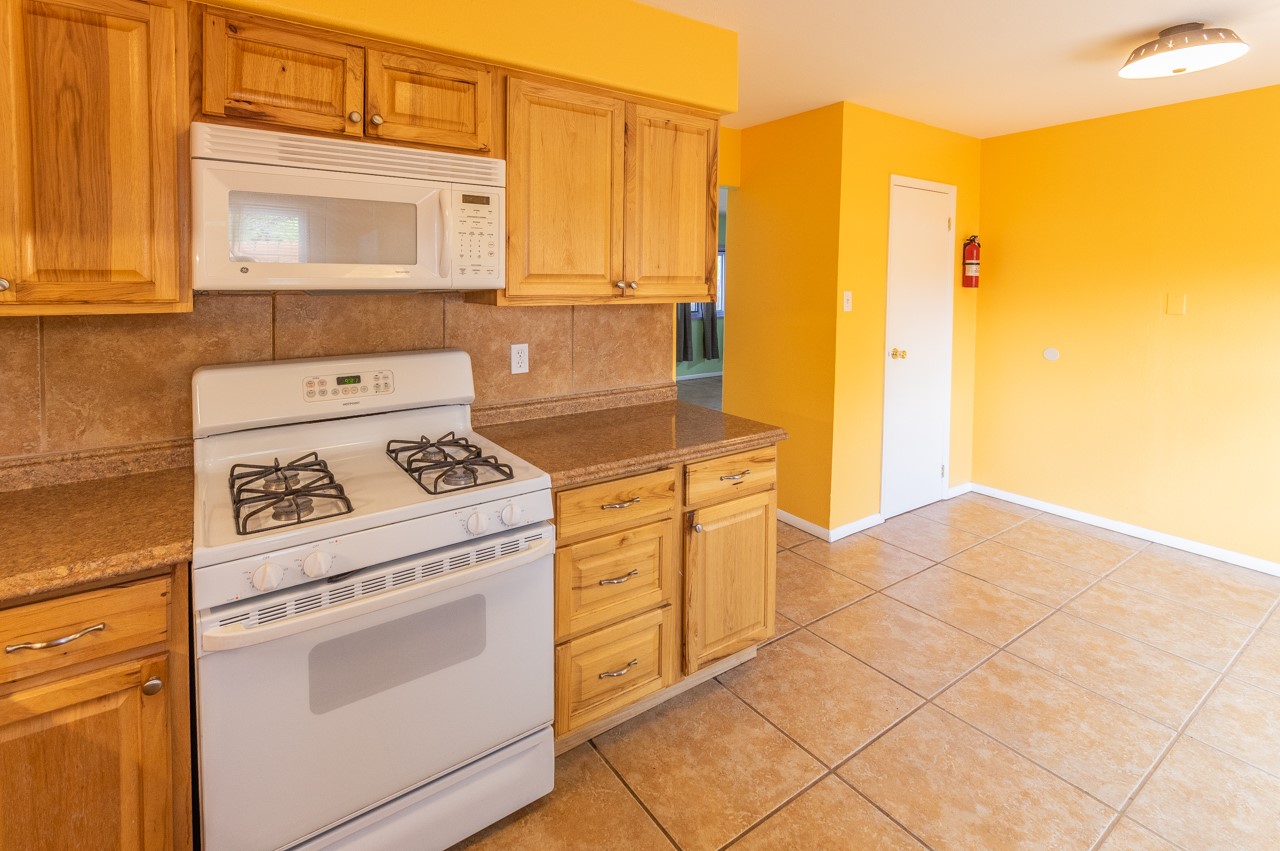 This home is charming with a large living room with a wood-burning stove and entry into a den with a fireplace and sliding glass door to the large fenced yard with double gate access from the street. The kitchen has an eating area and a back door to the west side of the backyard complete with a shed, that wraps around to another smaller side yard. The primary bedroom has an en suite half bath. Tile floor throughout the home. The original driveway has room for two-car parking. Large trees shade the front yard with the homesitting on a corner lot.
