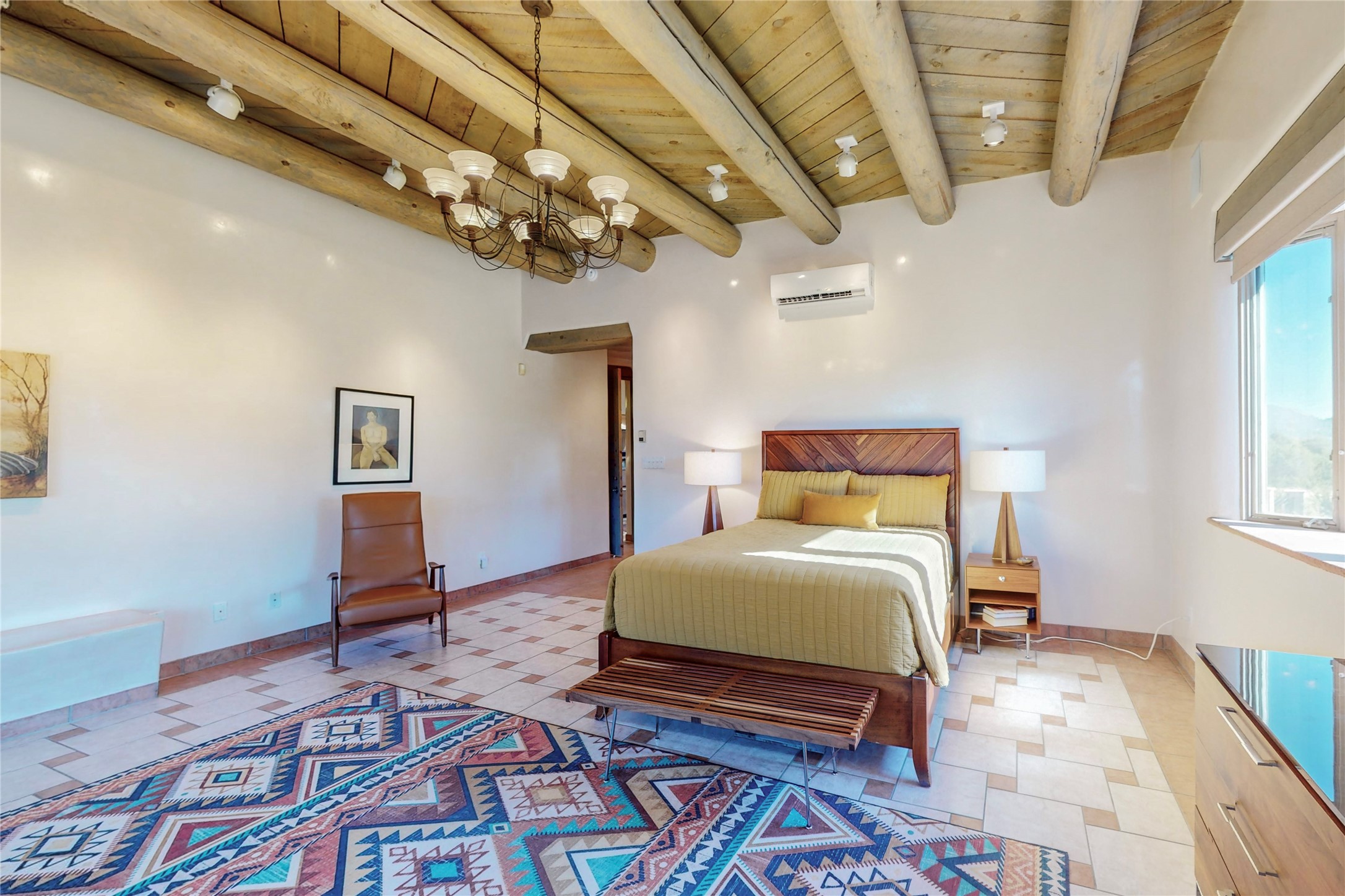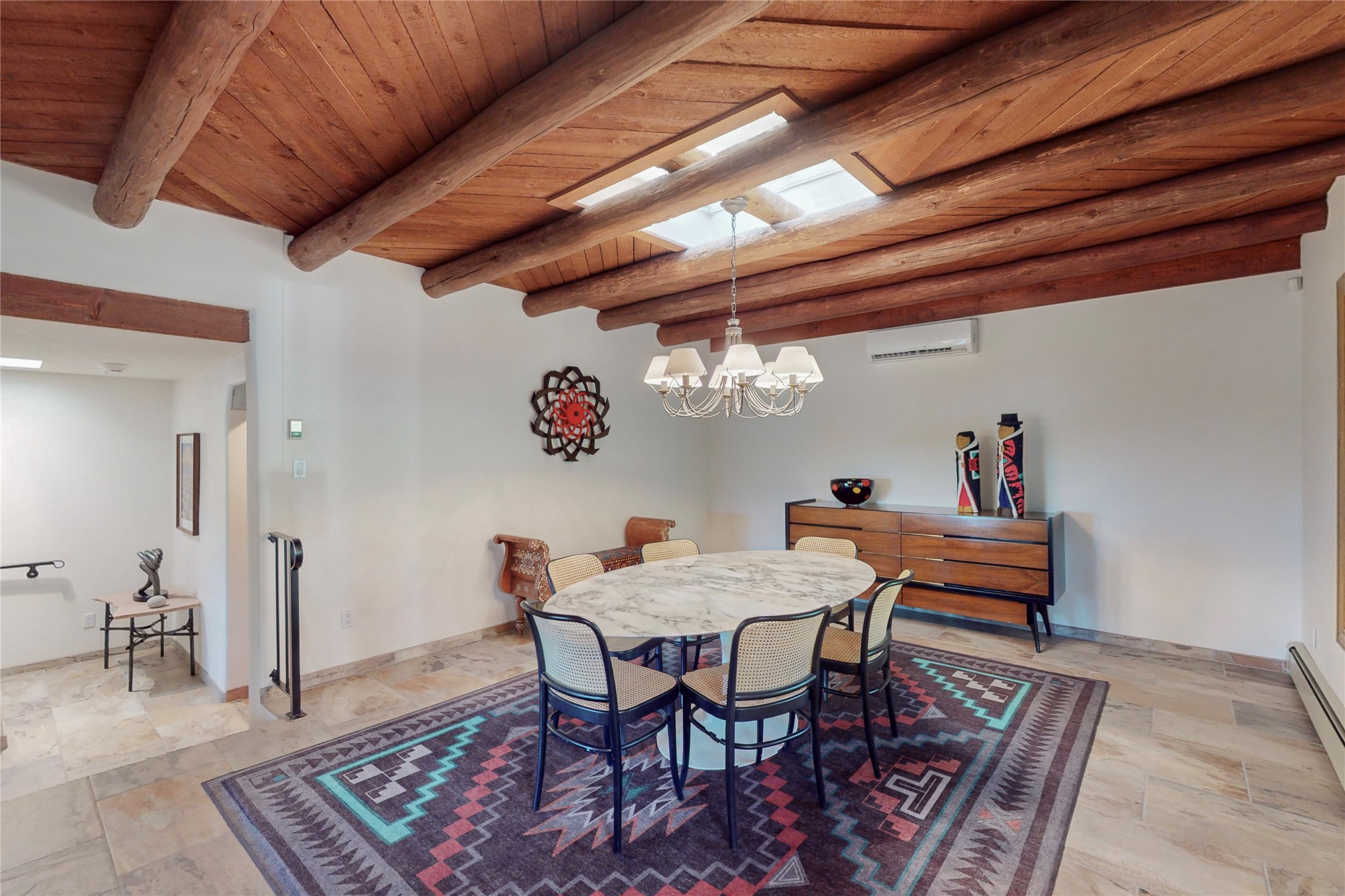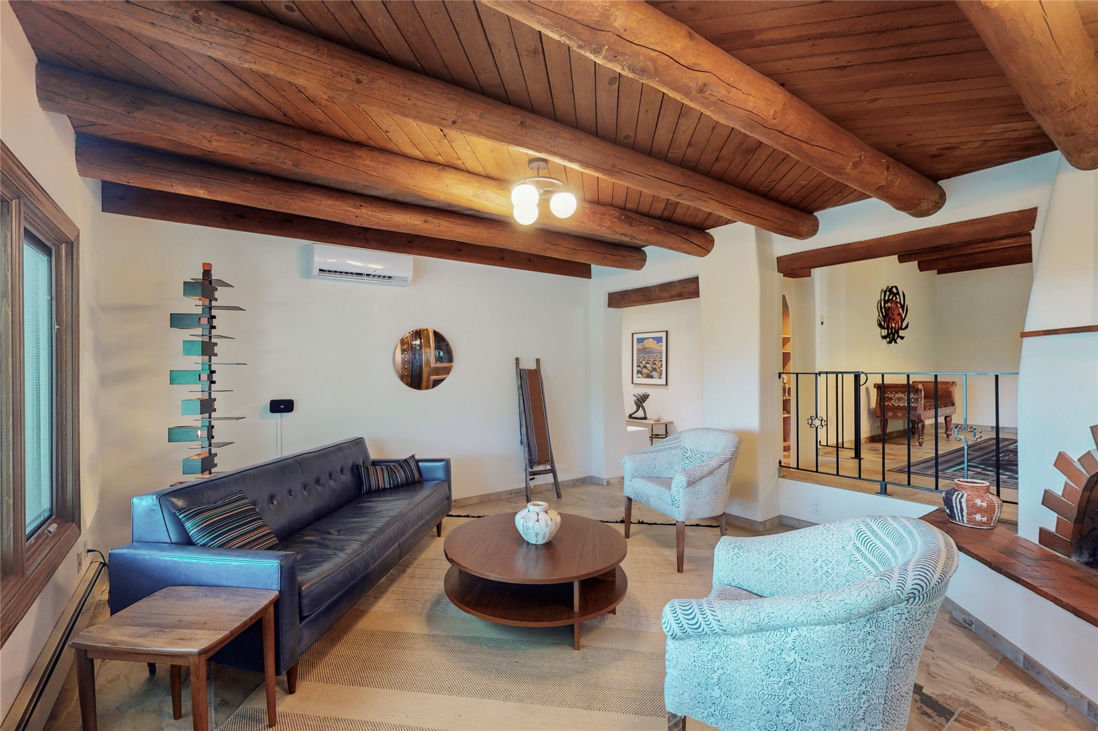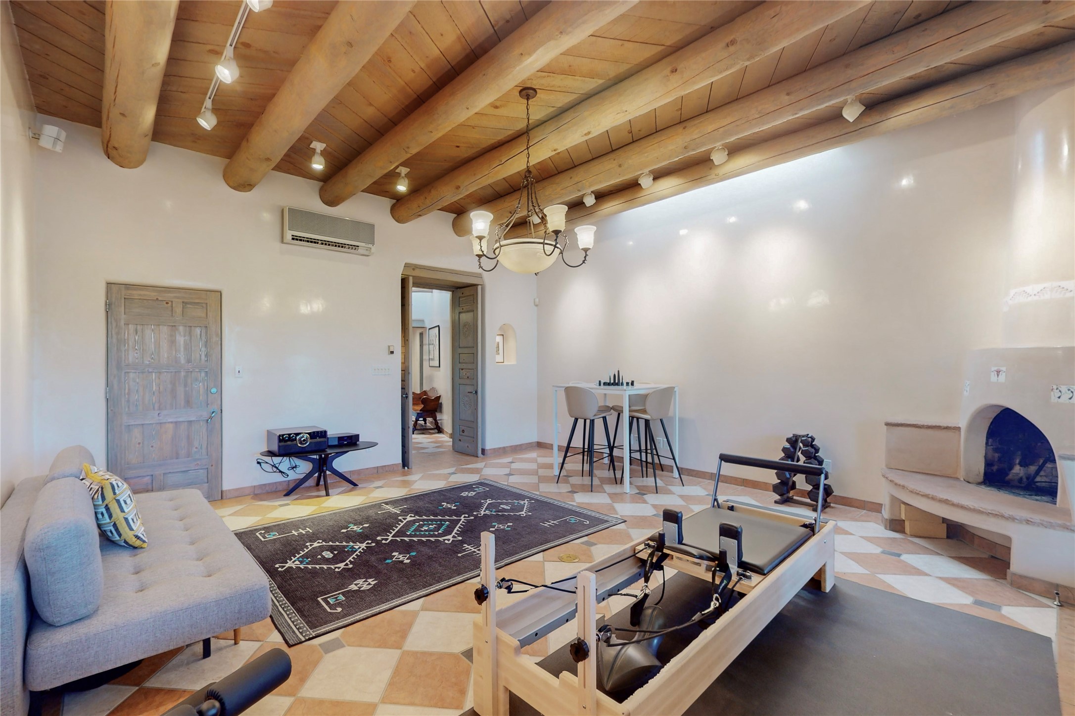 Superb location nestled in the foothills of the Sangre de Cristos is surprisingly private and offers easy access for enjoying all of the amenities of downtown and all the activities of the mountains (hiking, skiing, biking, etc...). The idyllic setting boasts tons of outdoor portal space to enjoy the lovely gardens and views toward the southwest, including Sun and Moon mountains. Set on just over one acre, including an enclosed fenced area, has direct mountain access. This sun-filled home embraces all that is the land of enchantment with 2 of the 4 bedrooms featuring full en-suites, 5 wood burning kiva fireplaces (1 outdoor), two kitchens, and a steam shower. The floor plan could be desirable for multi-generational options which is highlighted by one level access.